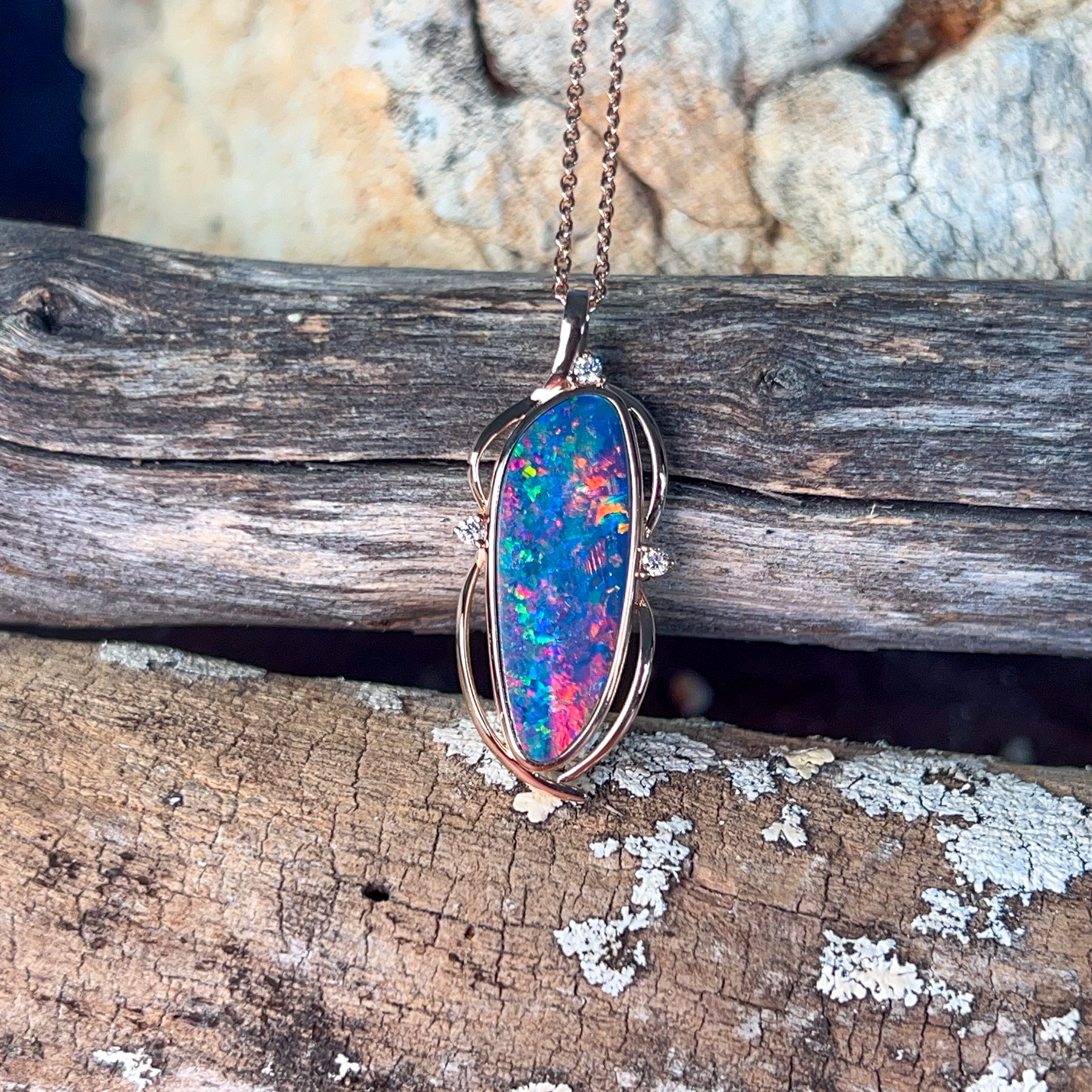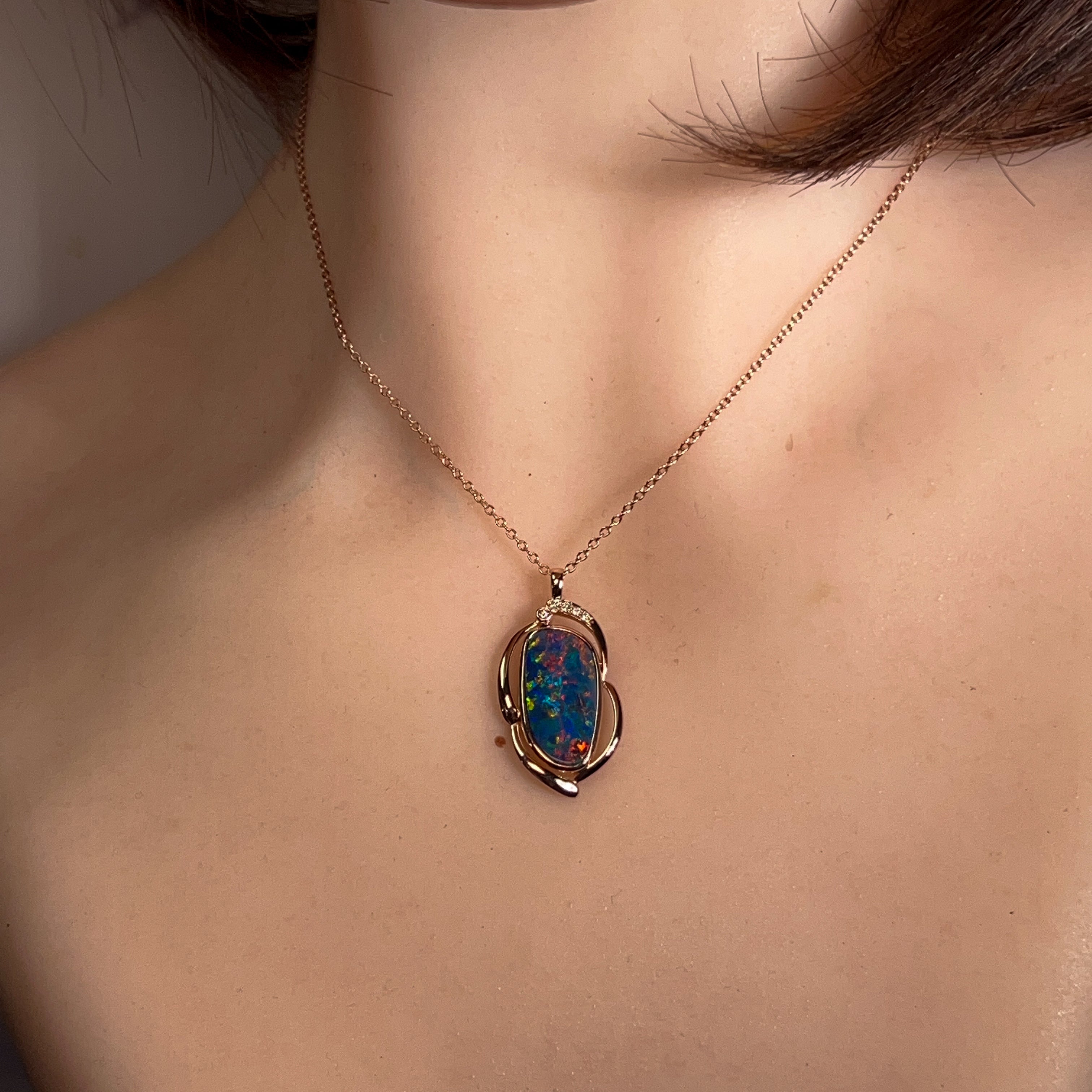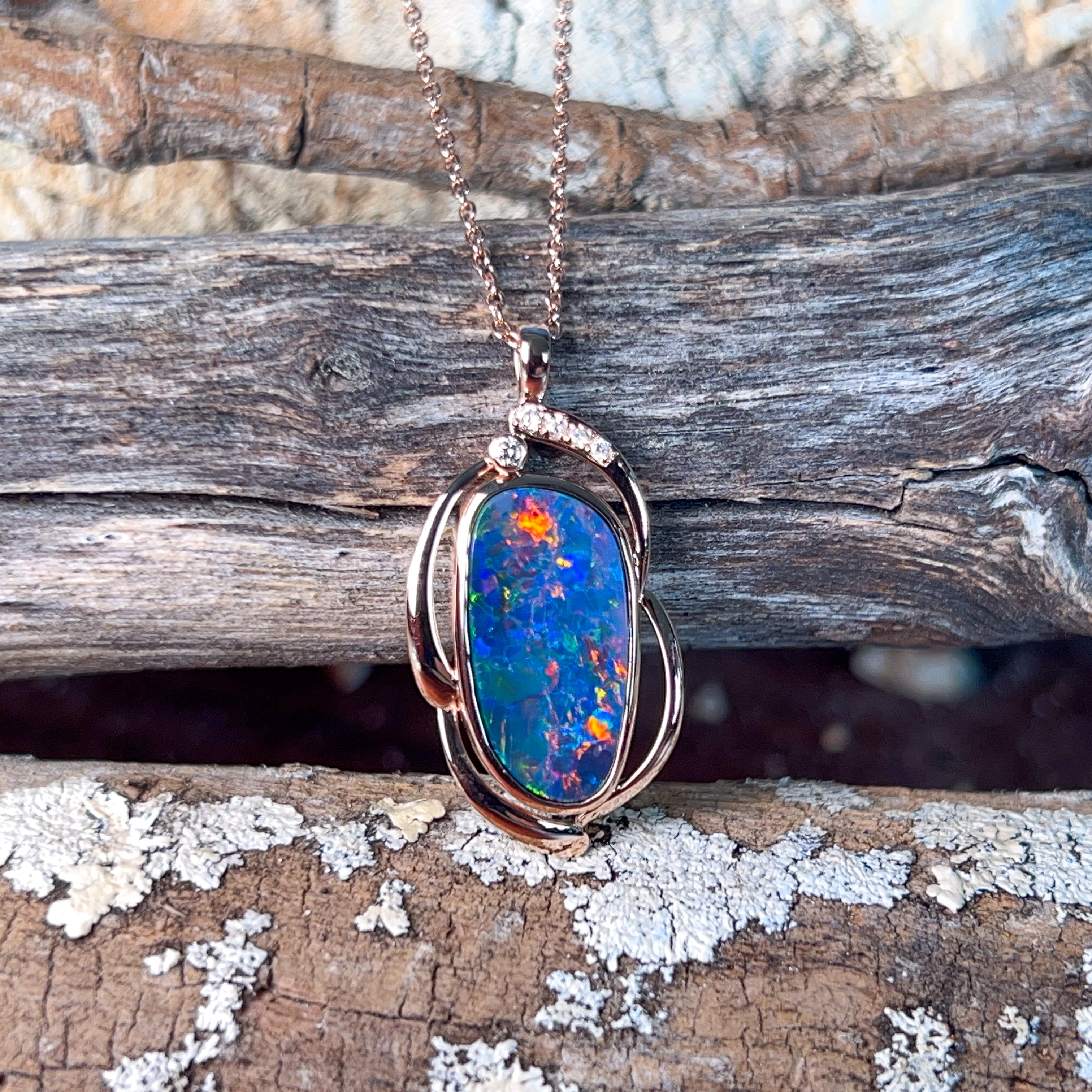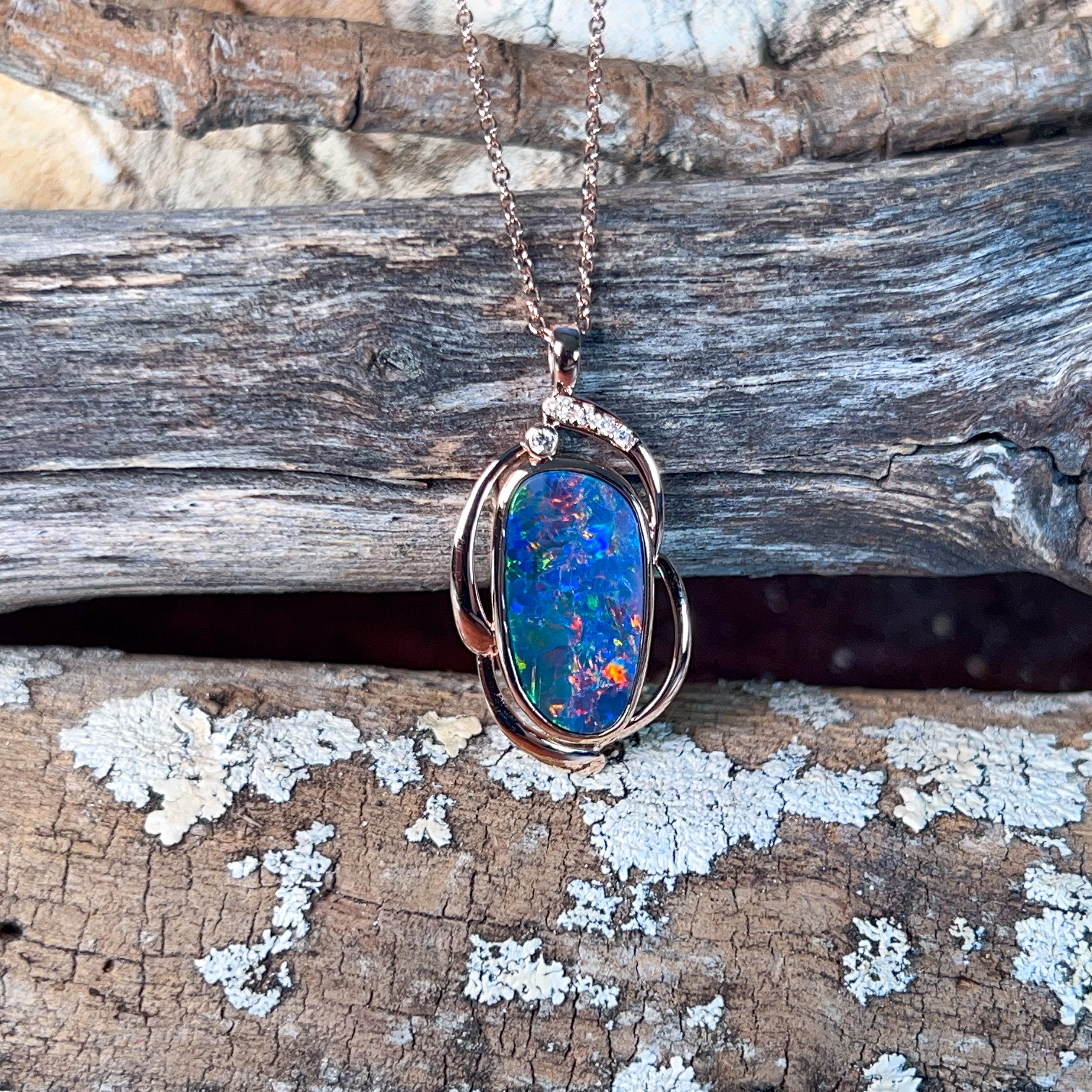 14kt Rose Gold Opal doublet 4.8ct and diamond pendant