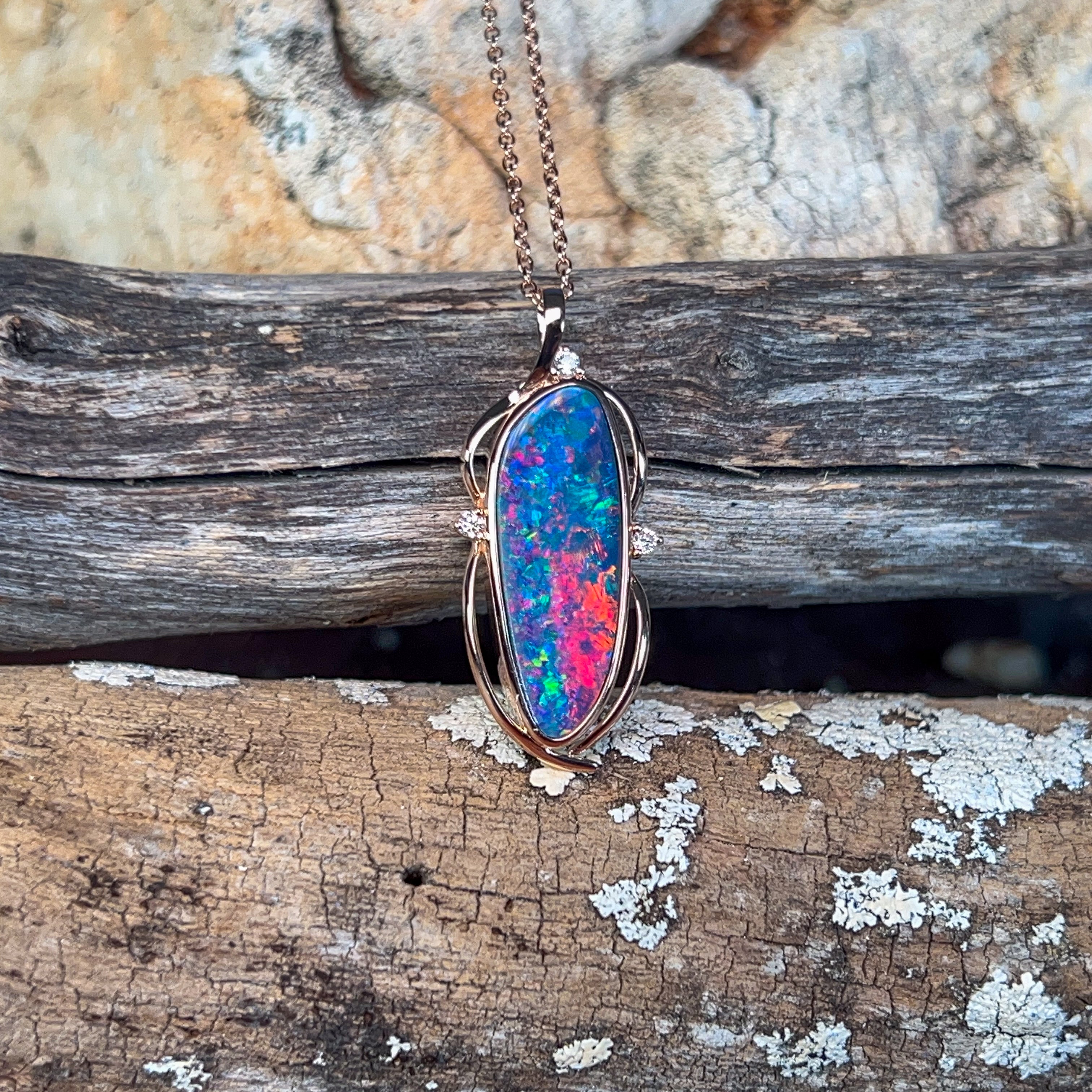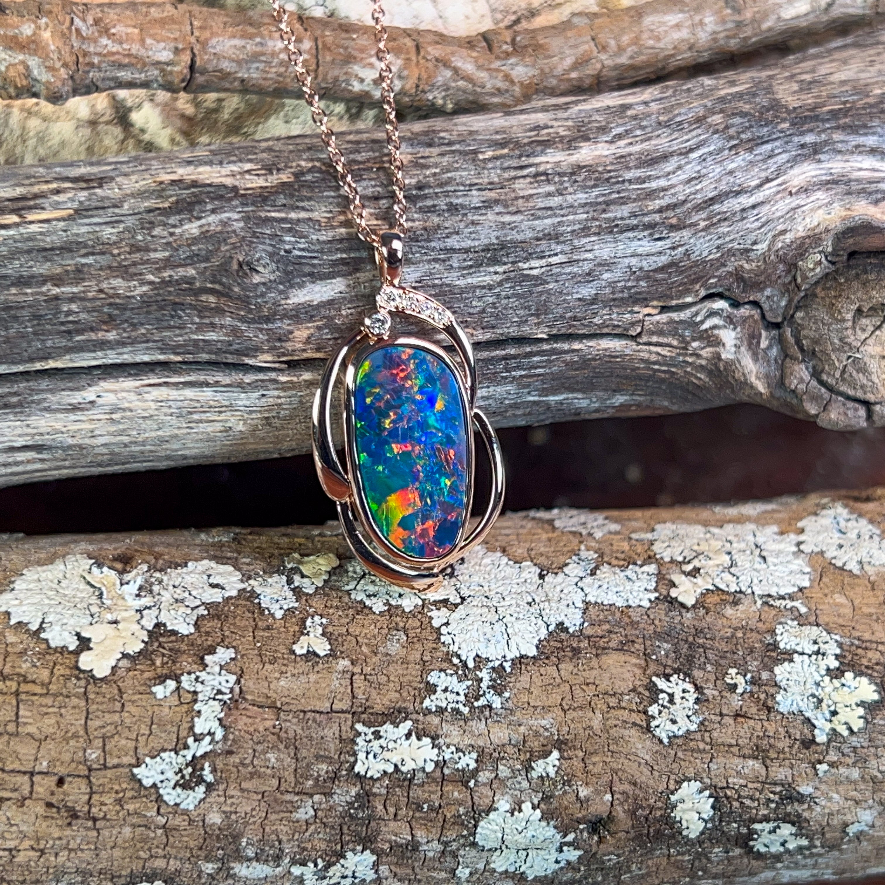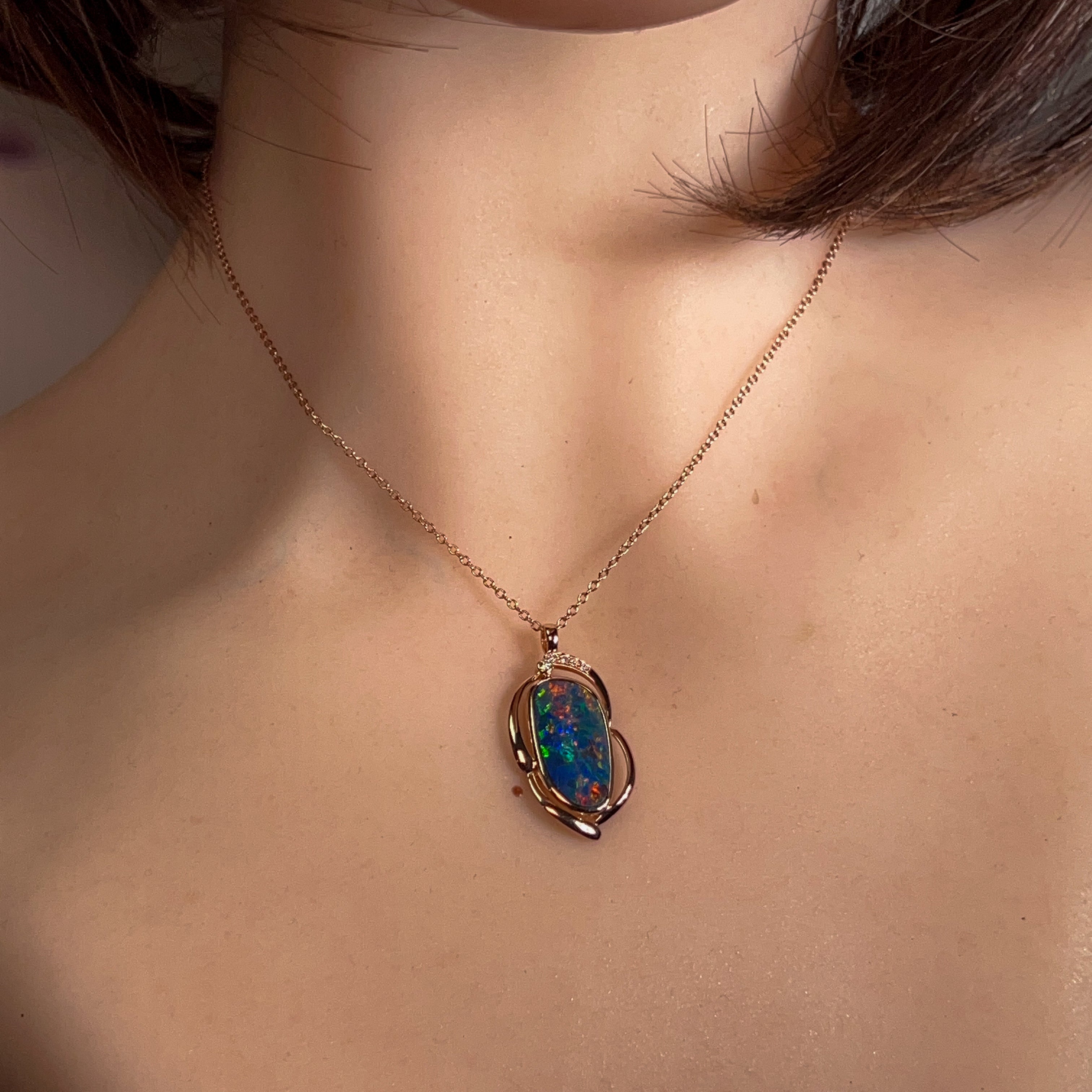 14kt Rose Gold Opal doublet 4.8ct and diamond pendant