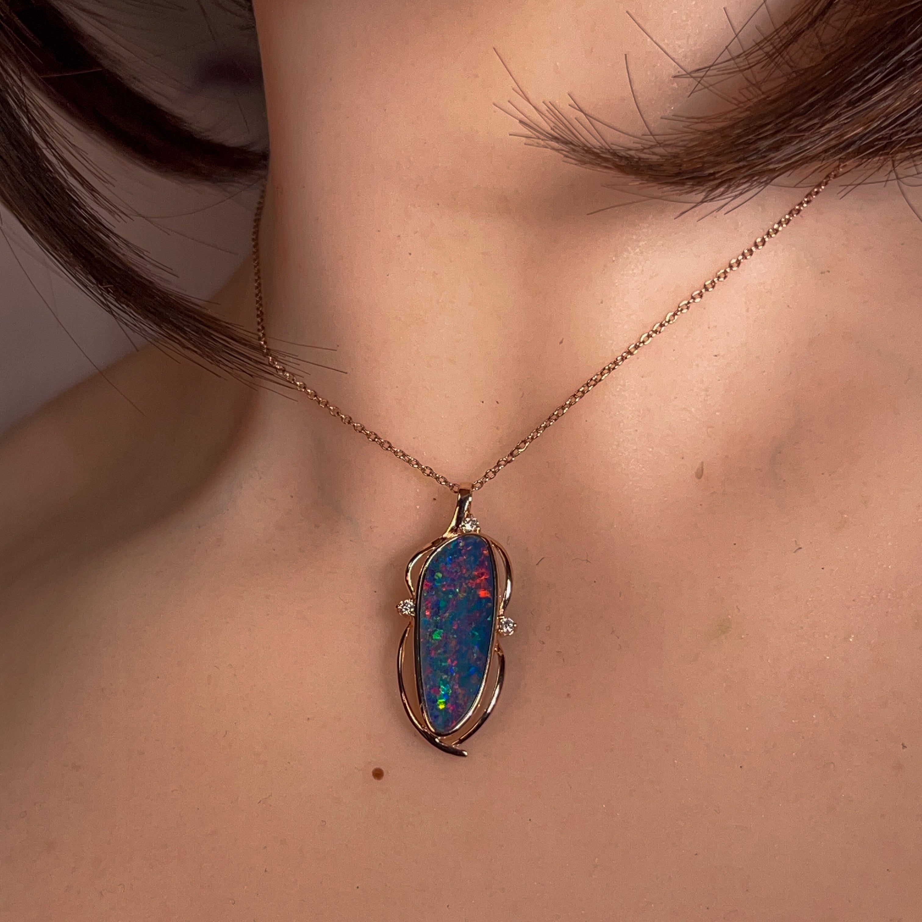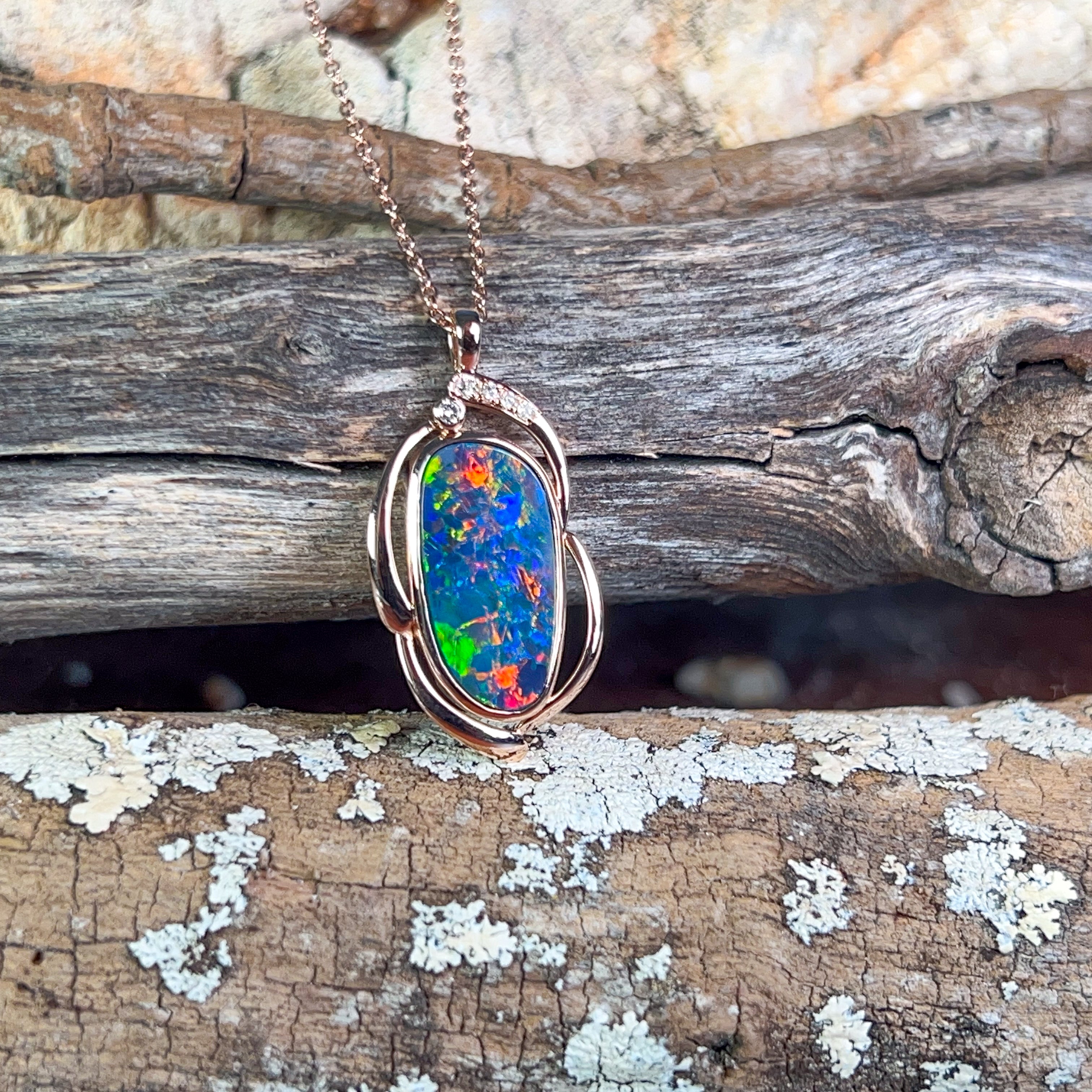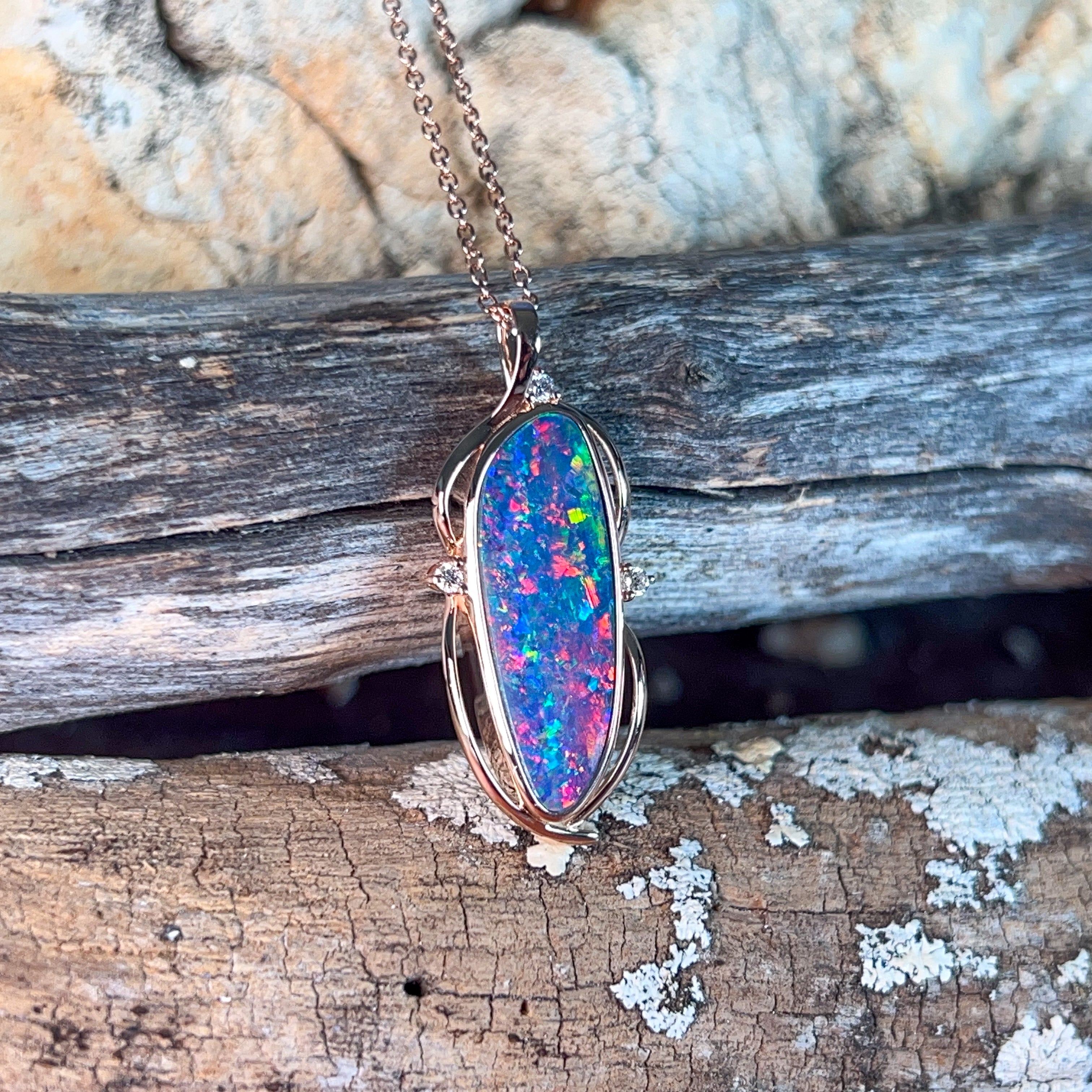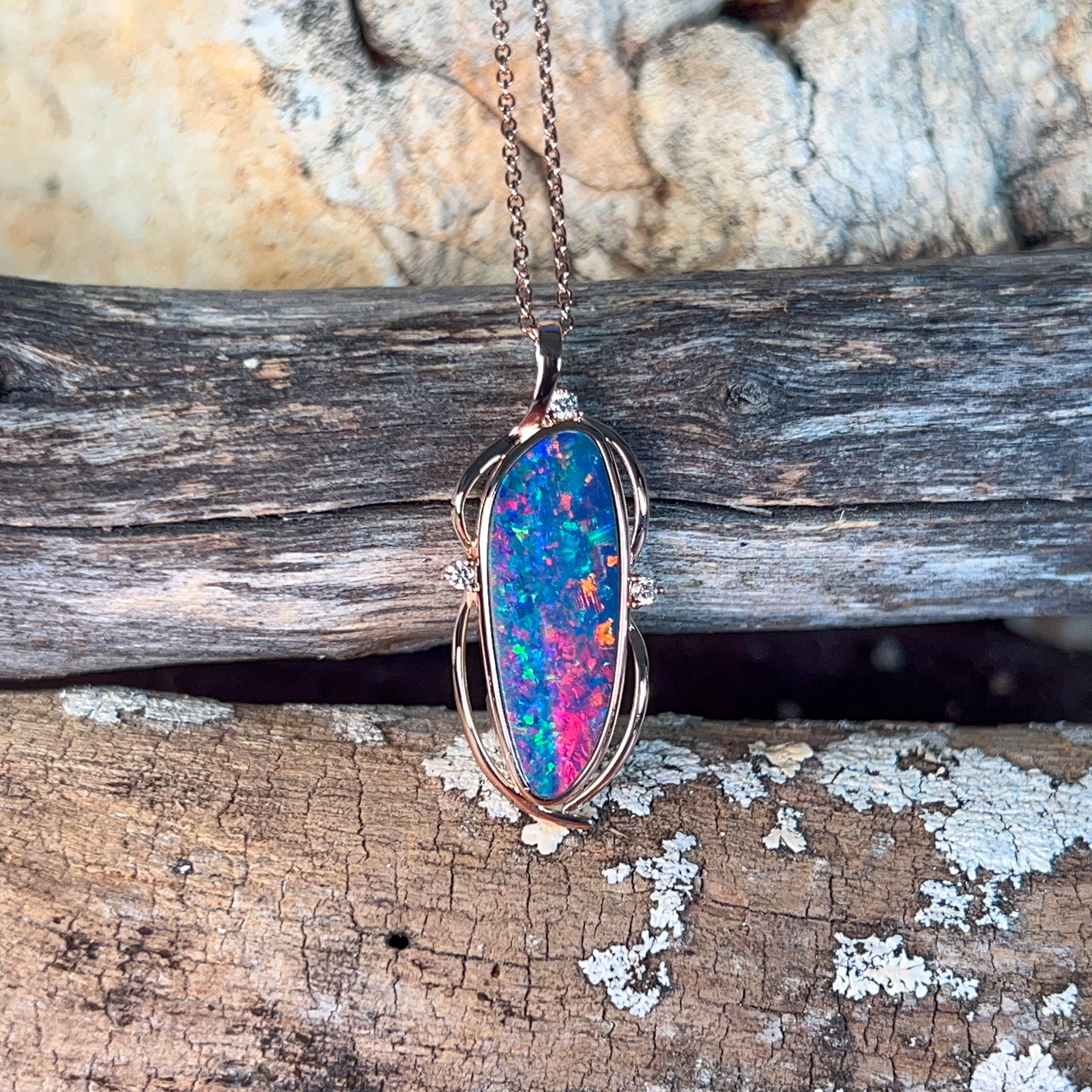 14kt Rose Gold Opal doublet 4.8ct and diamond pendant