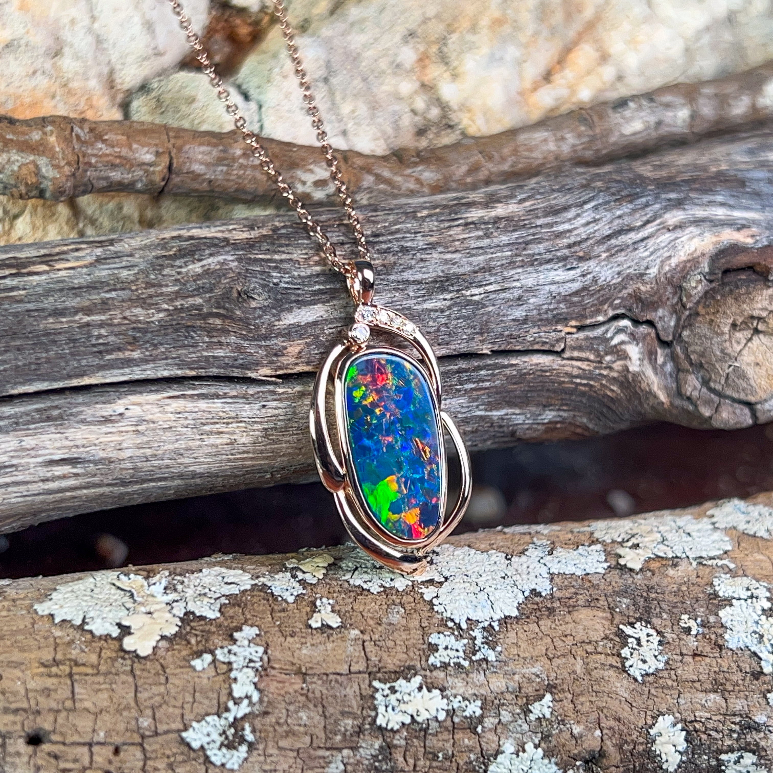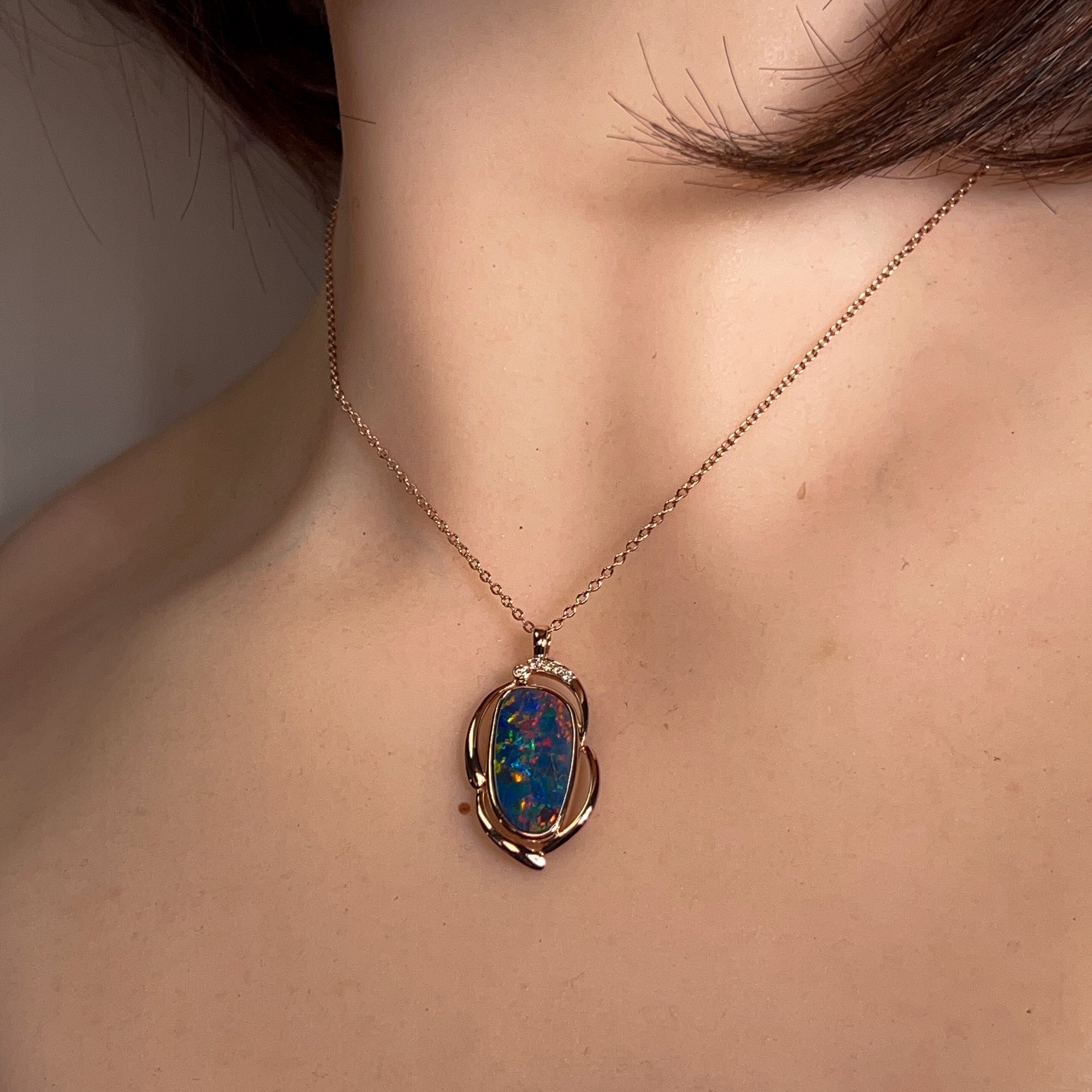 14kt Rose Gold Opal doublet 2.93ct and diamond pendant