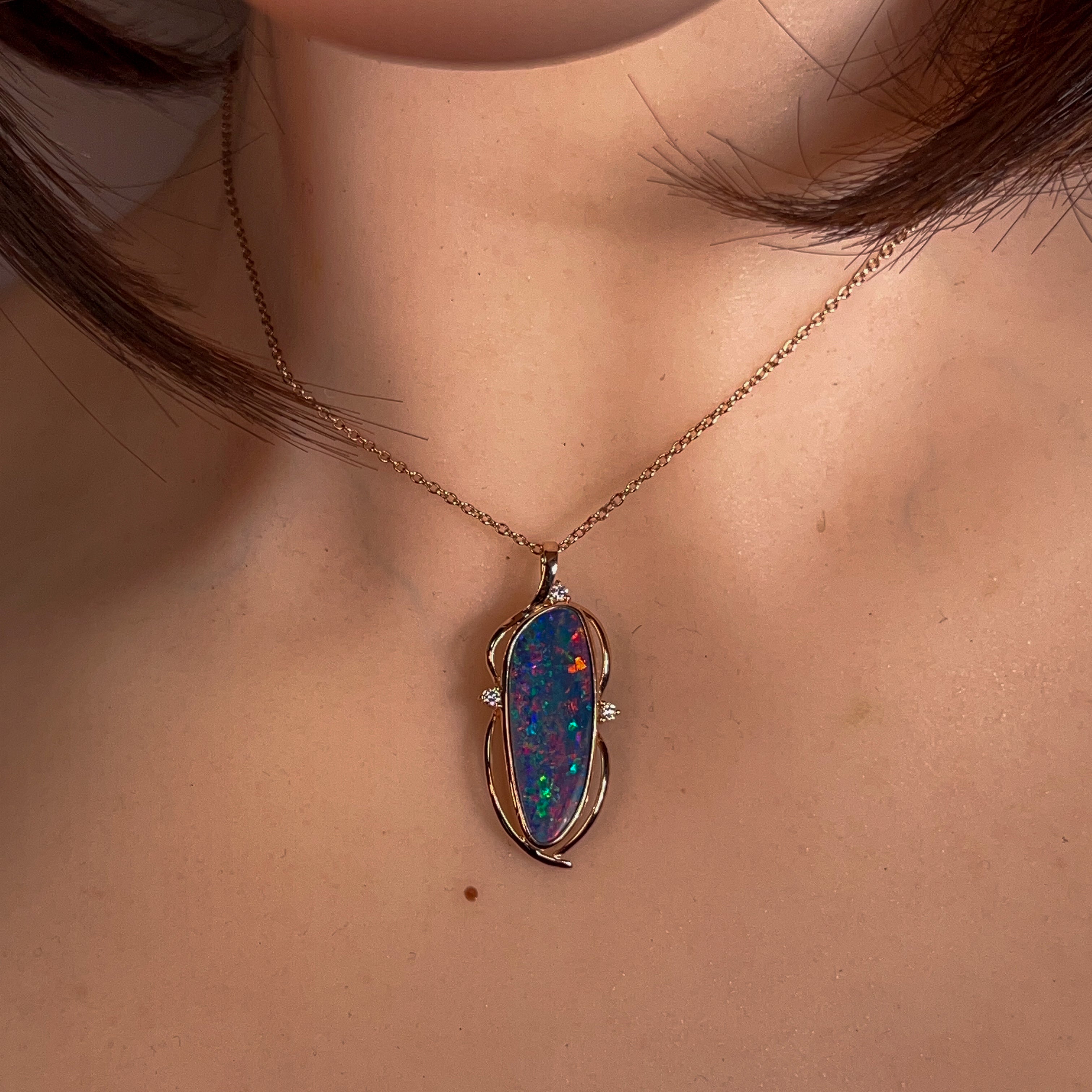 14kt Rose Gold Opal doublet 5.25ct and DIamond pendant