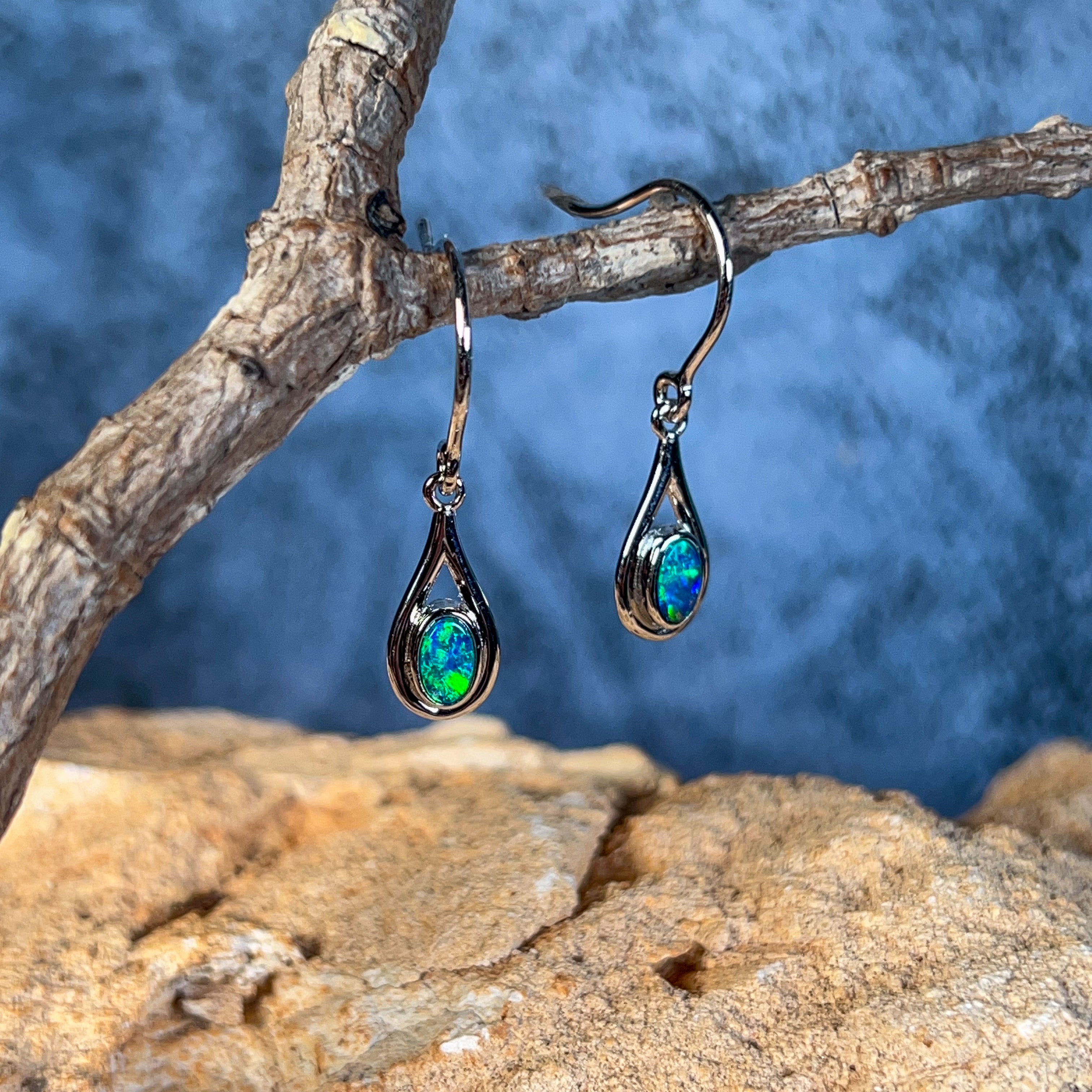 Sterling Silver 0.27ct Opal doublet dangling earrings