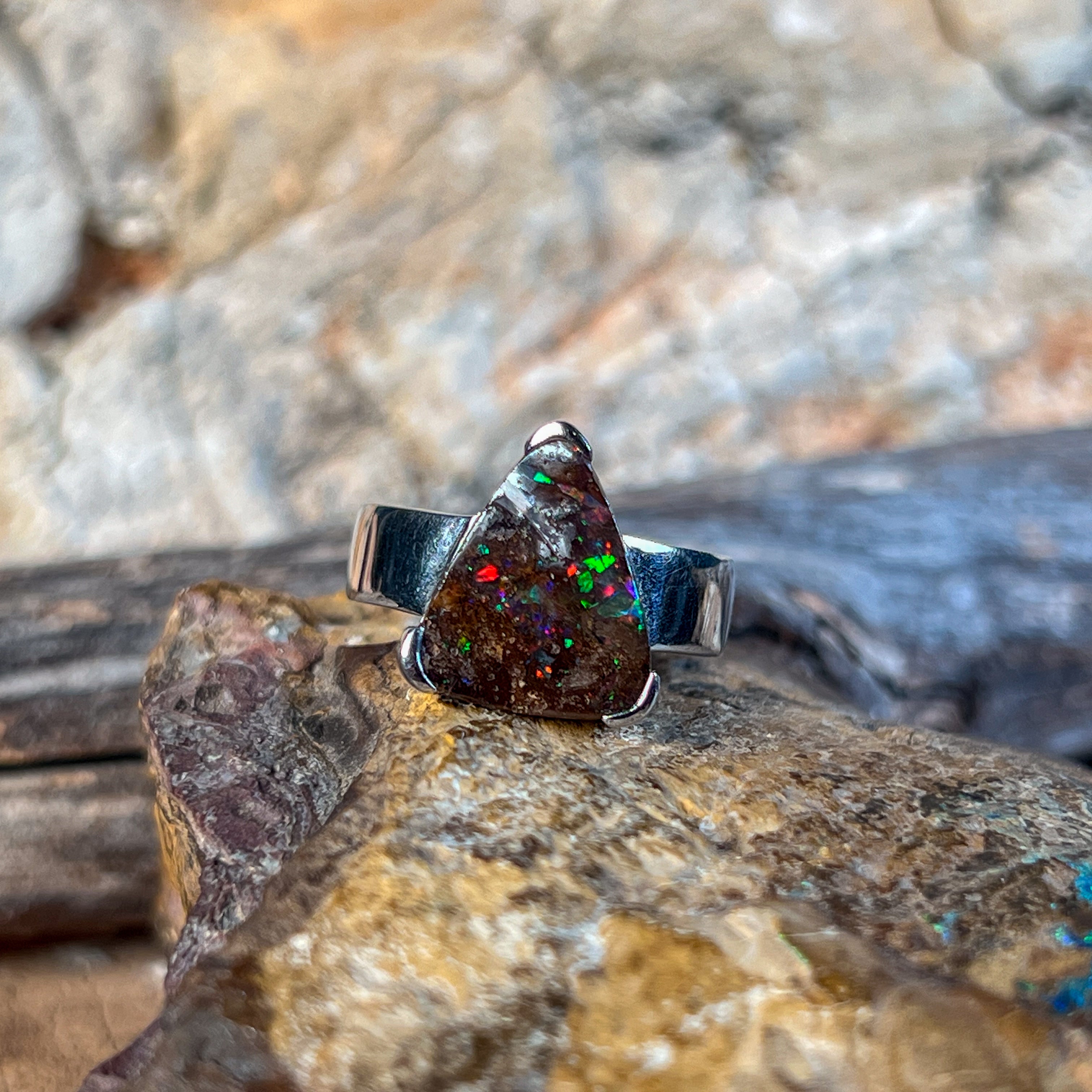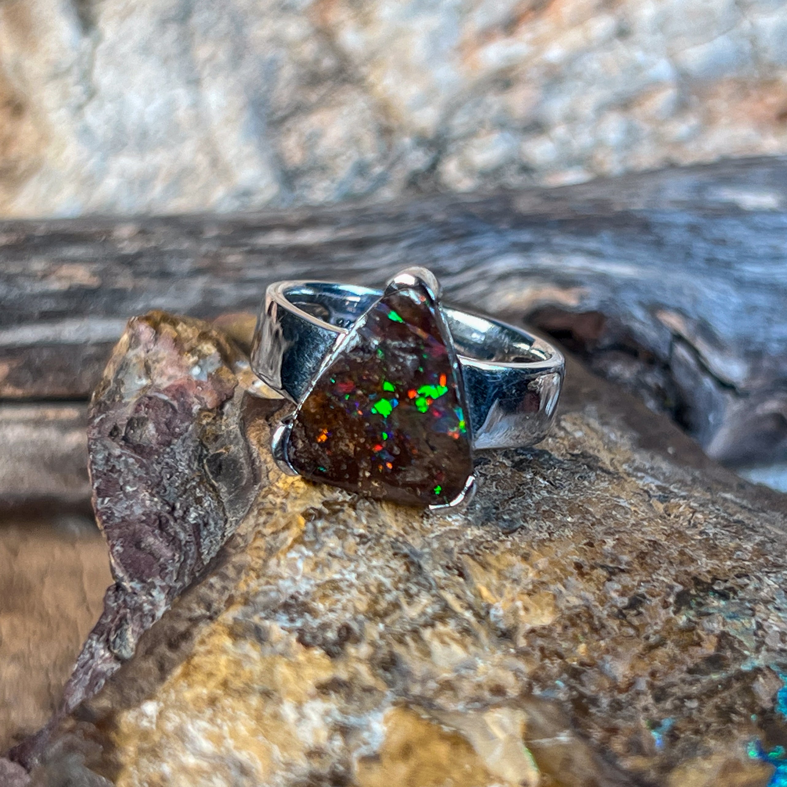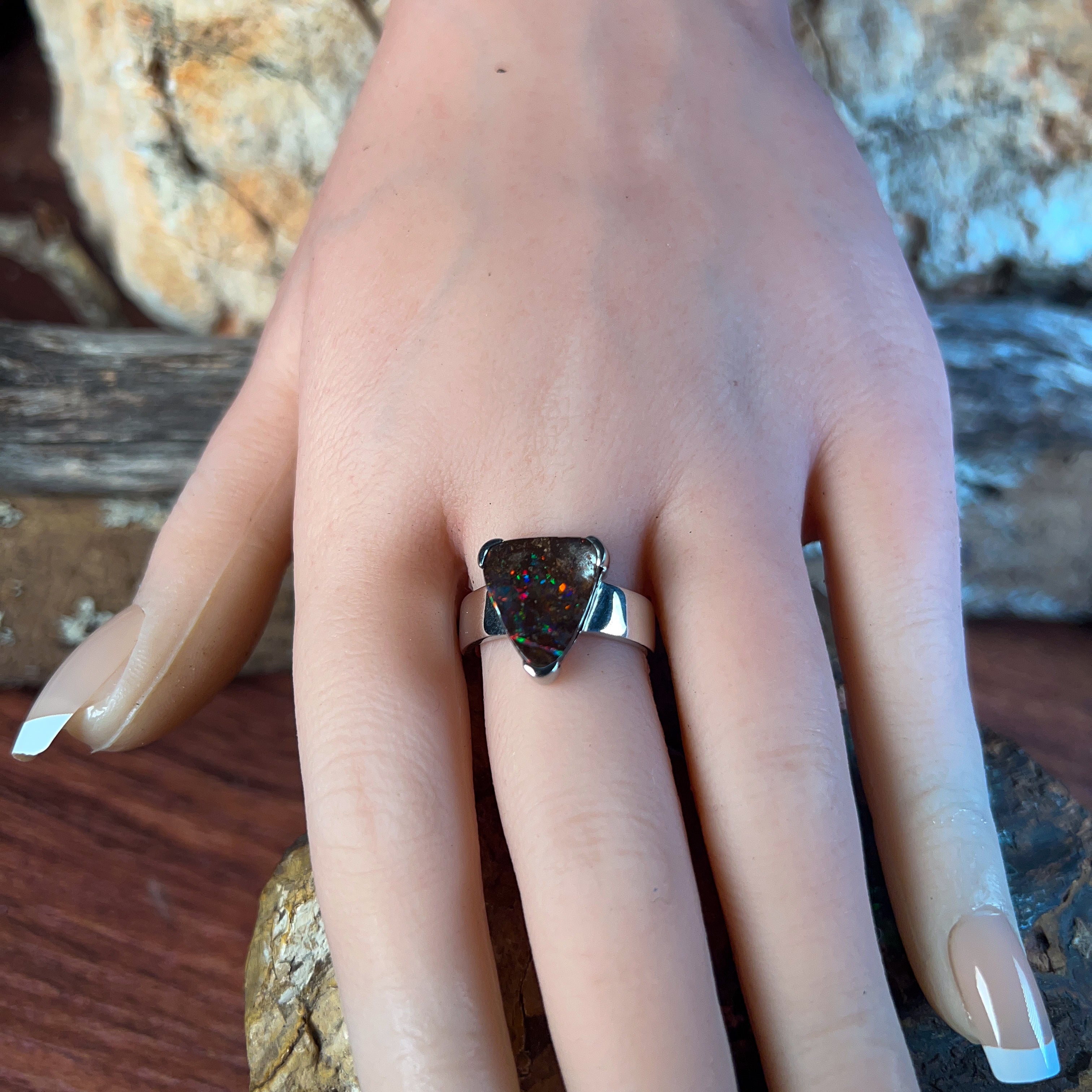 Sterling Silver Triangle Australian Boulder Opal ring for women