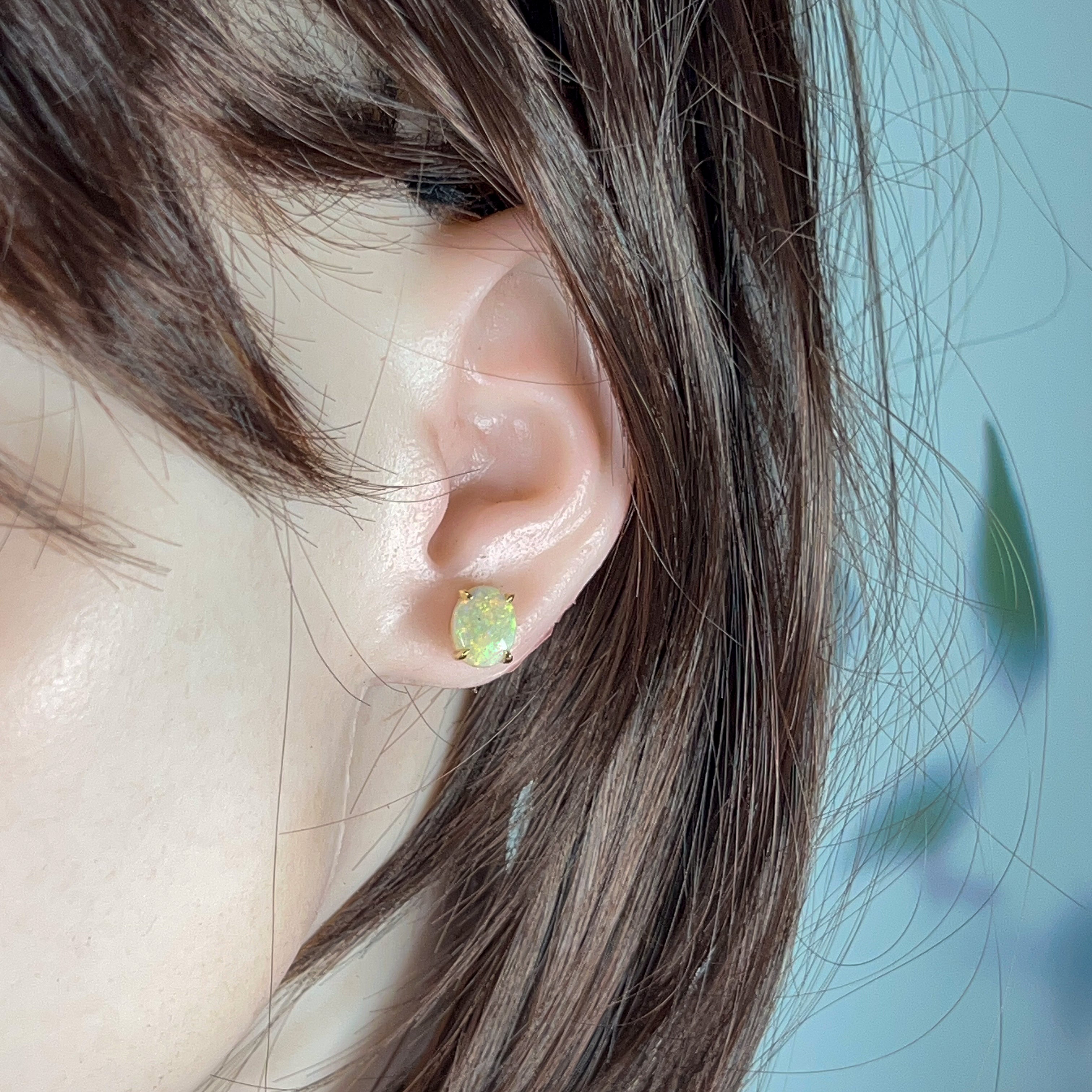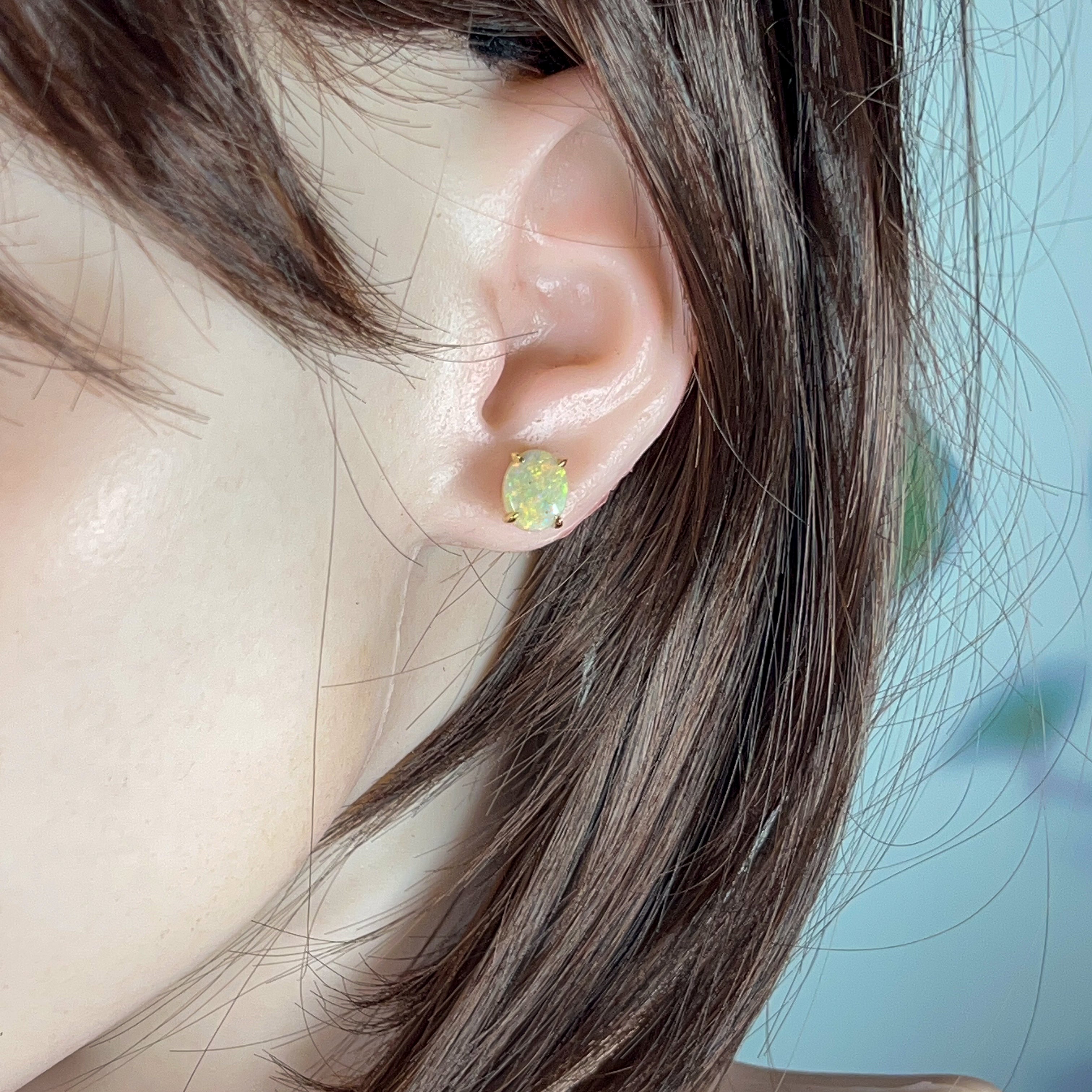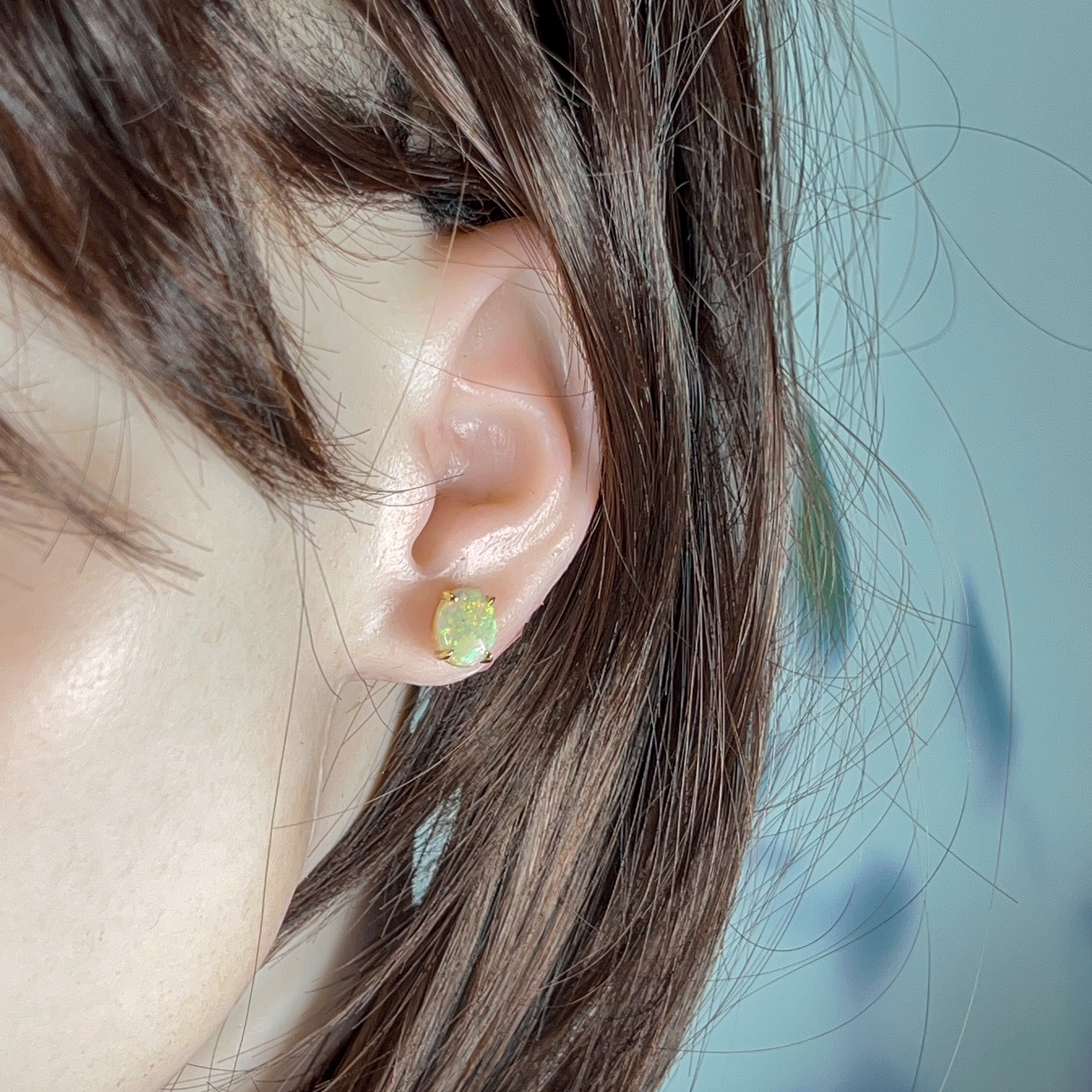 Opal earring studs are the simplest type available as they are small and snuggly. No stones or metals are dangling down or curling towards the back of the ears. They are the most practical and comfortable for casual wear. Although opal stud earrings are simple, they exude elegance, which can complement any outfit.