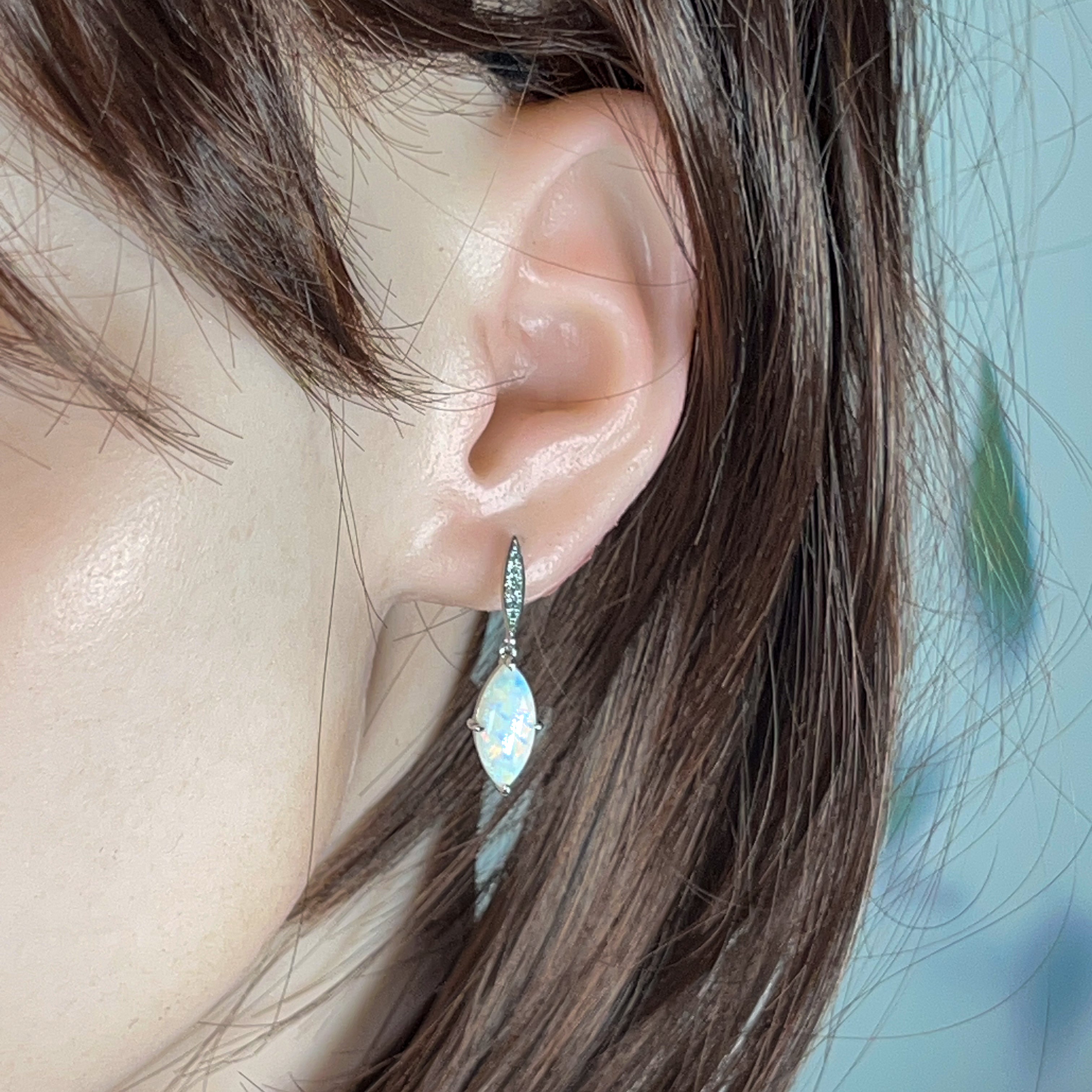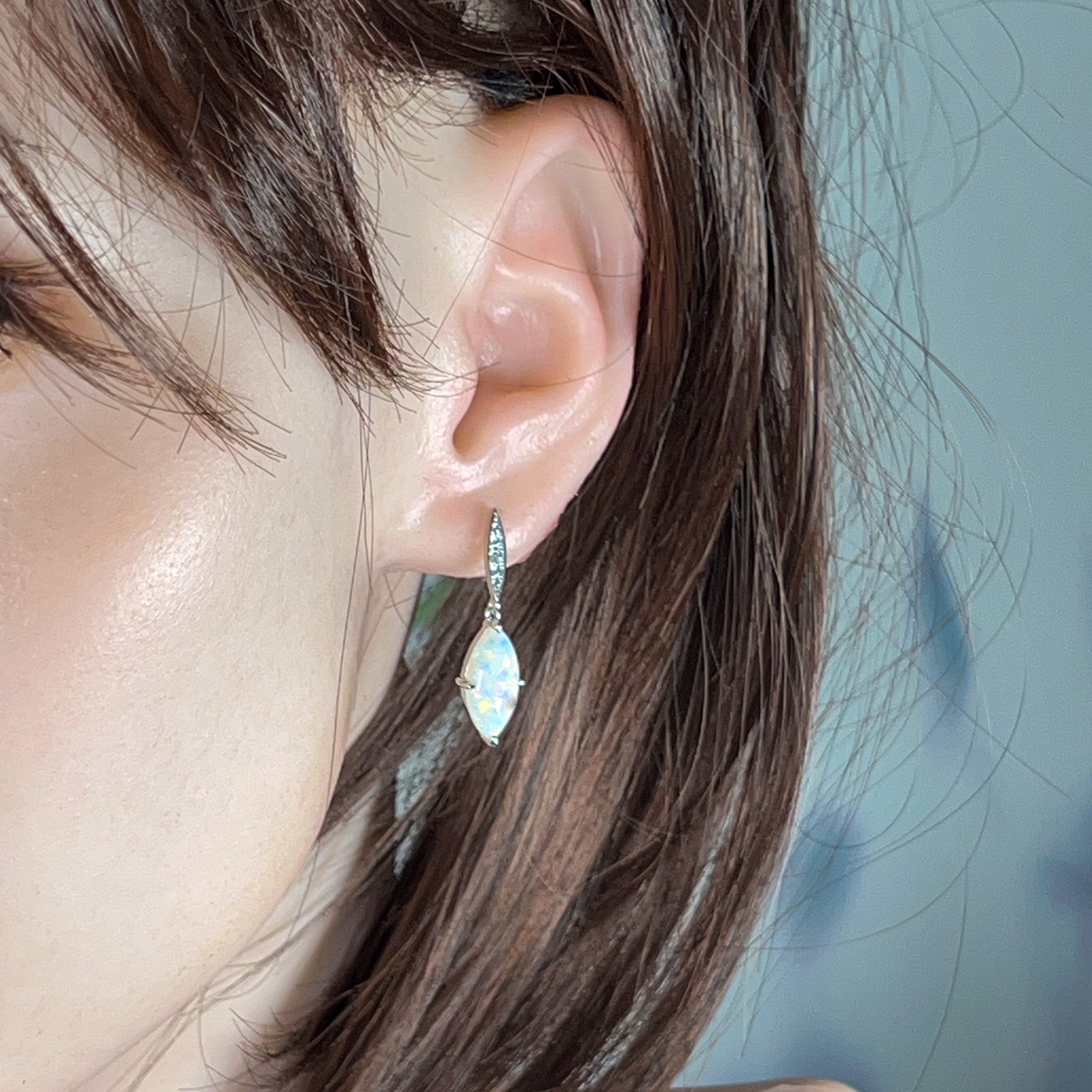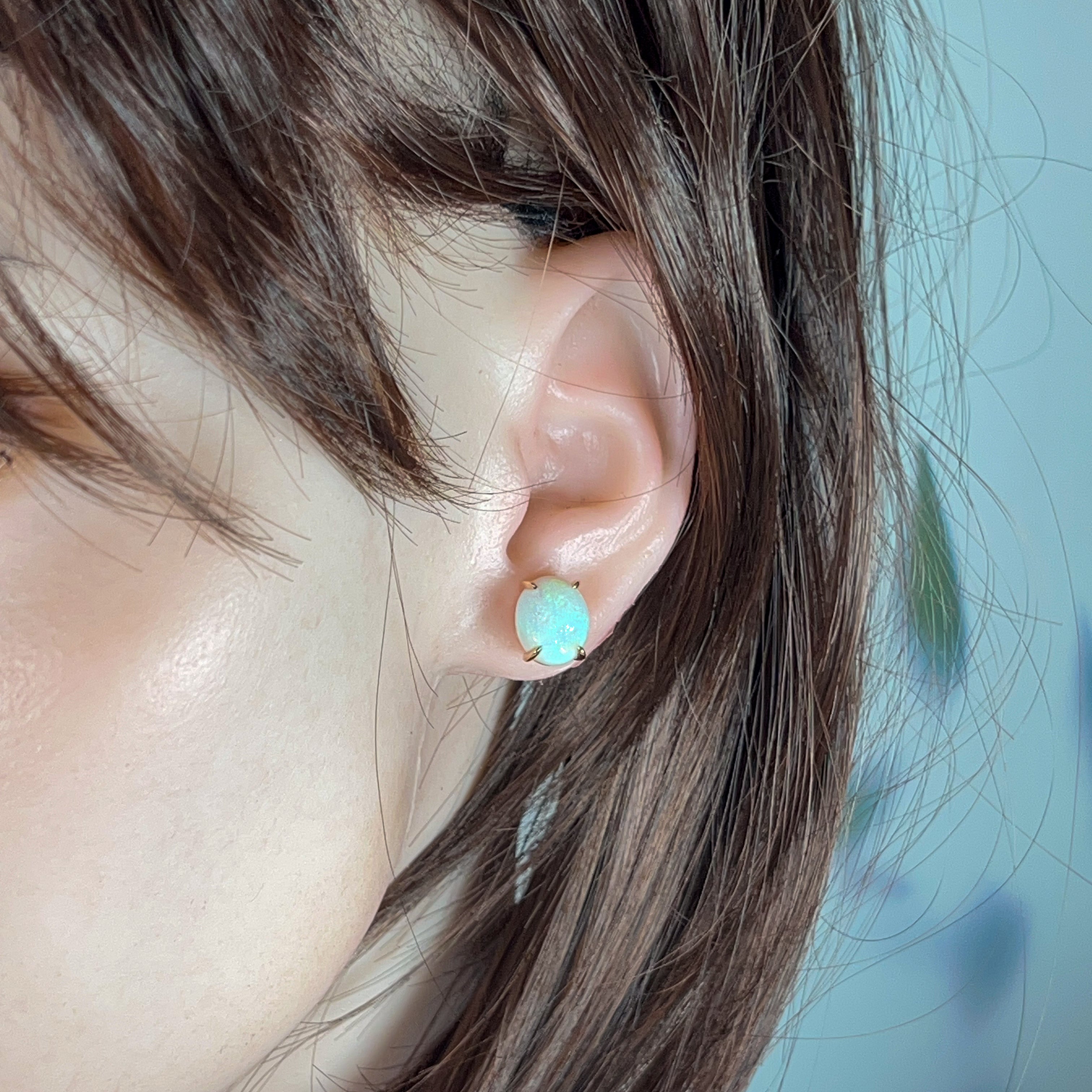 Opal earring studs are the simplest type available as they are small and snuggly. No stones or metals are dangling down or curling towards the back of the ears. They are the most practical and comfortable for casual wear. Although opal stud earrings are simple, they exude elegance, which can complement any outfit.