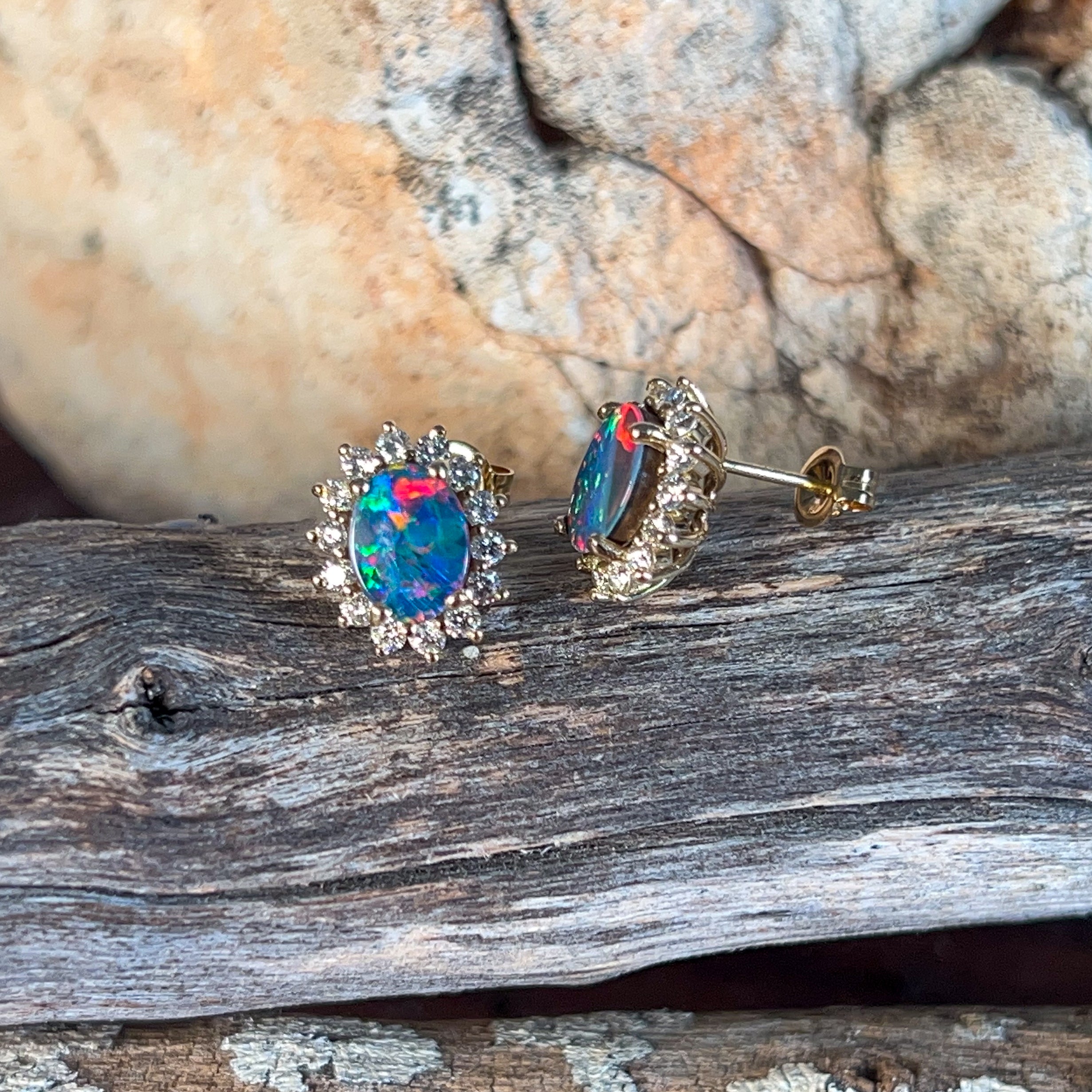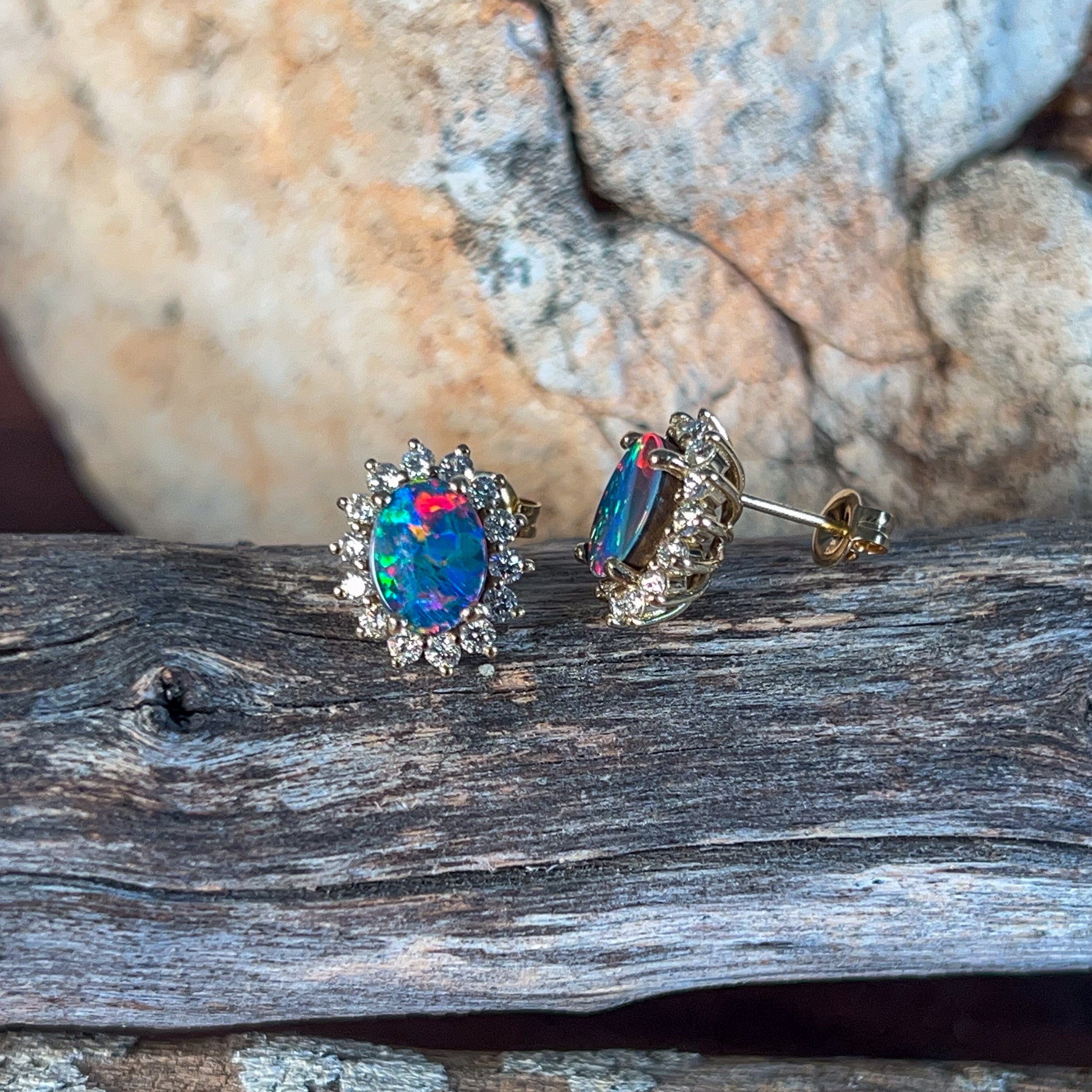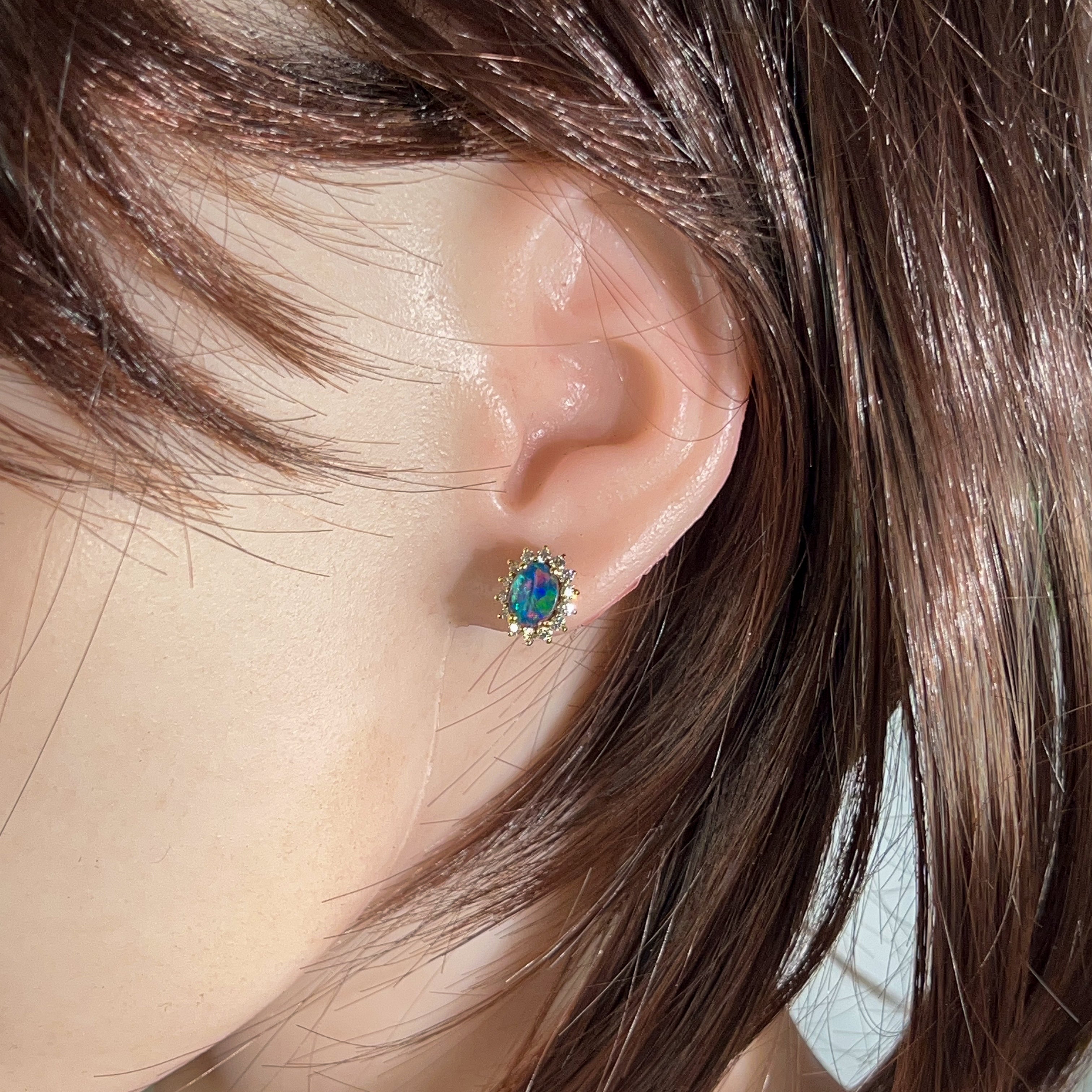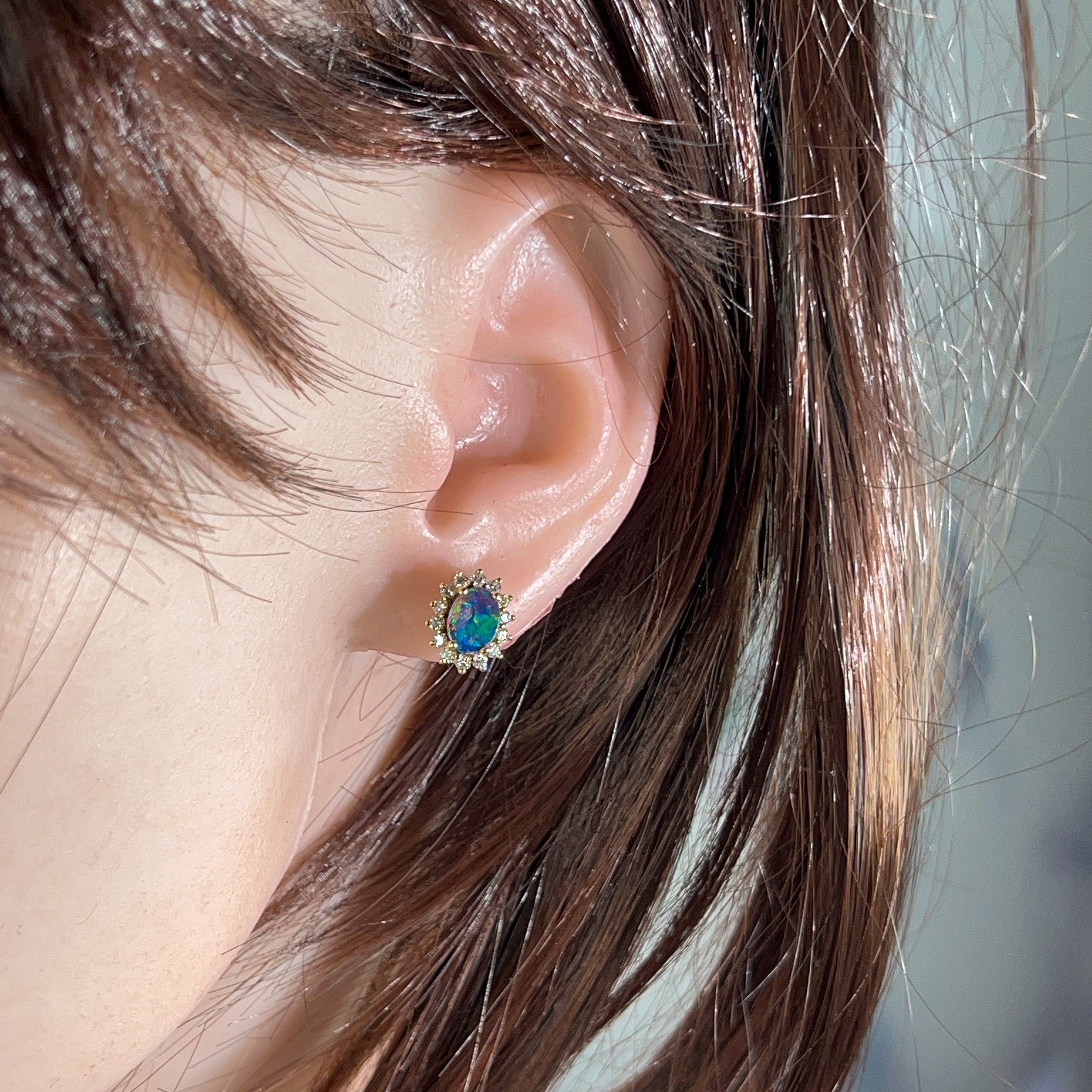 You will love opal cluster earrings if you want the earrings to have a few stones highlighting the opal's beauty. One example of it is the Two Australian Opal Triplet 4mm. It has cubic zirconia stones clustering and framing the central opal stone.