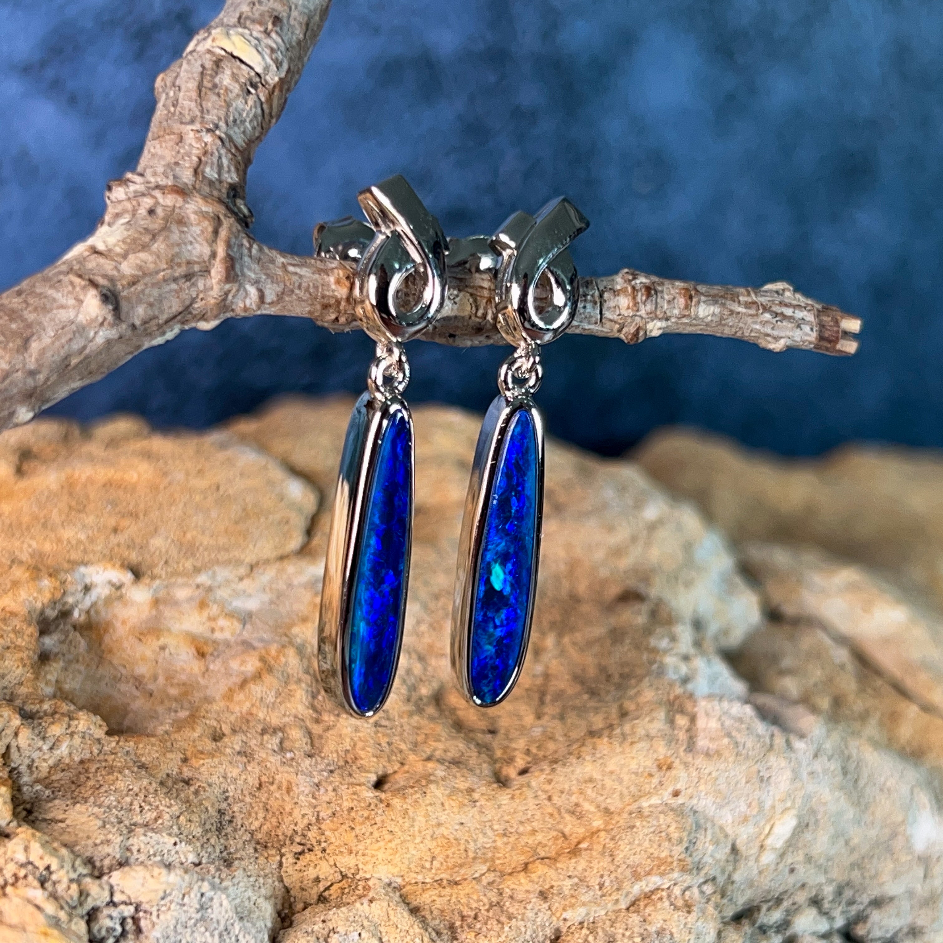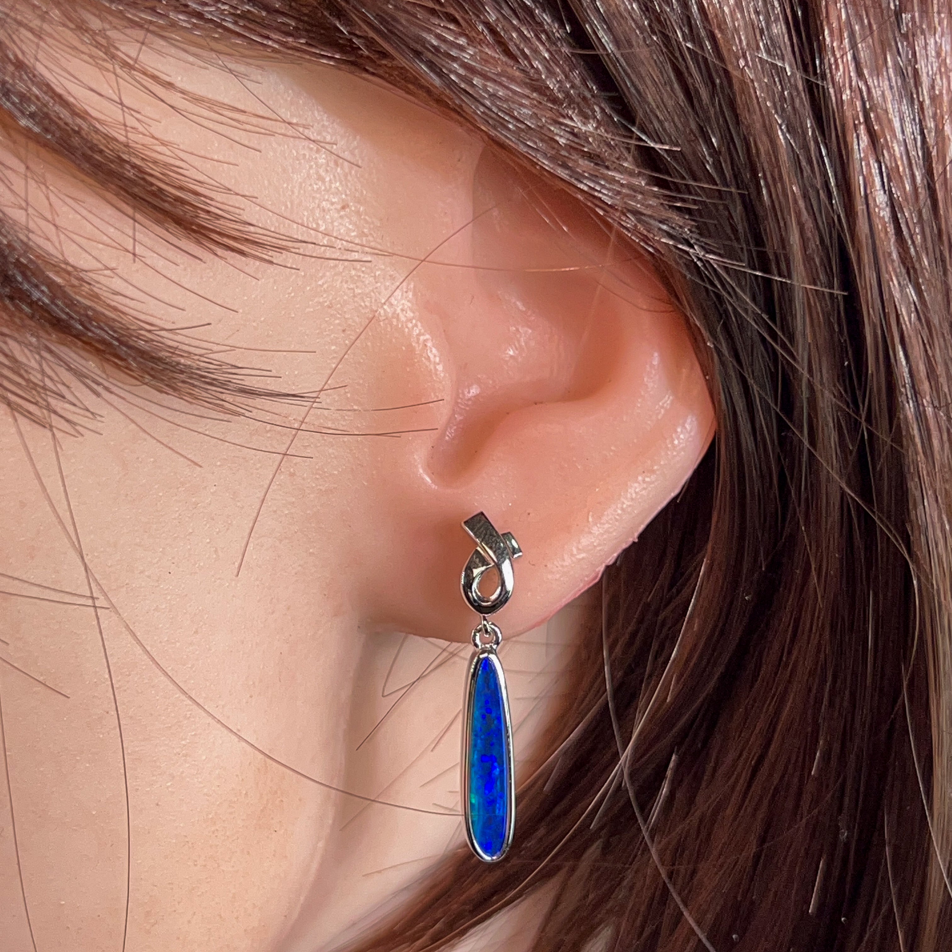 One example of it is the Sterling Silver Dangling Opal Triplet Earrings. These earrings have stones or metals that are dangling down the earlobe. They commonly have an intricate design, and their movement as the wearer moves adds to their charm.
