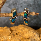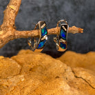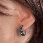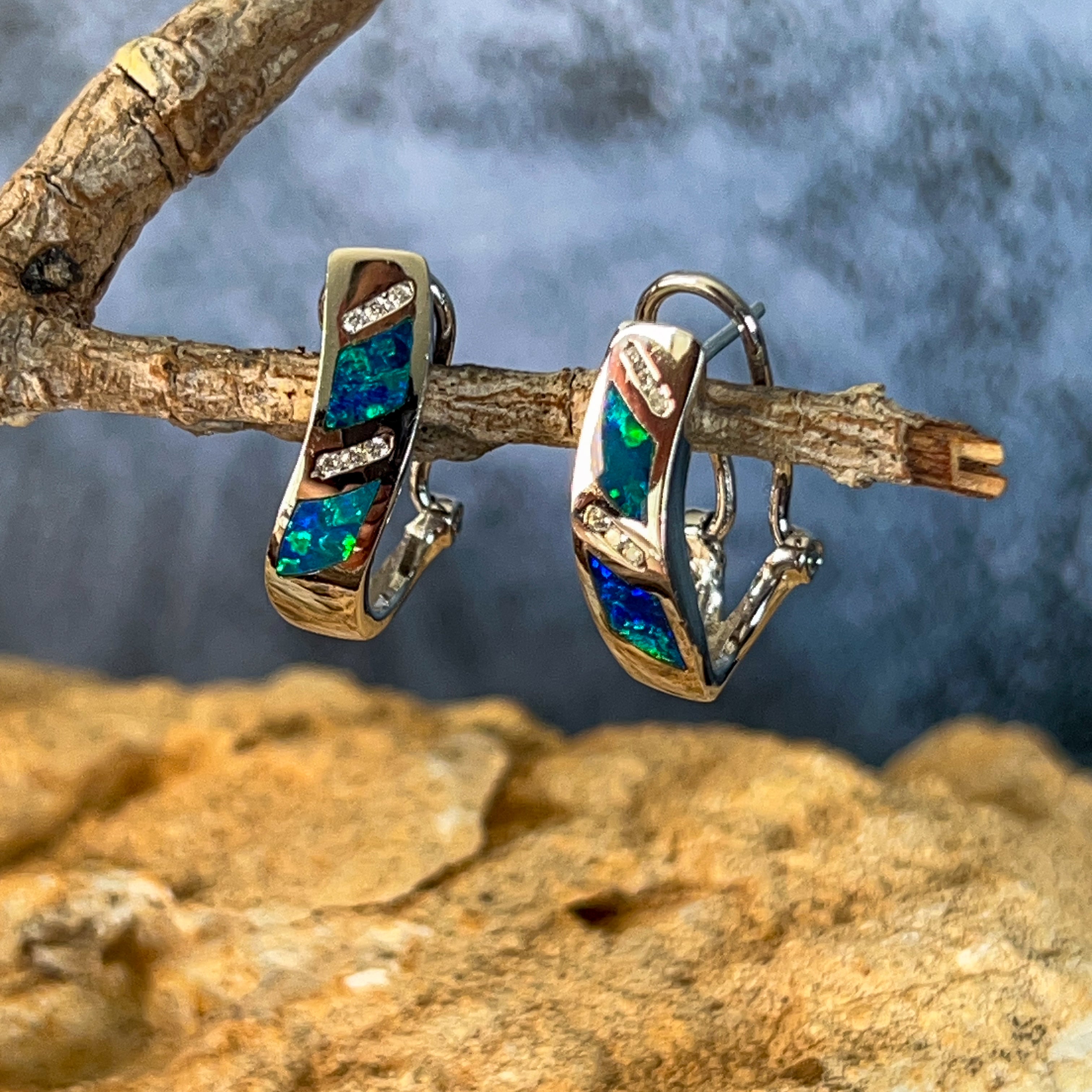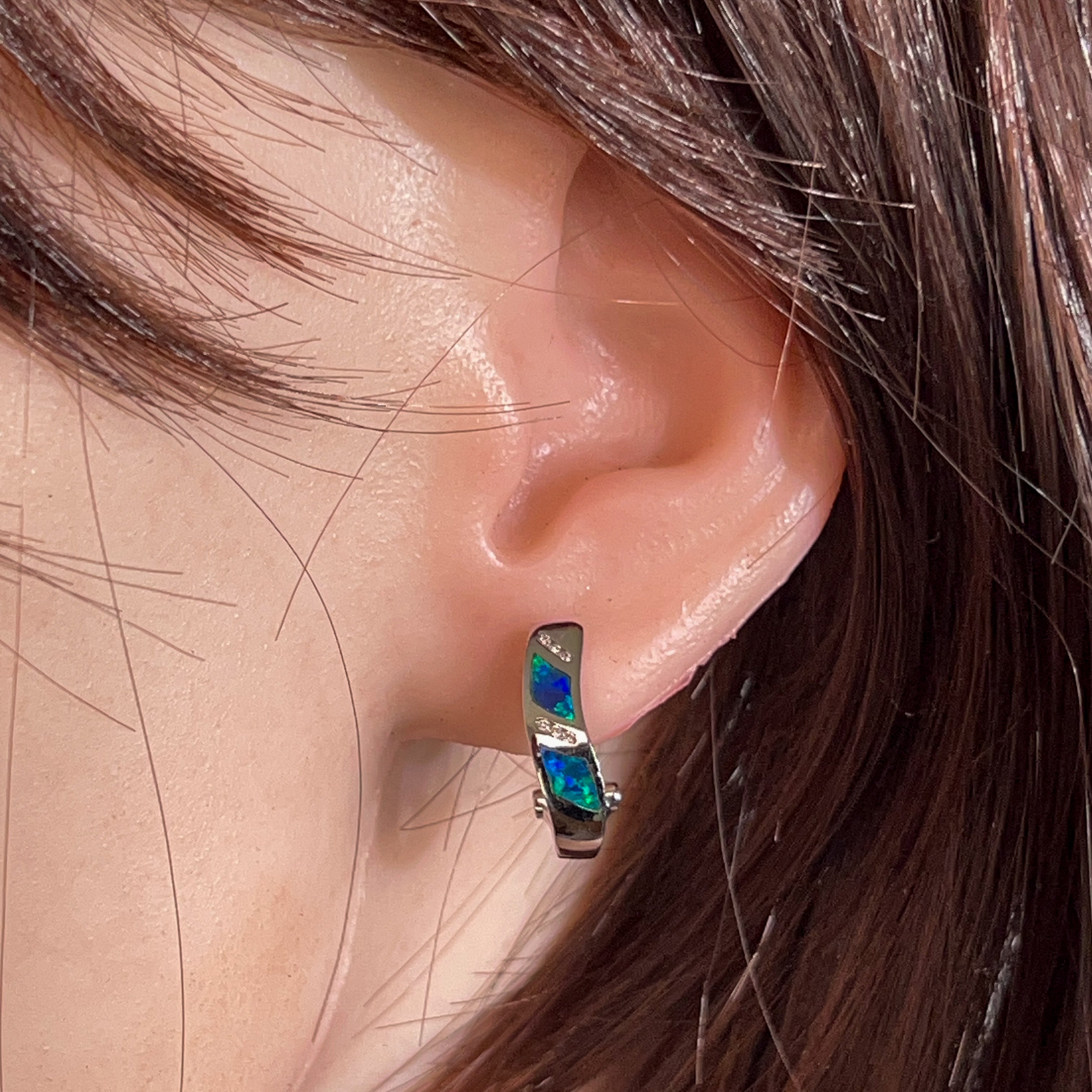 One pair of 14kt White Gold Opal inlay huggie earrings