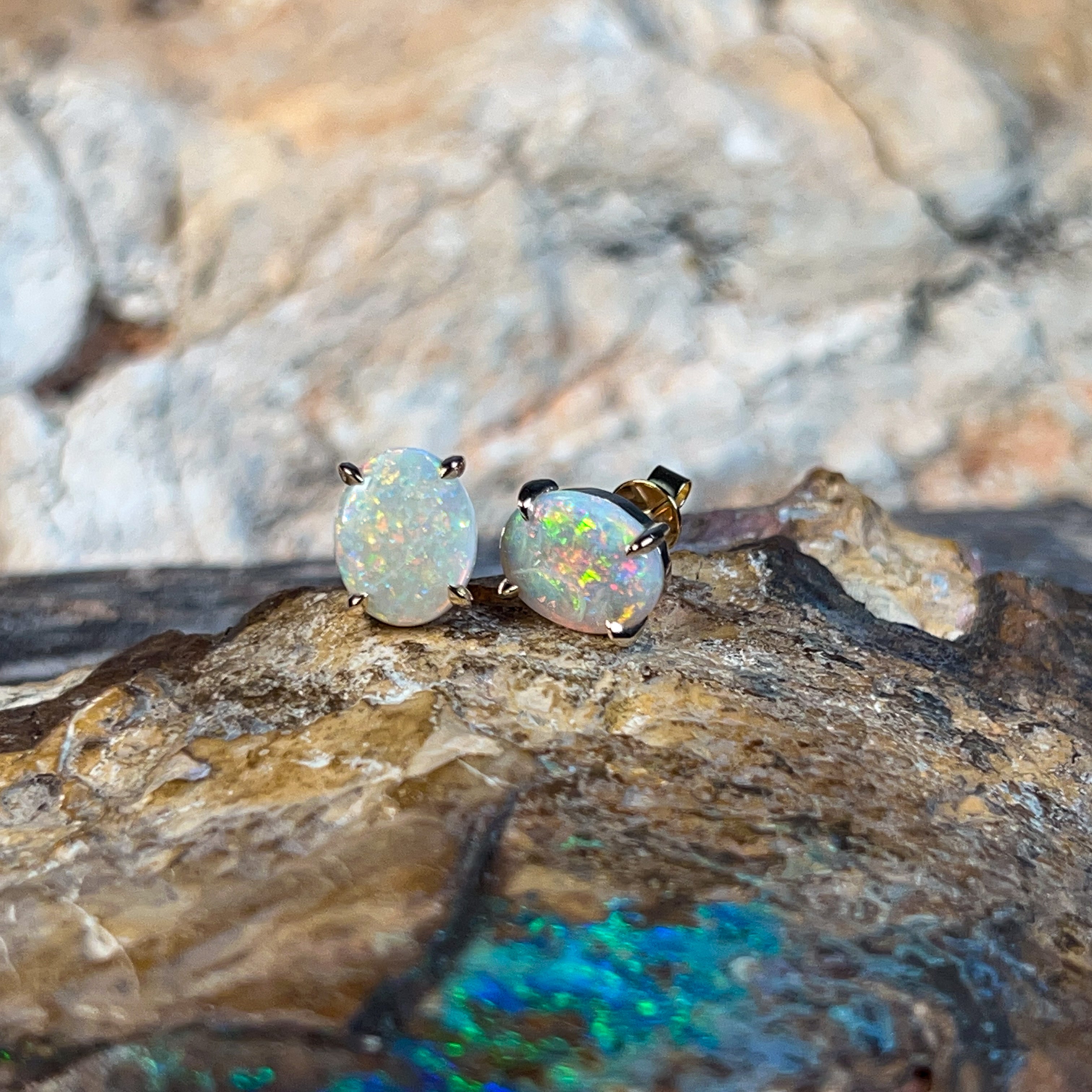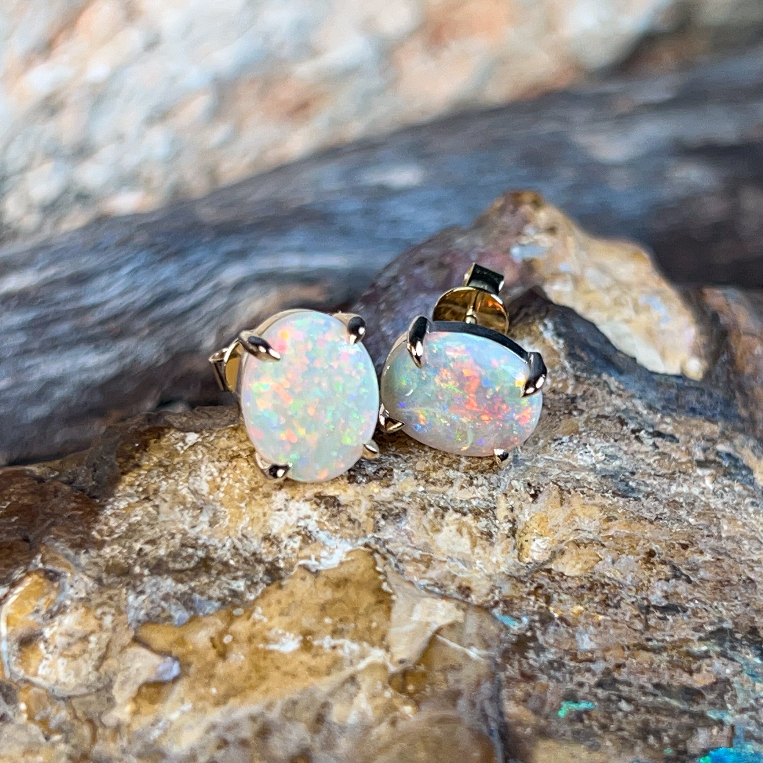 Elevate your everyday sparkle with these stunning 14kt yellow gold dark opal studs. Each piece features a gorgeous 3.3ct dark opal set in a secure claw setting that lets the stone's mesmerizing play-of-colour take centre stage. Perfect for adding a touch of Australian luxury to any look, these versatile studs transition seamlessly from office to evening. The warm glow of yellow gold complements the opal's deep, mysterious hues beautifully. A timeless investment piece that celebrates the natural beauty of one of nature's most enchanting gemstones.