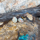 One pair of 14kt Yellow Gold Opal earring studs claw set