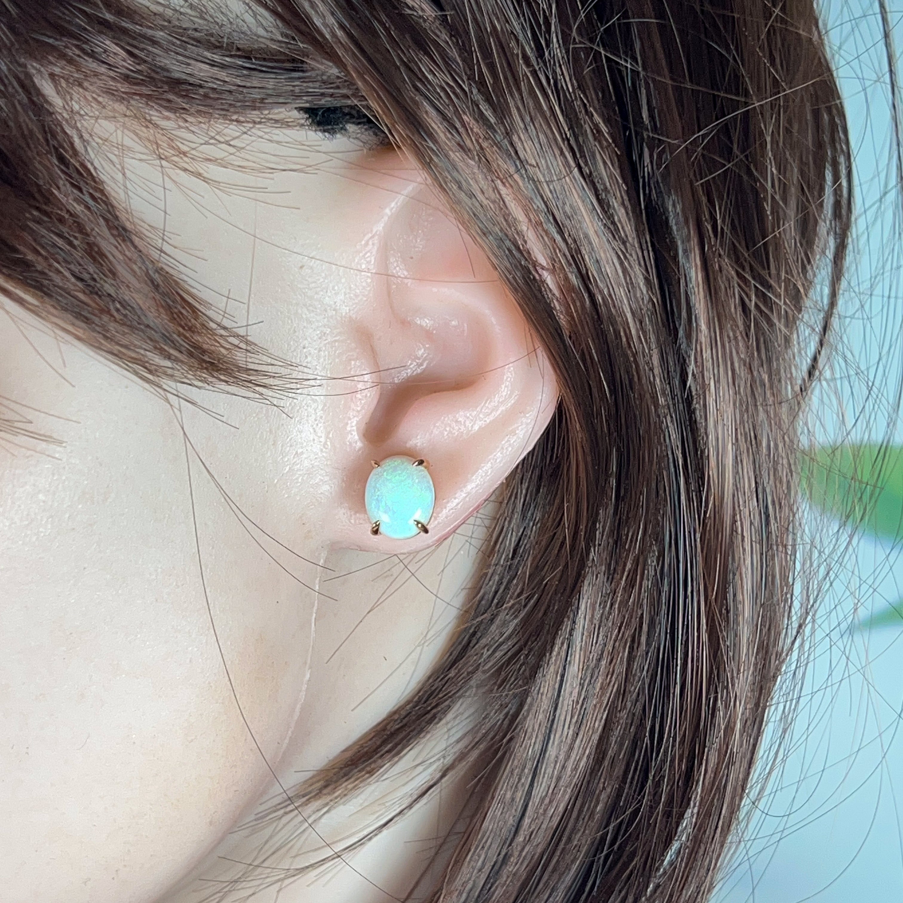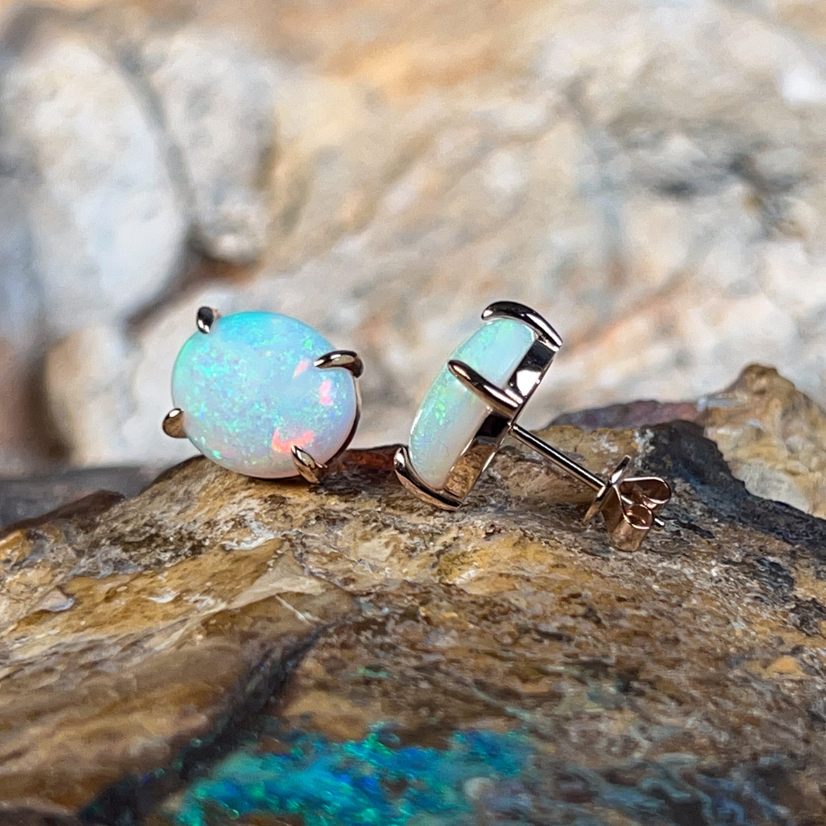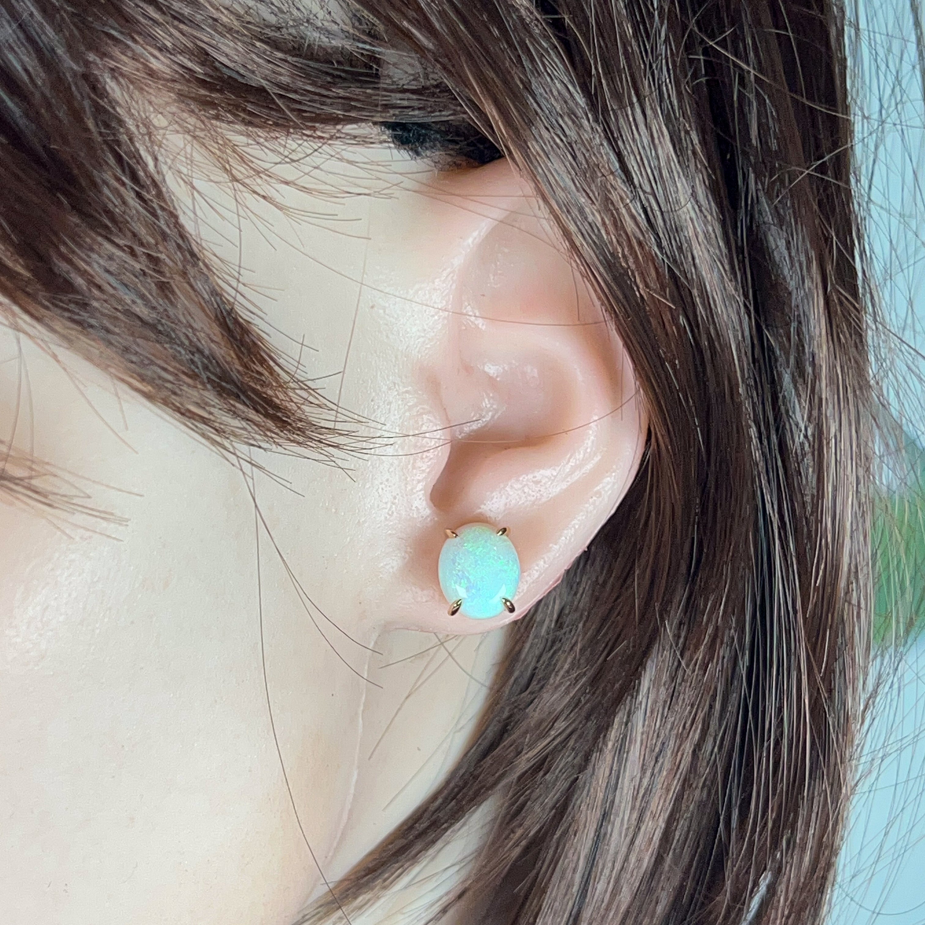 Delicate rose gold cradles luminous light opals in these charming four-claw studs. At 6.2 carats, these beauties showcase soft, dreamy flashes of colour that dance with every movement. Perfect for everyday elegance or that special occasion when you want understated sparkle. The warm glow of 18kt rose gold complements the opal's gentle play-of-colour beautifully, creating a timeless piece that feels both sophisticated and effortlessly chic.