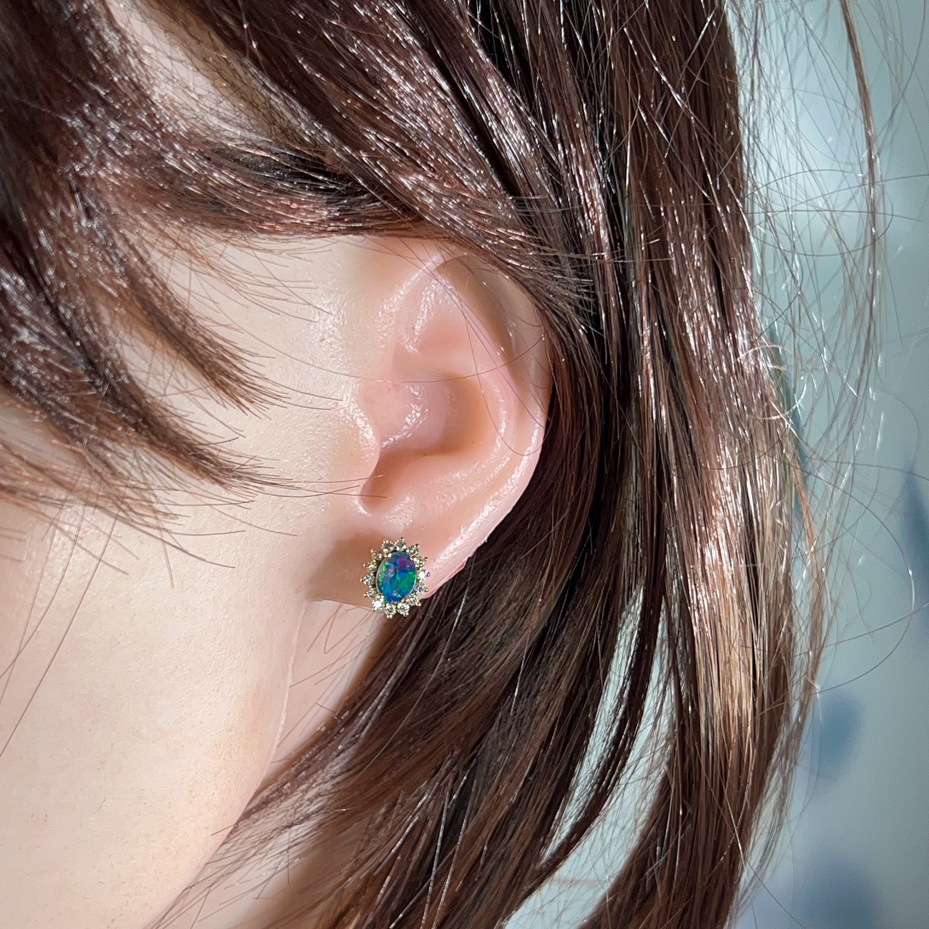18kt Yellow Gold Opal and diamond cluster earring studs
