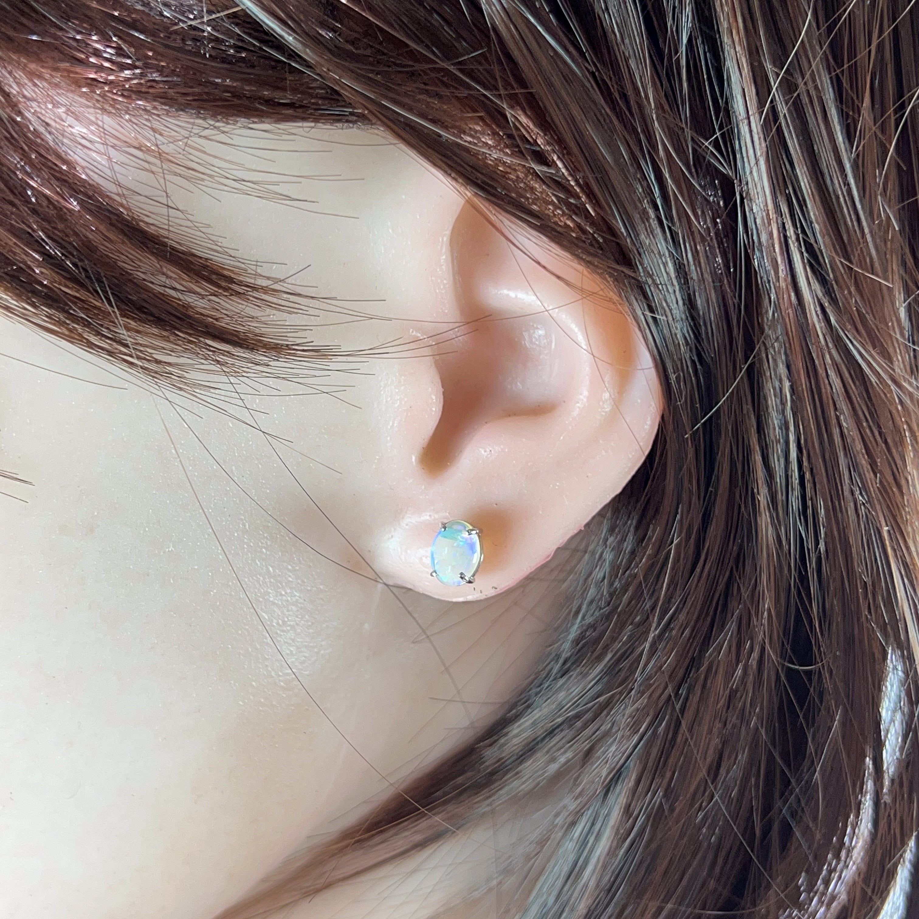 9kt White Gold 8x6mm Crystal Opal 1.3ct studs