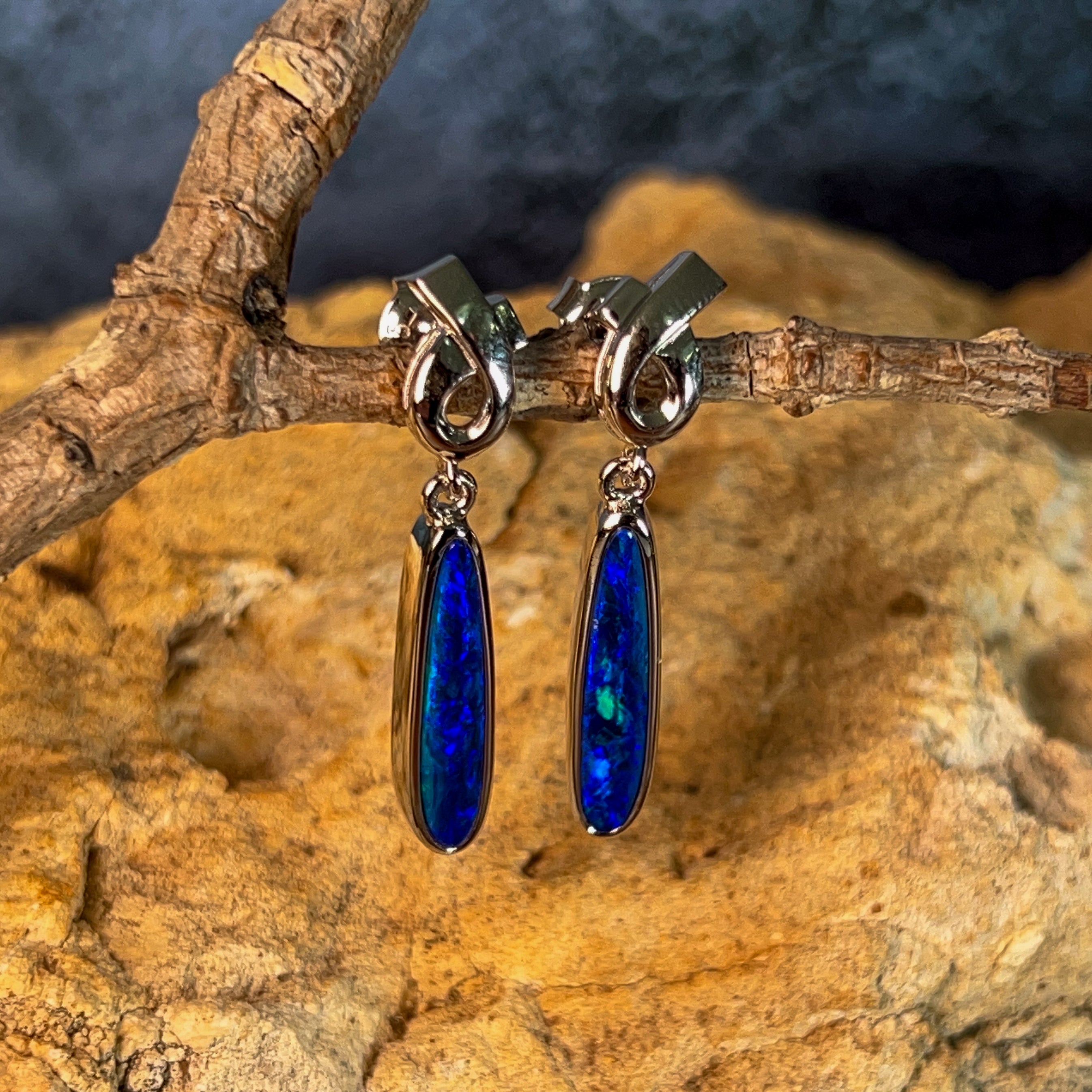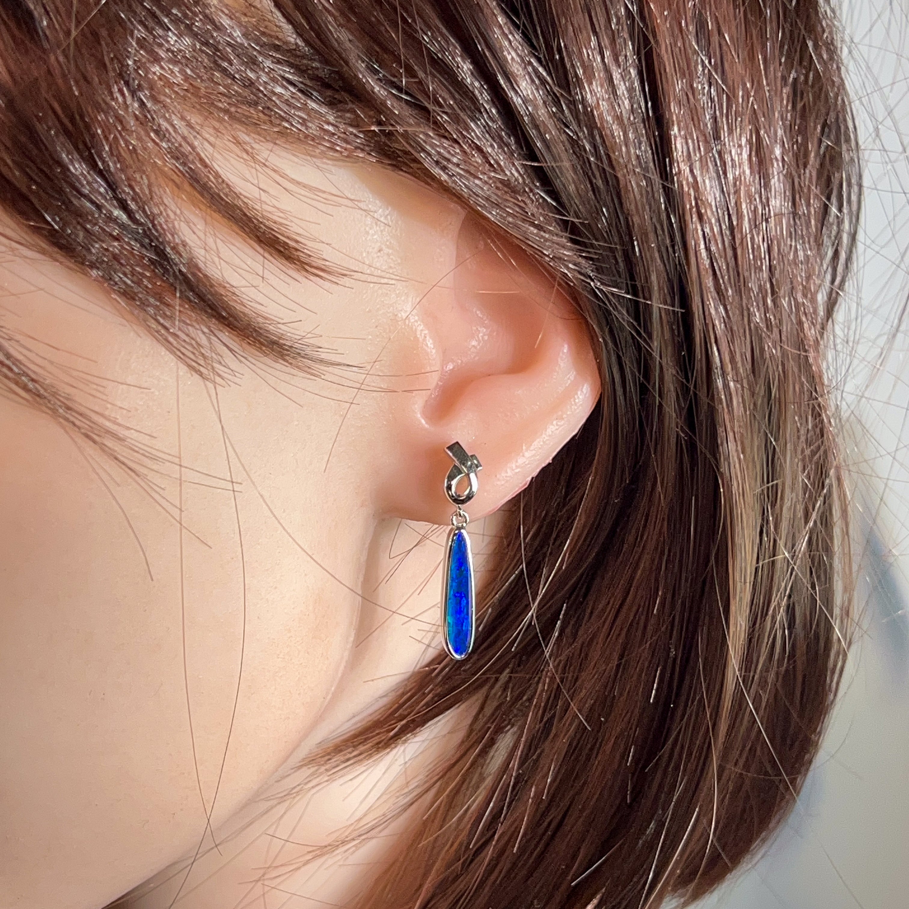 One pair of Sterling Silver dangling Opal earrings bezel set