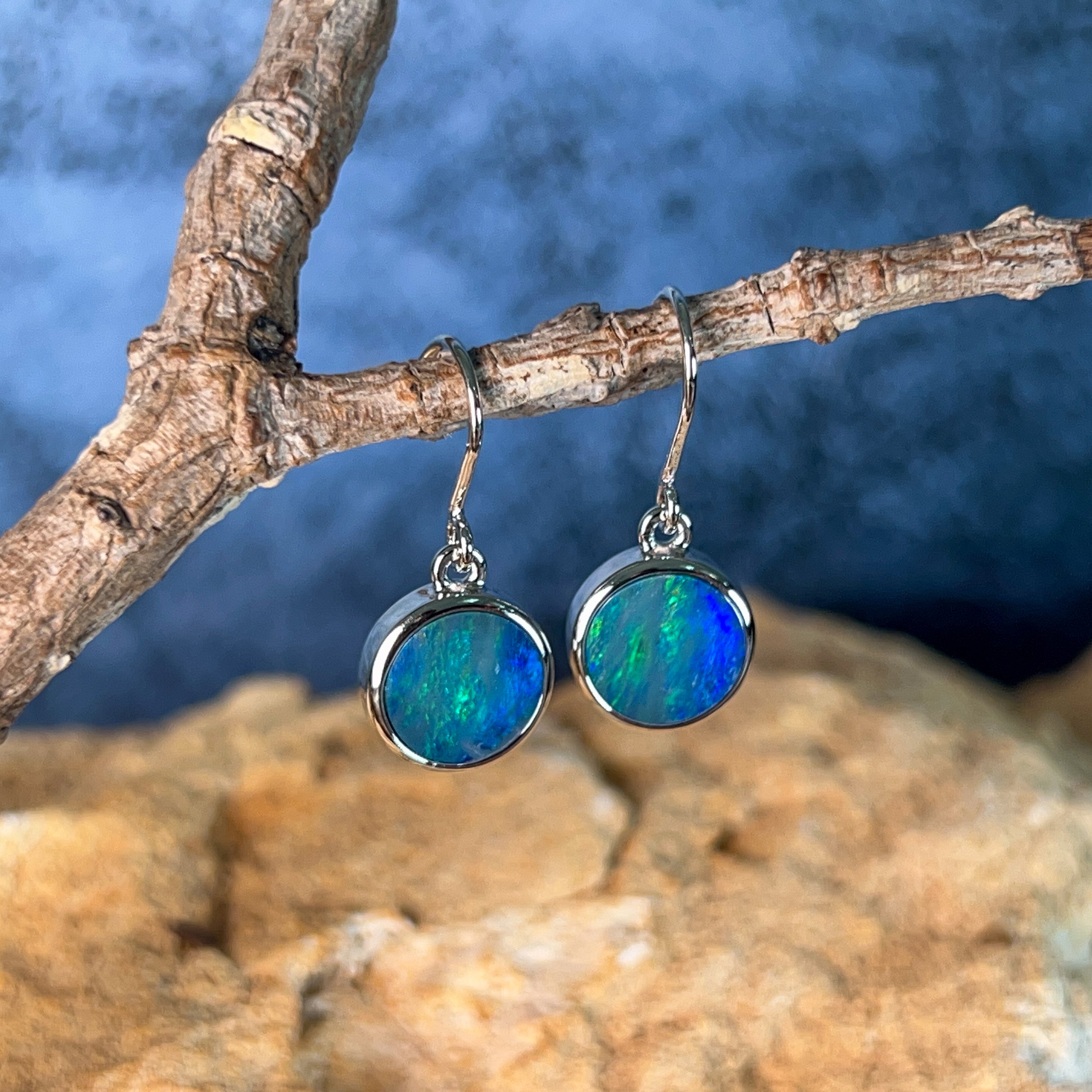 Sterling Silver dangling round Opal doublet 3ct earrings