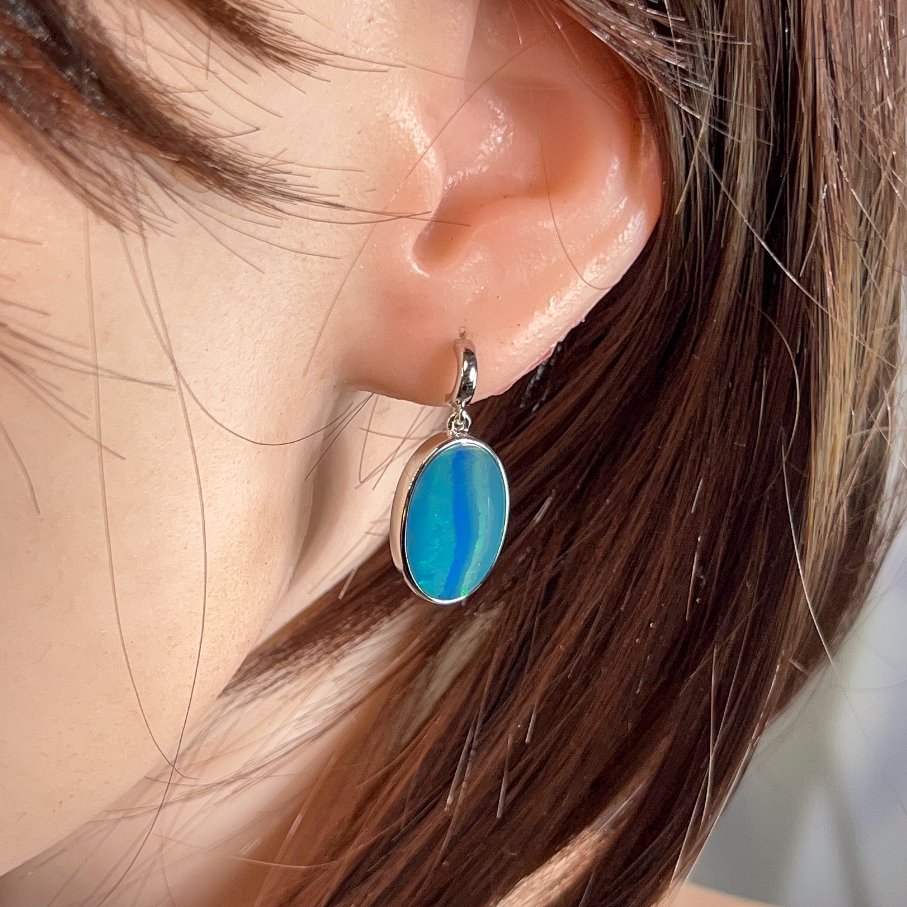 Sterling Silver large Oval Opal doublet earrings 10.4ct
