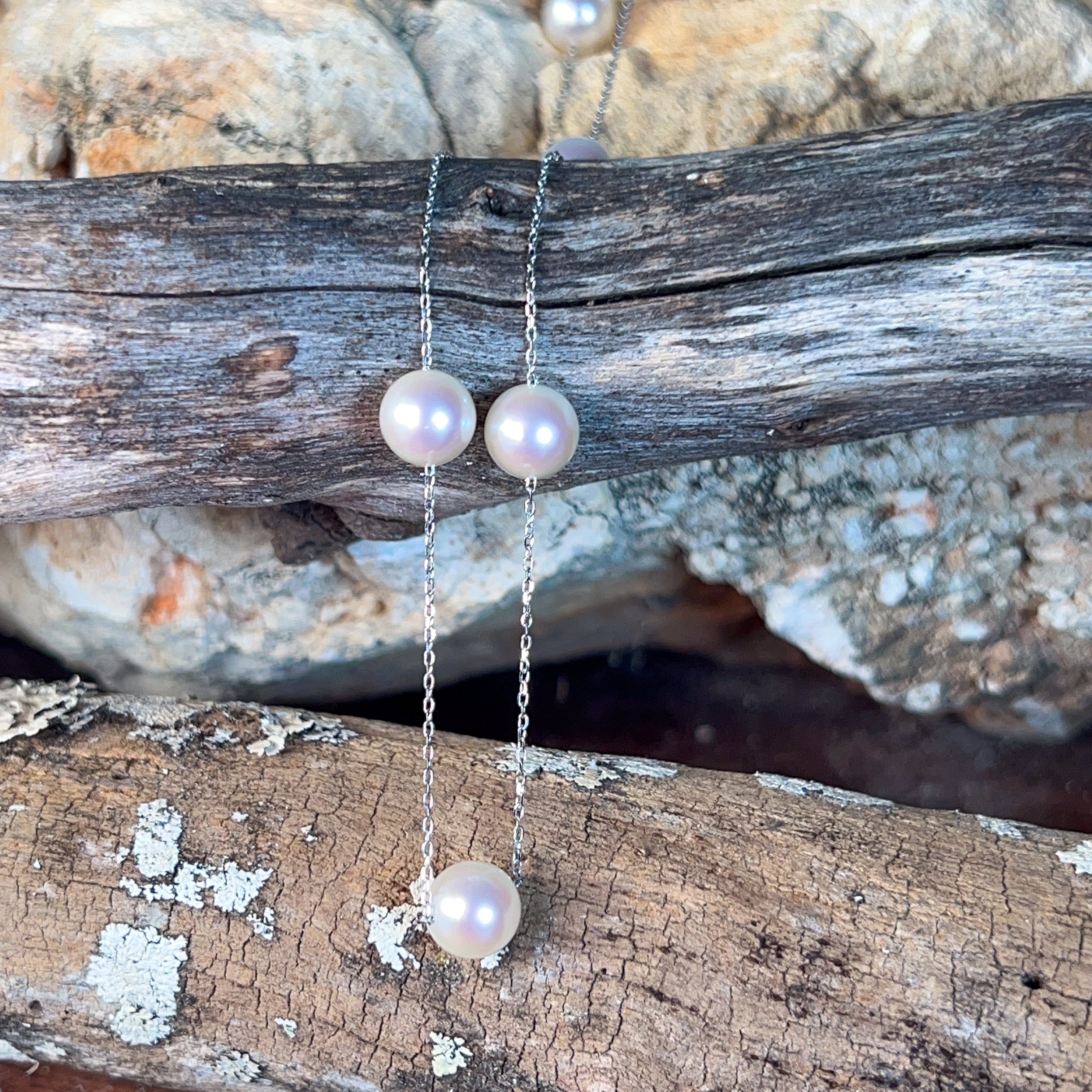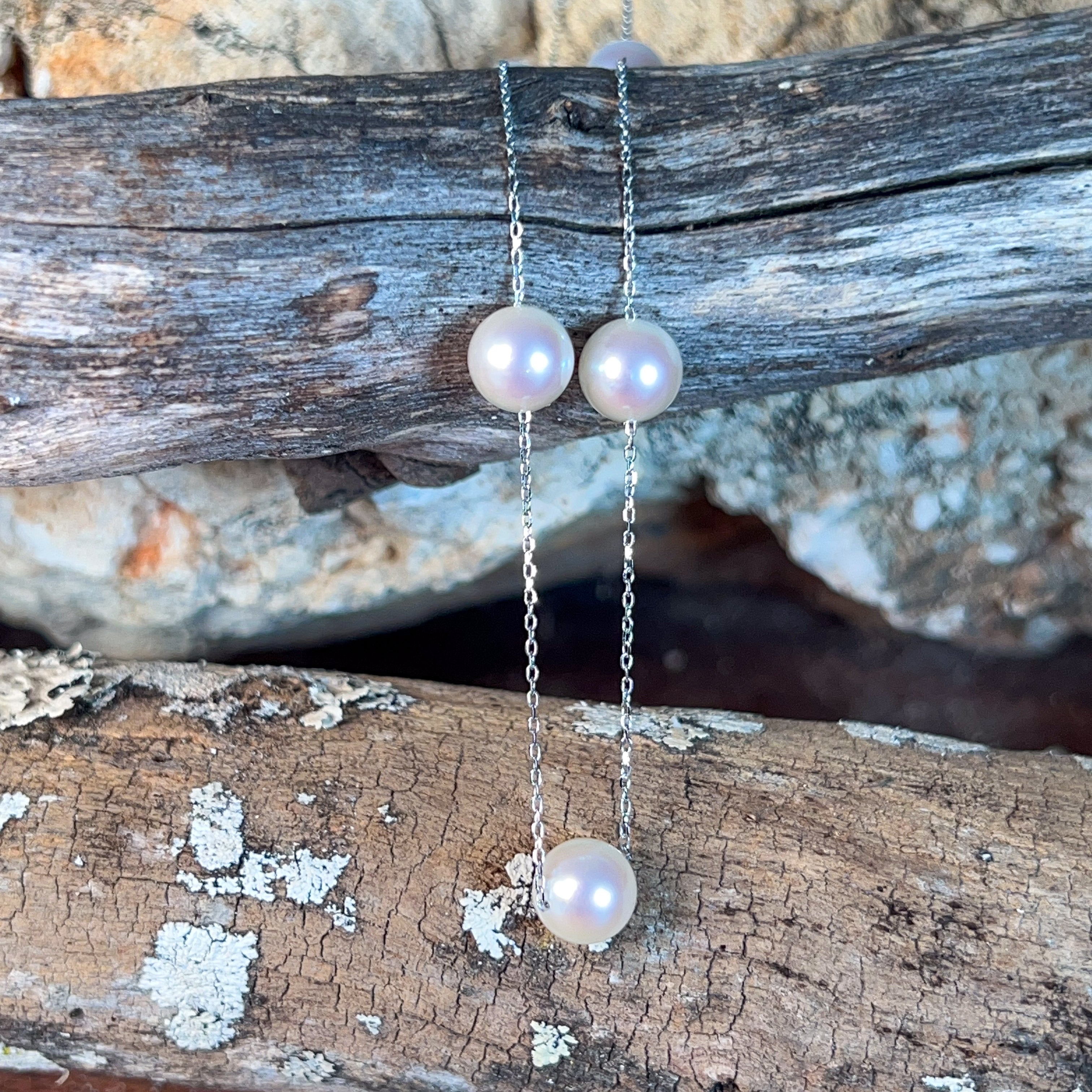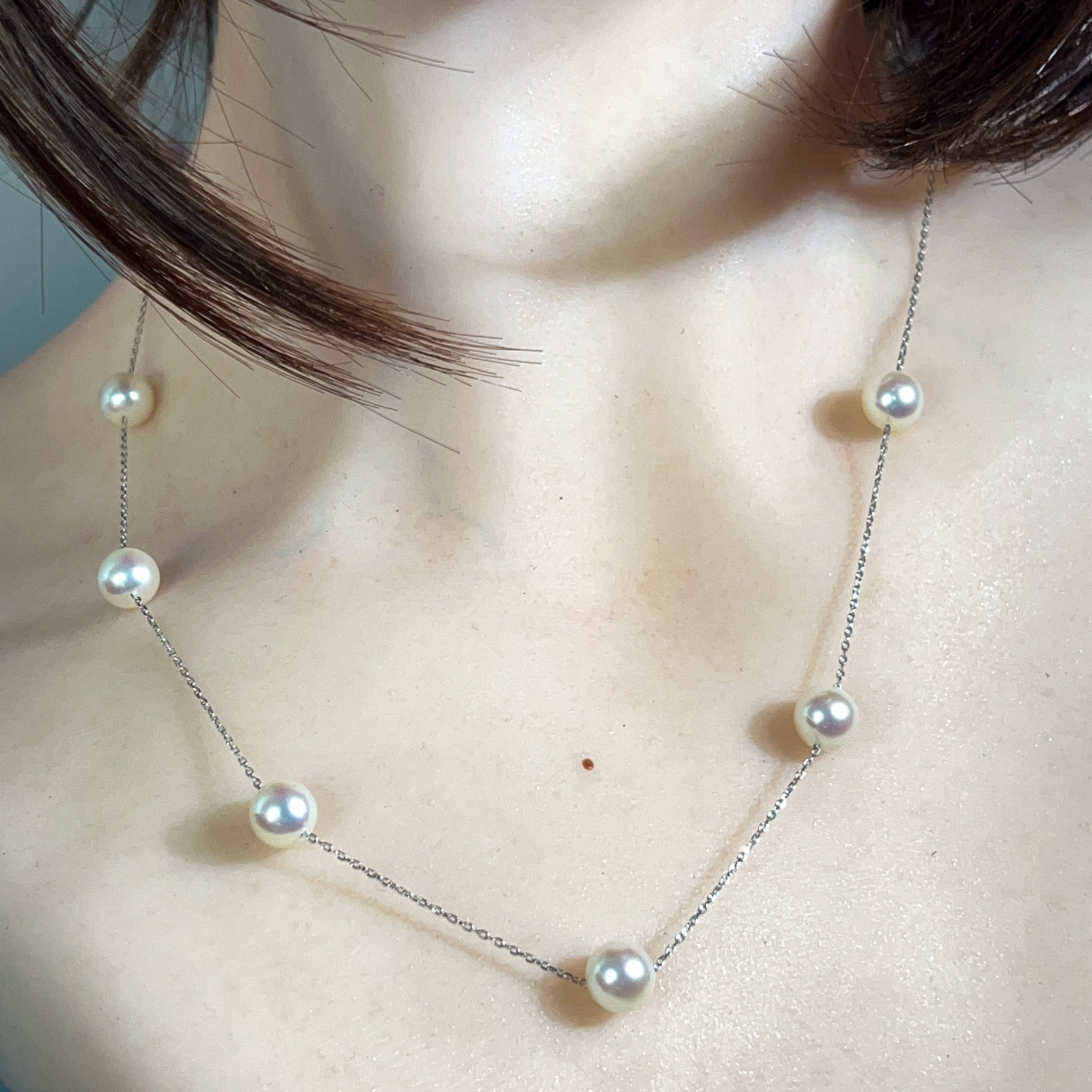 18kt White Gold spacer Akoya Pearl necklace 7-7.5mm