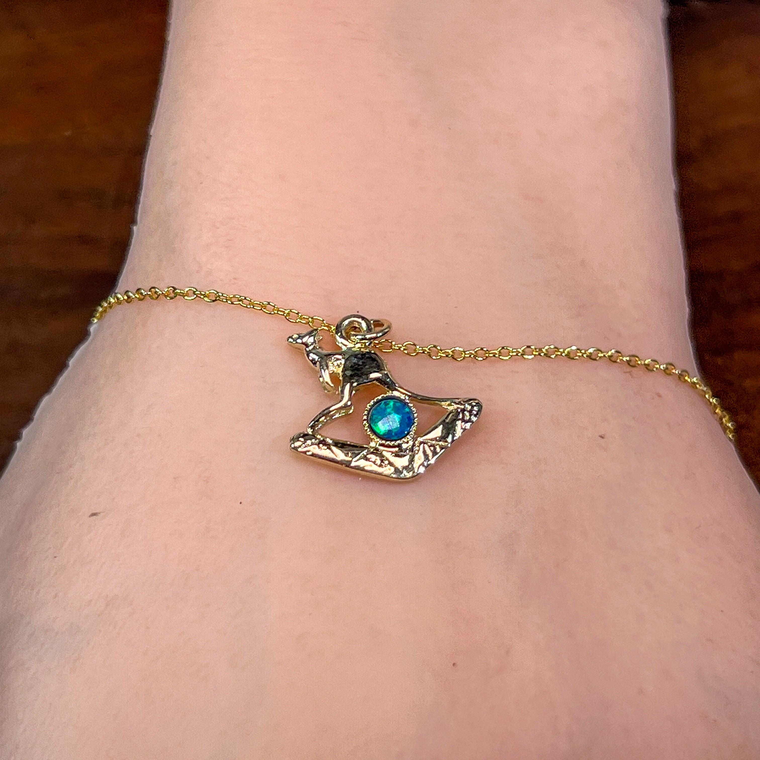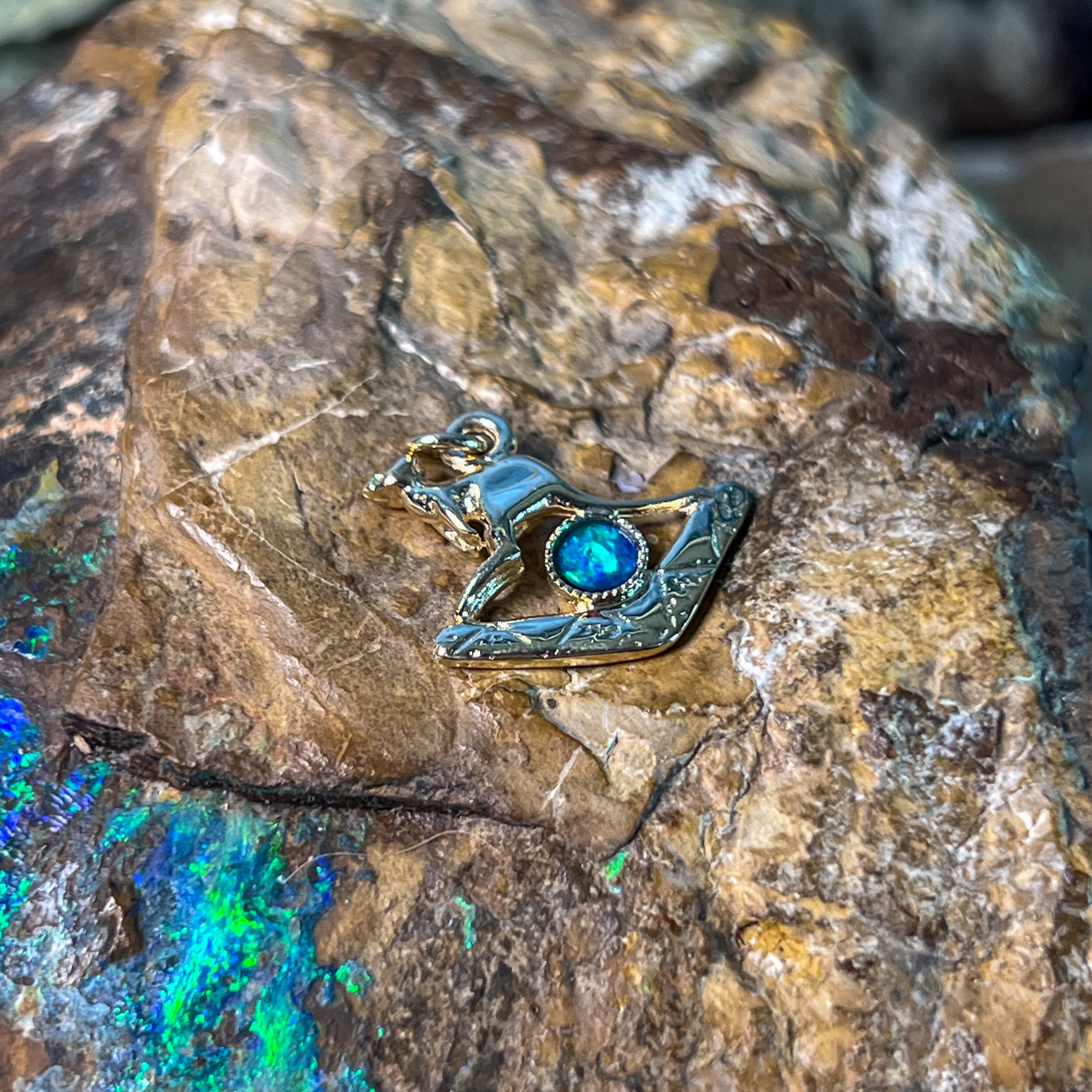 9kt Yellow Gold Kangaroo and Boomerang Opal charm
