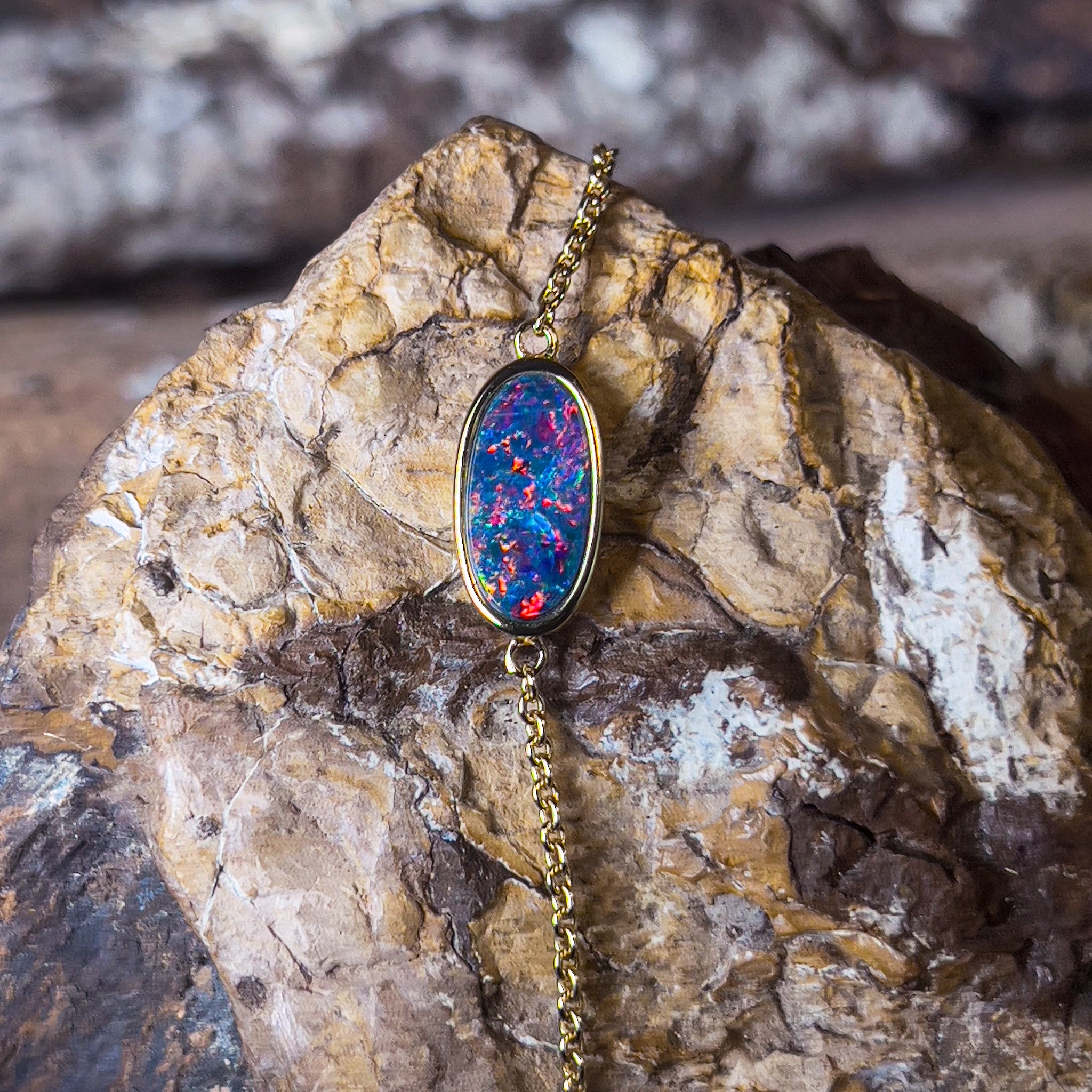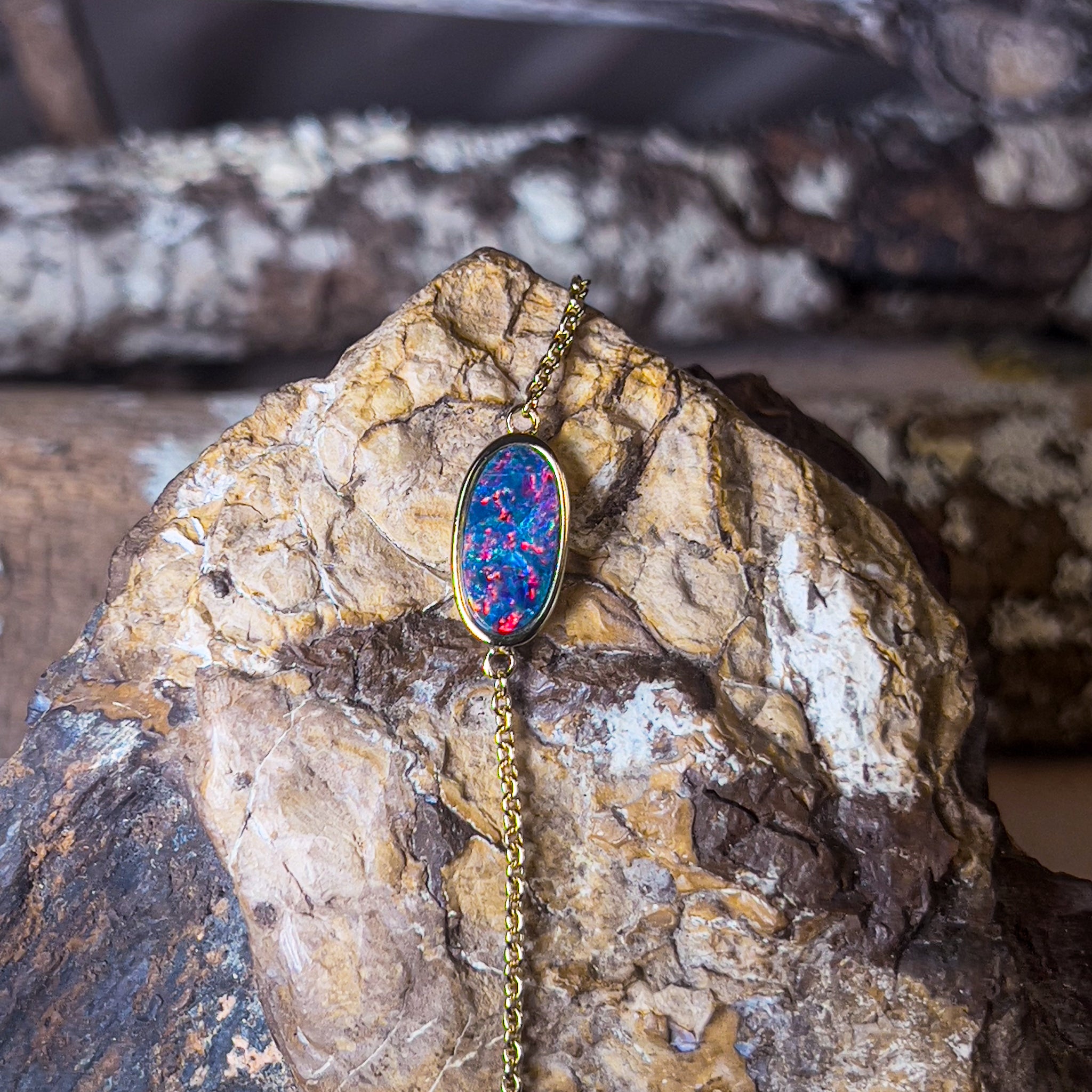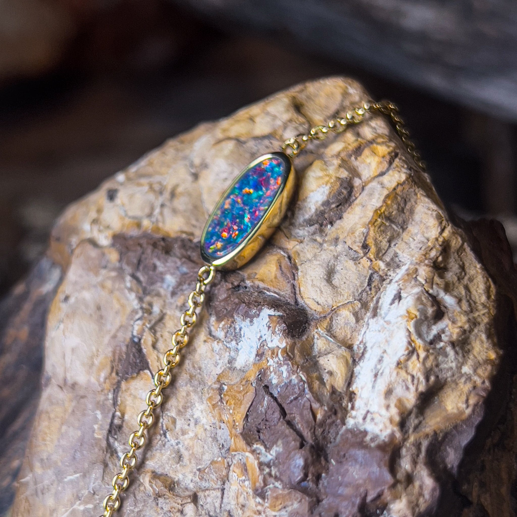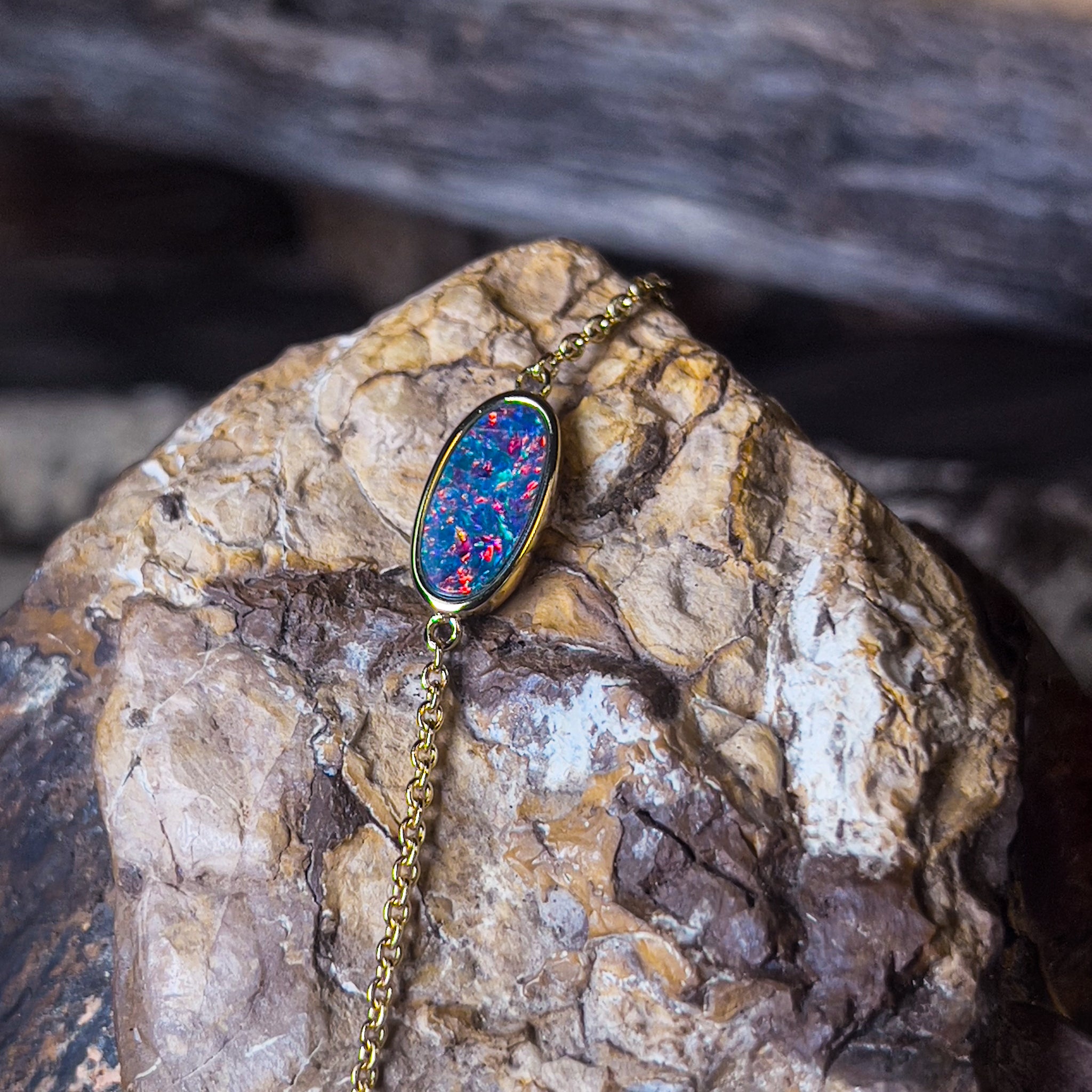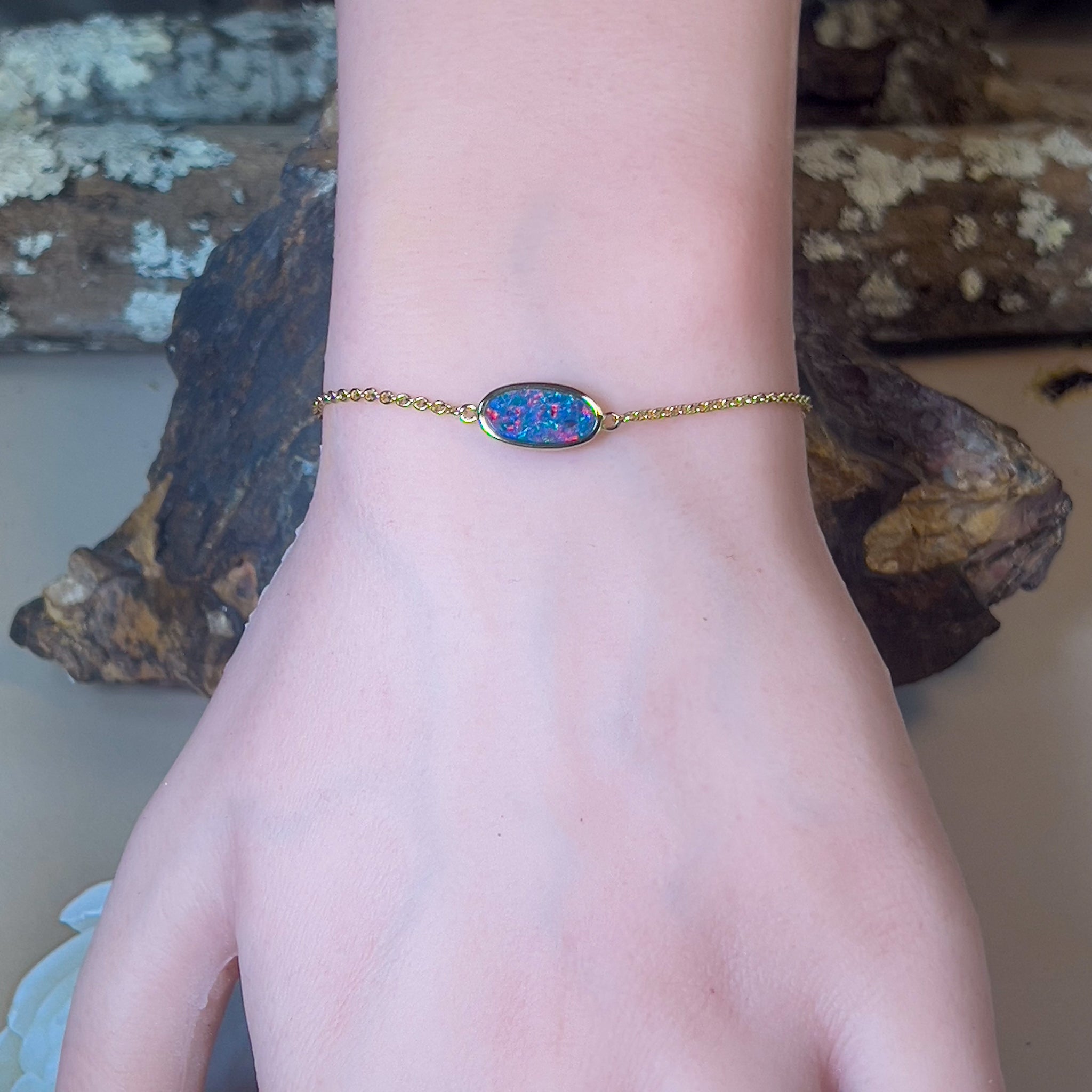Gold Plated Sterling Silver Opal doublet bracelet 15cm