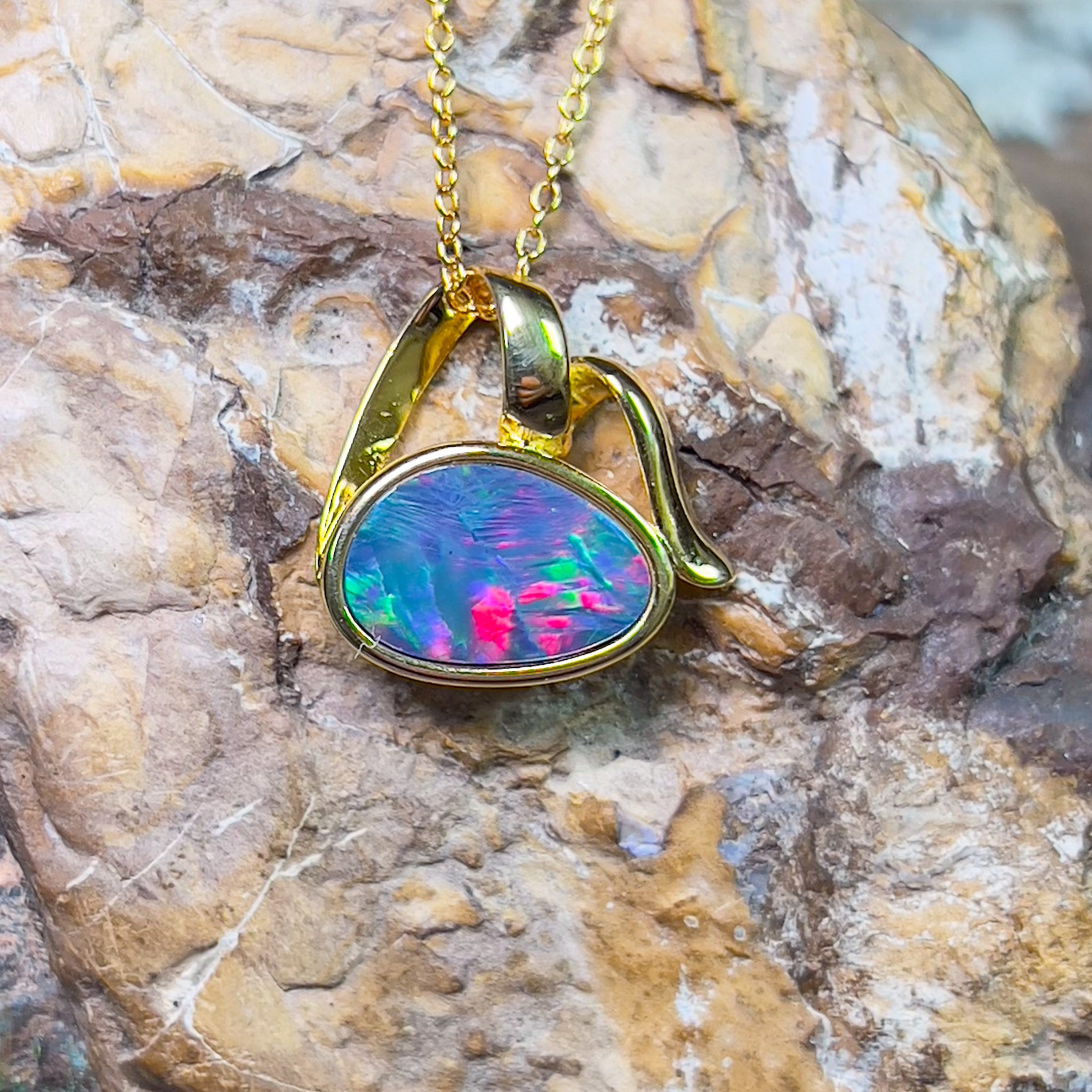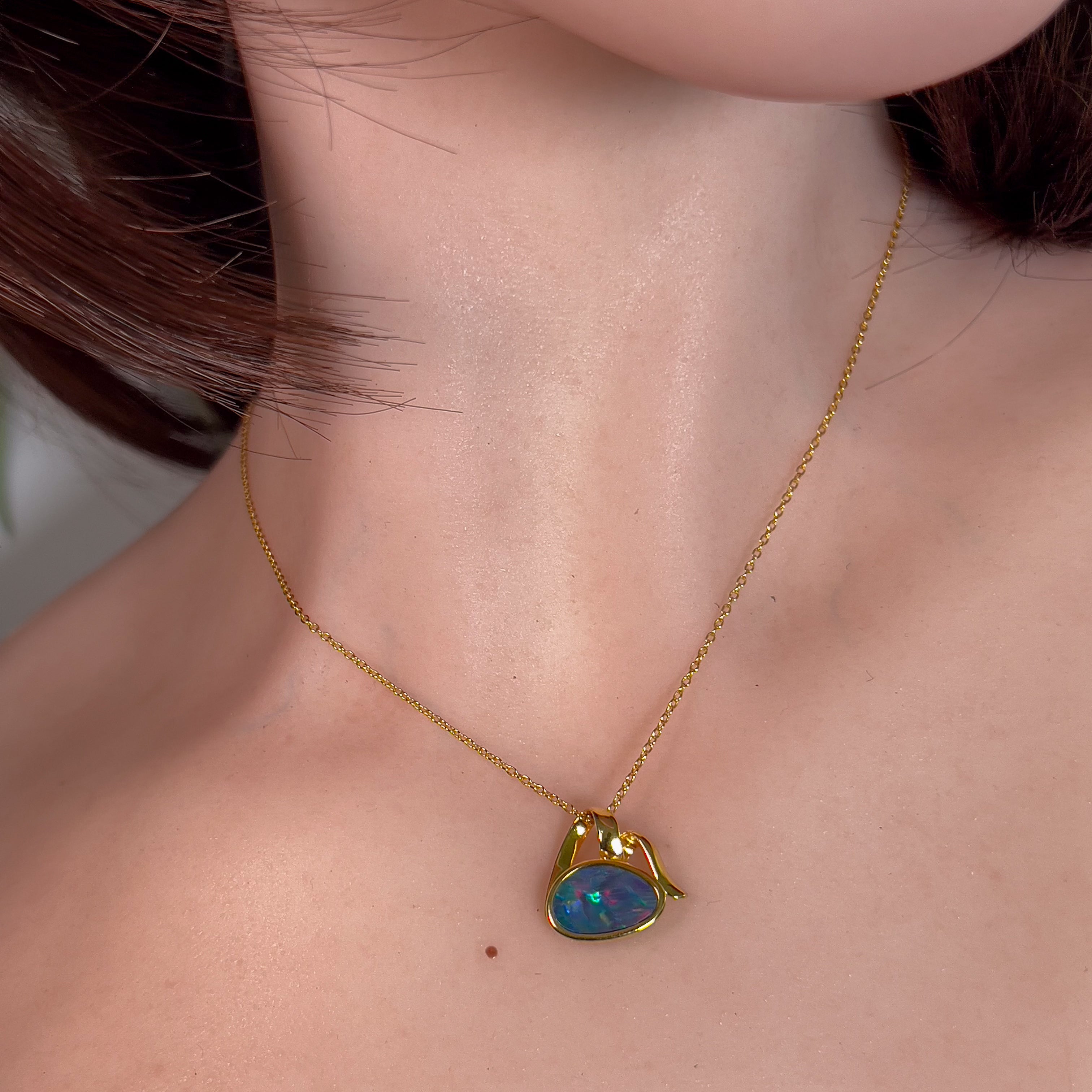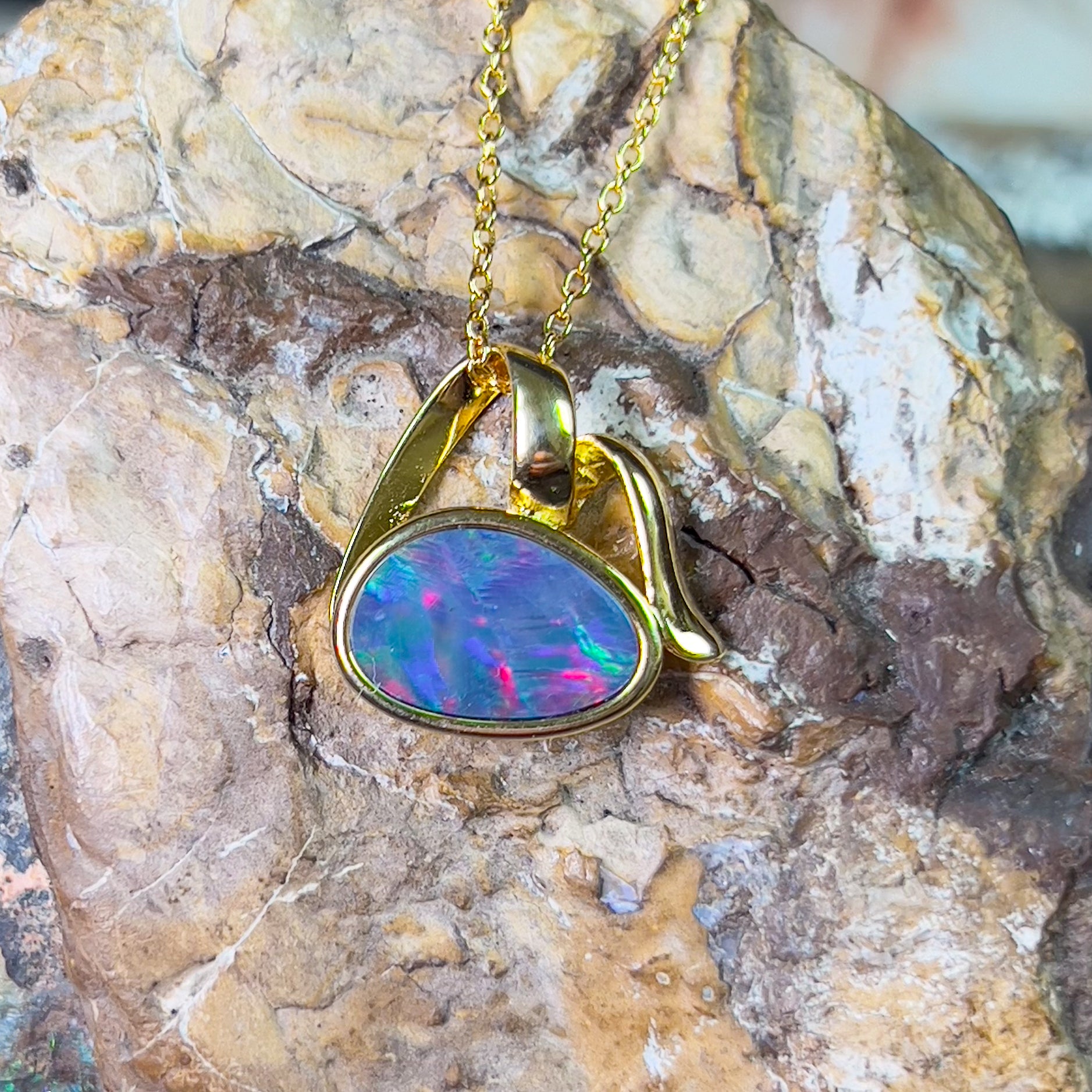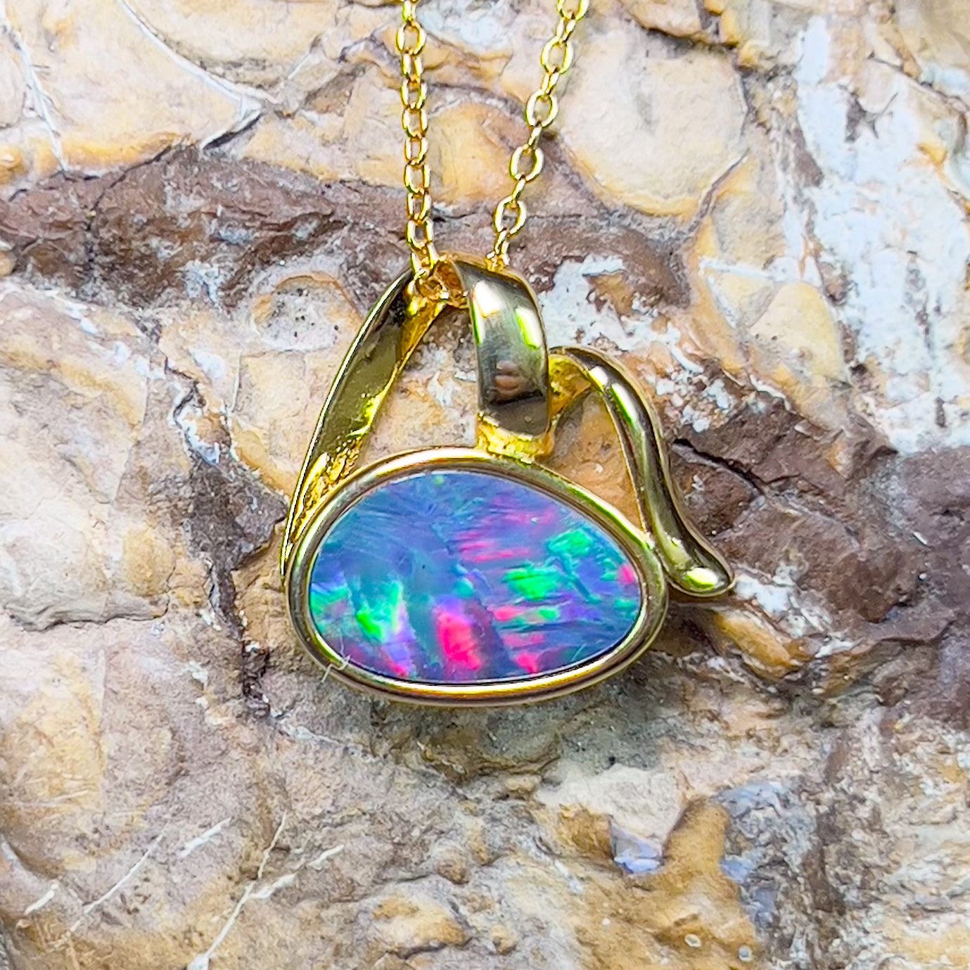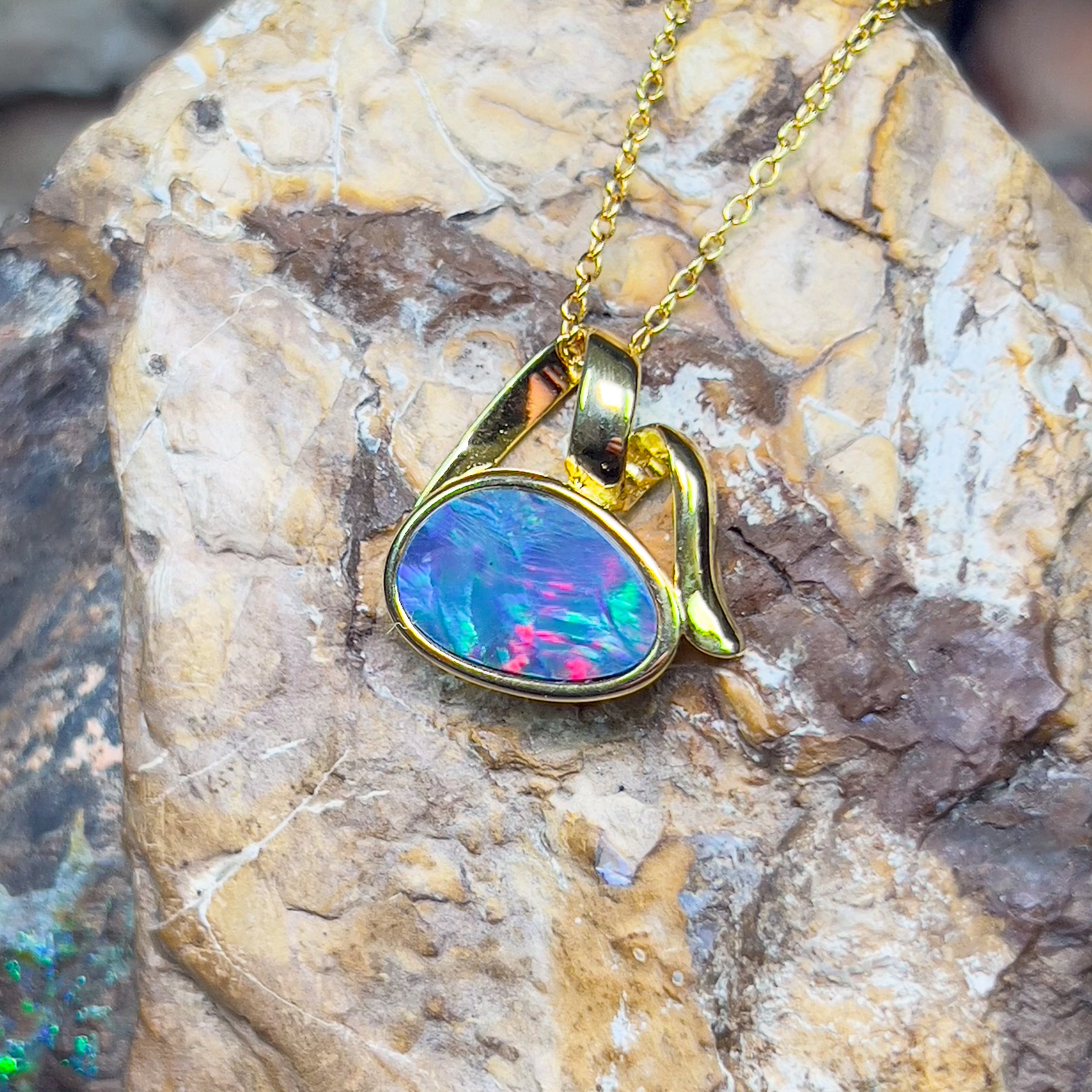 Transform any outfit into a dazzling ensemble with this Gold Plated Sterling Silver Opal doublet pendant. Its horizontal set design exudes modern elegance and versatility, perfect for any occasion. Add a touch of luxury to your style with this beautiful pendant!