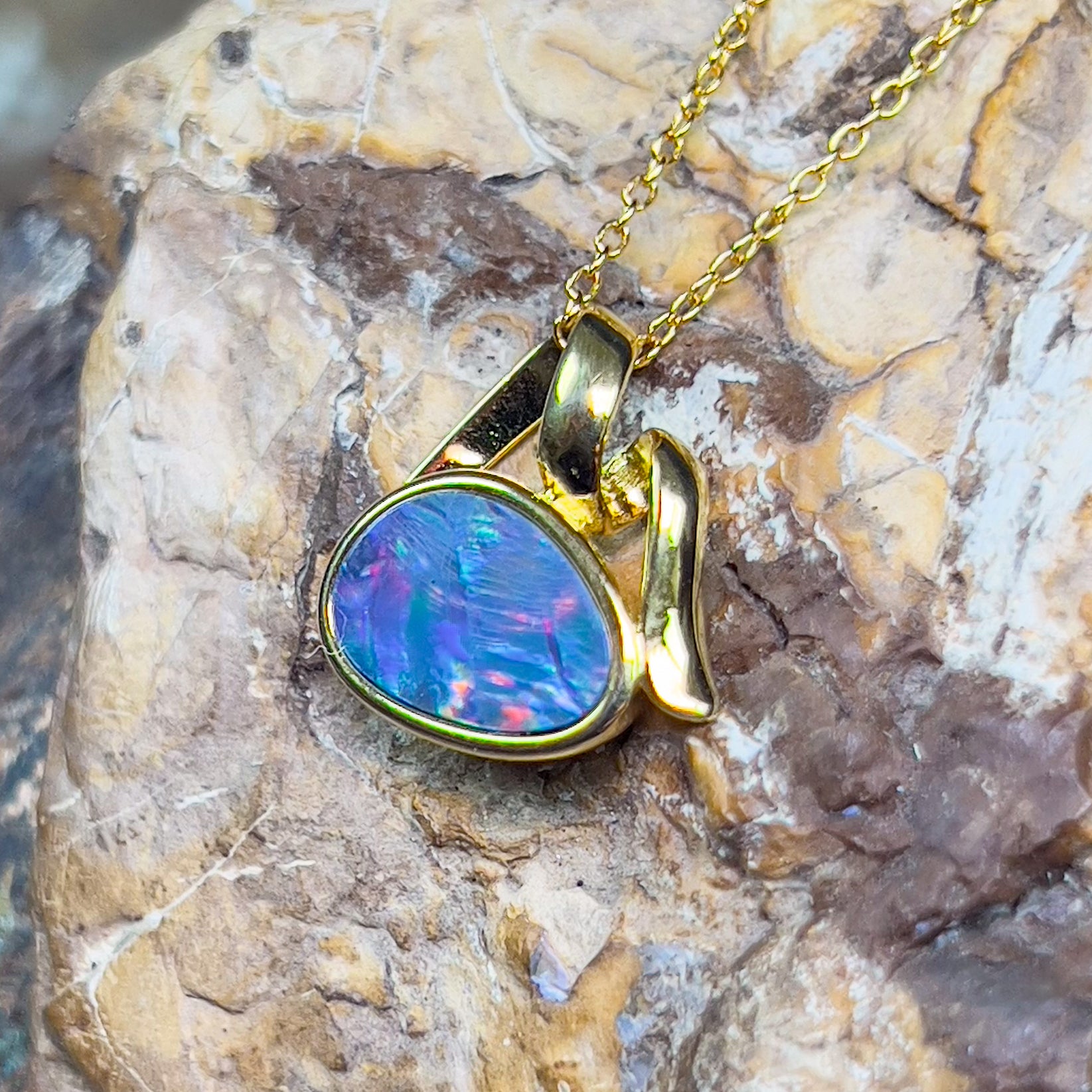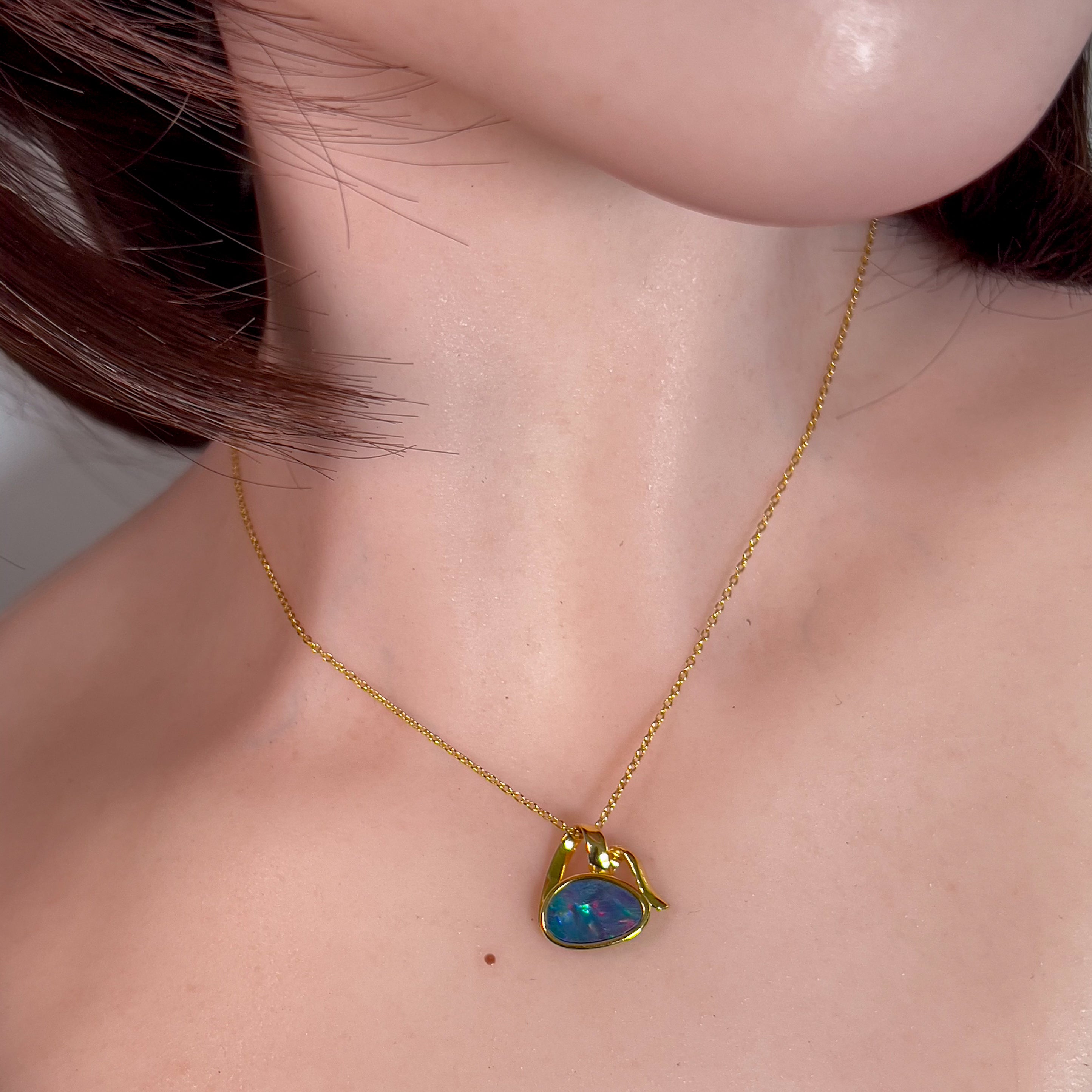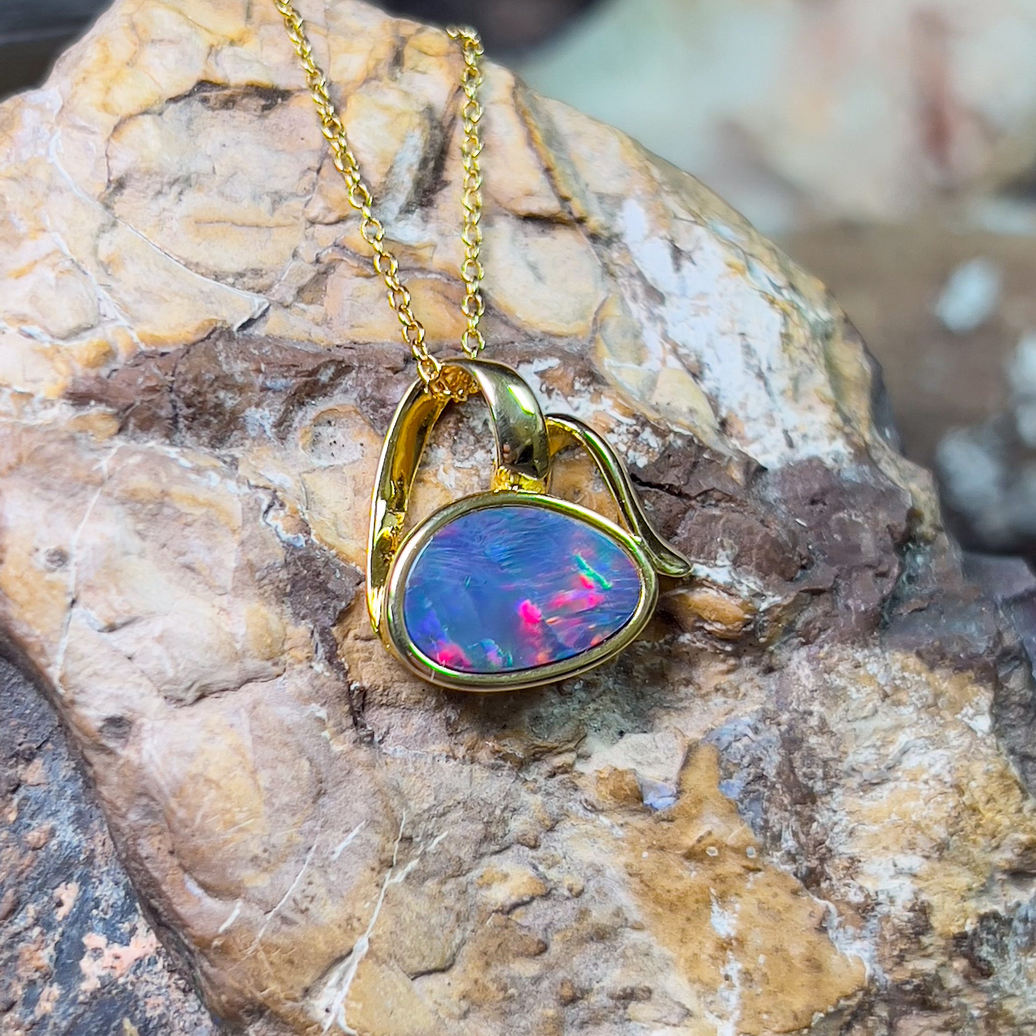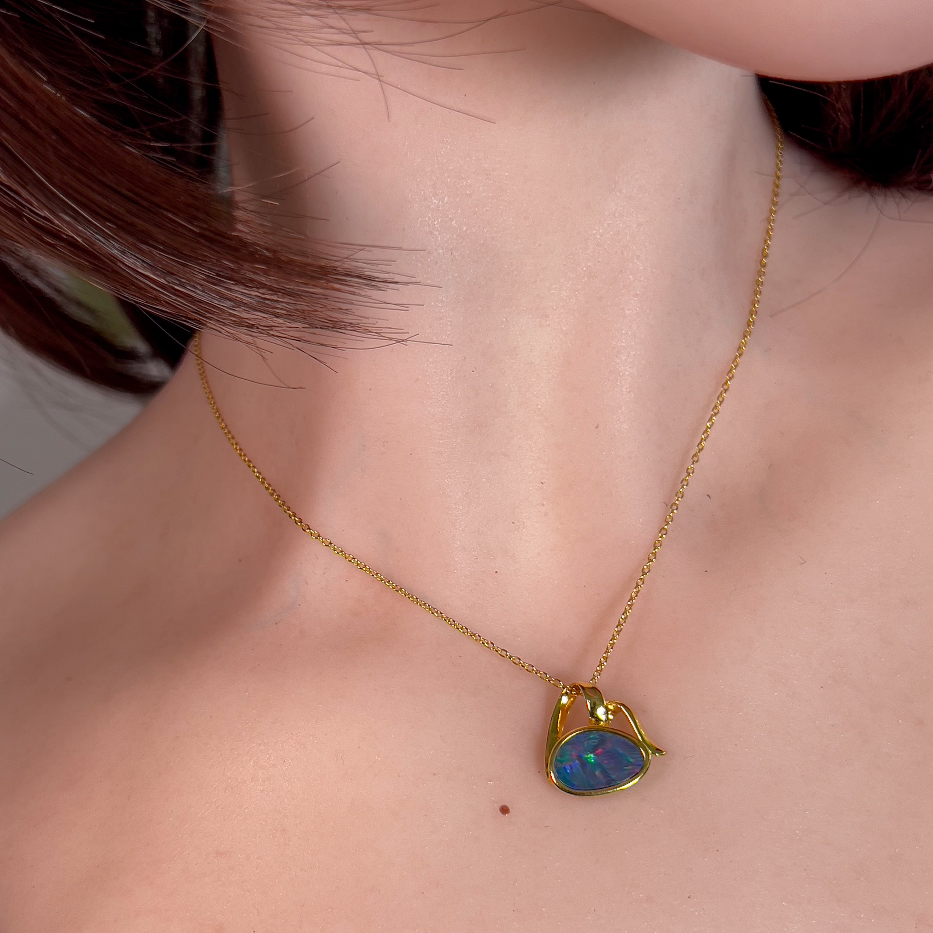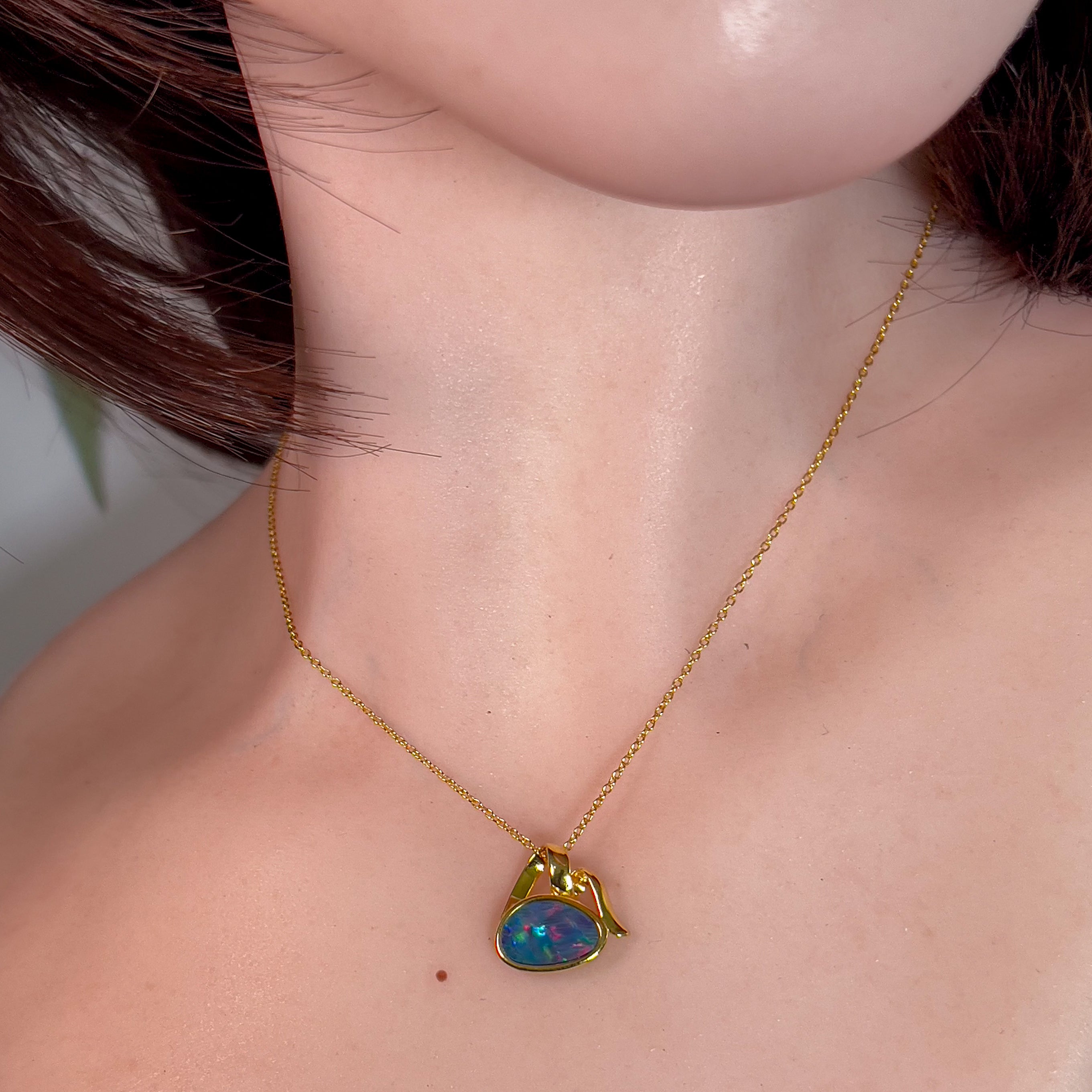Transform any outfit into a dazzling ensemble with this Gold Plated Sterling Silver Opal doublet pendant. Its horizontal set design exudes modern elegance and versatility, perfect for any occasion. Add a touch of luxury to your style with this beautiful pendant!