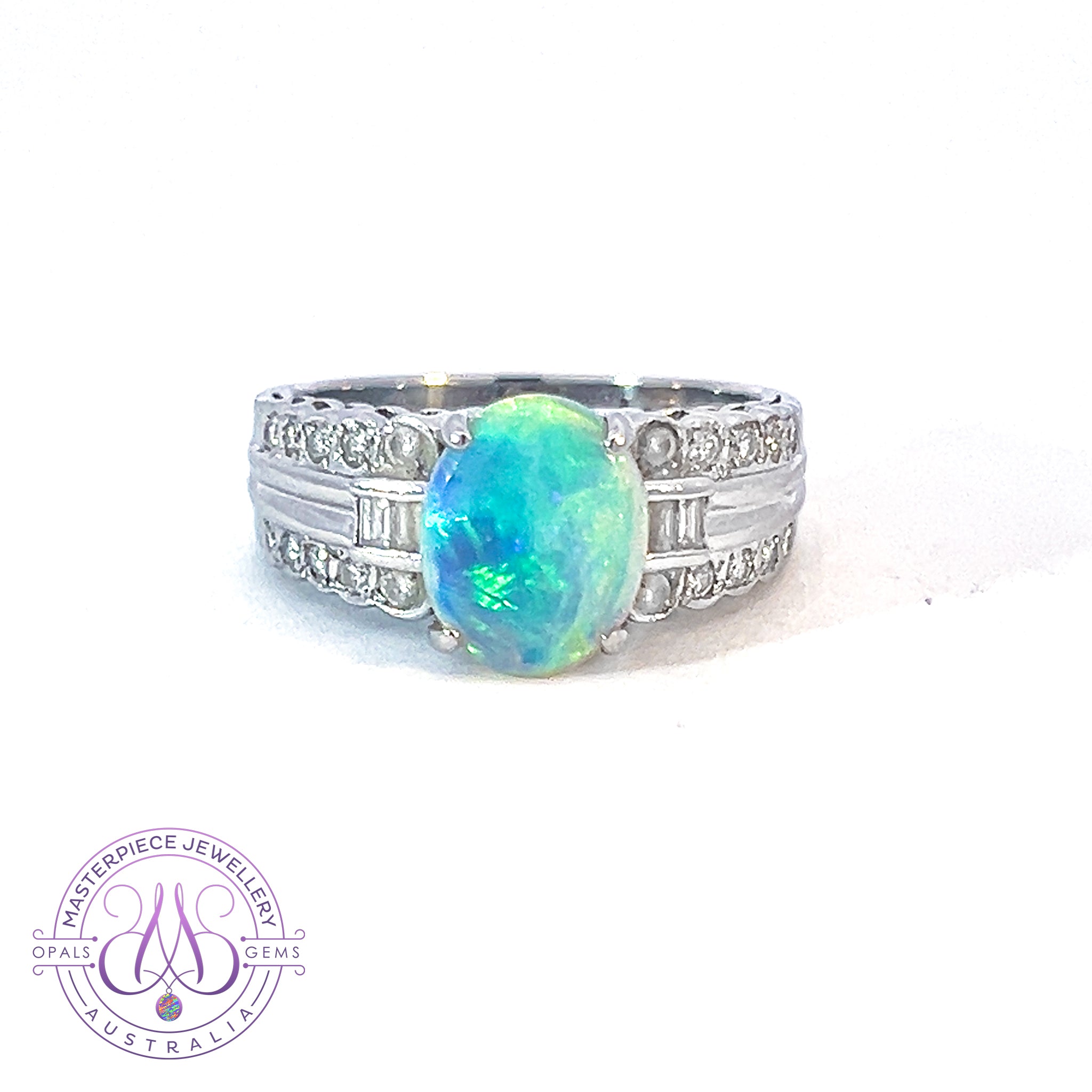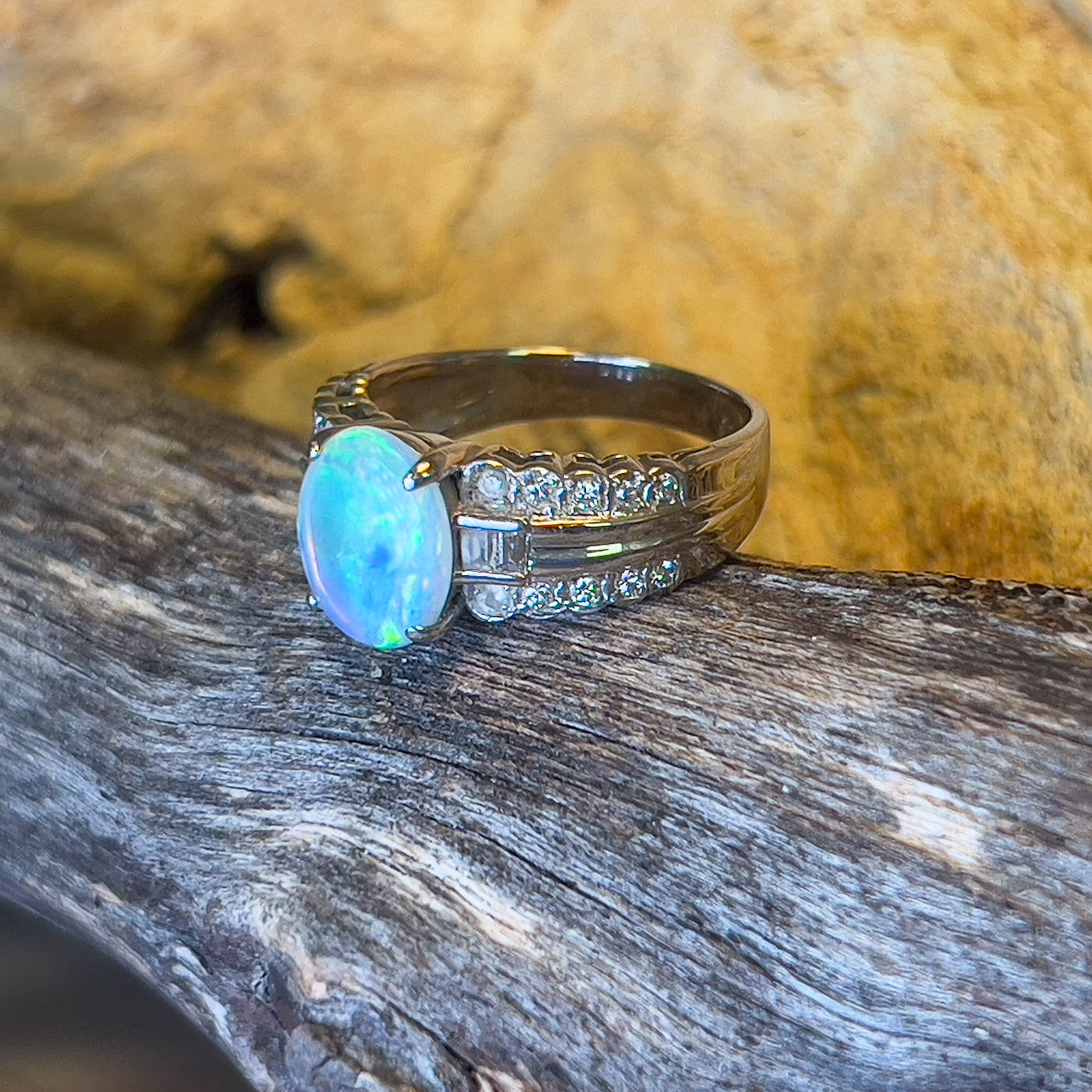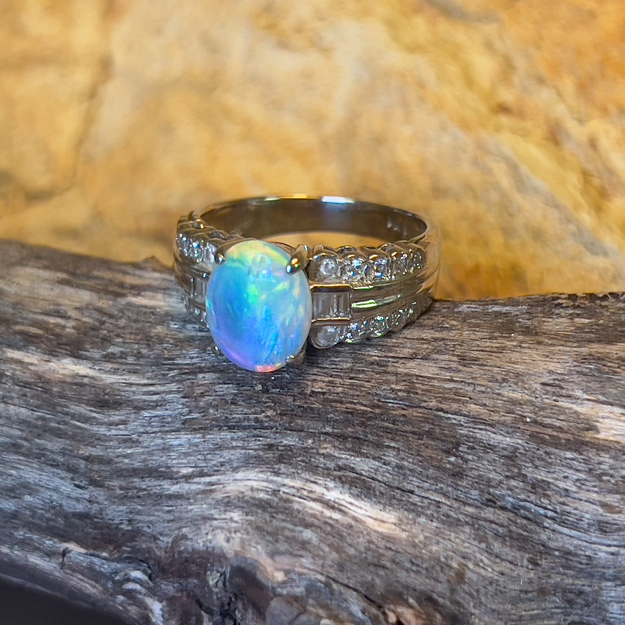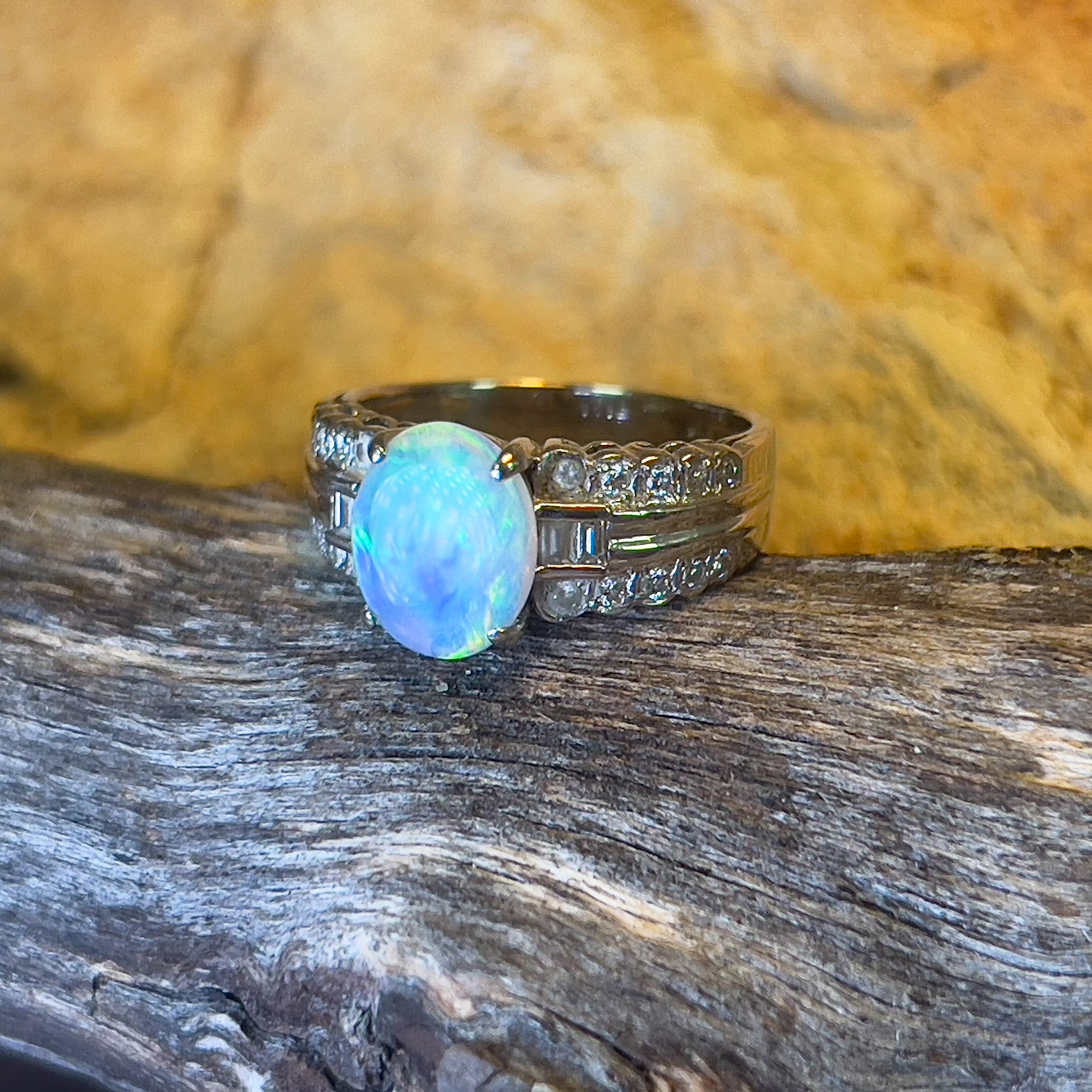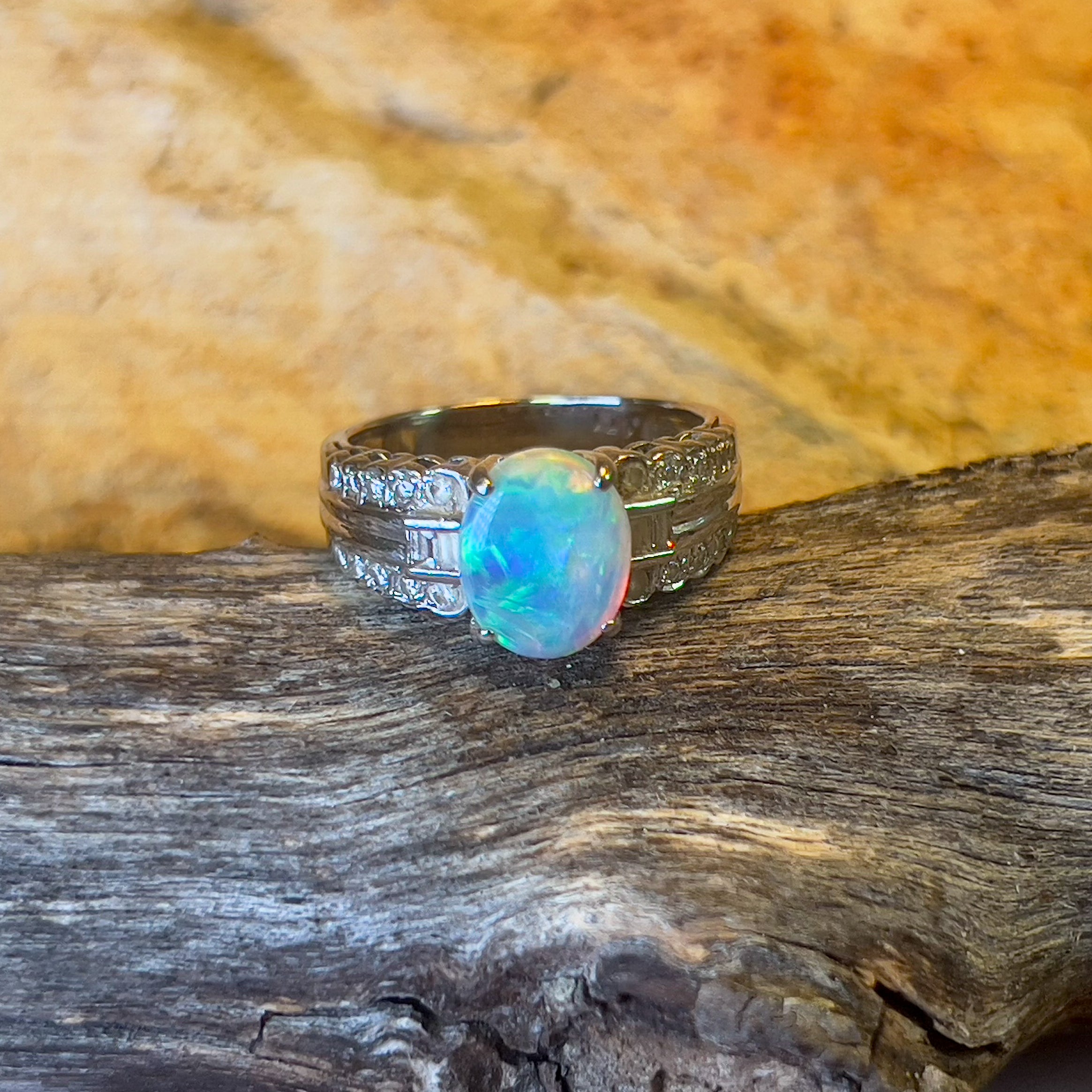 Pt Crystal Opal 1.4ct and 0.3ct Diamond ring