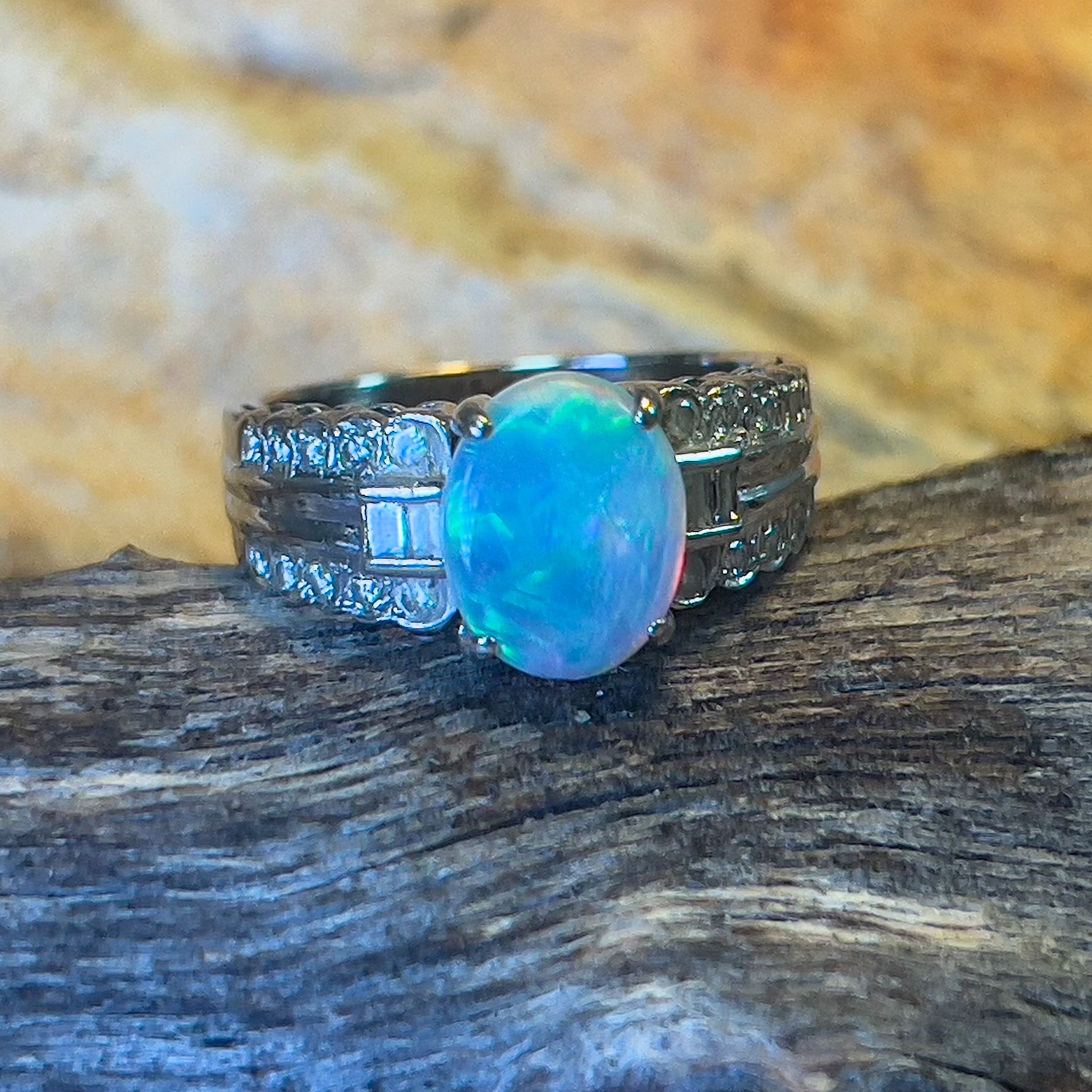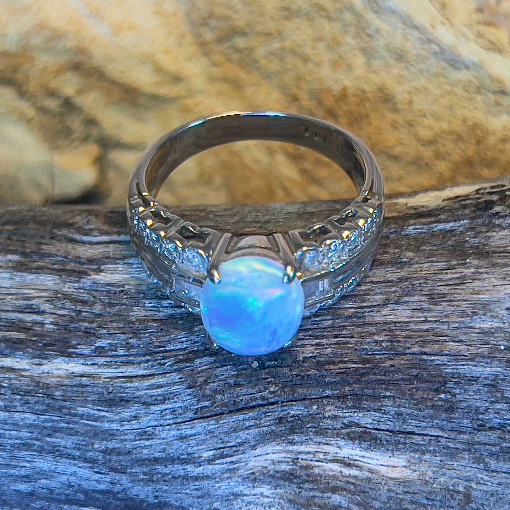 This stunning Pt Crystal Opal ring features a 1.4ct opal, surrounded by sparkling 0.3ct diamonds. Perfect as an engagement ring or anniversary gift, this ring will add a touch of elegance and sophistication to any occasion. Make a statement and show your loved one how much they mean to you with this breathtaking ring.