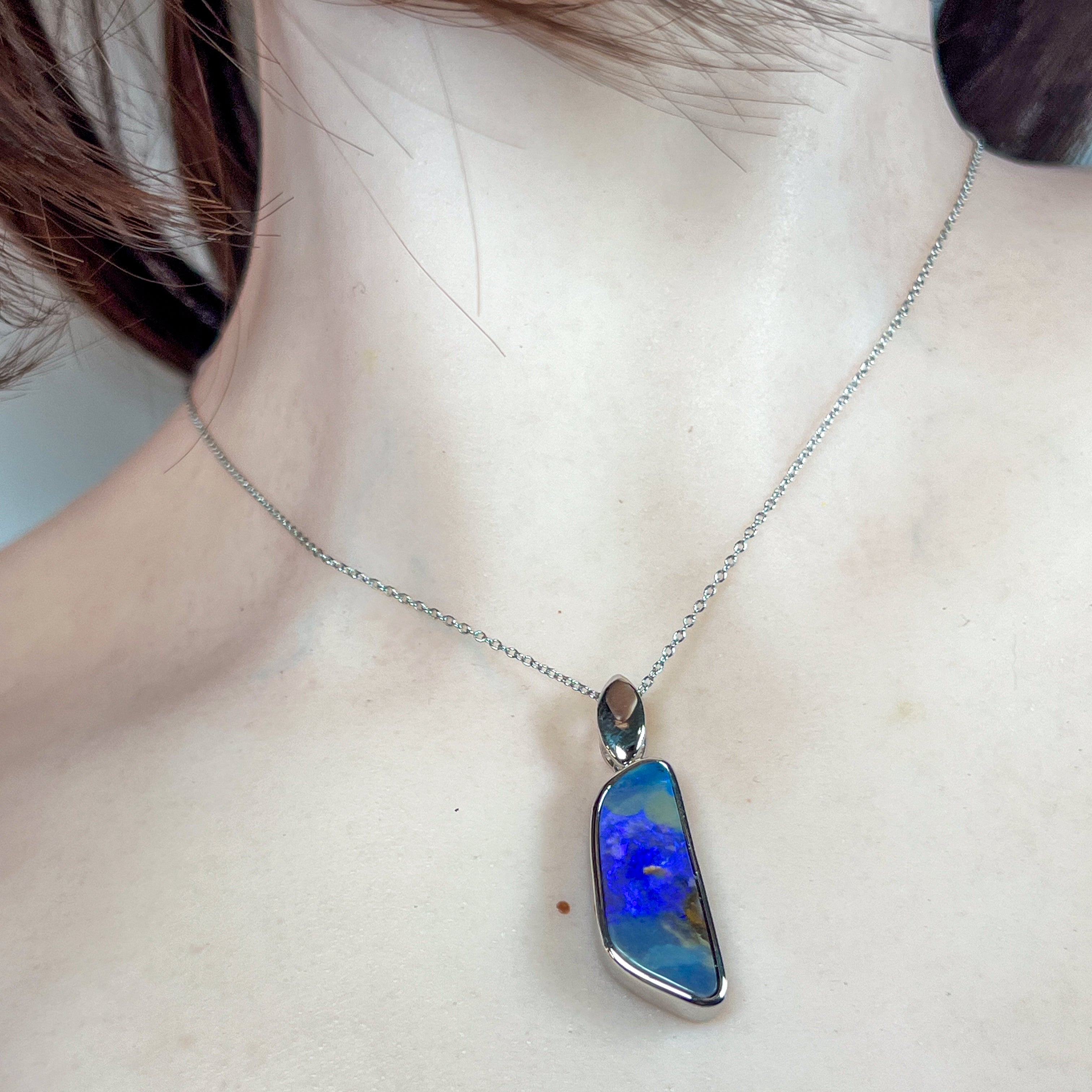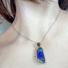 Discover the raw elegance of this Sterling Silver Boulder Opal pendant, showcasing a stunning 12.2ct stone with deep, mesmerising colours that shift and dance in natural light. Boulder opals are nature's masterpiece—each piece entirely unique with rich veins of colour running through ironstone, creating dramatic contrasts that captivate from every angle. Set in lustrous sterling silver, this pendant celebrates the stone's natural beauty while offering timeless sophistication. Perfect for those who appreciate genuine gemstones with character and depth, this is a statement piece that transforms any outfit into something extraordinary.