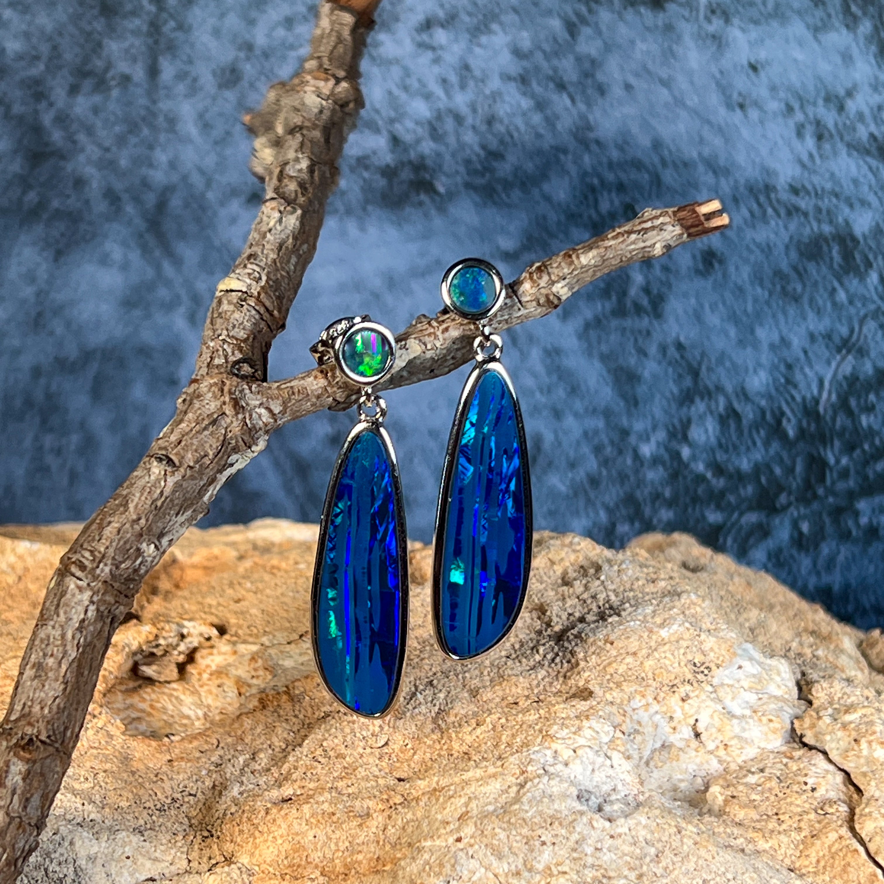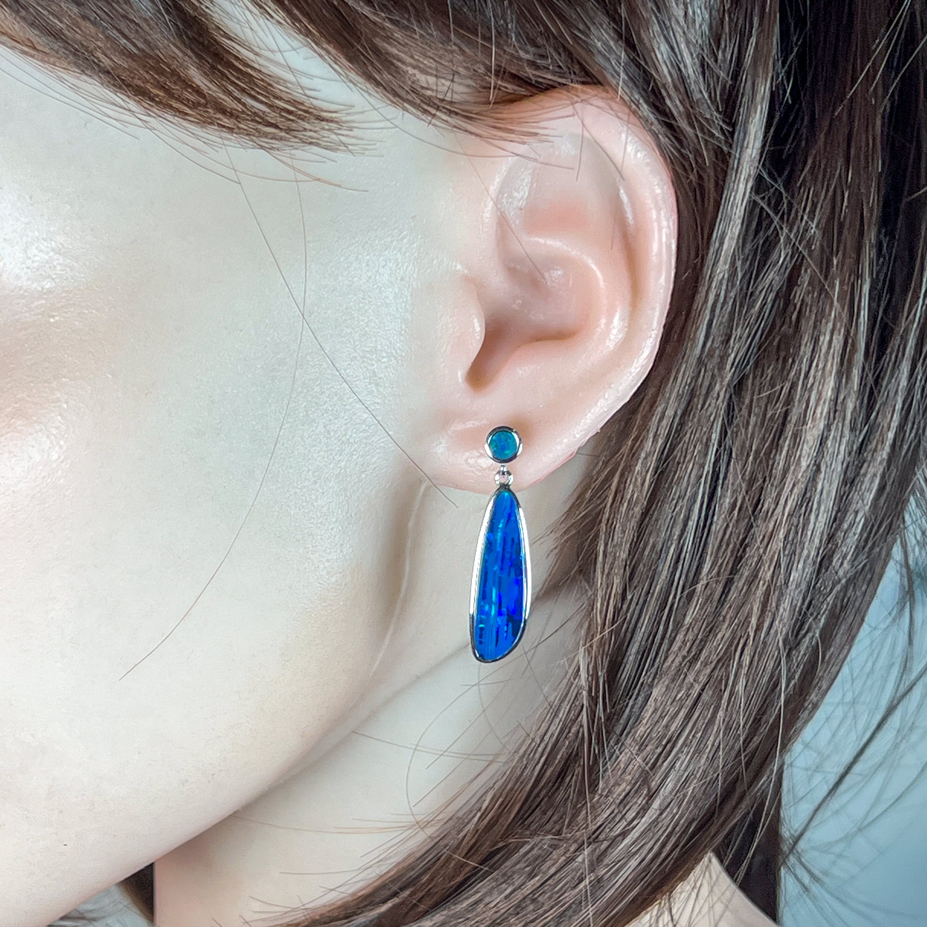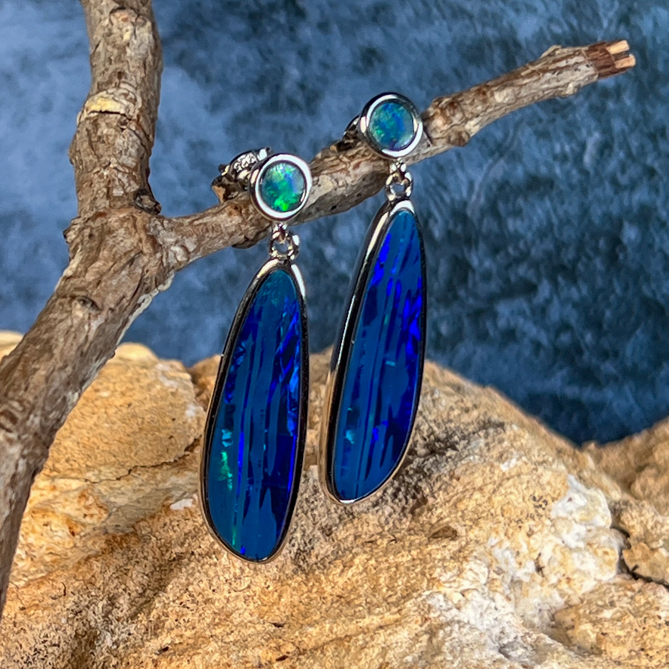 Elevate your everyday elegance with these stunning Sterling Silver Blue Green Opal dangling earrings. Crafted from premium sterling silver, these long earrings showcase mesmerizing blue-green opals that catch the light beautifully, creating an enchanting play of colour with every movement. Perfect for those who appreciate natural gemstone beauty and timeless sophistication, these pieces add a touch of luxury to any occasion—from casual outings to special events. The graceful dangle design flatters all face shapes while the cool opal tones complement a wide range of skin tones. Invest in jewellery that combines genuine craftsmanship with the captivating allure of authentic opals.