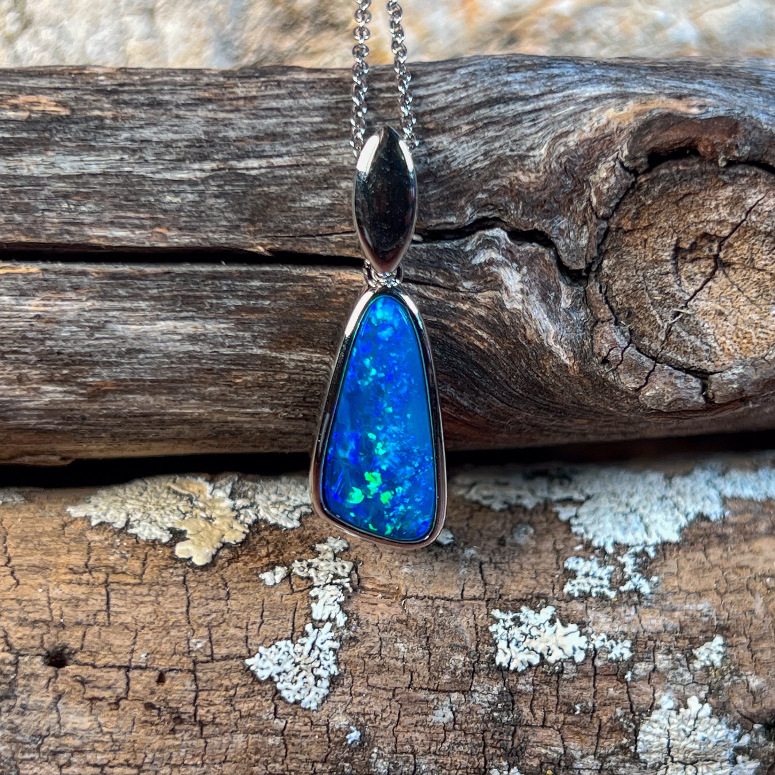 Dive into the serene beauty of the ocean with this stunning sterling silver pendant featuring a mesmerizing 2.56ct opal doublet. Radiant light blue reef tones dance across the stone's surface, capturing the essence of tropical waters and coastal tranquility. The doublet construction enhances colour vibrancy while offering exceptional value, making this piece an accessible luxury. Perfect for those who crave the calming allure of the sea, this pendant brings sophistication and natural wonder to any collection. A timeless investment that celebrates Australia's precious gemstone heritage.