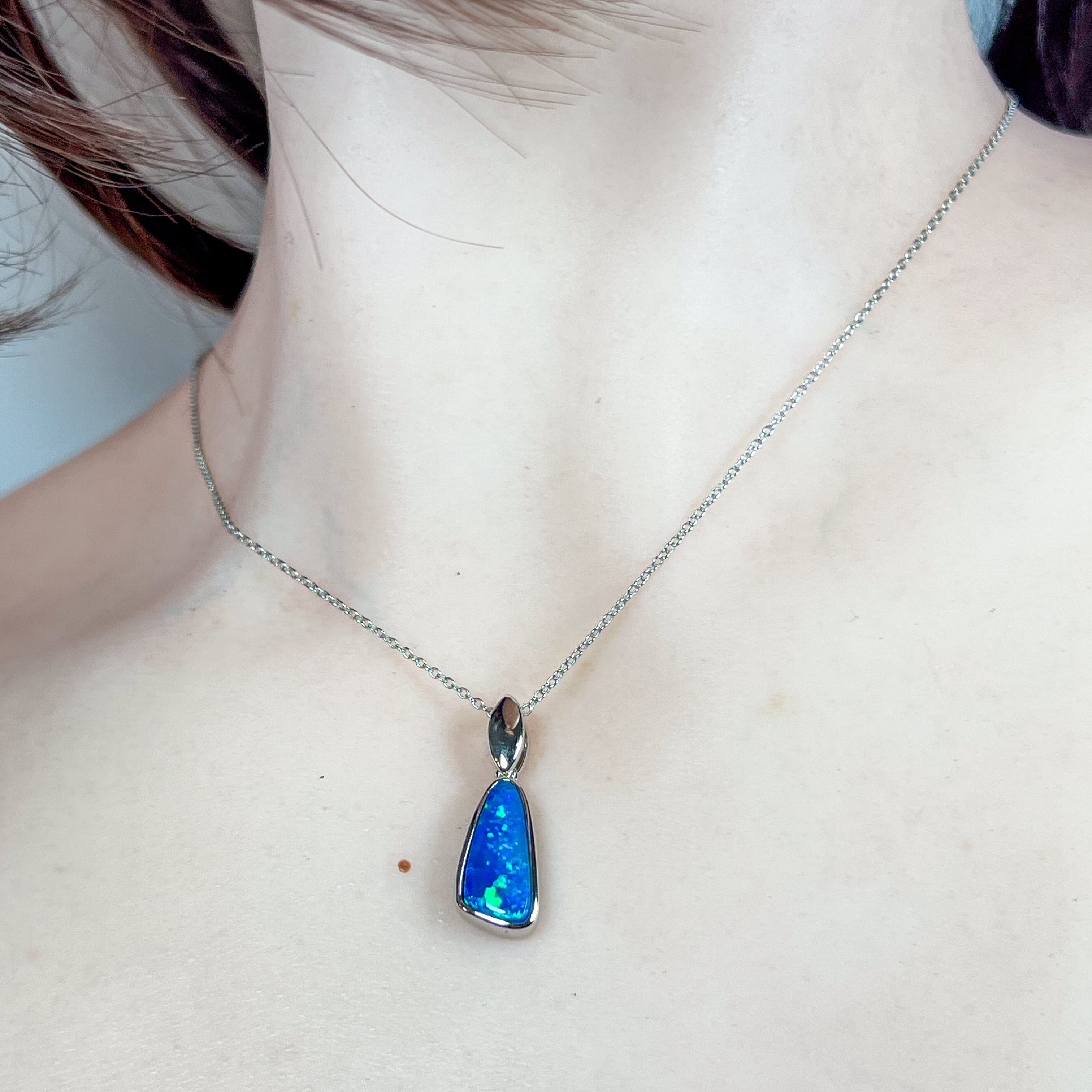 Sterling Silver Ocean Blue 2.56ct Opal doublet pendant