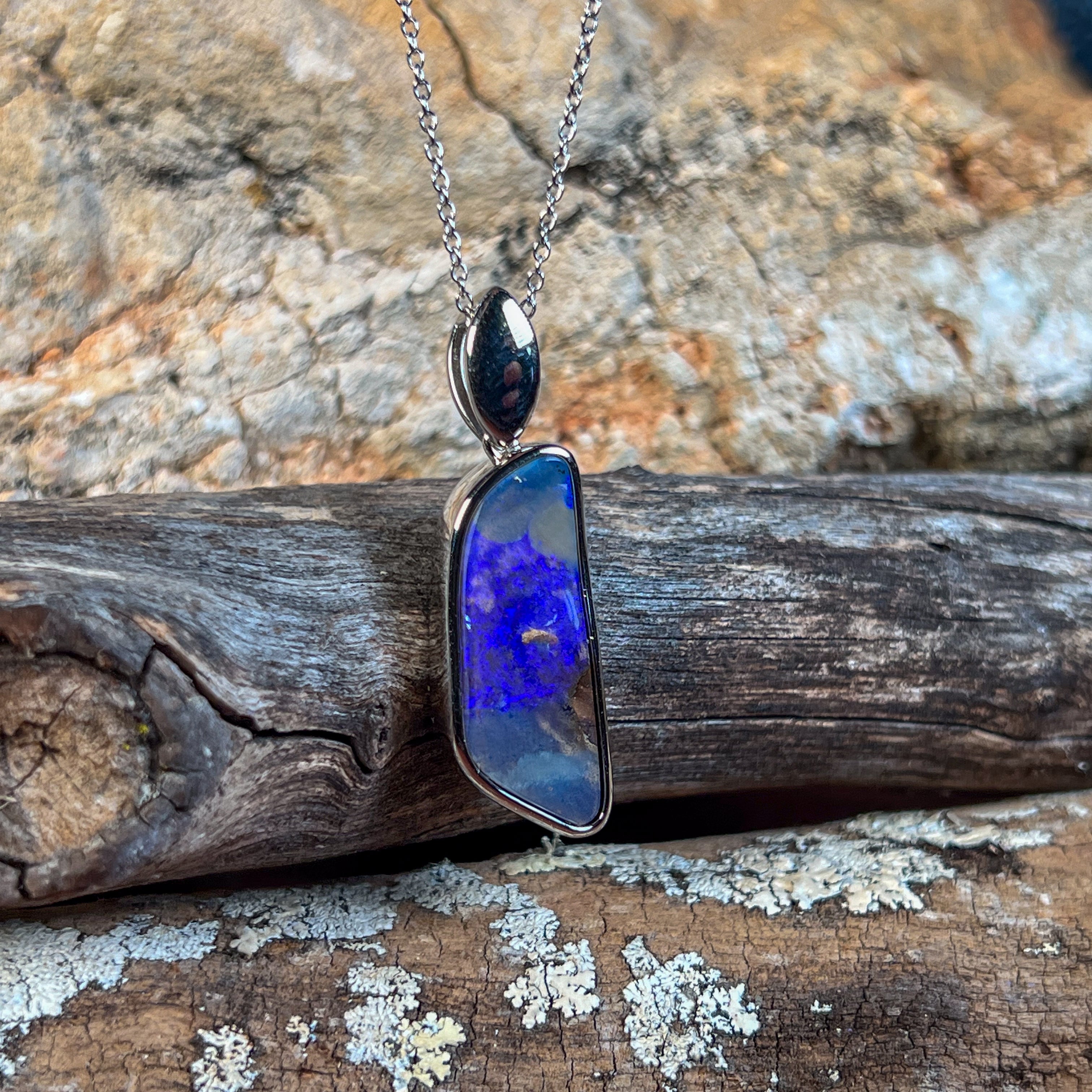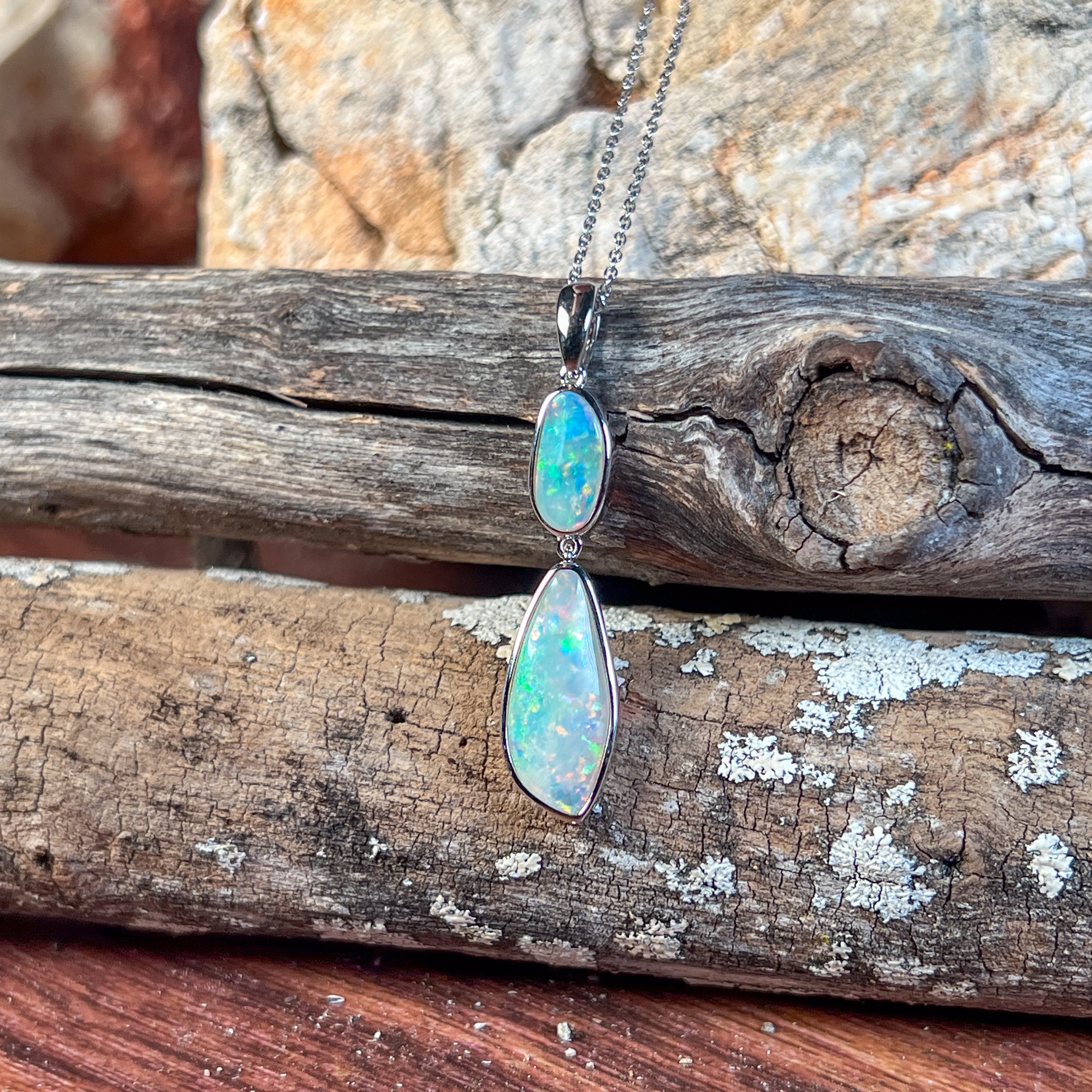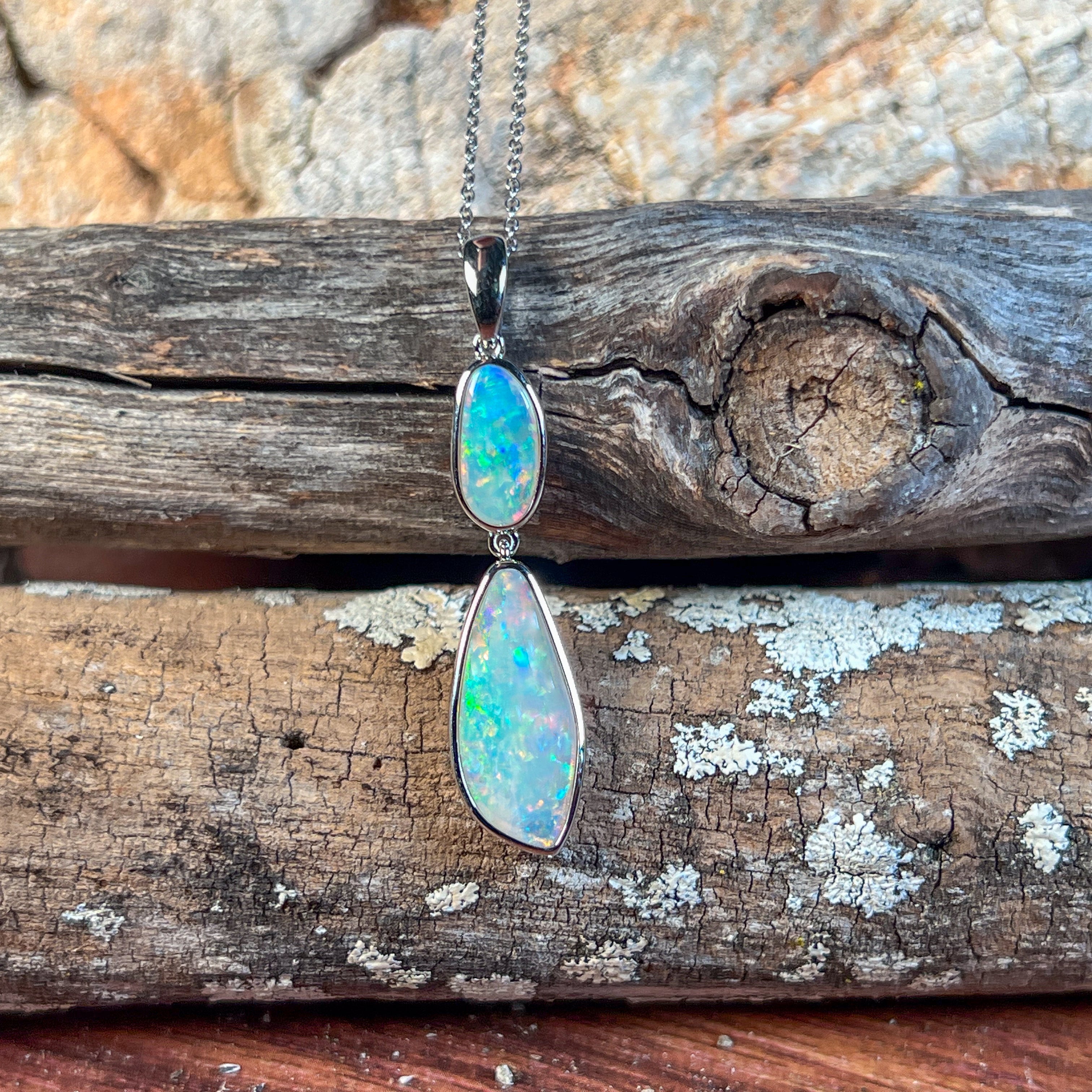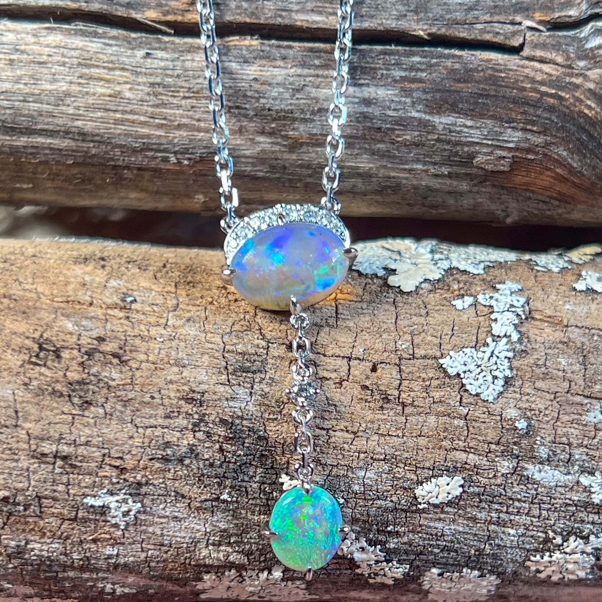 14kt White Gold Black Opal crystal 1.93ct necklace