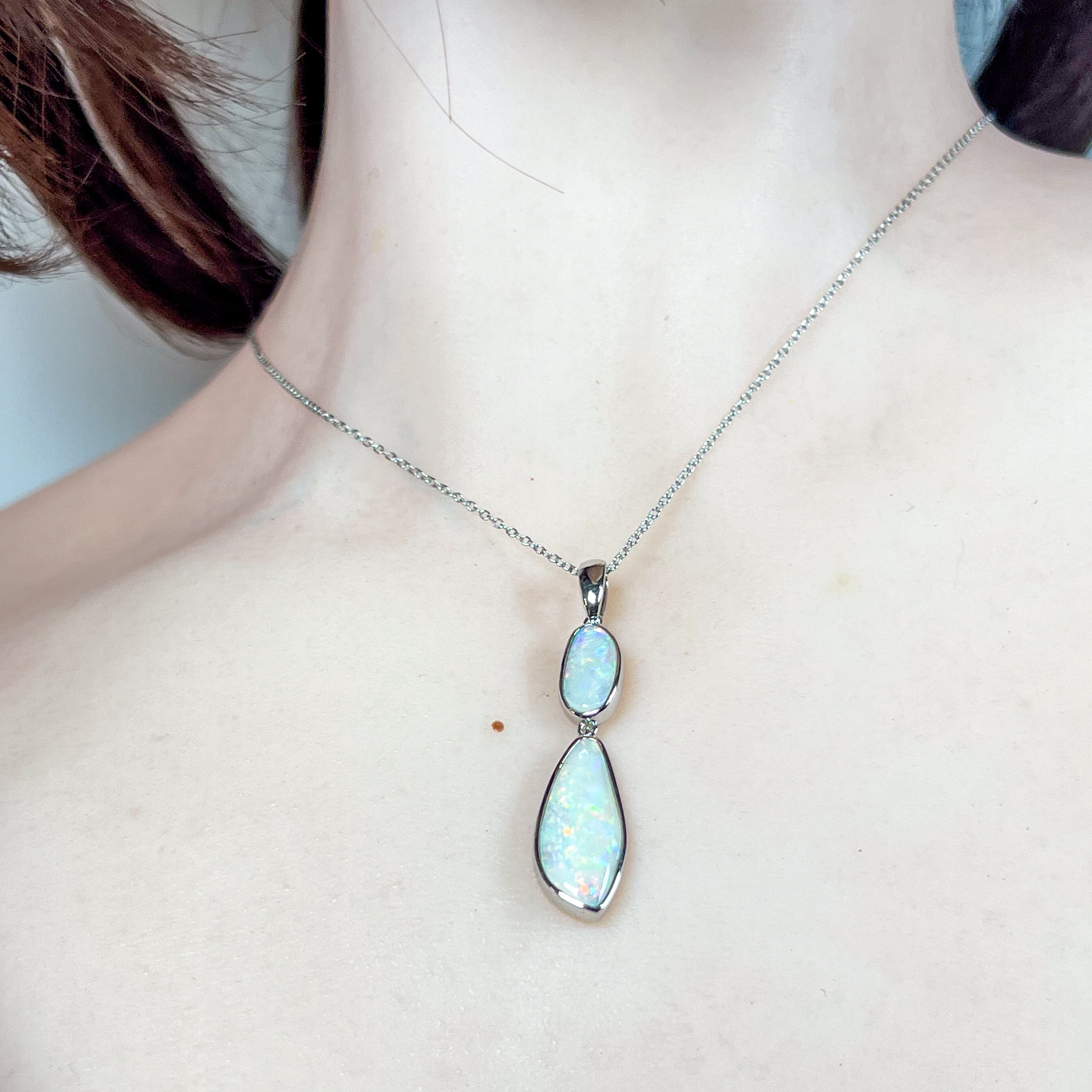 18kt White Gold cluster freeform Drop shape Opal pendant with mother of Pearl and diamonds