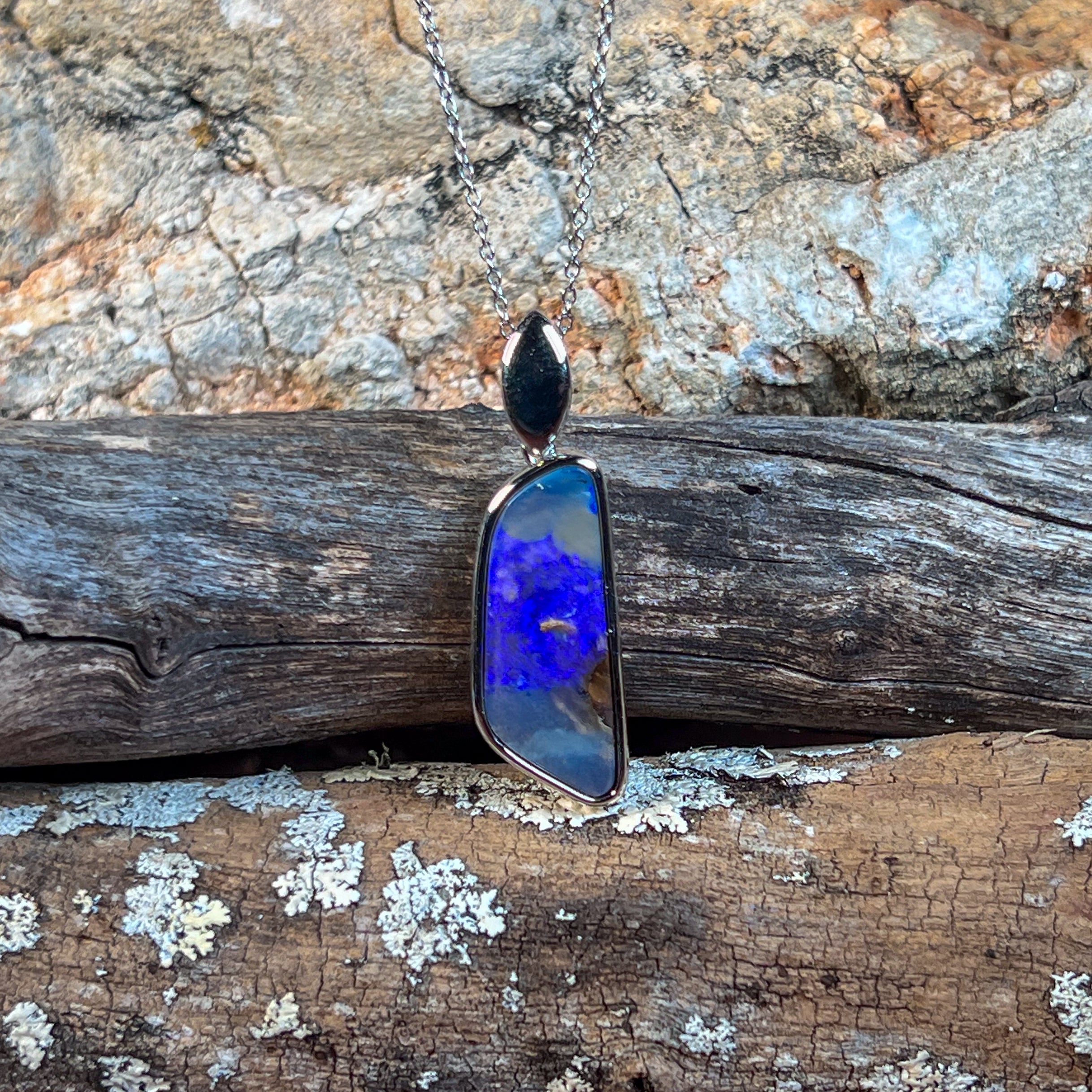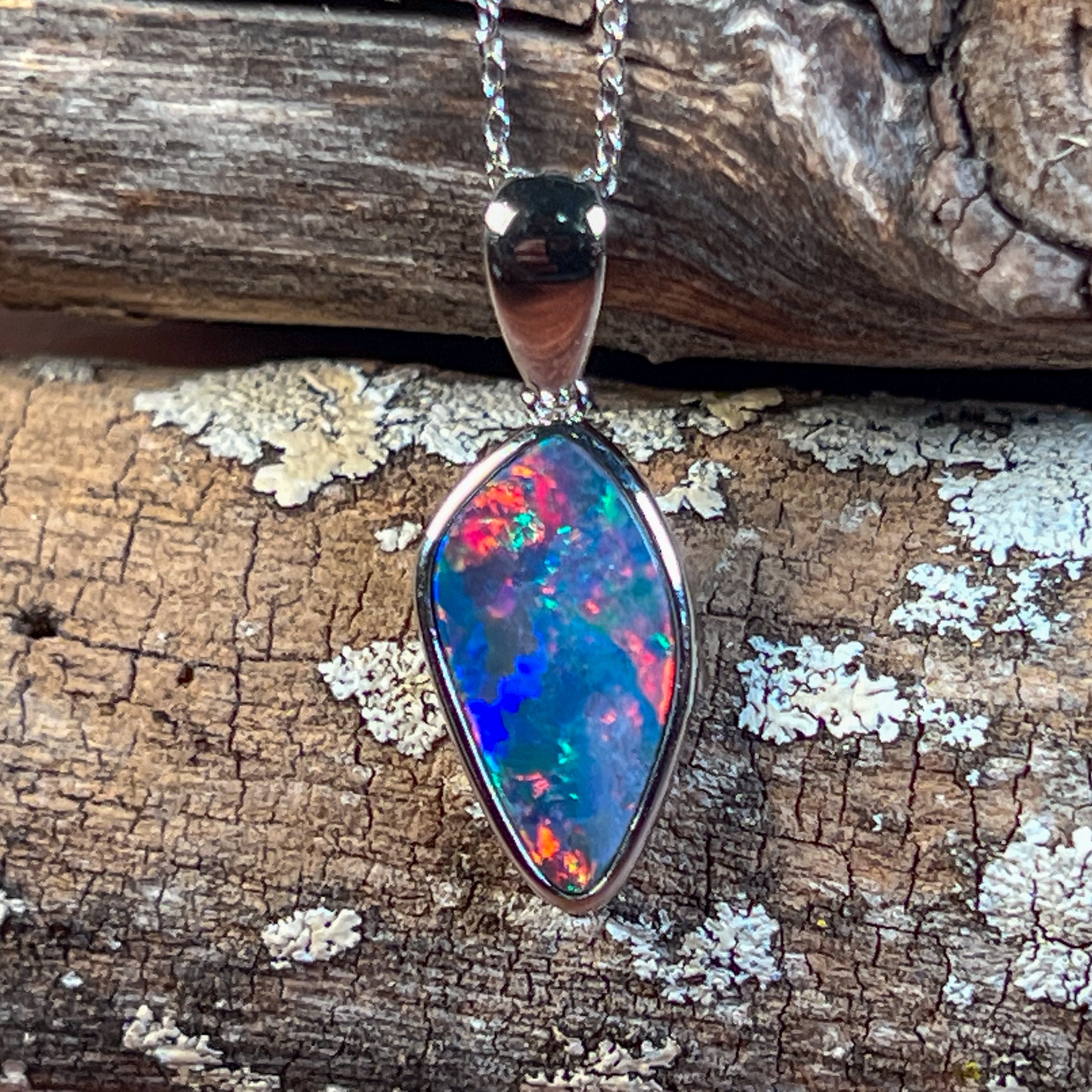 Sterling Silver Opal doublet 2.9ct Fire Red and Blue pendant