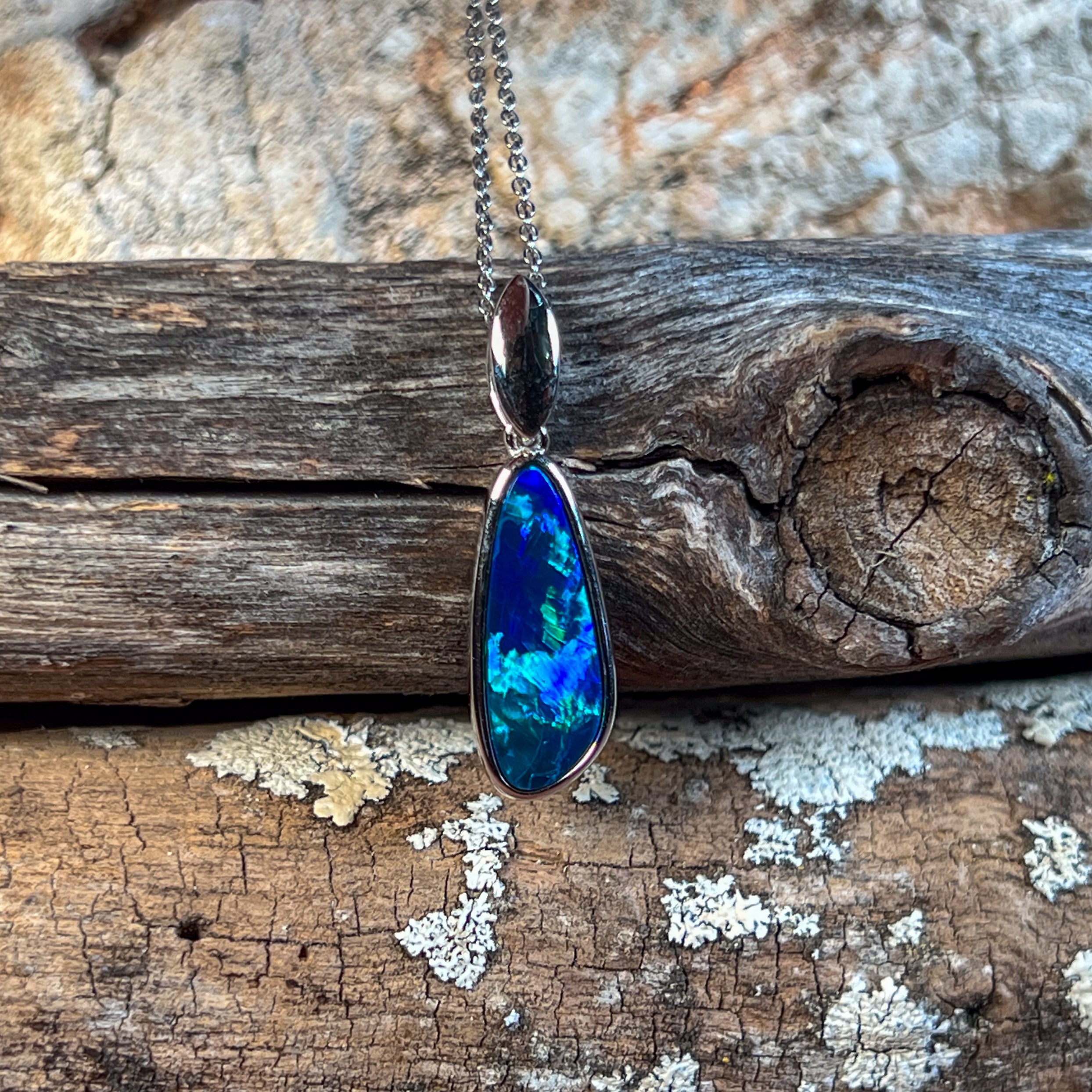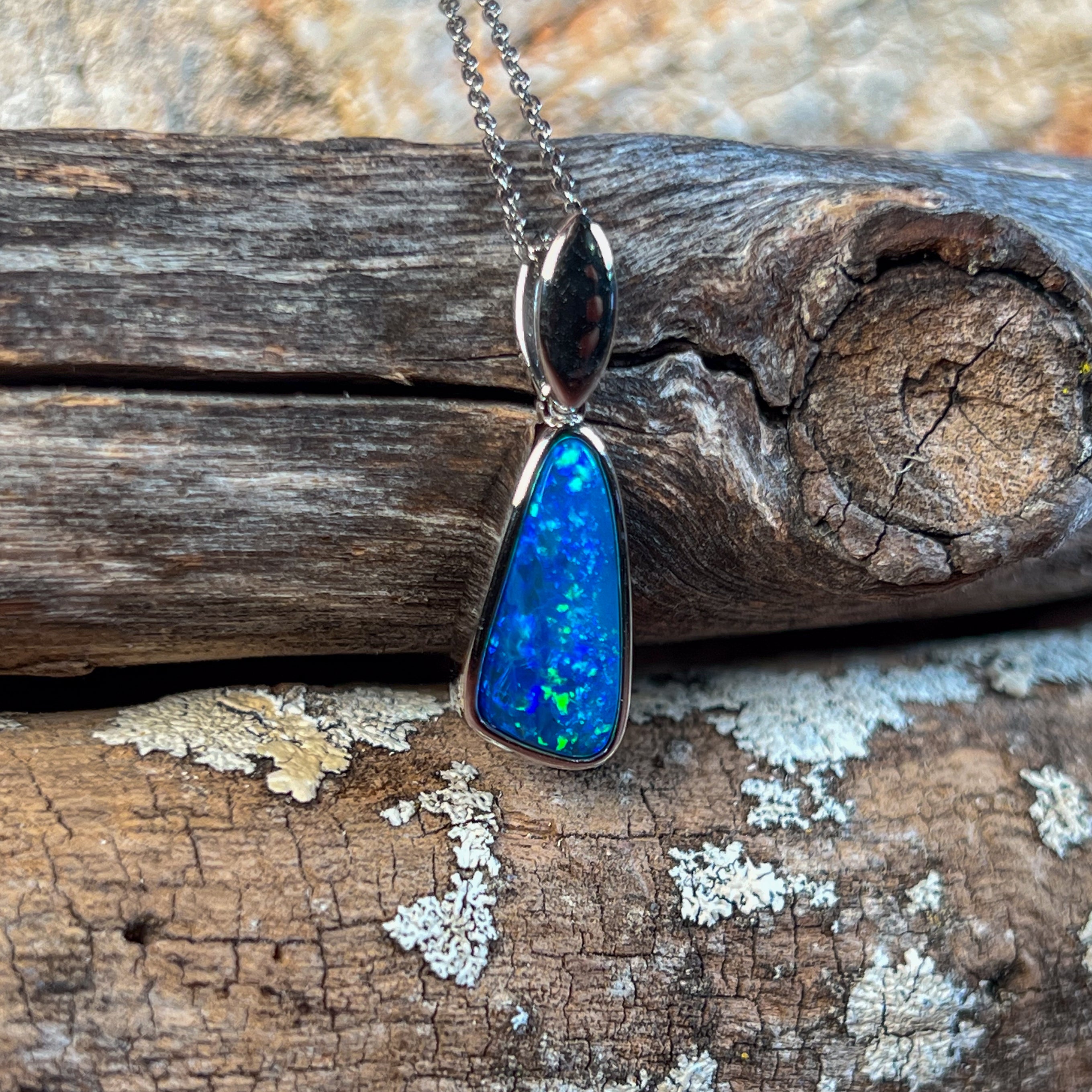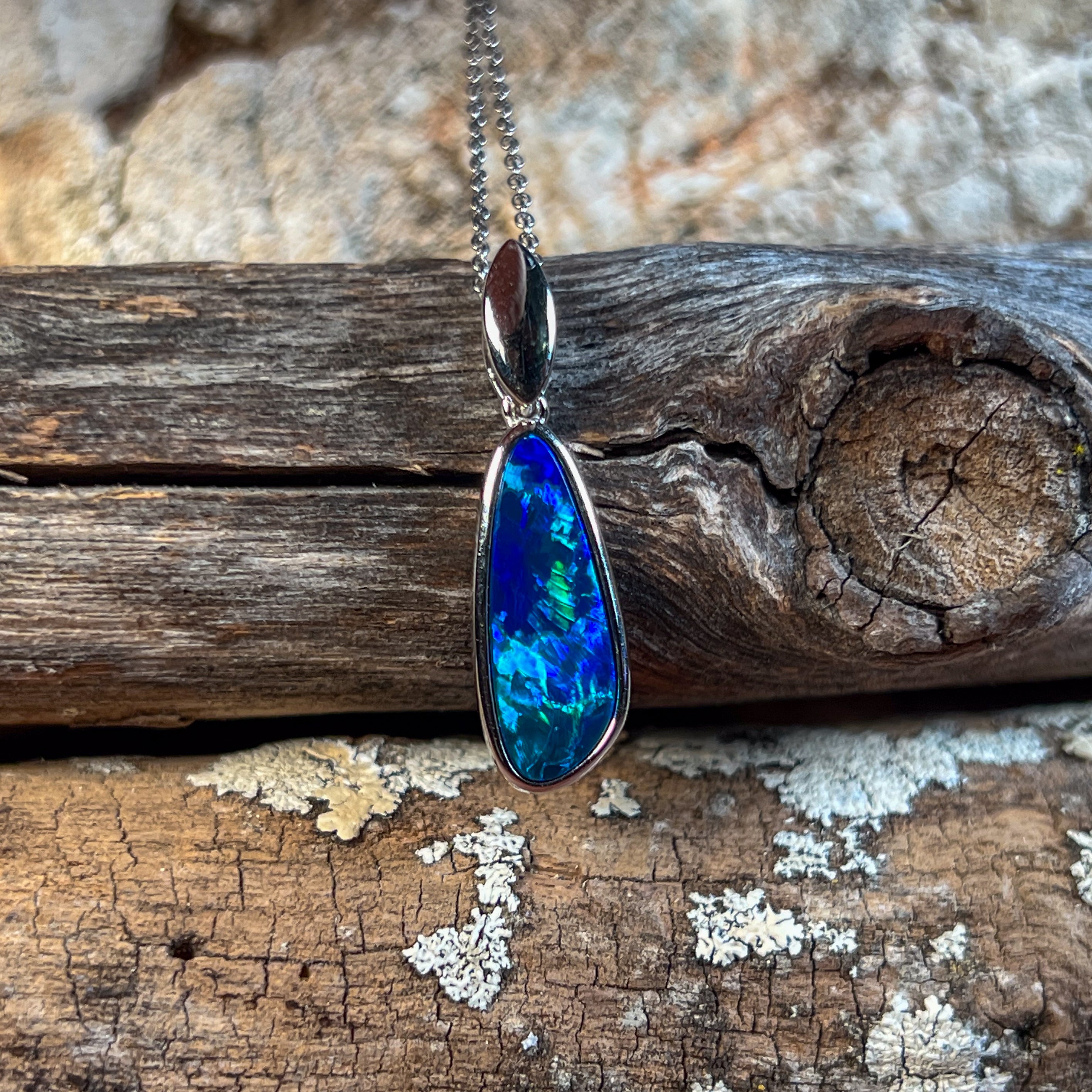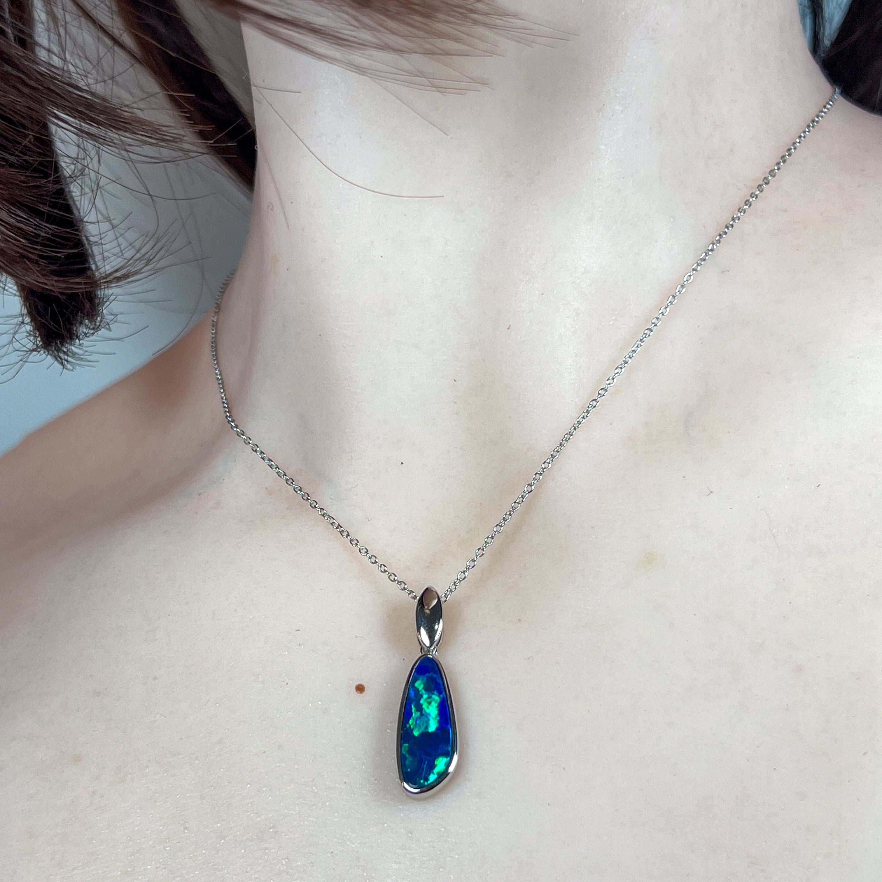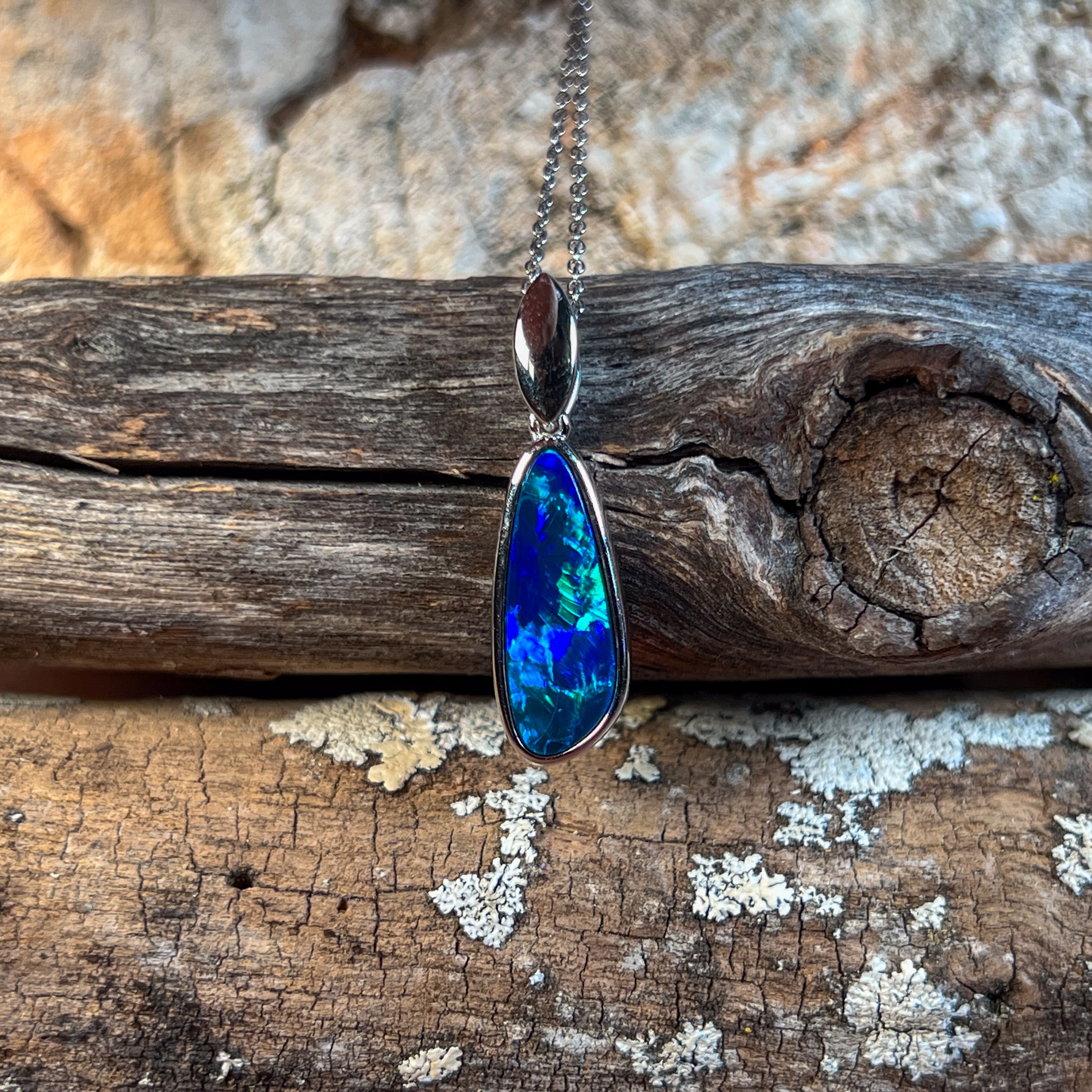 Sterling Silver Blue Green 2.9ct Opal doublet pendant