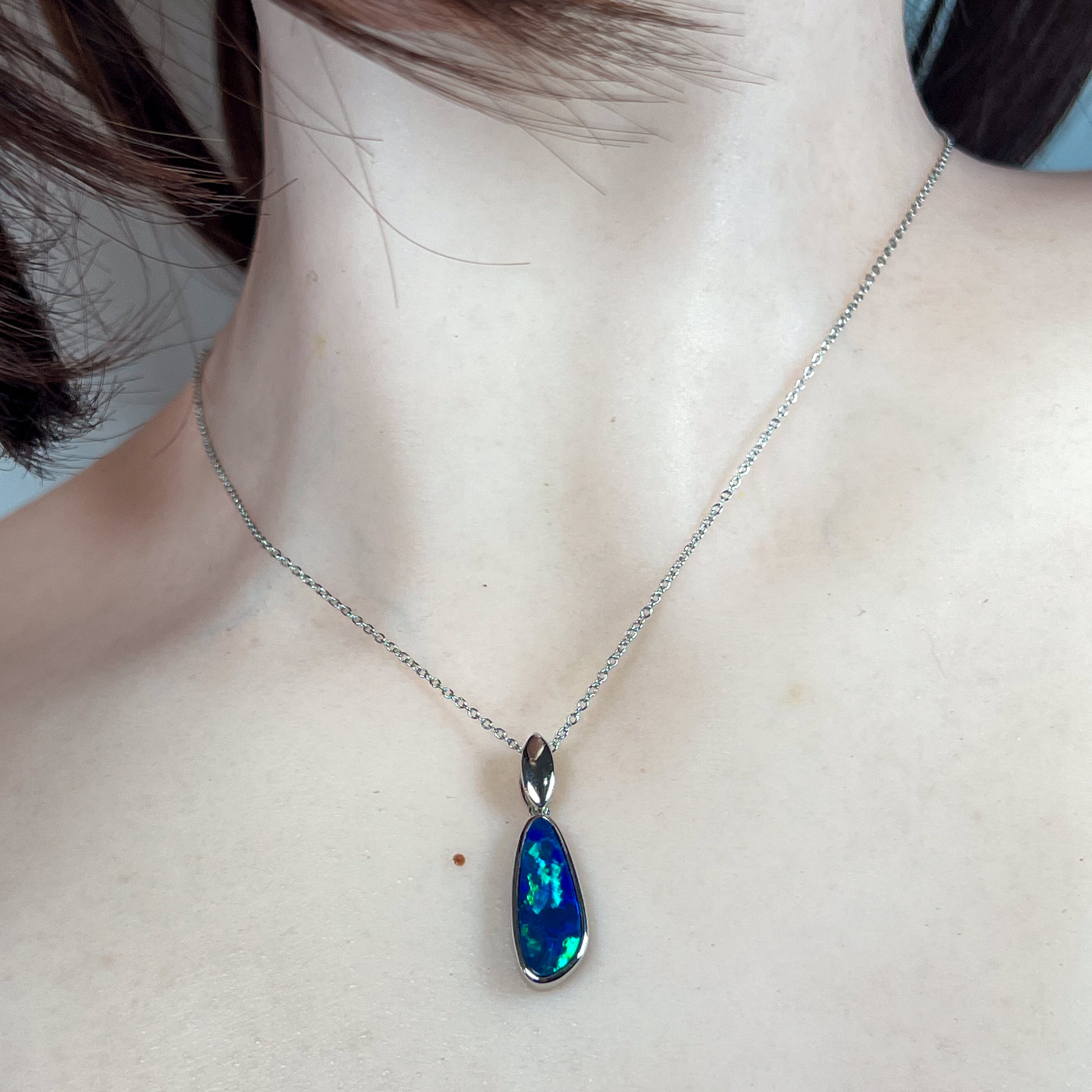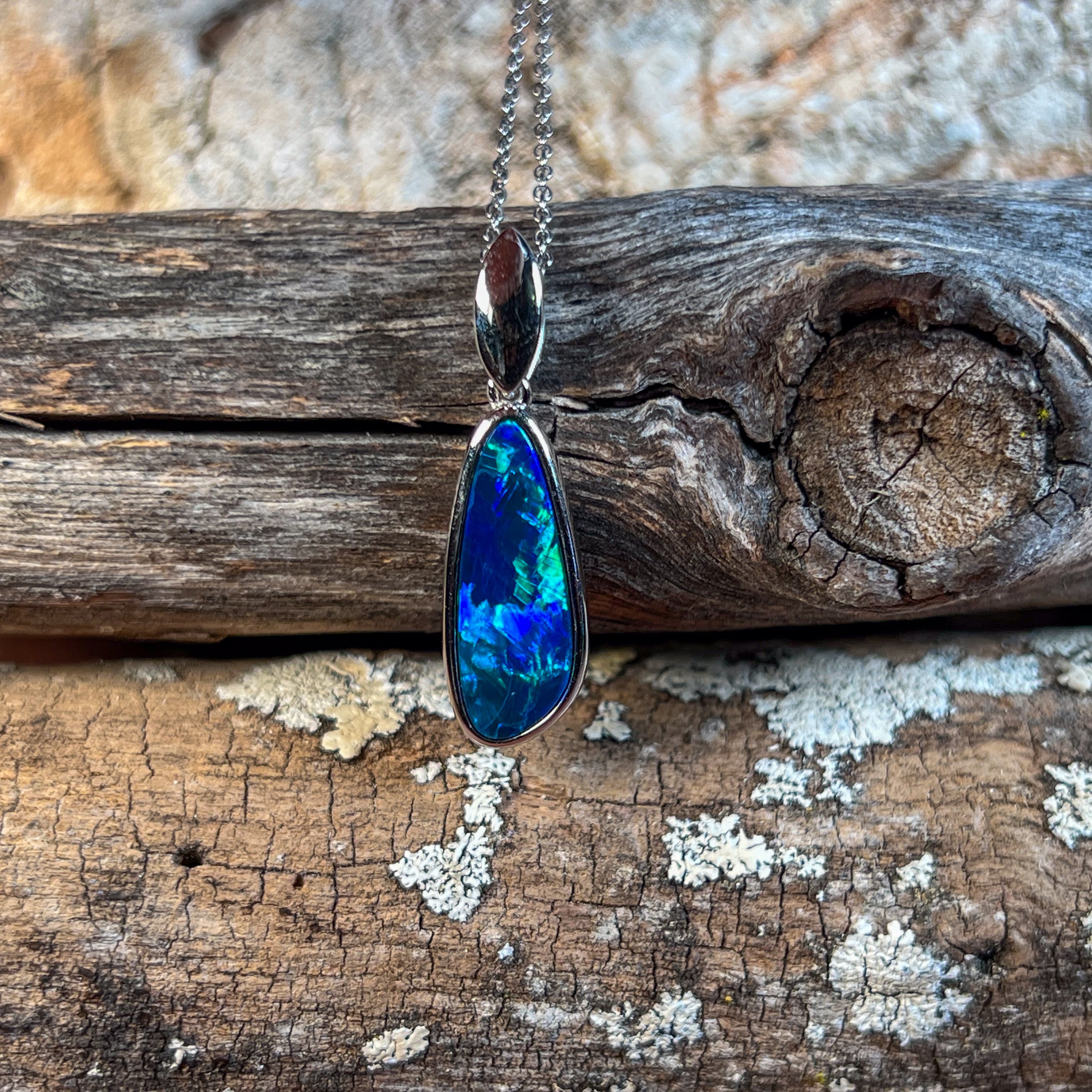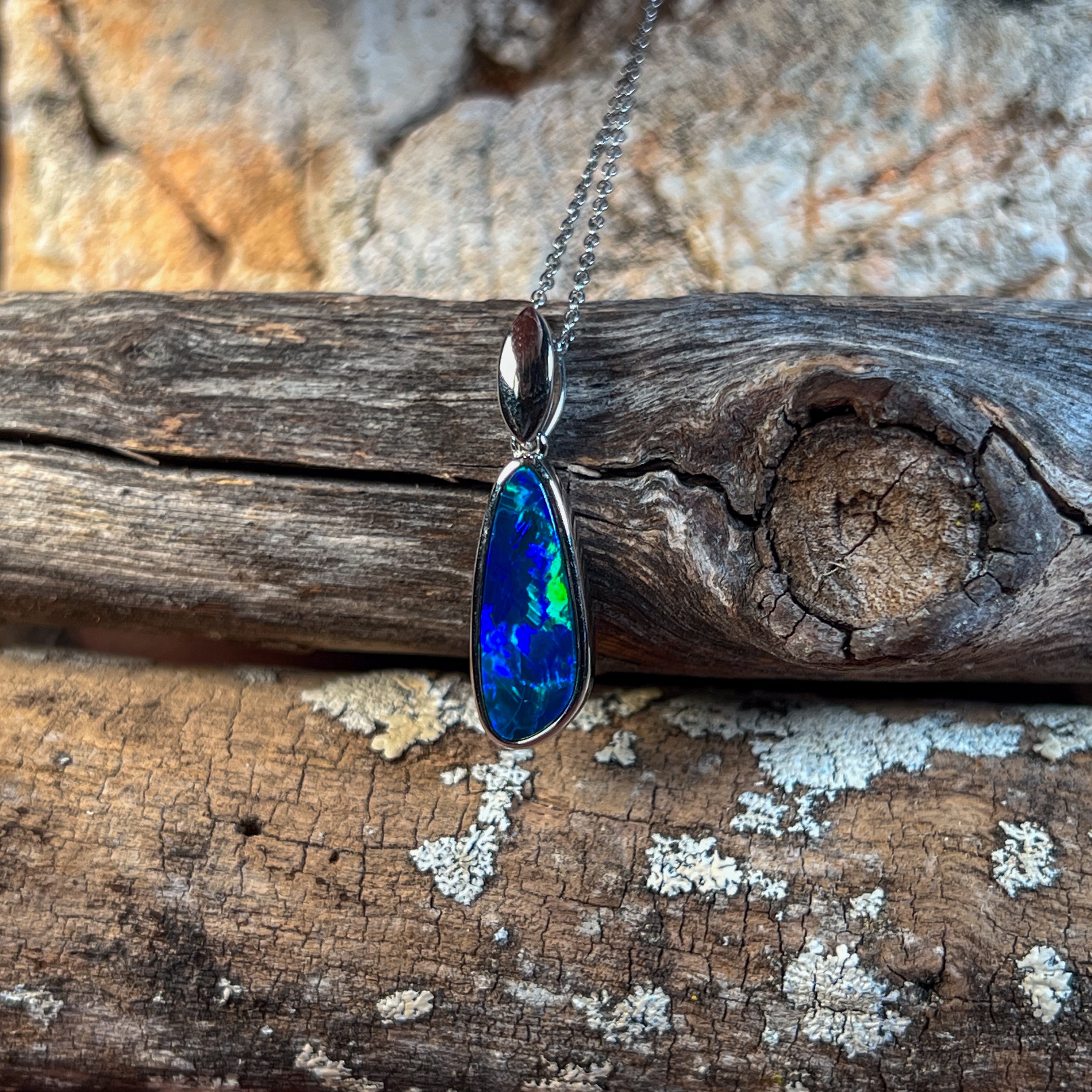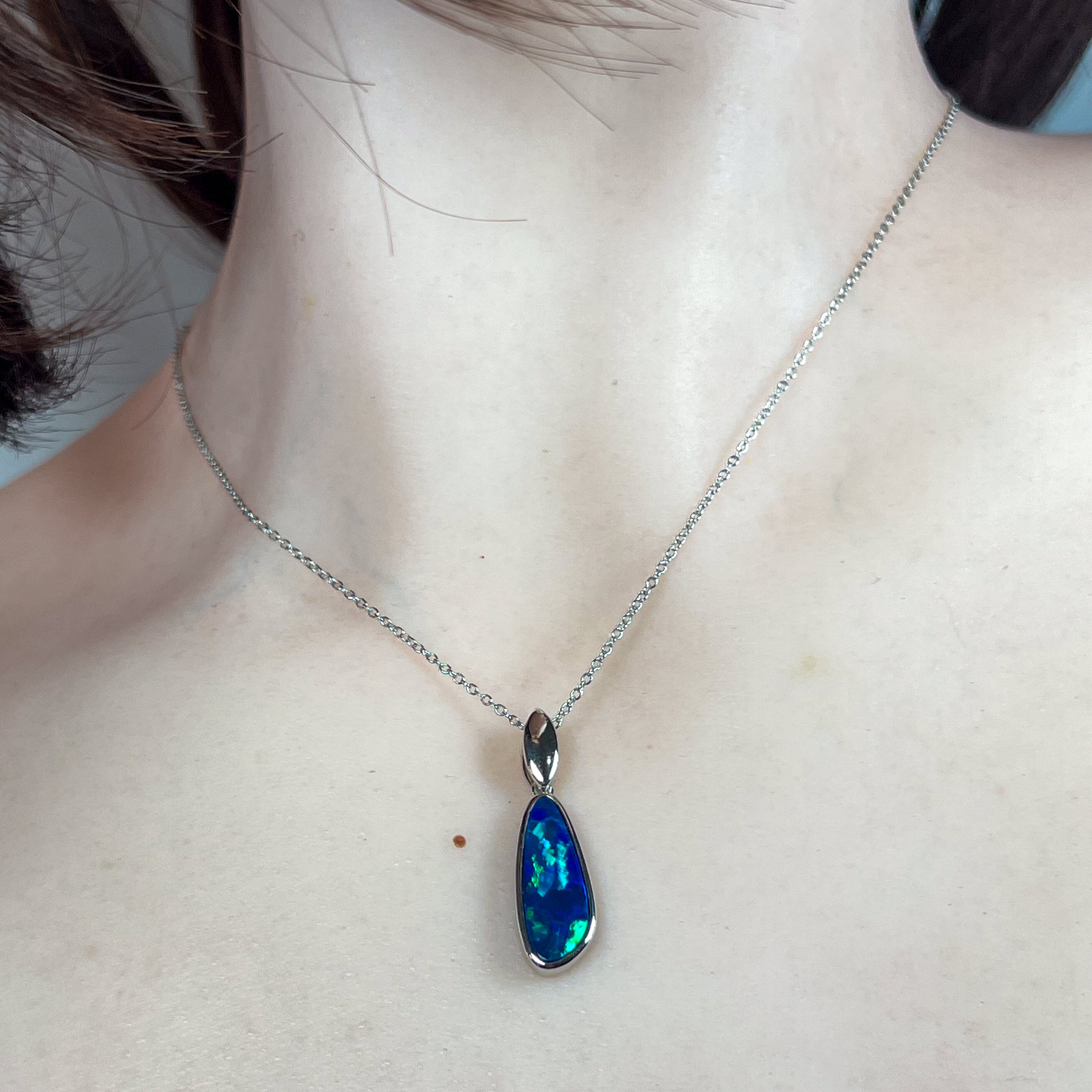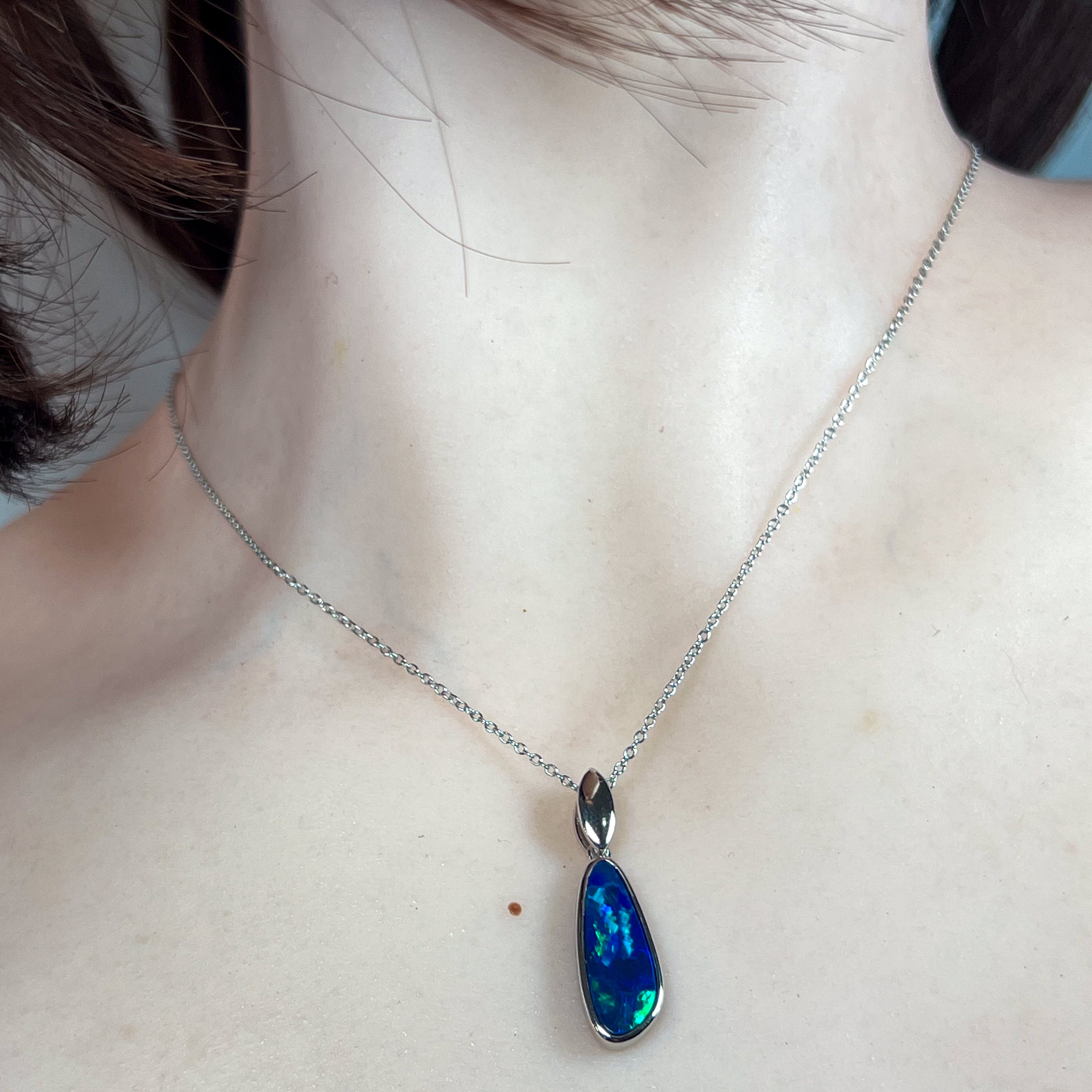 Sterling Silver Blue Green 2.9ct Opal doublet pendant