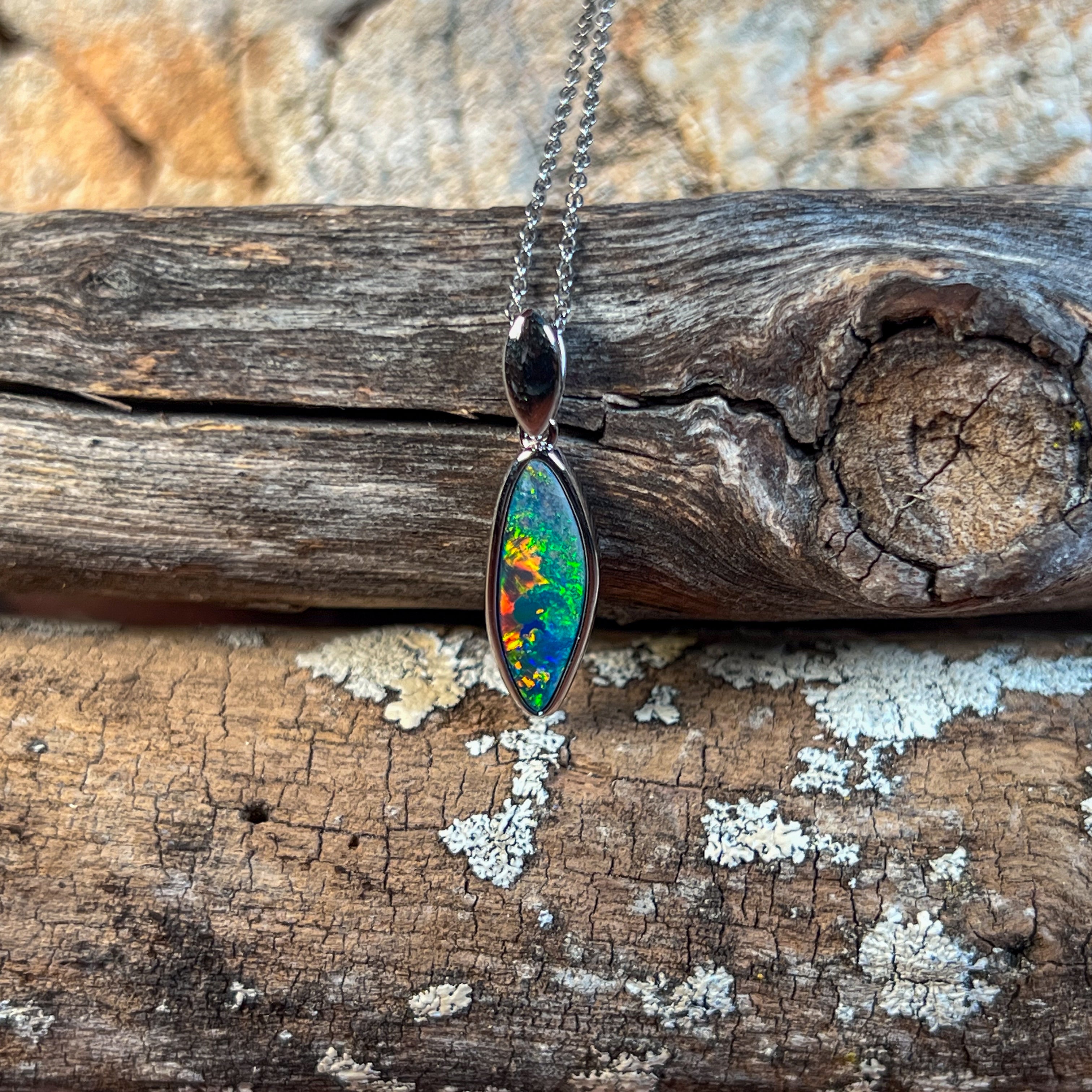 Sterling Silver Marquise shape Red Green yellow Opal doublet 2ct pendant