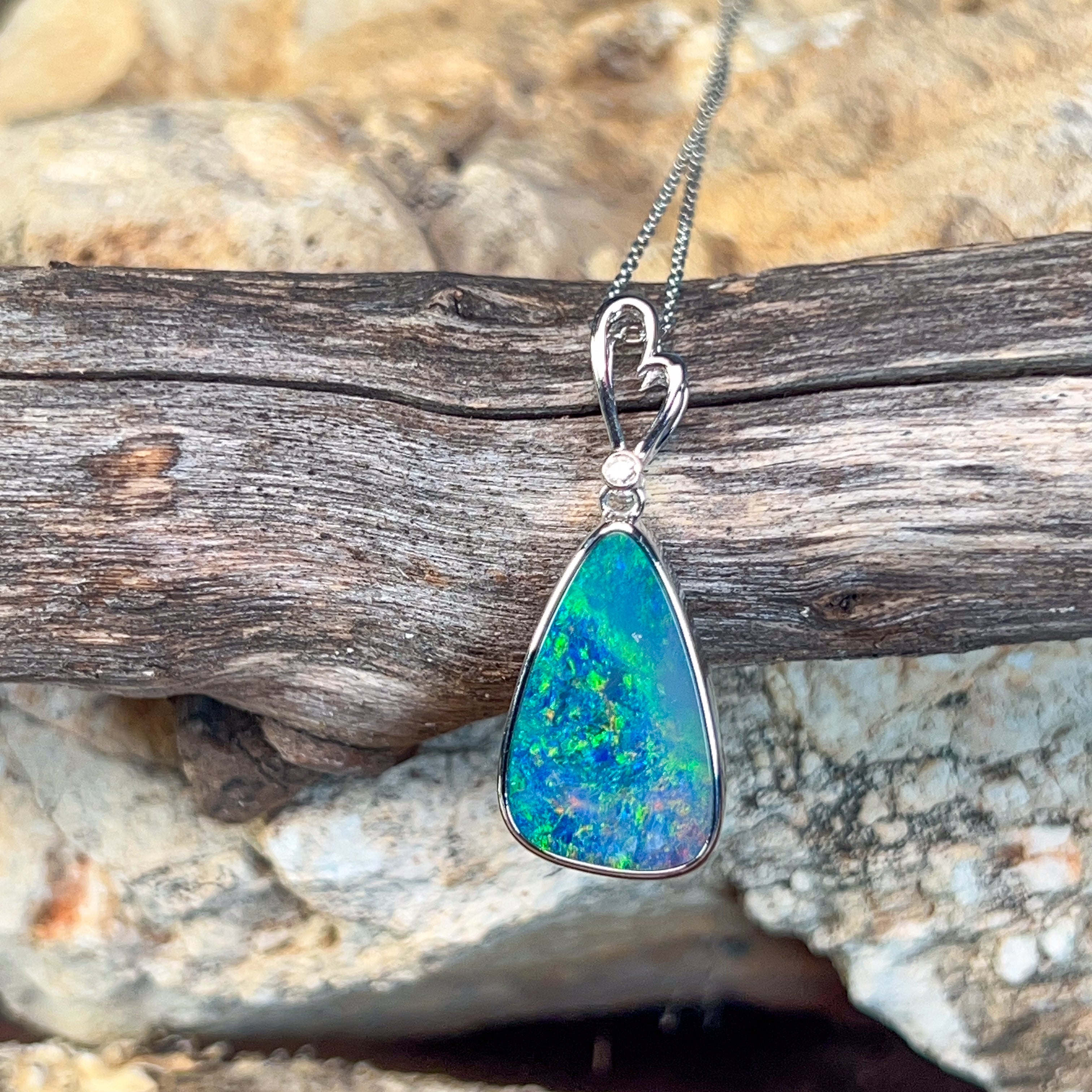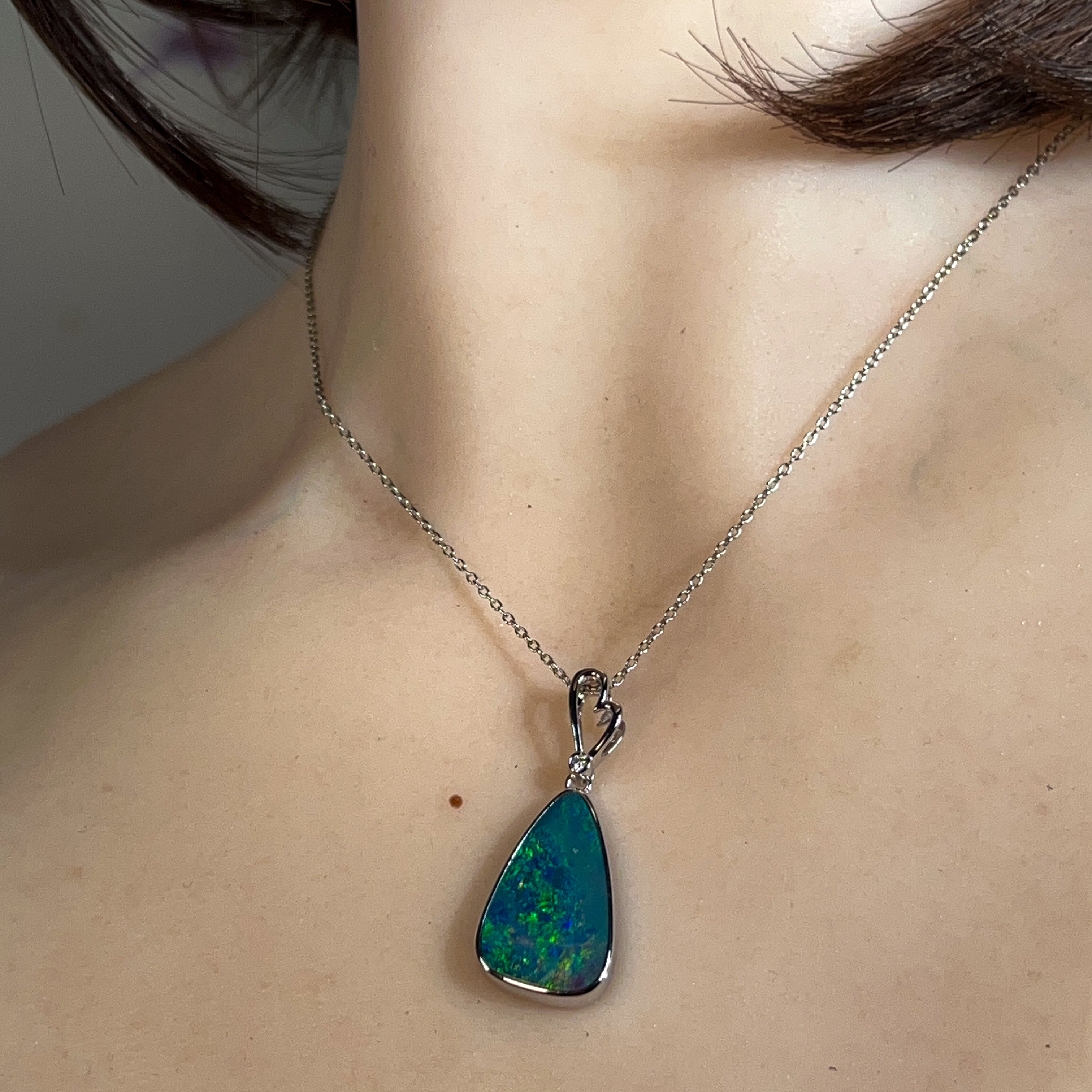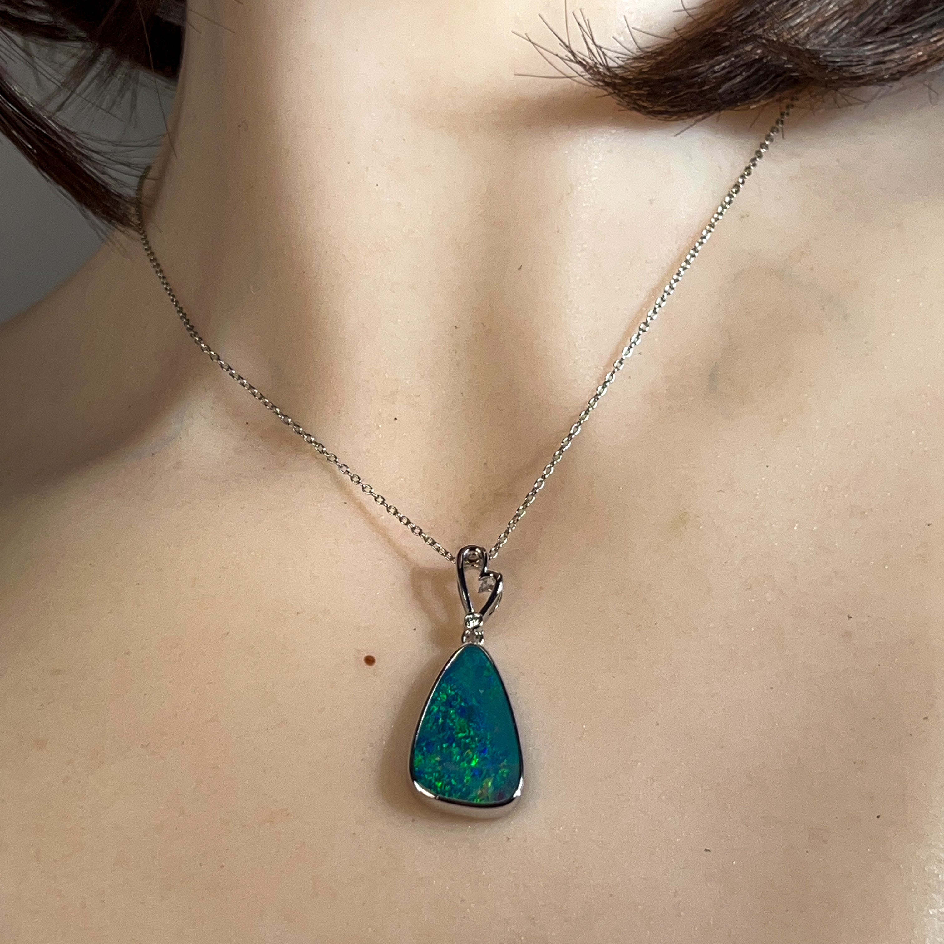 14kt White Gold Opal doublet 7.85ct and diamond pendant