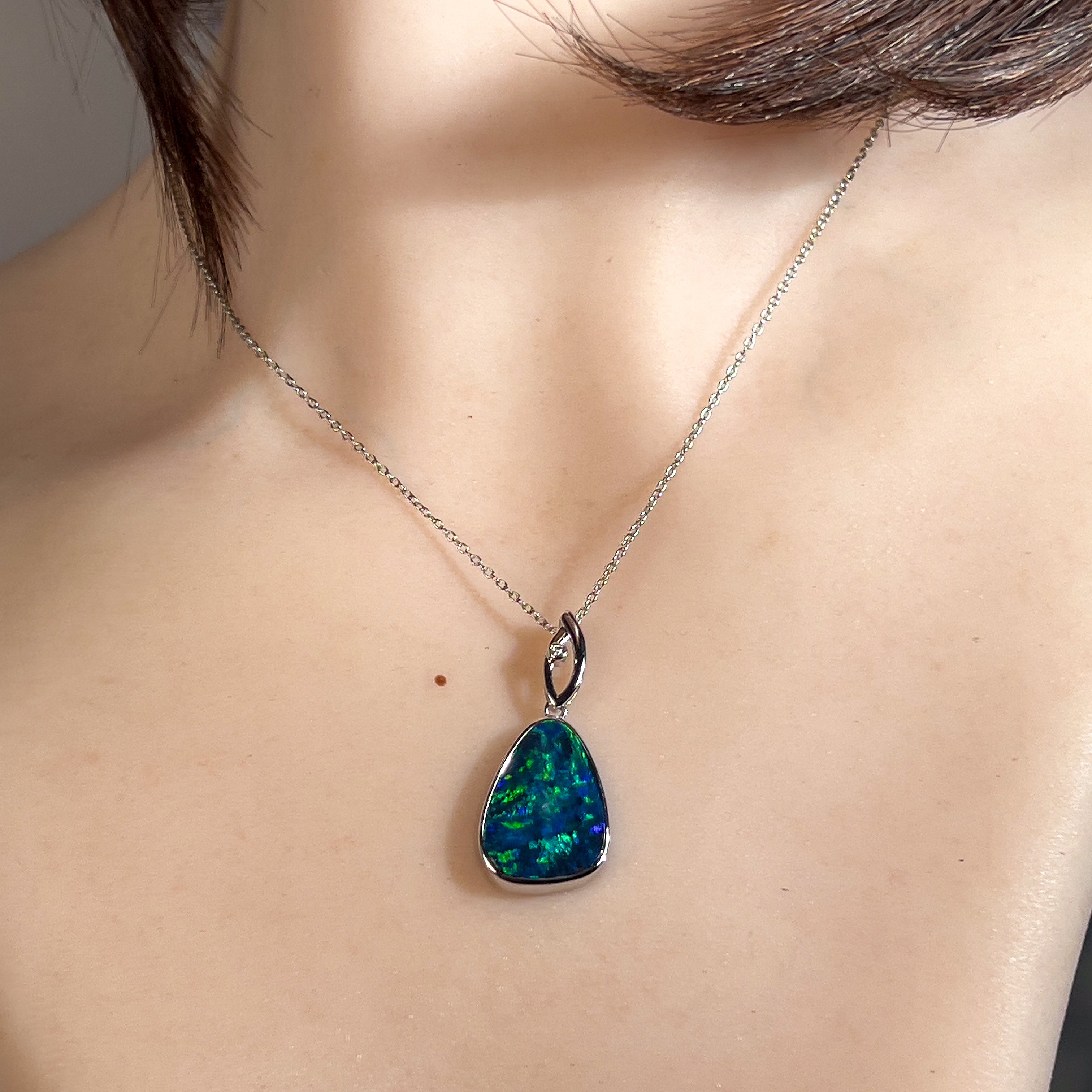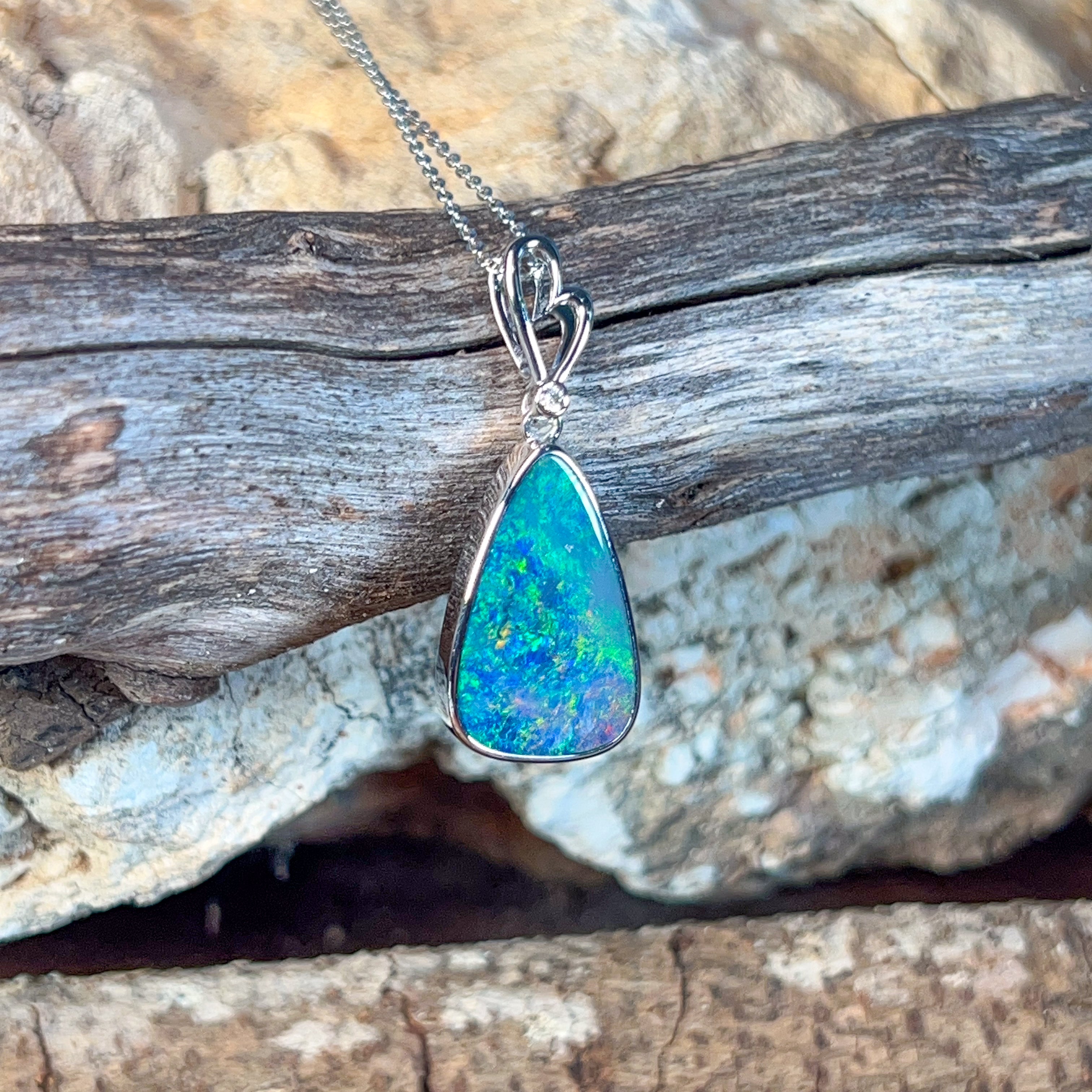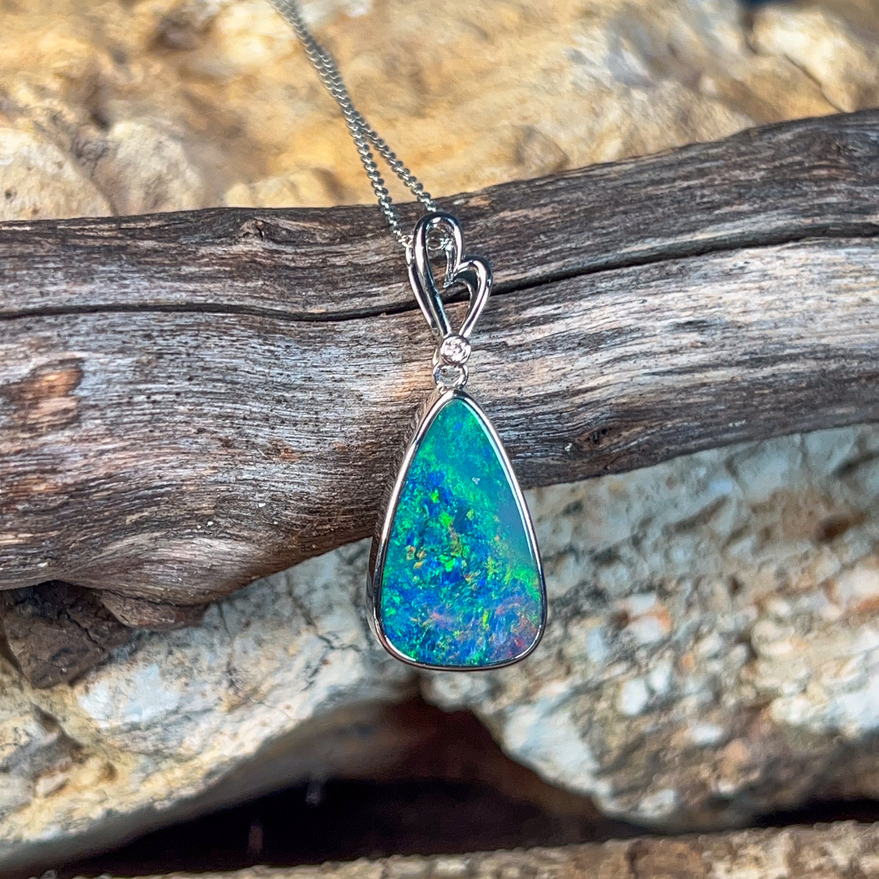 14kt White Gold Opal doublet 7.85ct and diamond pendant