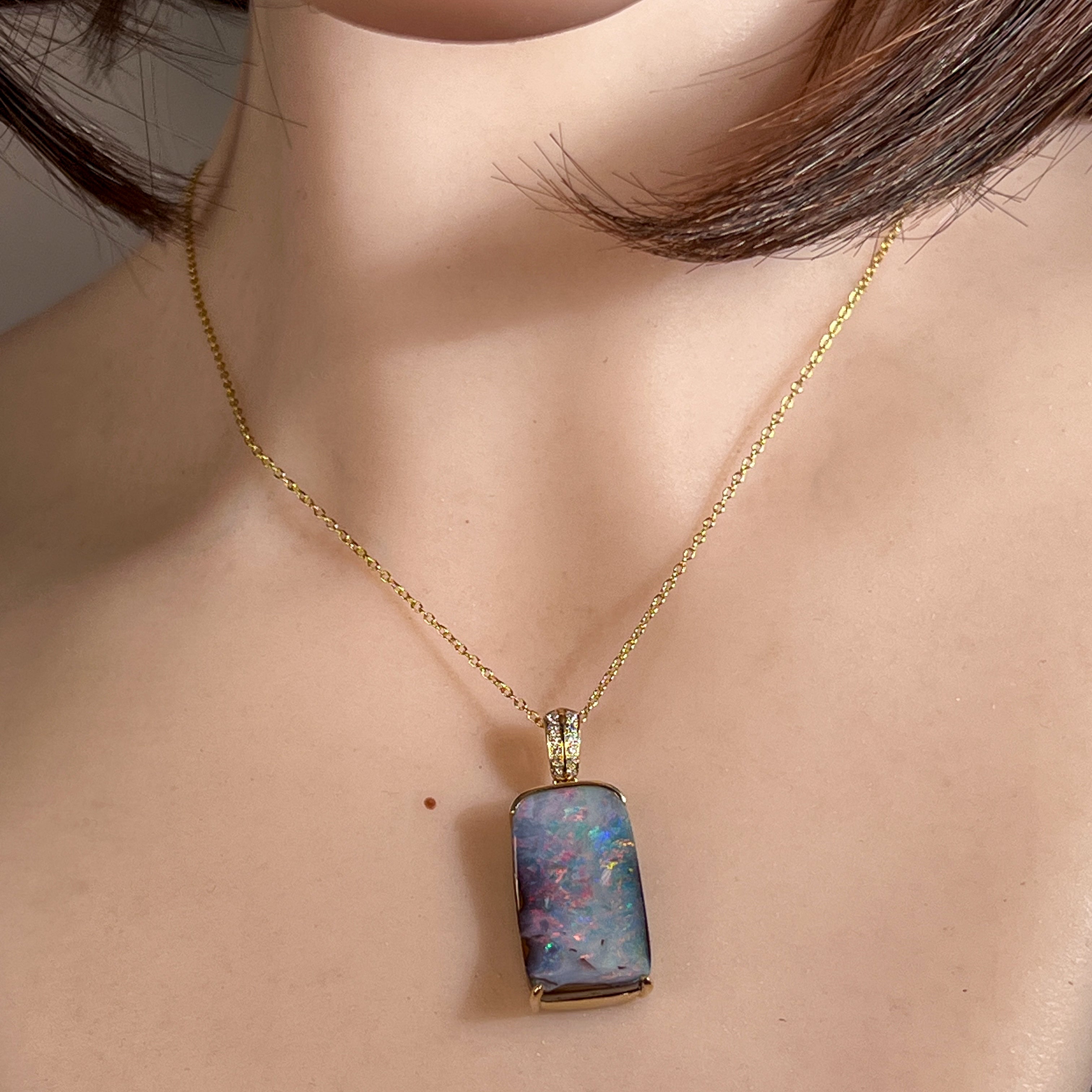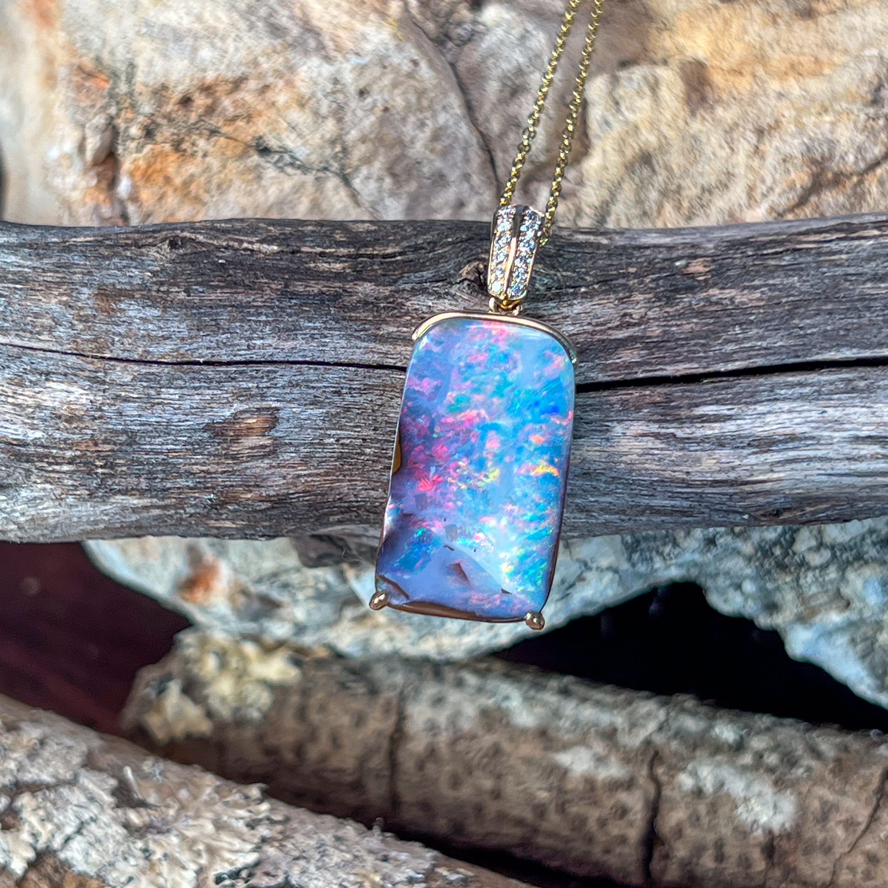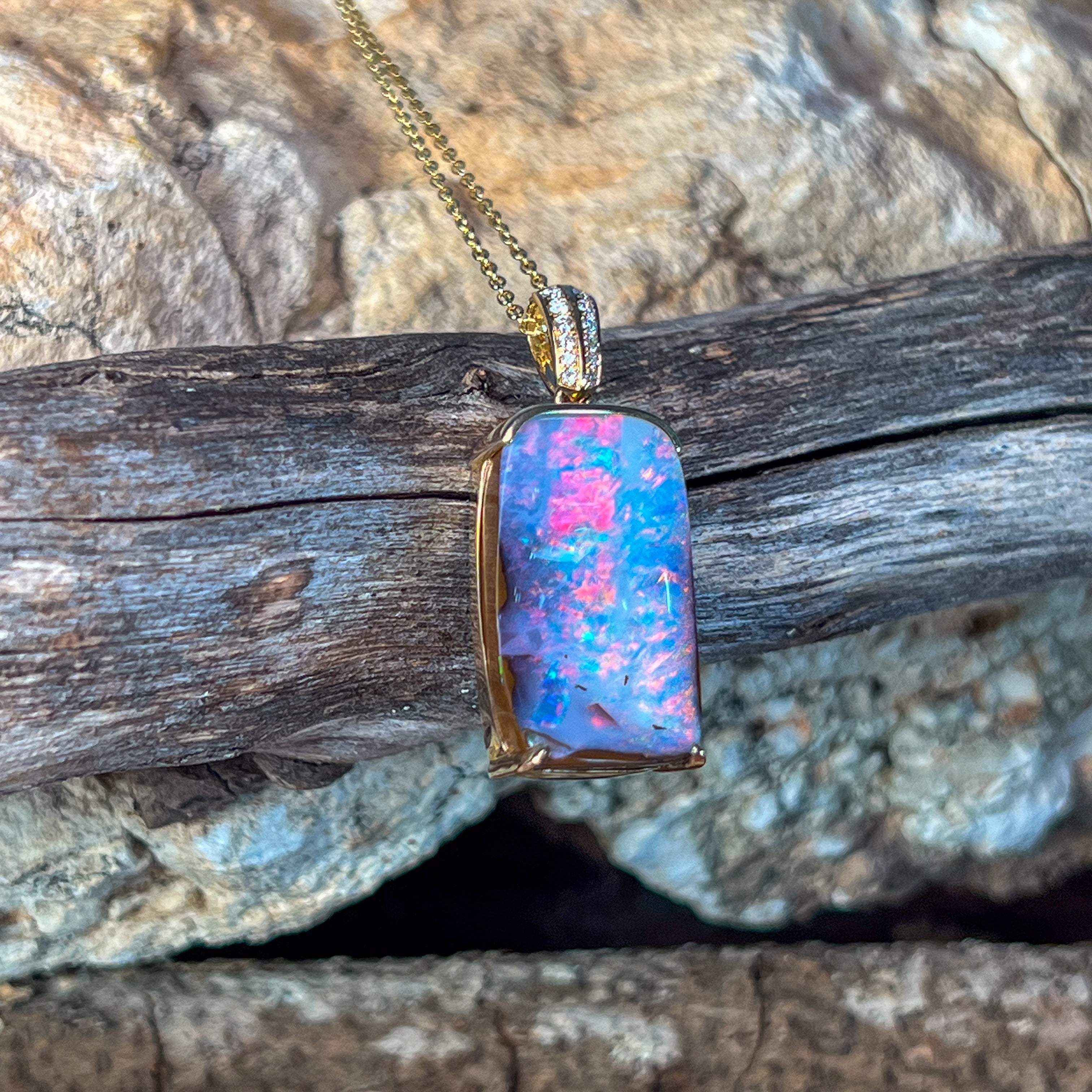 14kt Yellow Gold Boulder Opal 16.06ct rectangular pendant