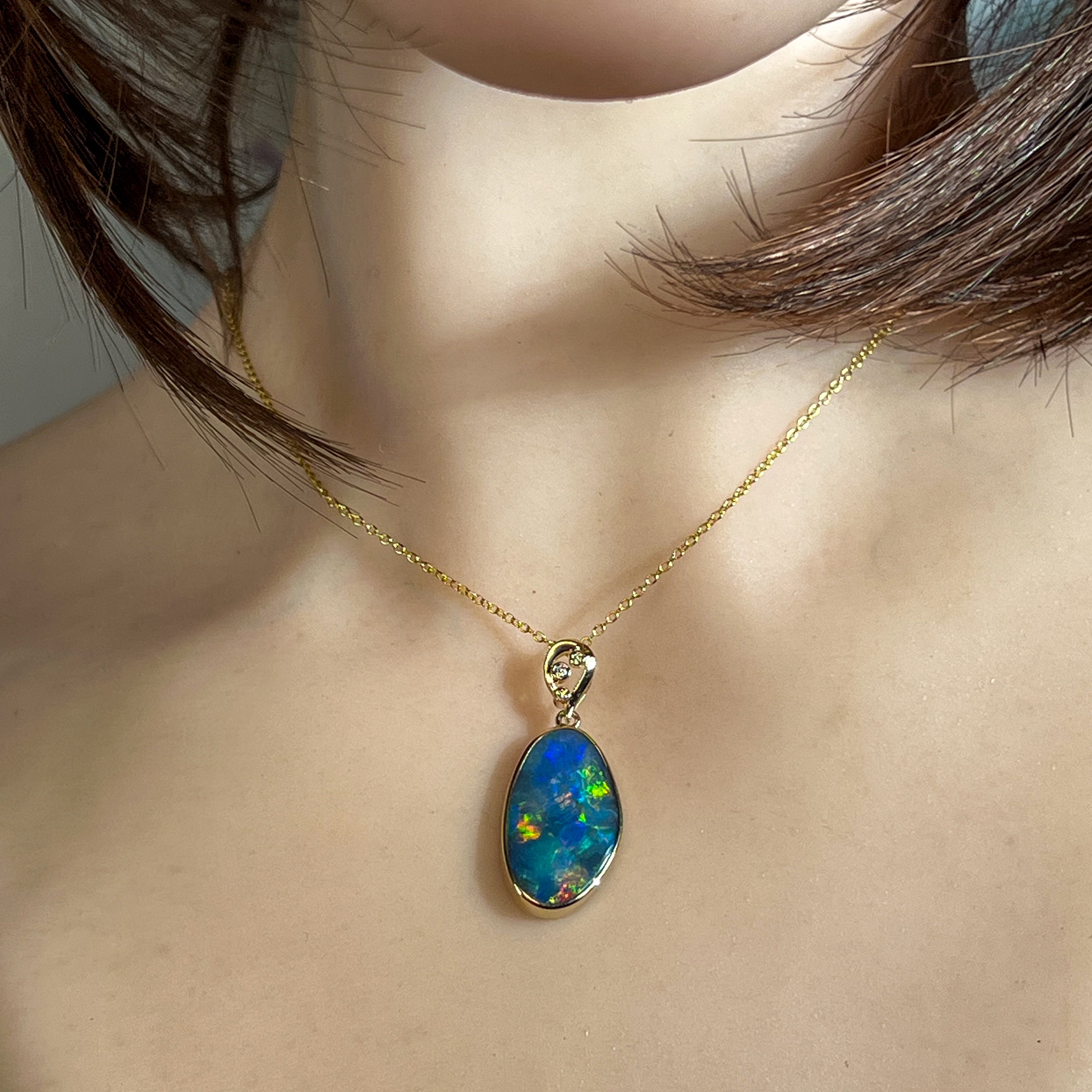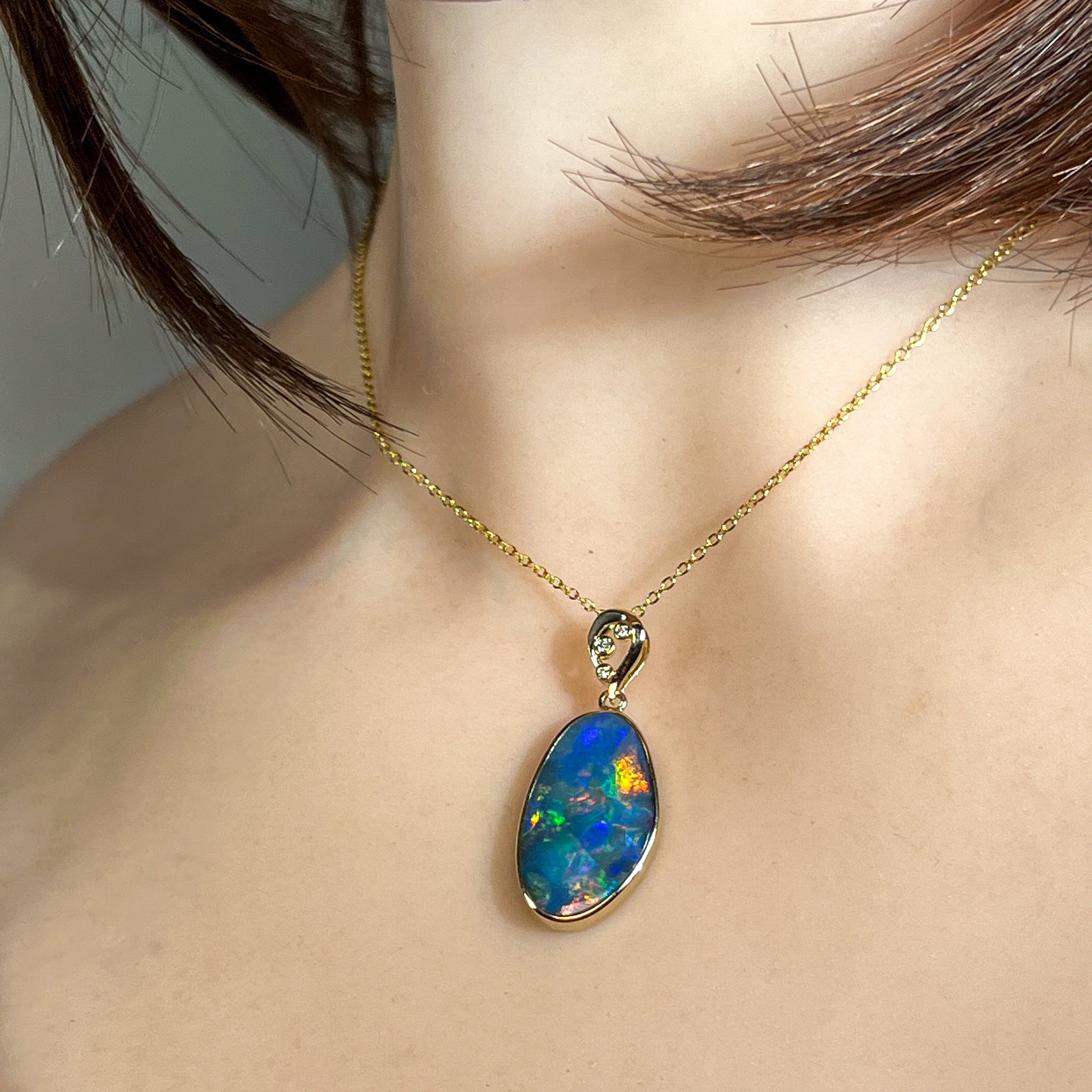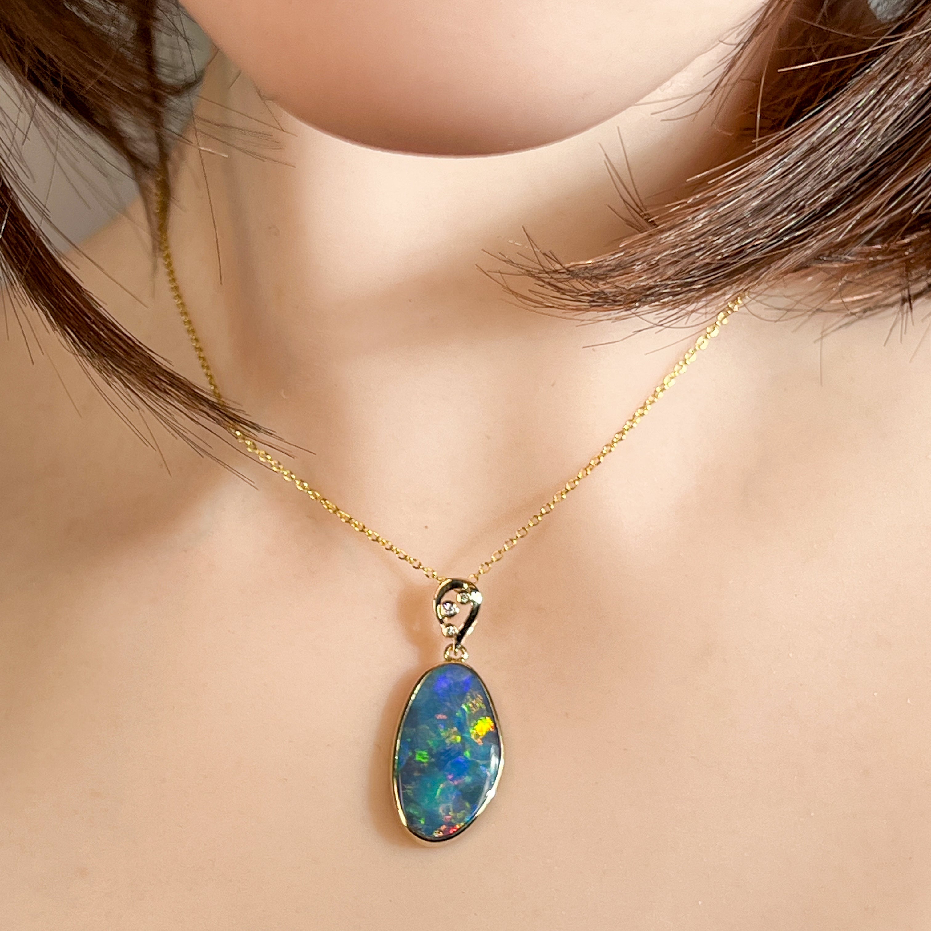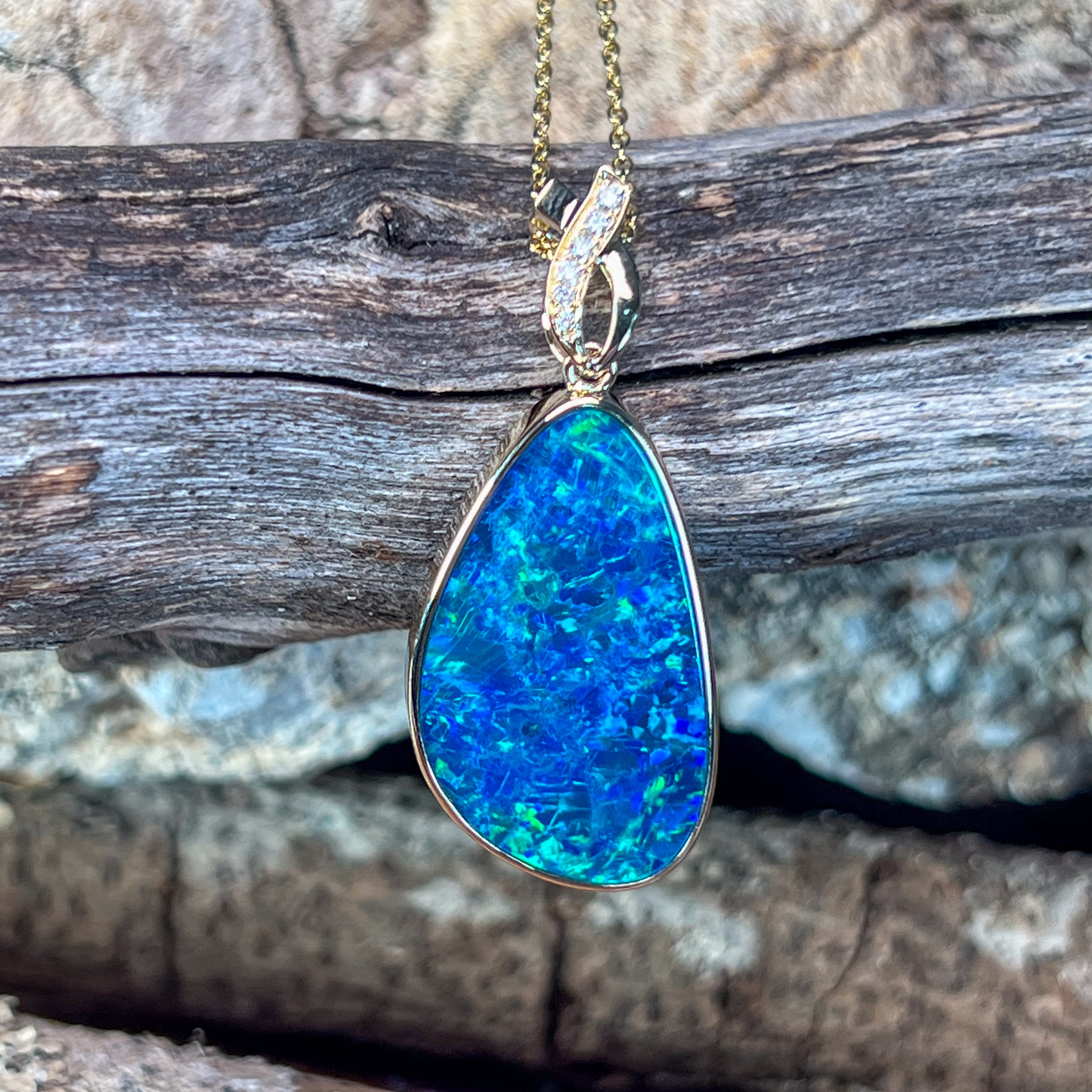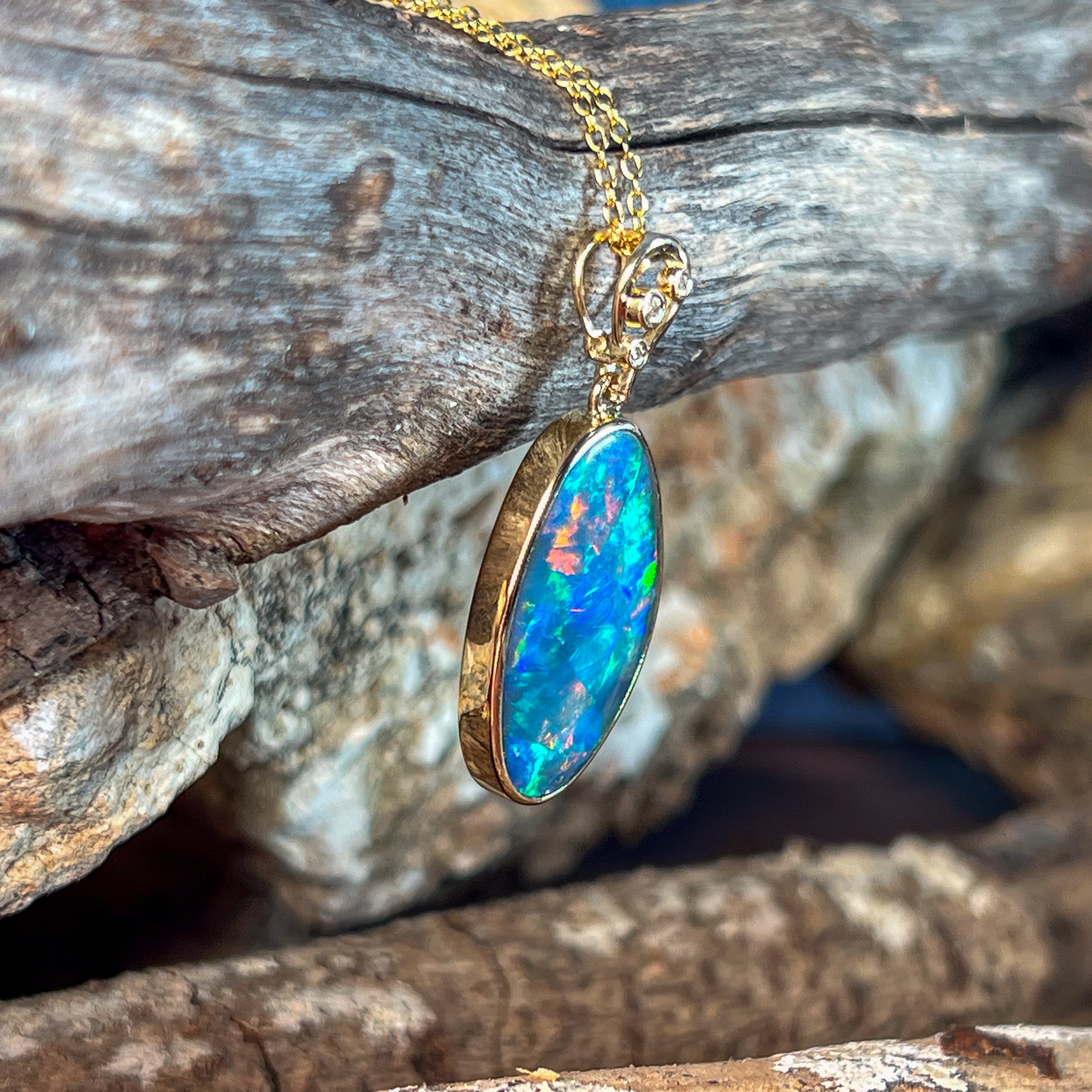 14kt Yellow Gold Opal doublet 8.5ct and diamond pendant