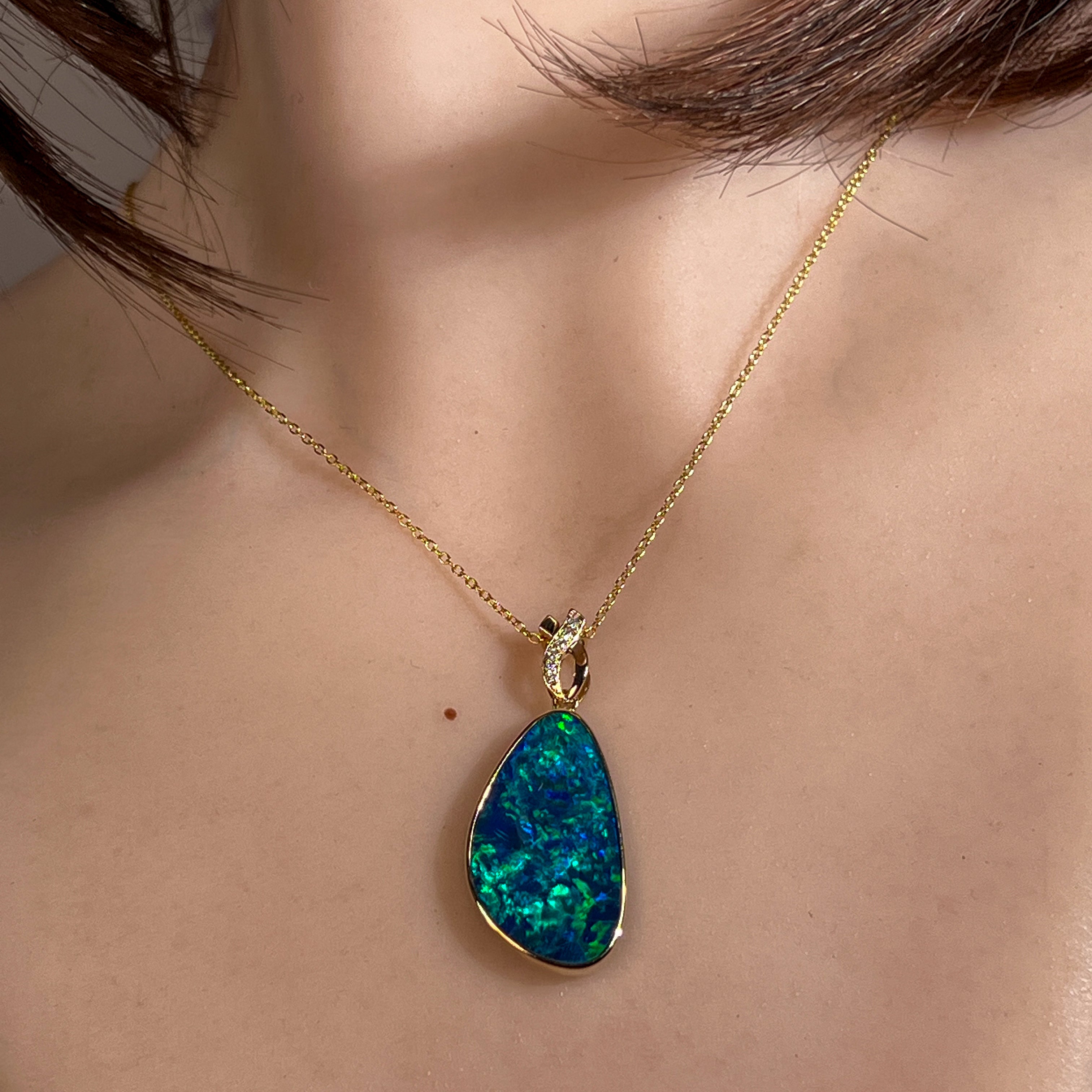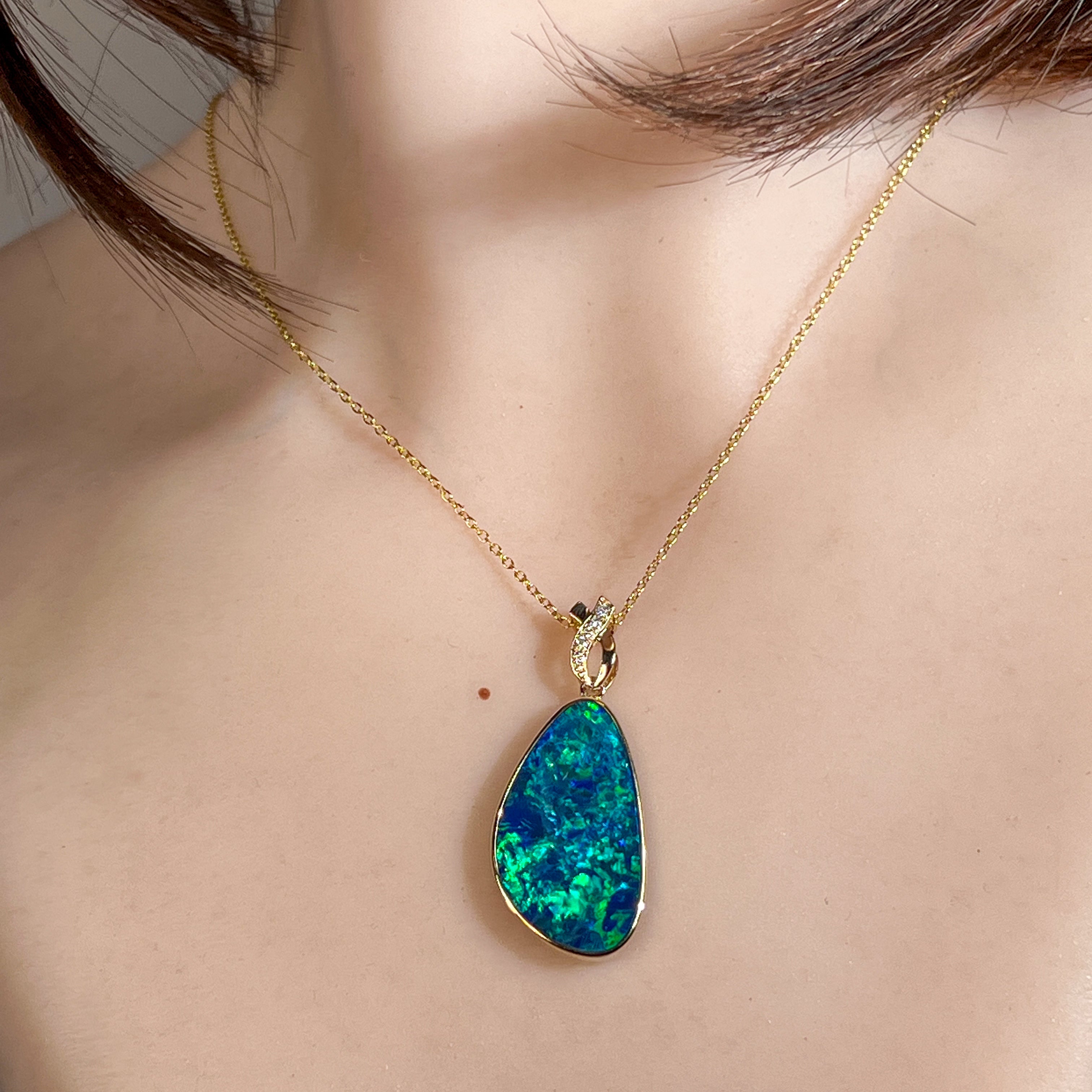 14kt Yellow Gold Opal doublet 7.35ct and diamond pendant