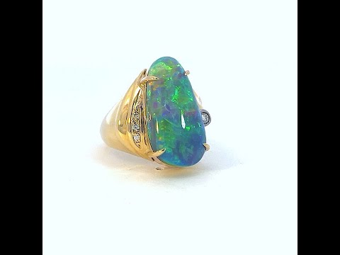 18kt Yellow Gold Black Opal 9.19ct and diamond designer ring
