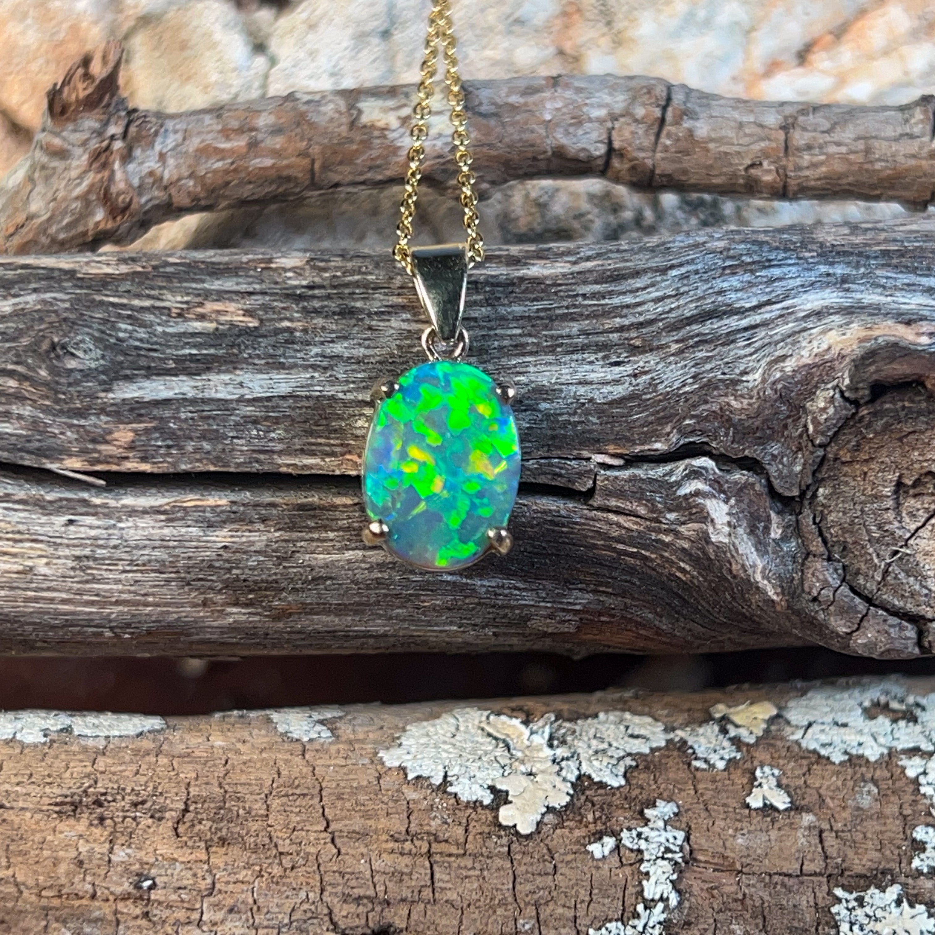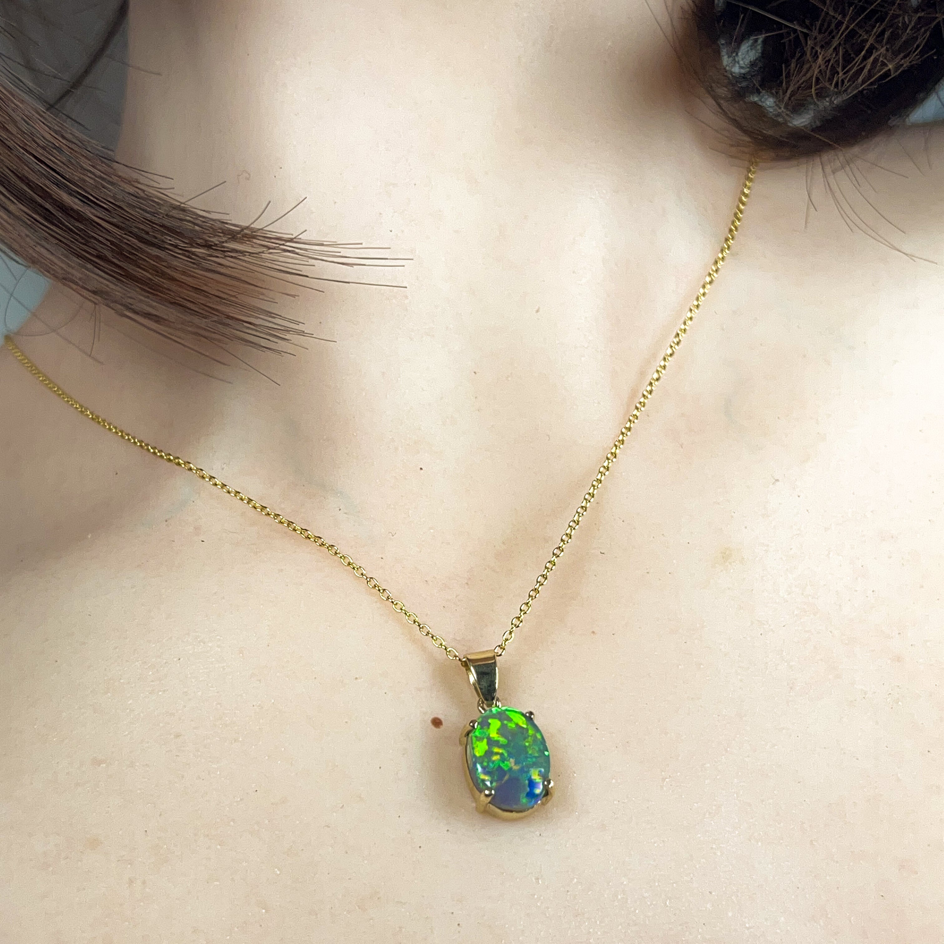 One 14kt Yellow Gold 4 claw classic set Opal pendant