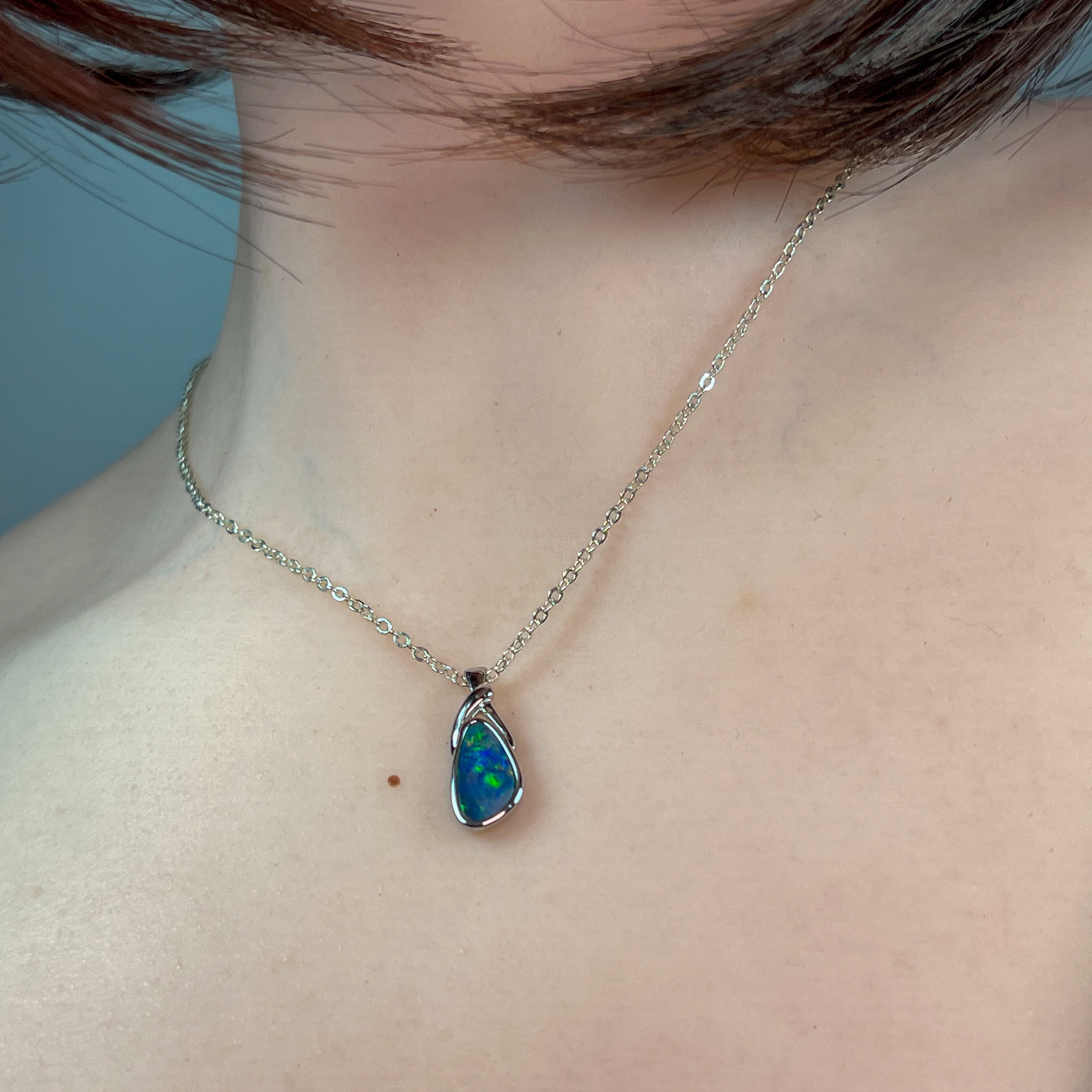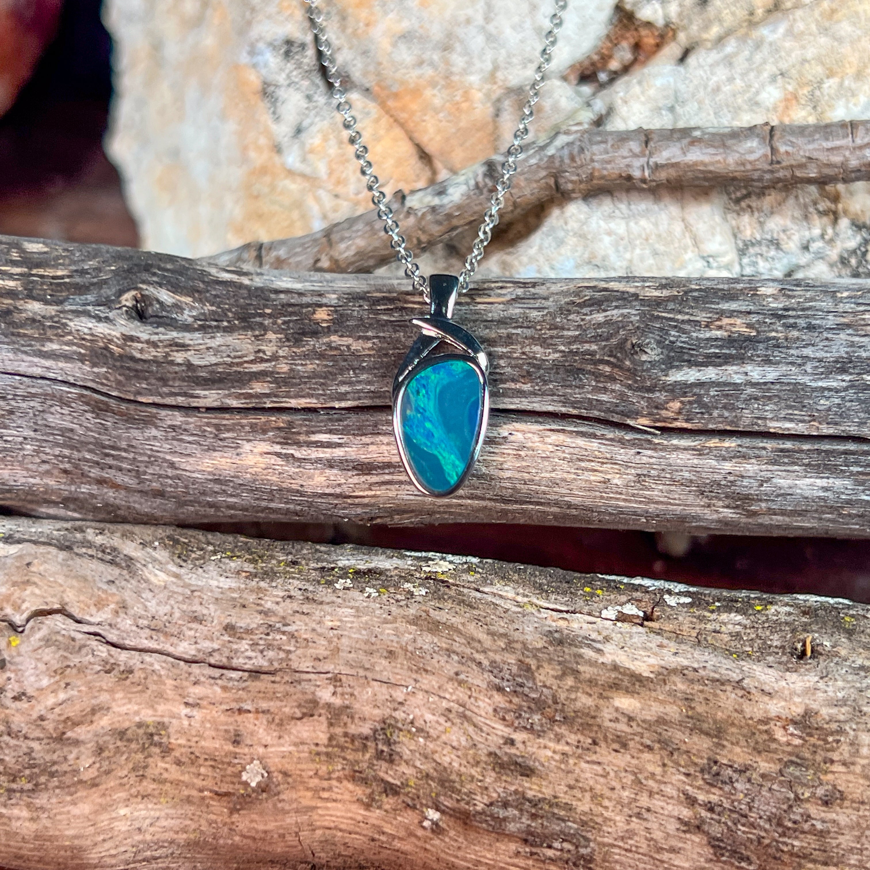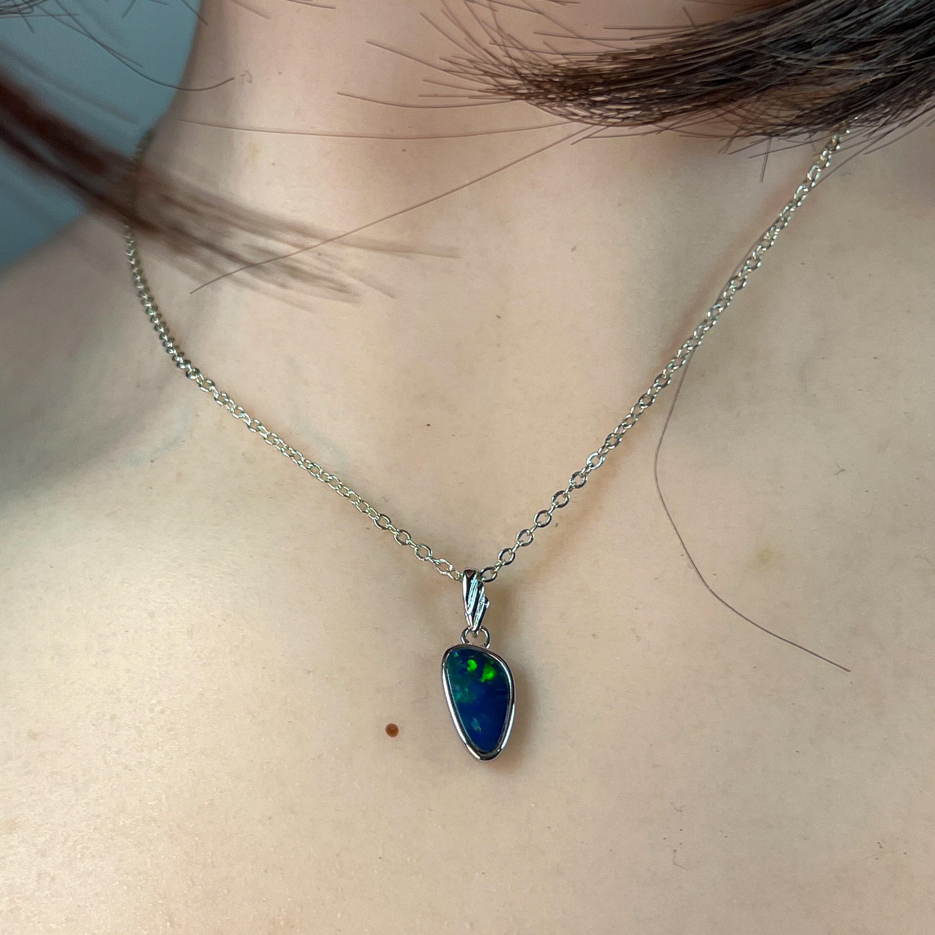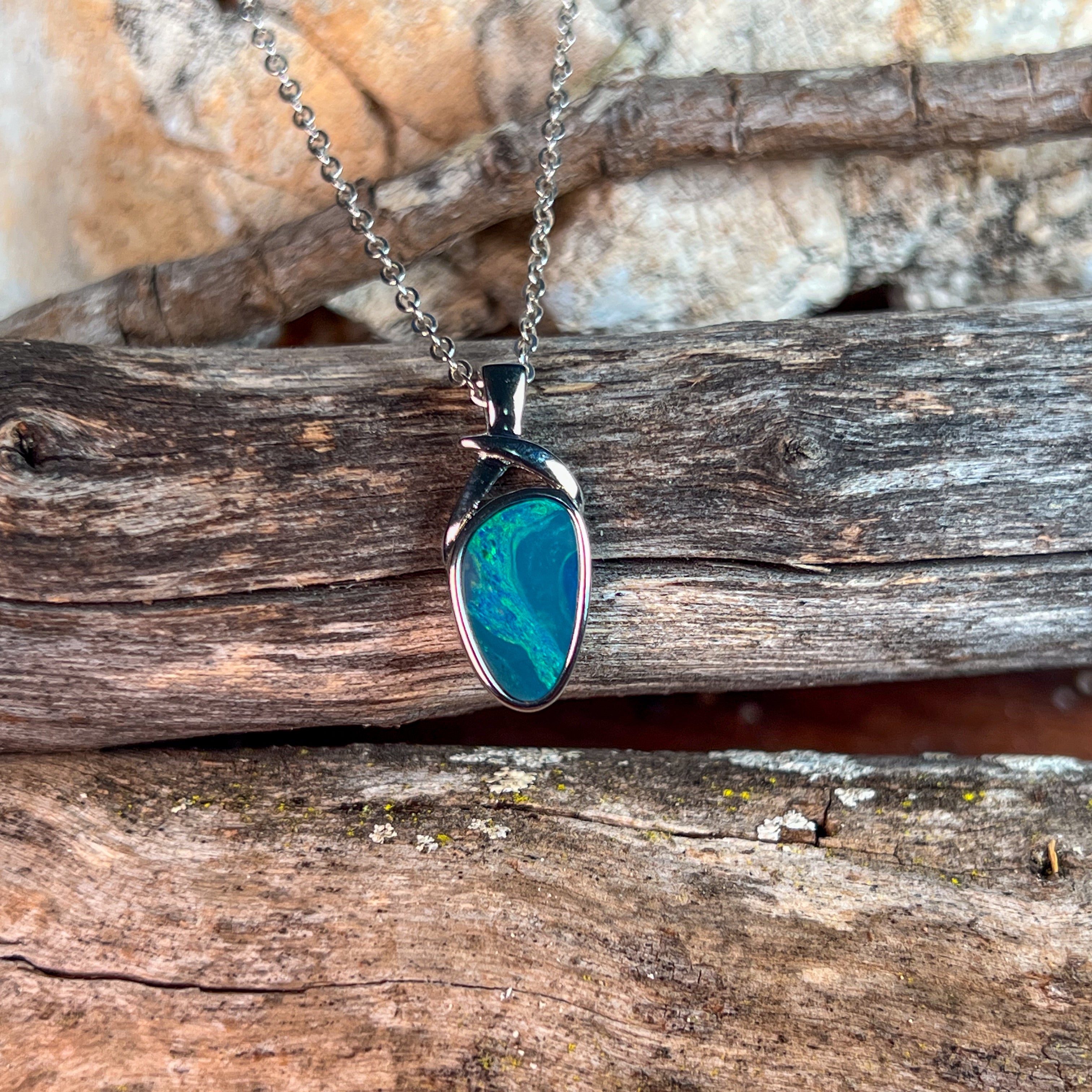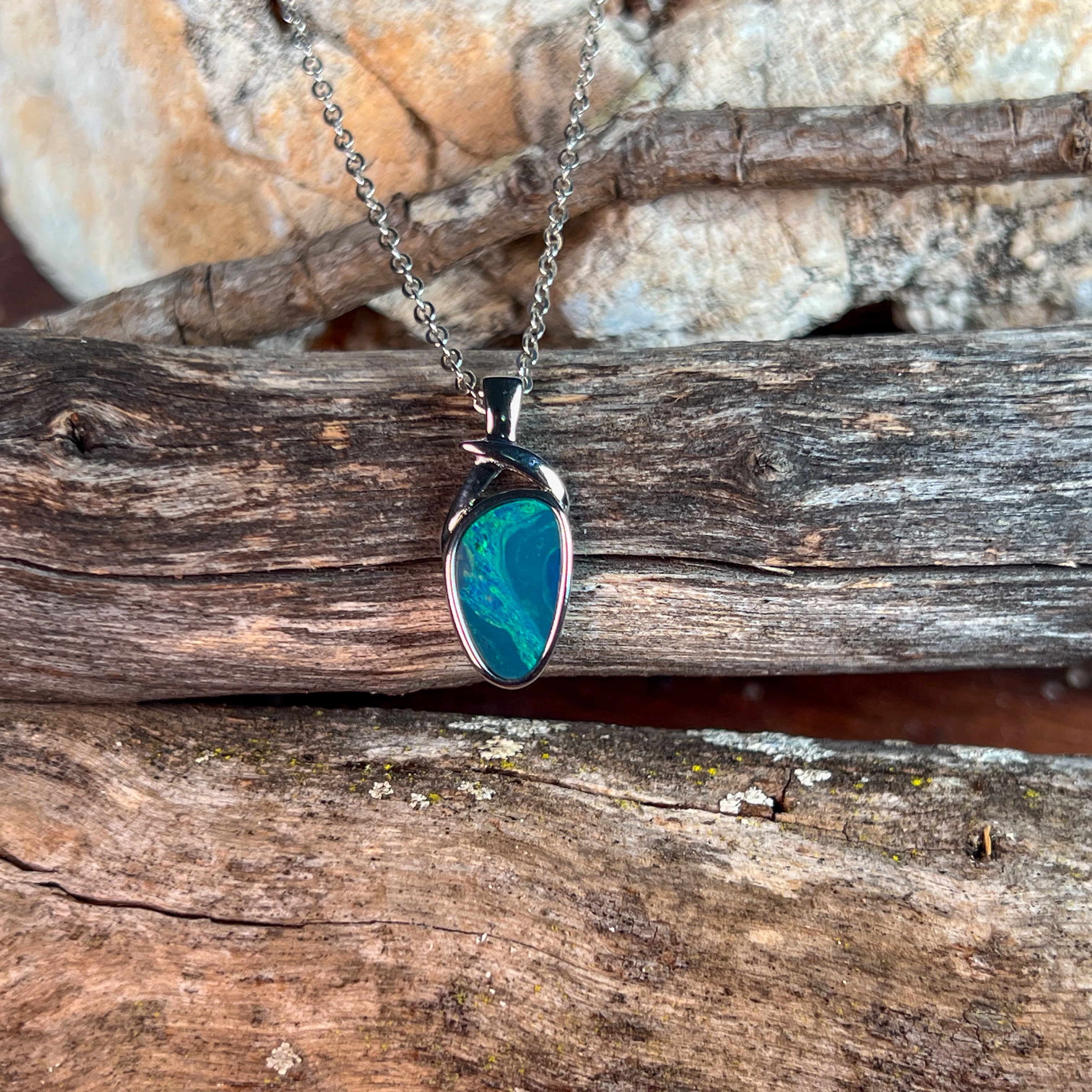 Sterling Silver freeform Green Blue Opal doublet pendant