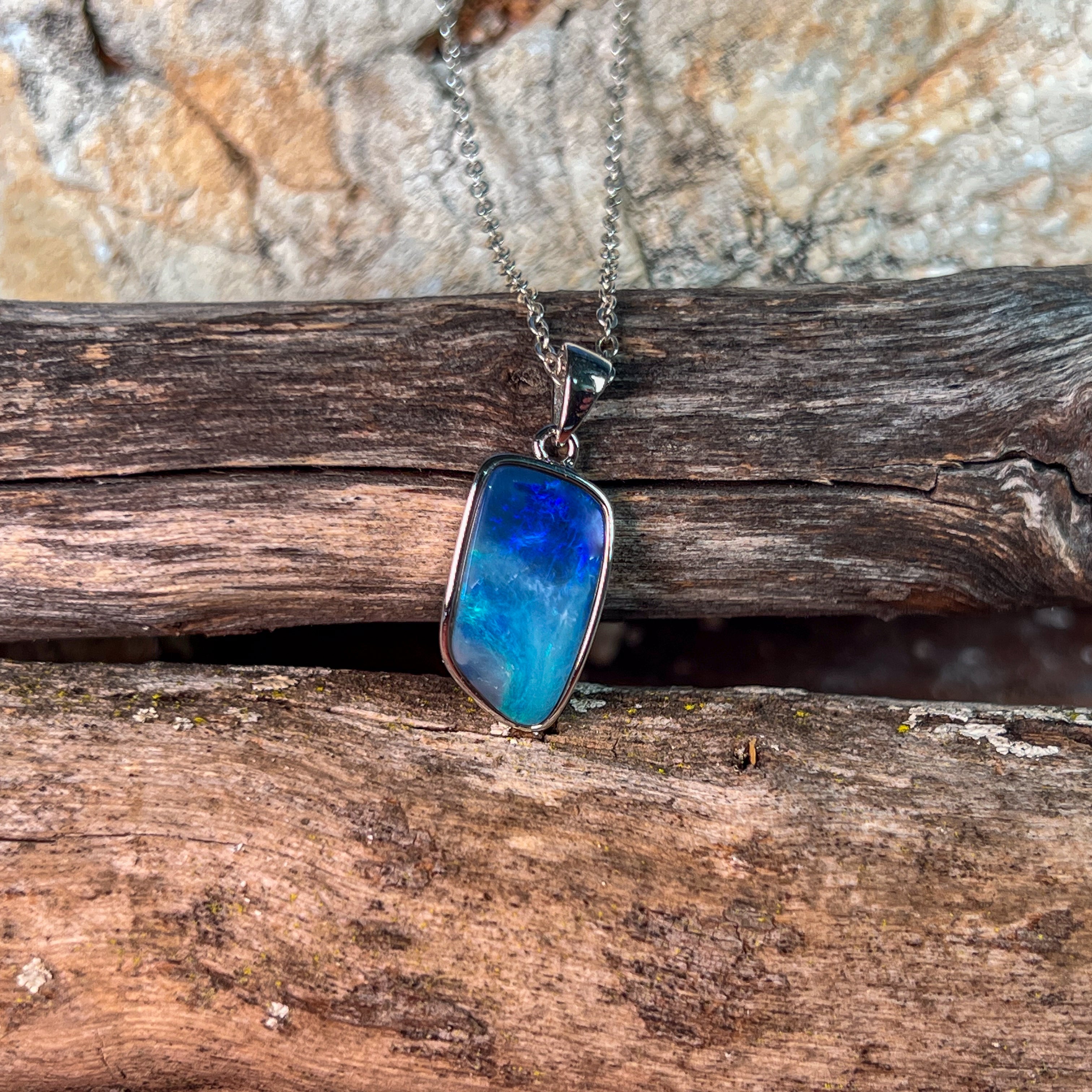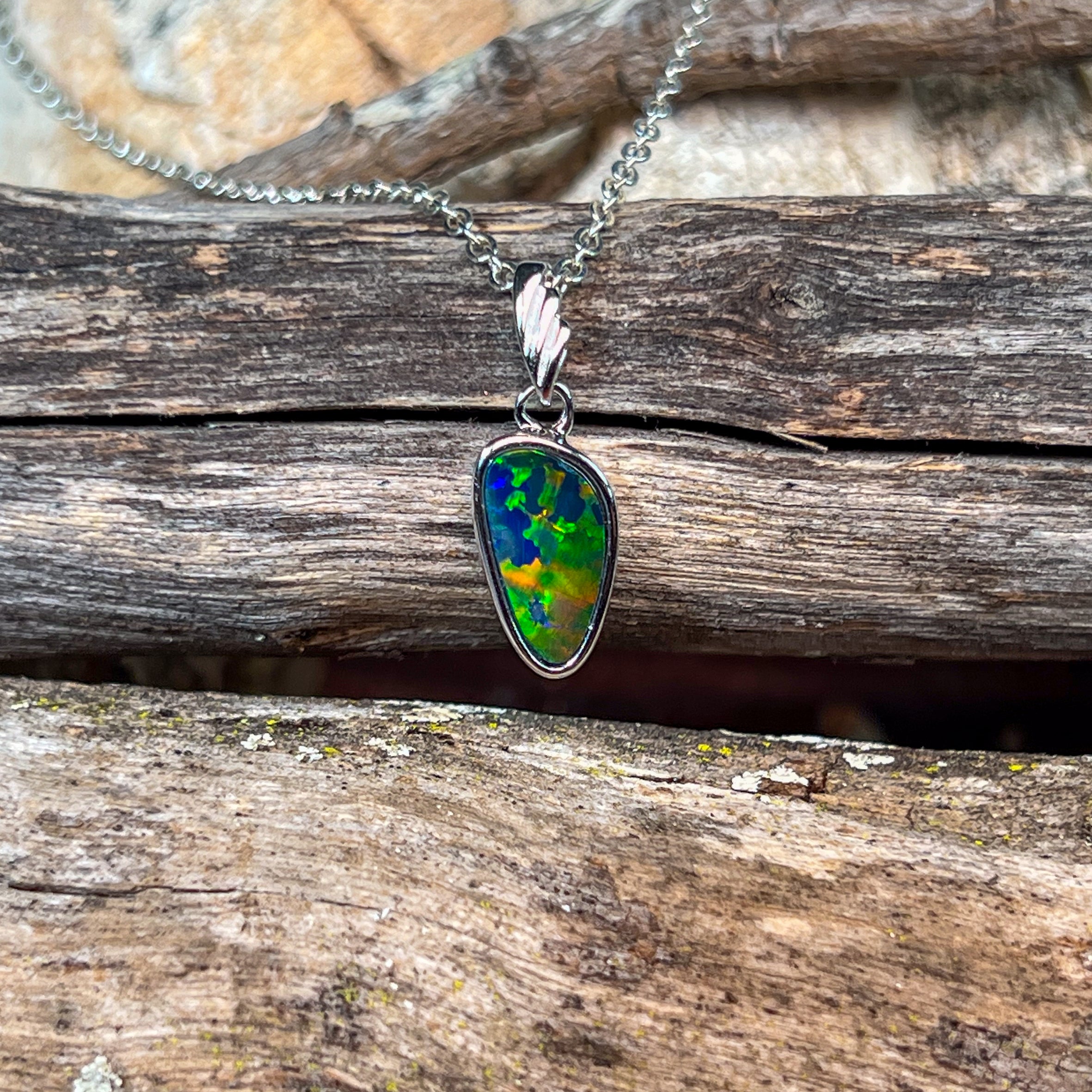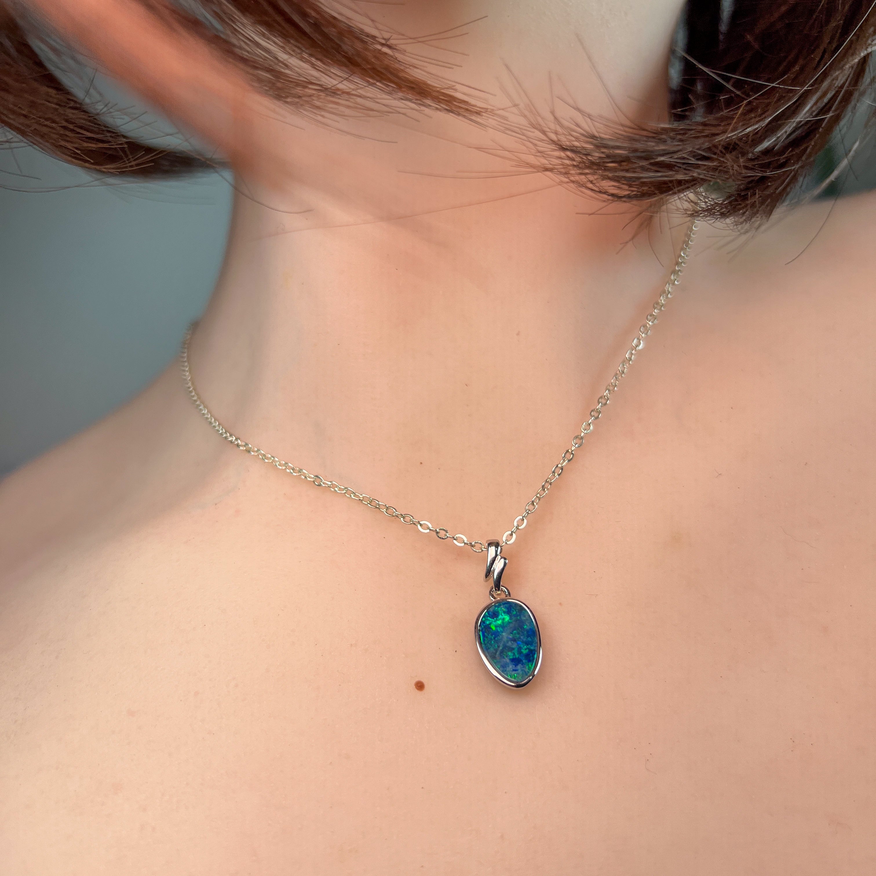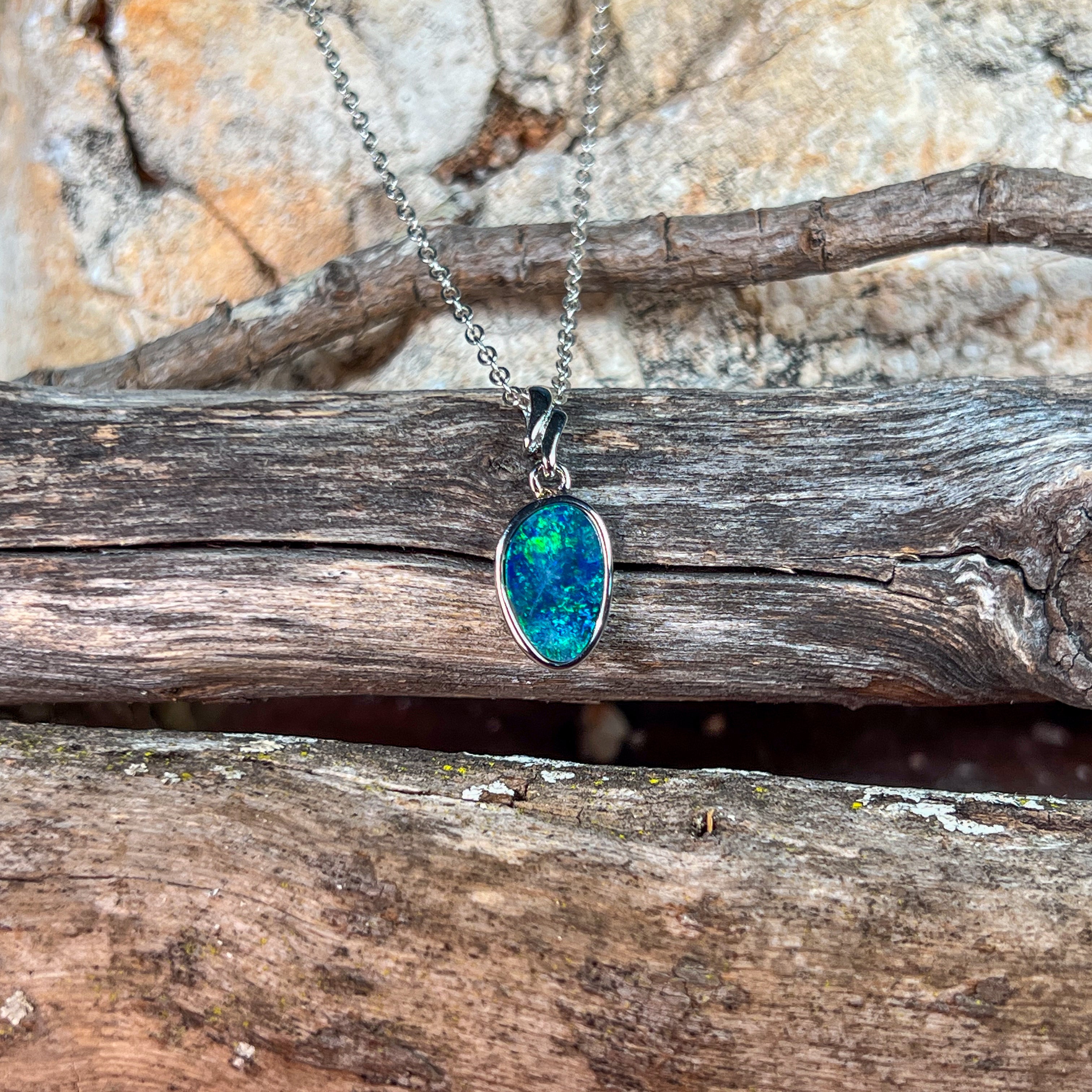 Sterling Silver freeform Green Blue Opal doublet pendant