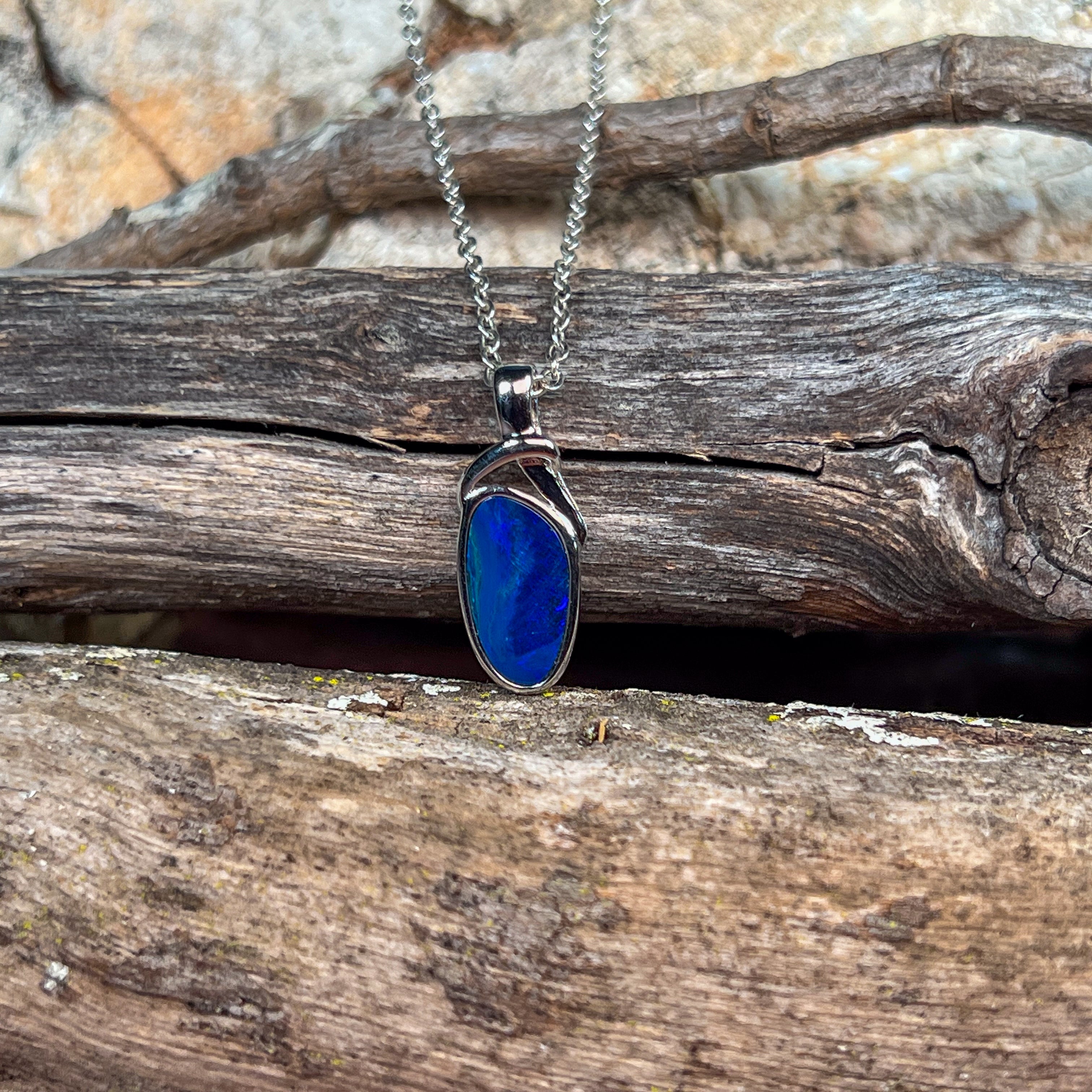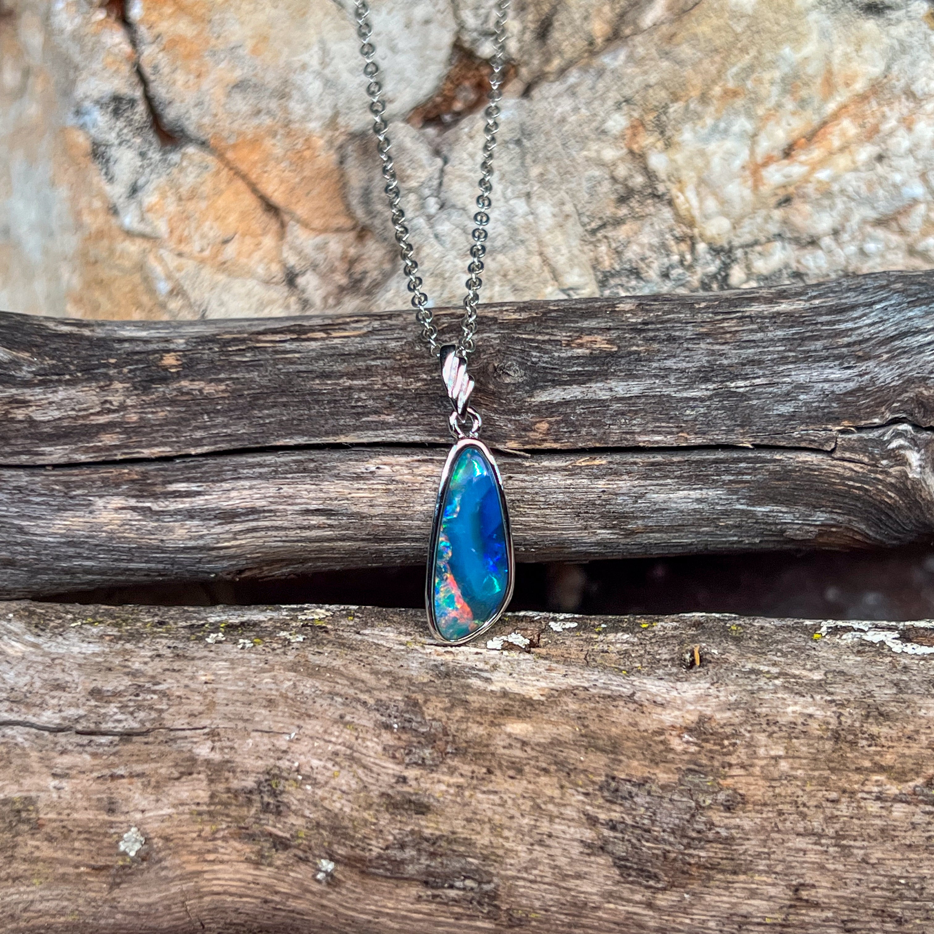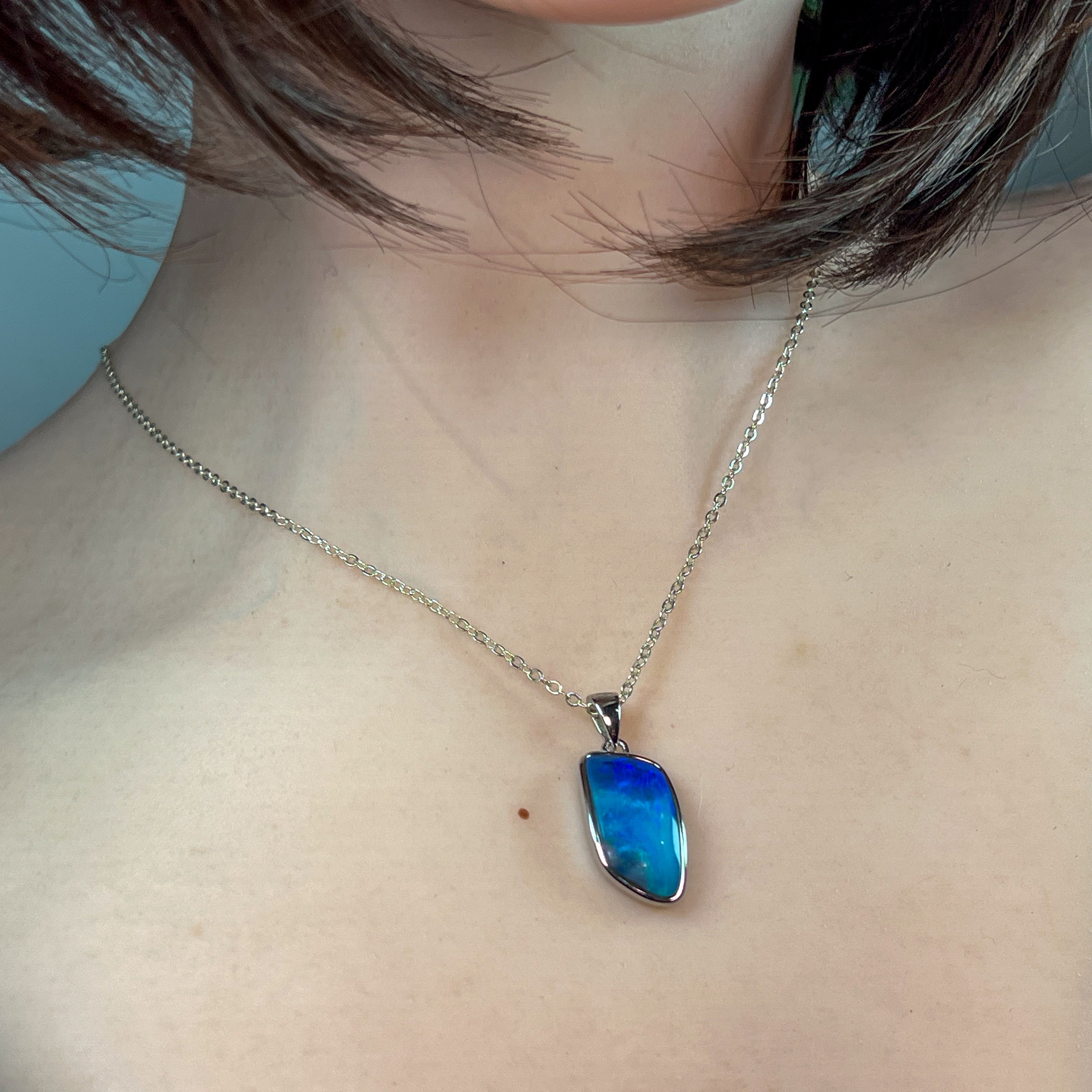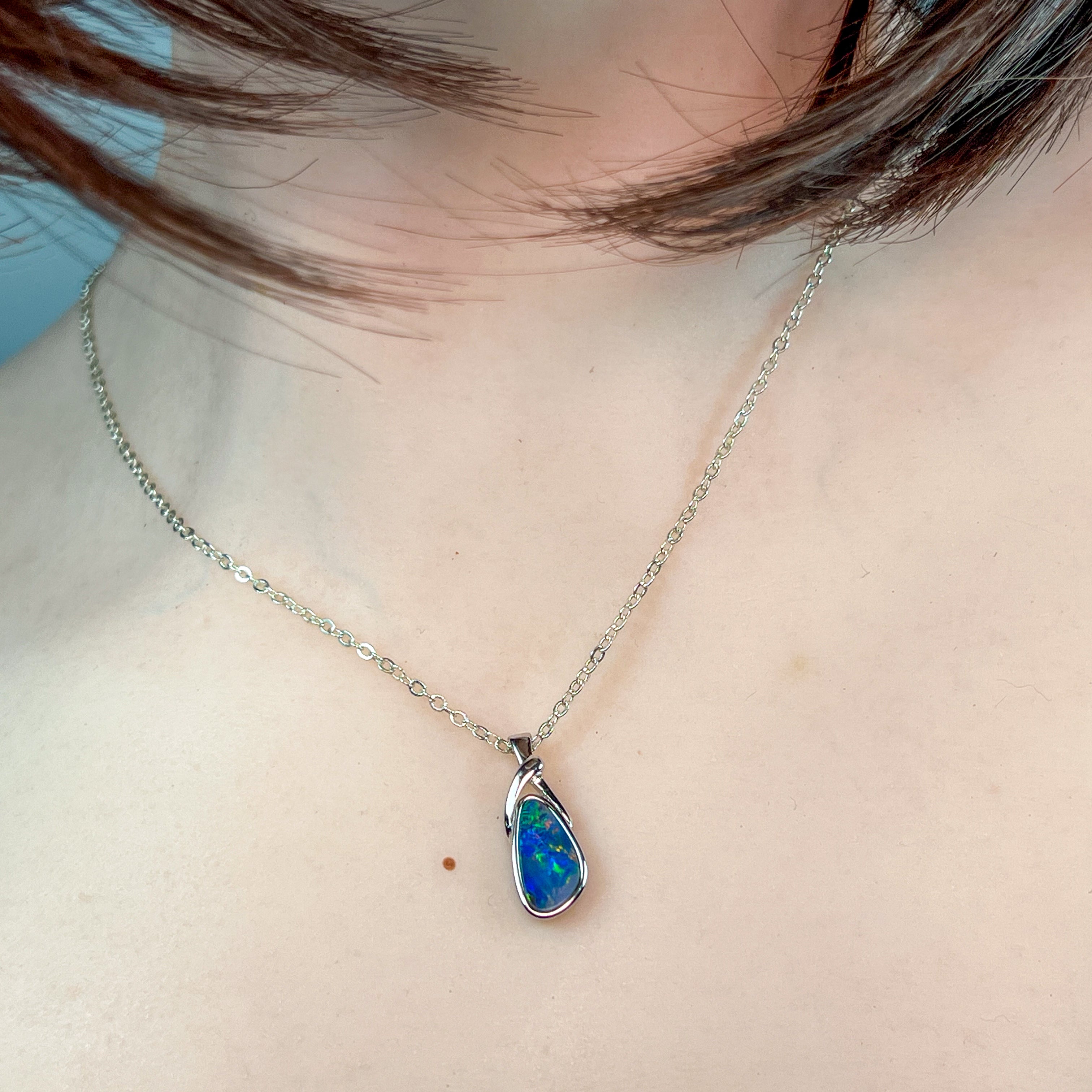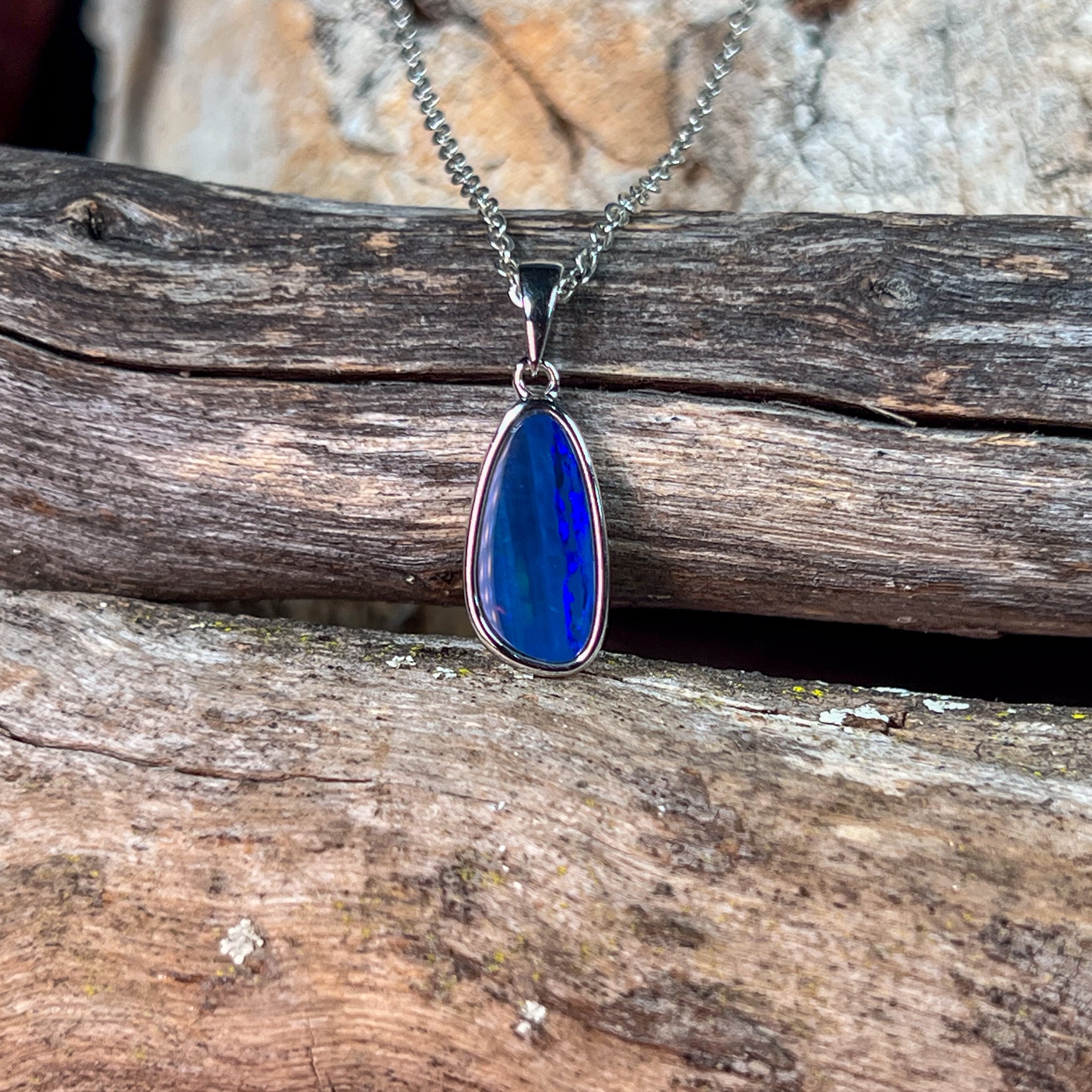 Sterling Silver freeform Green Blue Opal doublet pendant