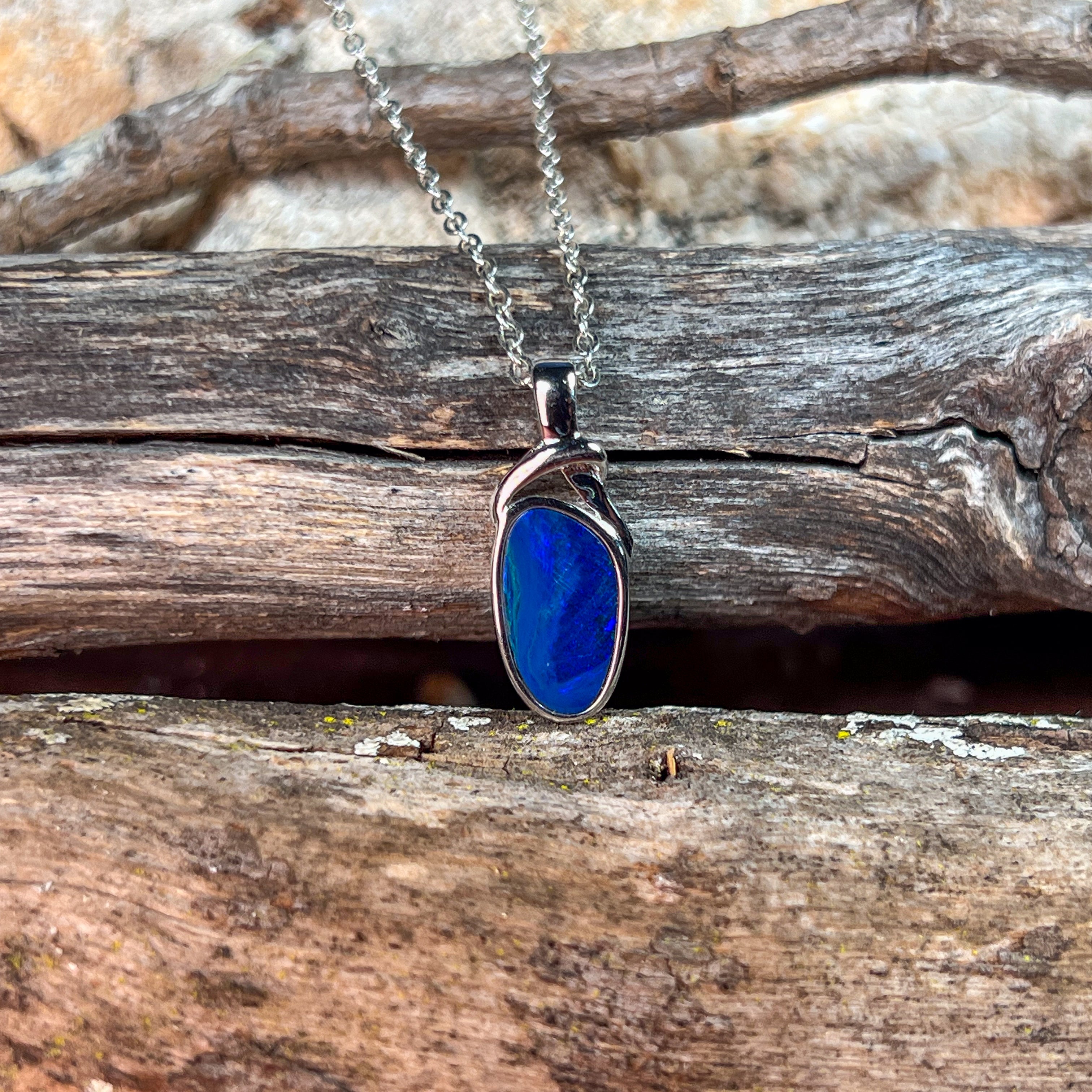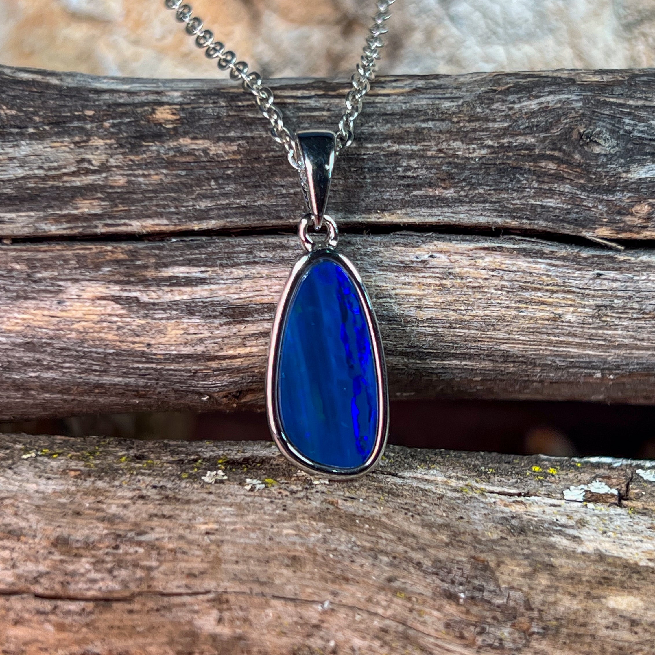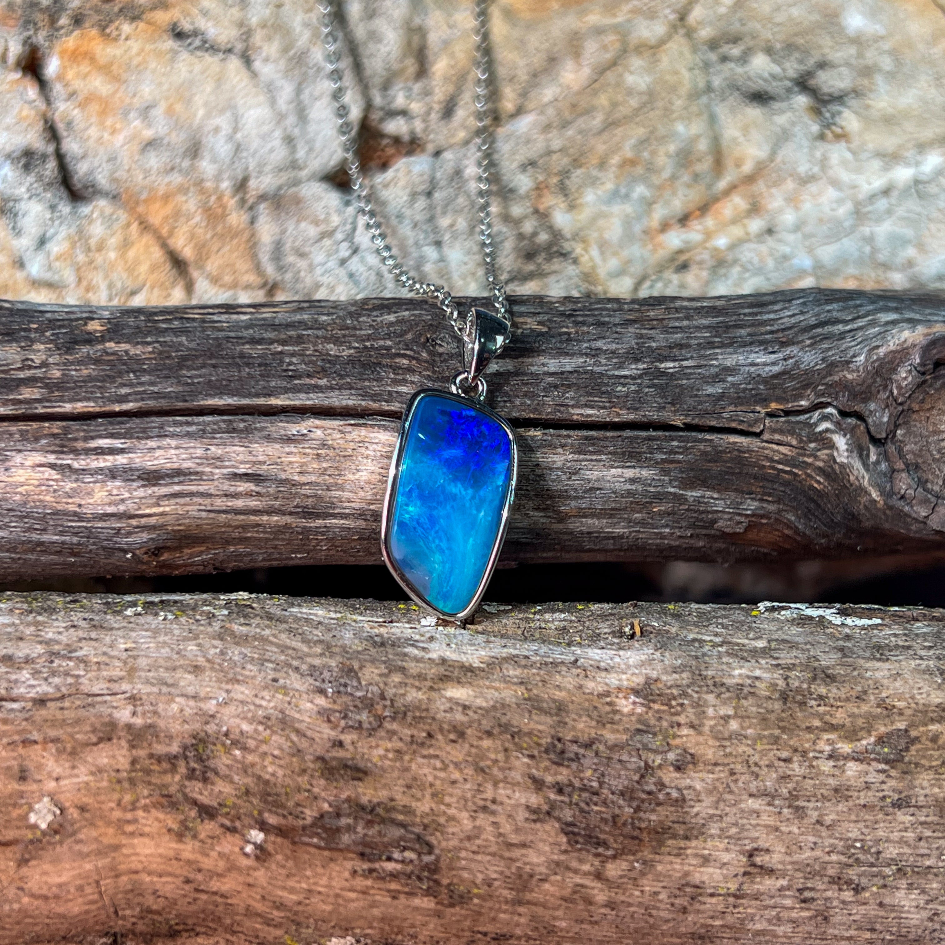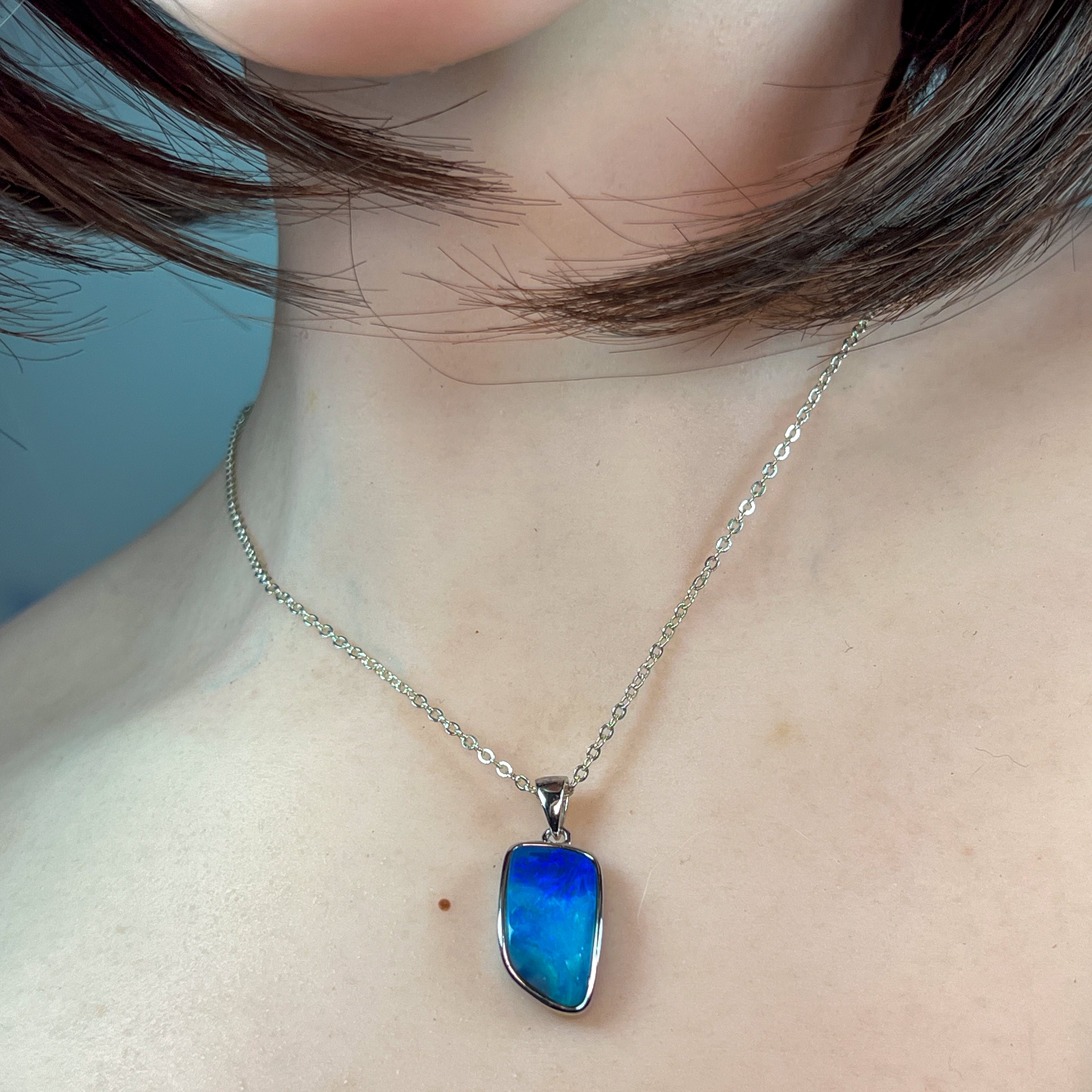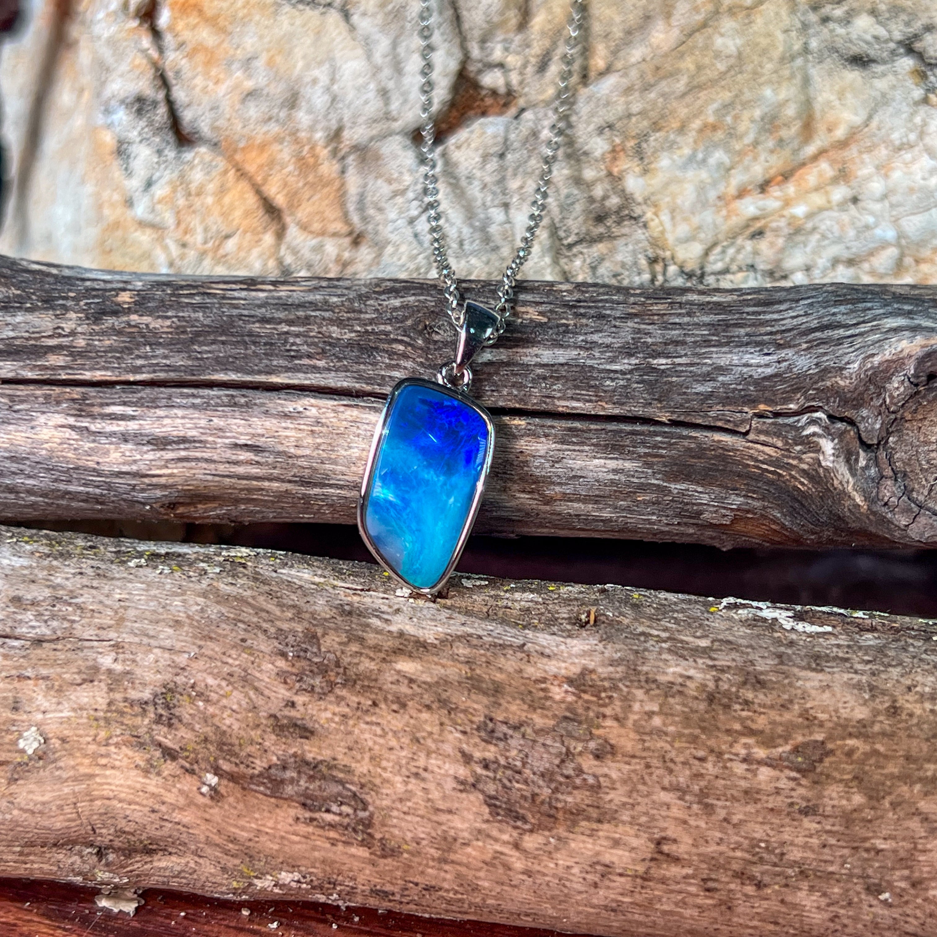 Sterling Silver freeform Green Blue Opal doublet pendant