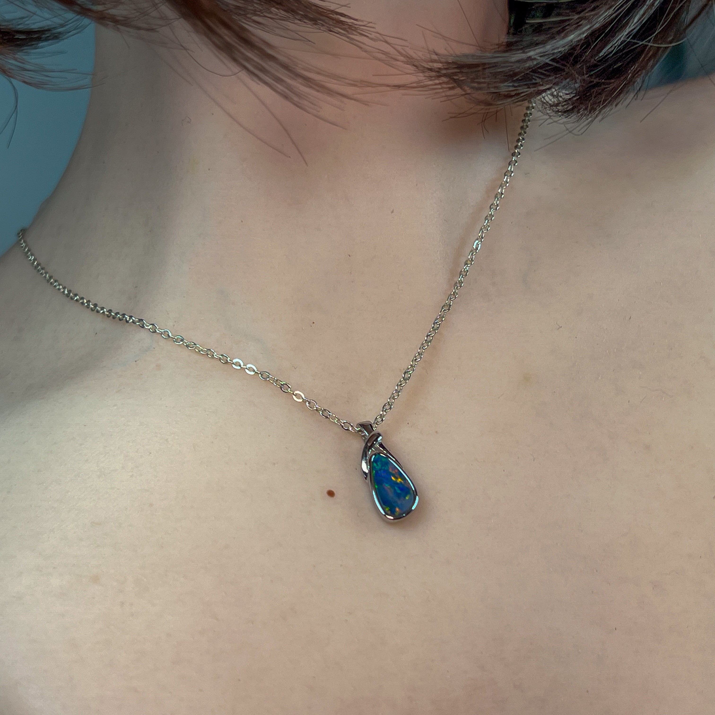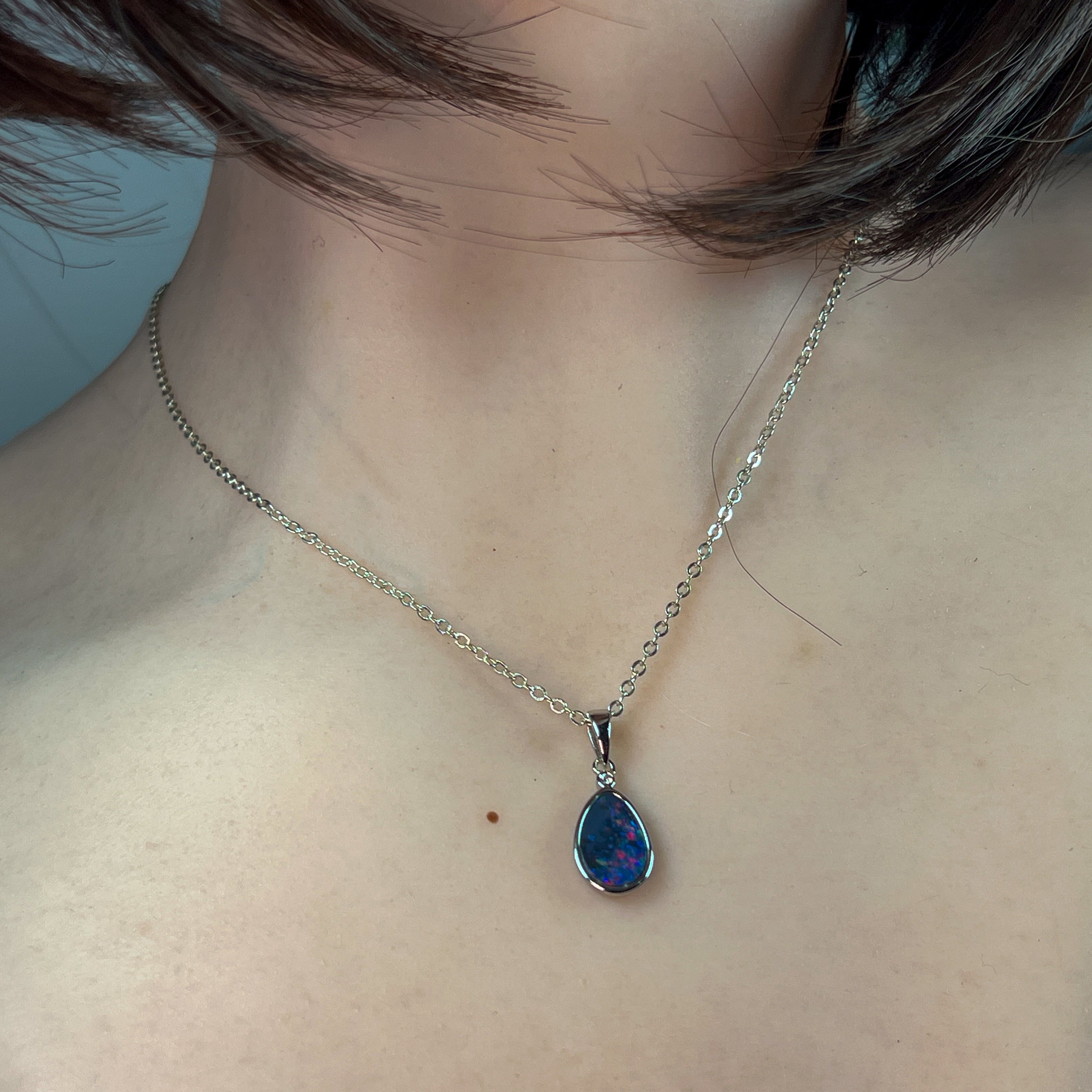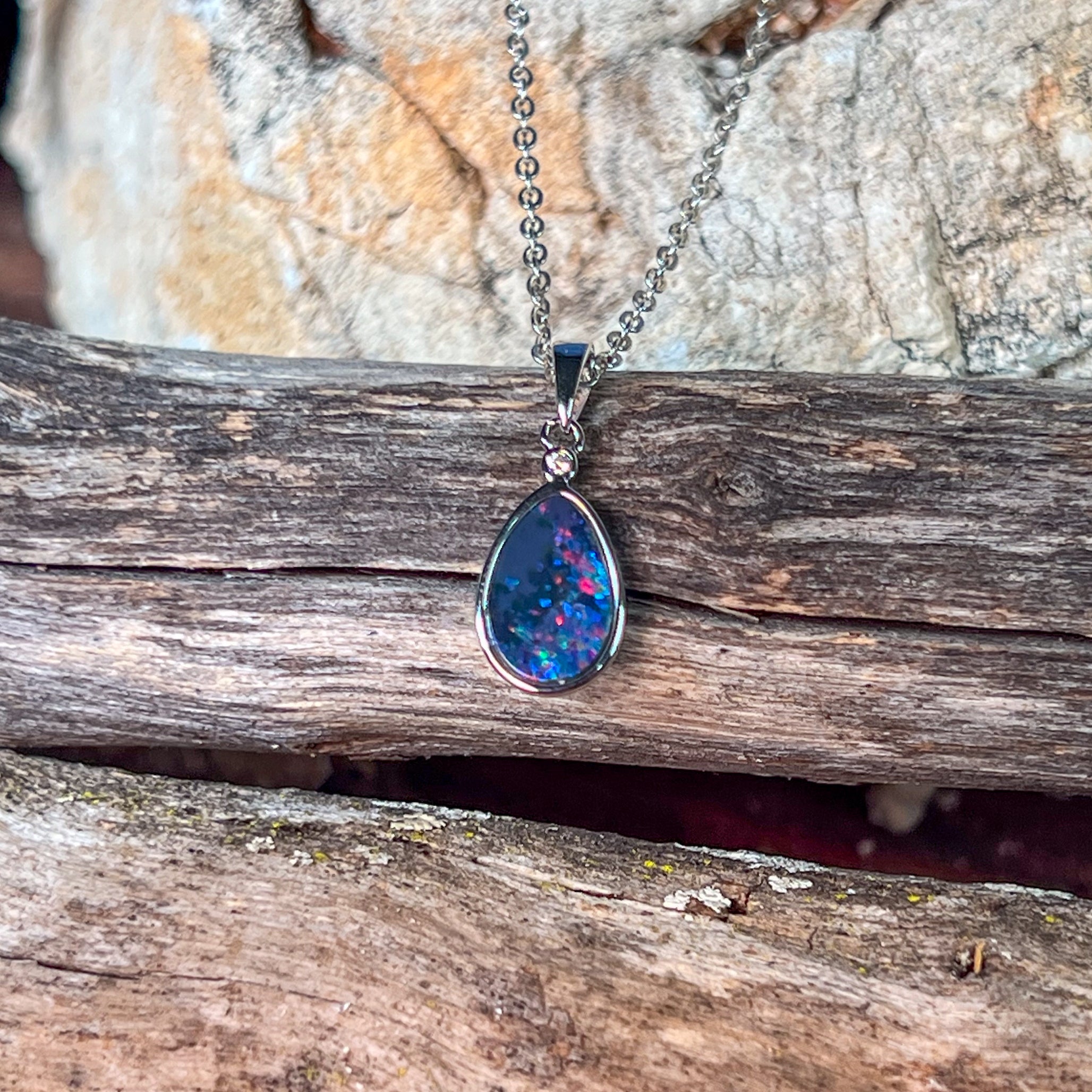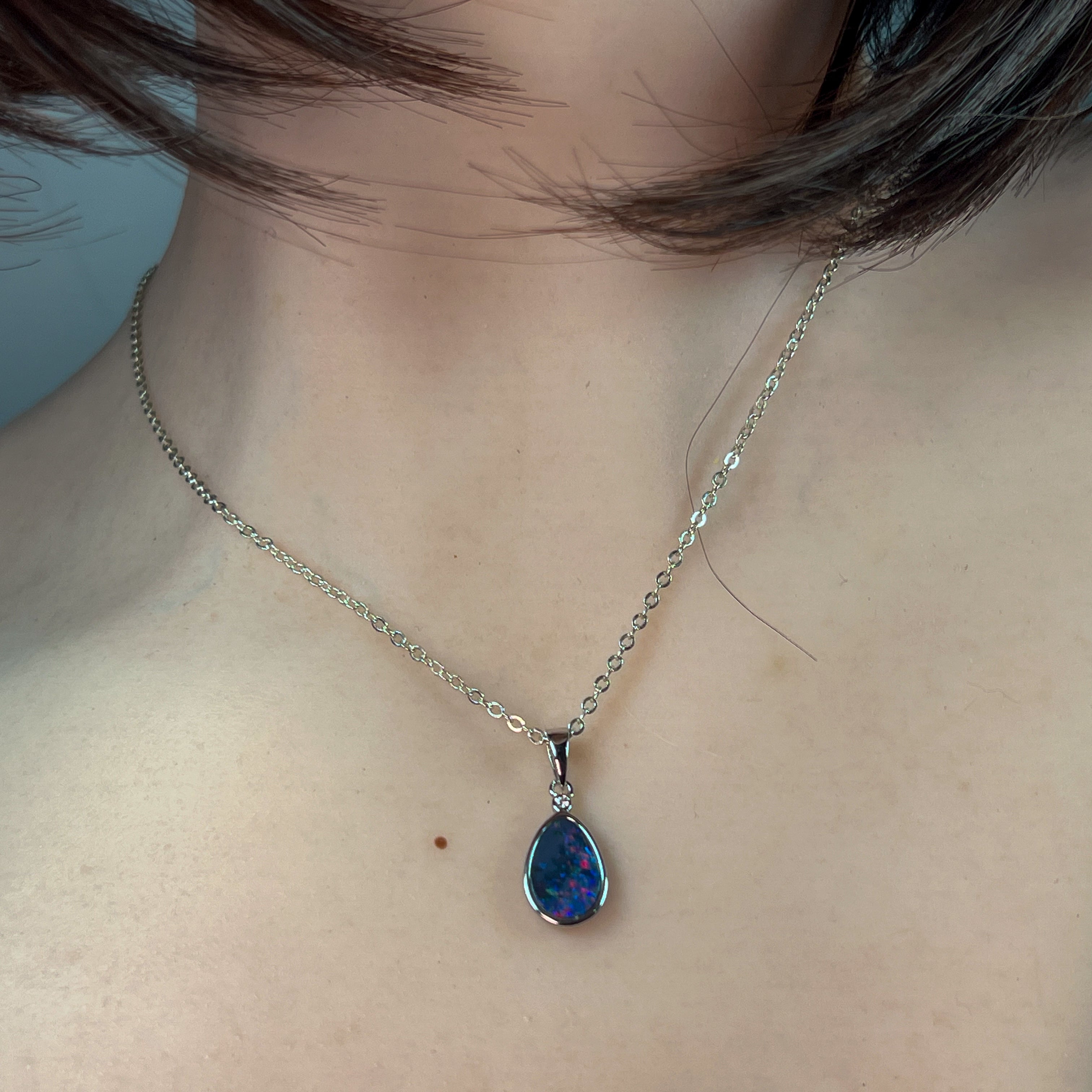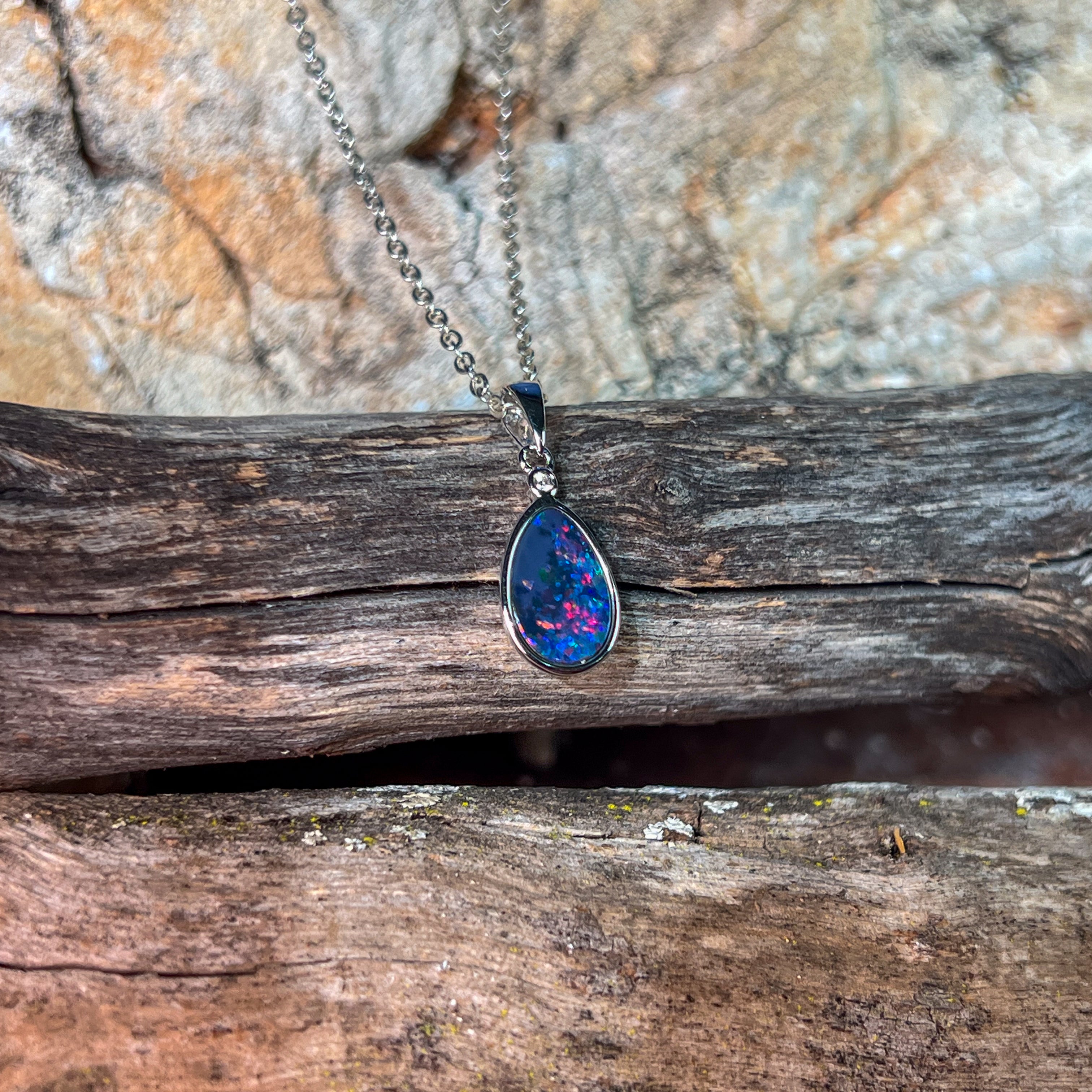 Sterling Silver Pear shape 12x9mm Opal doublet pendant