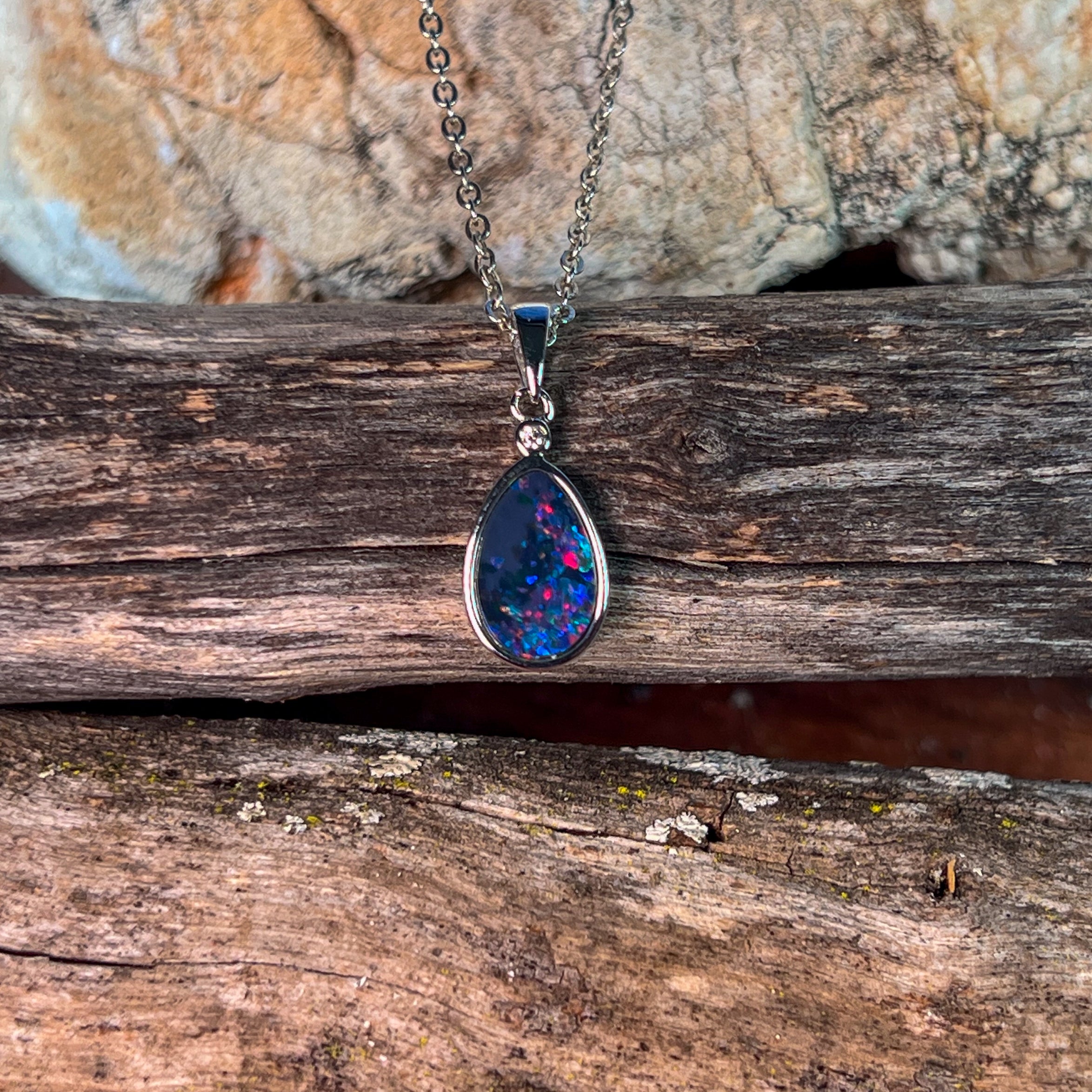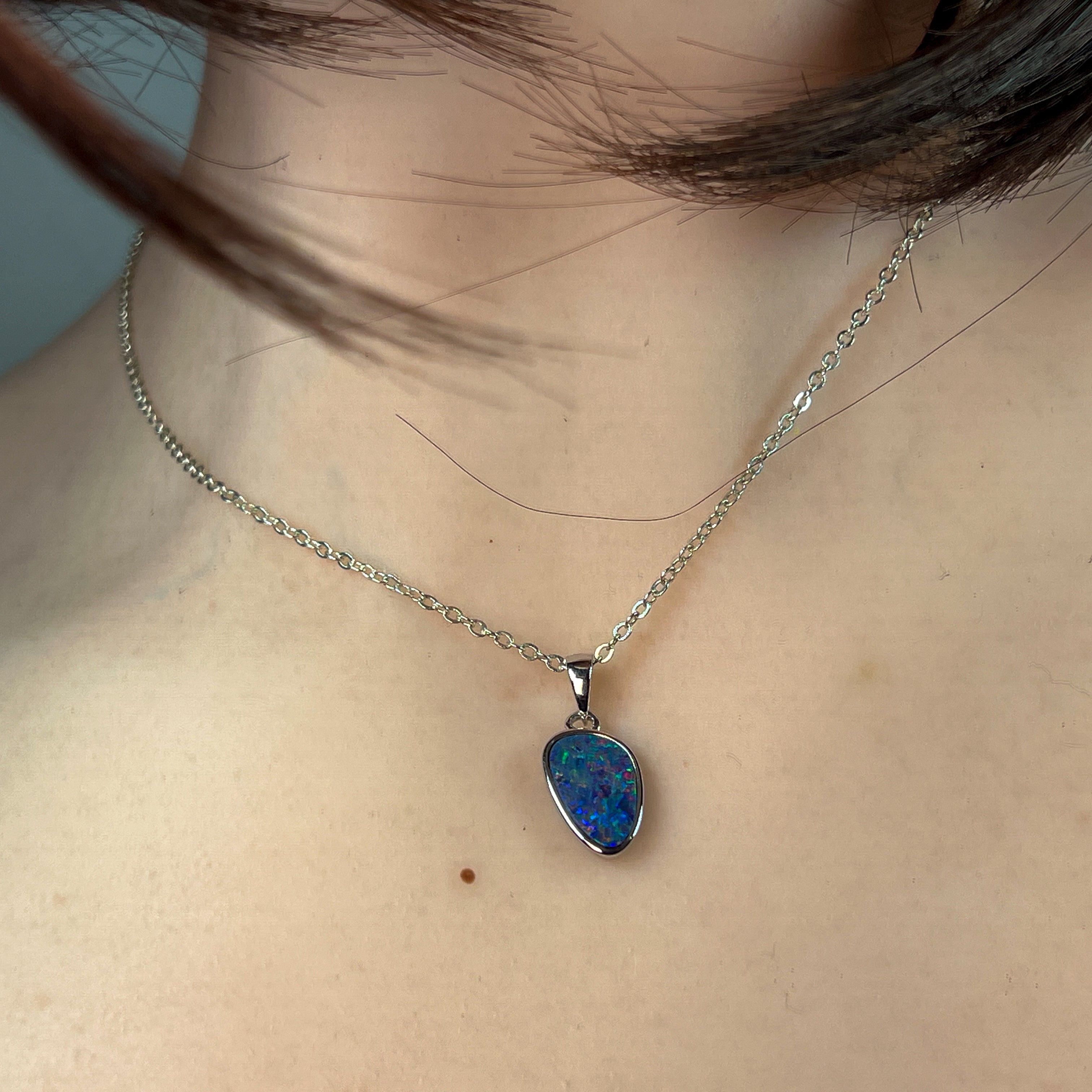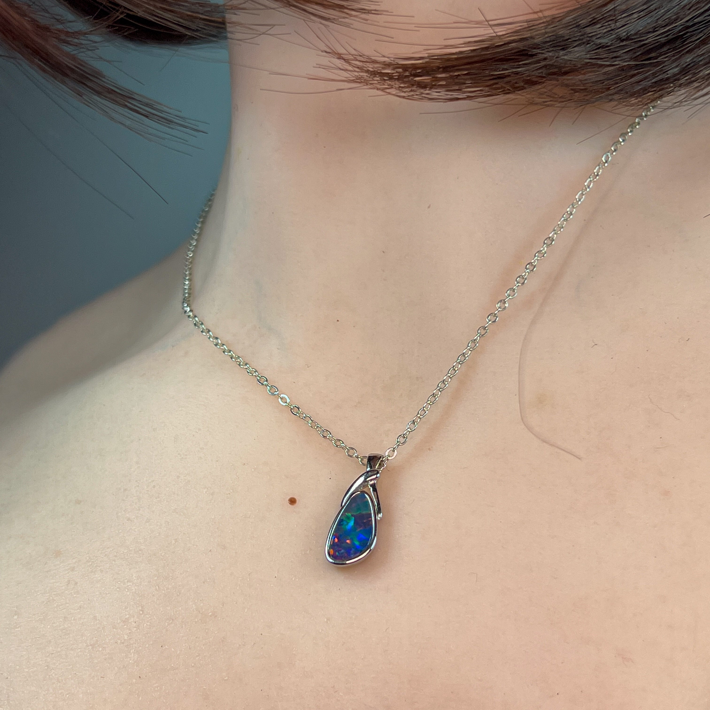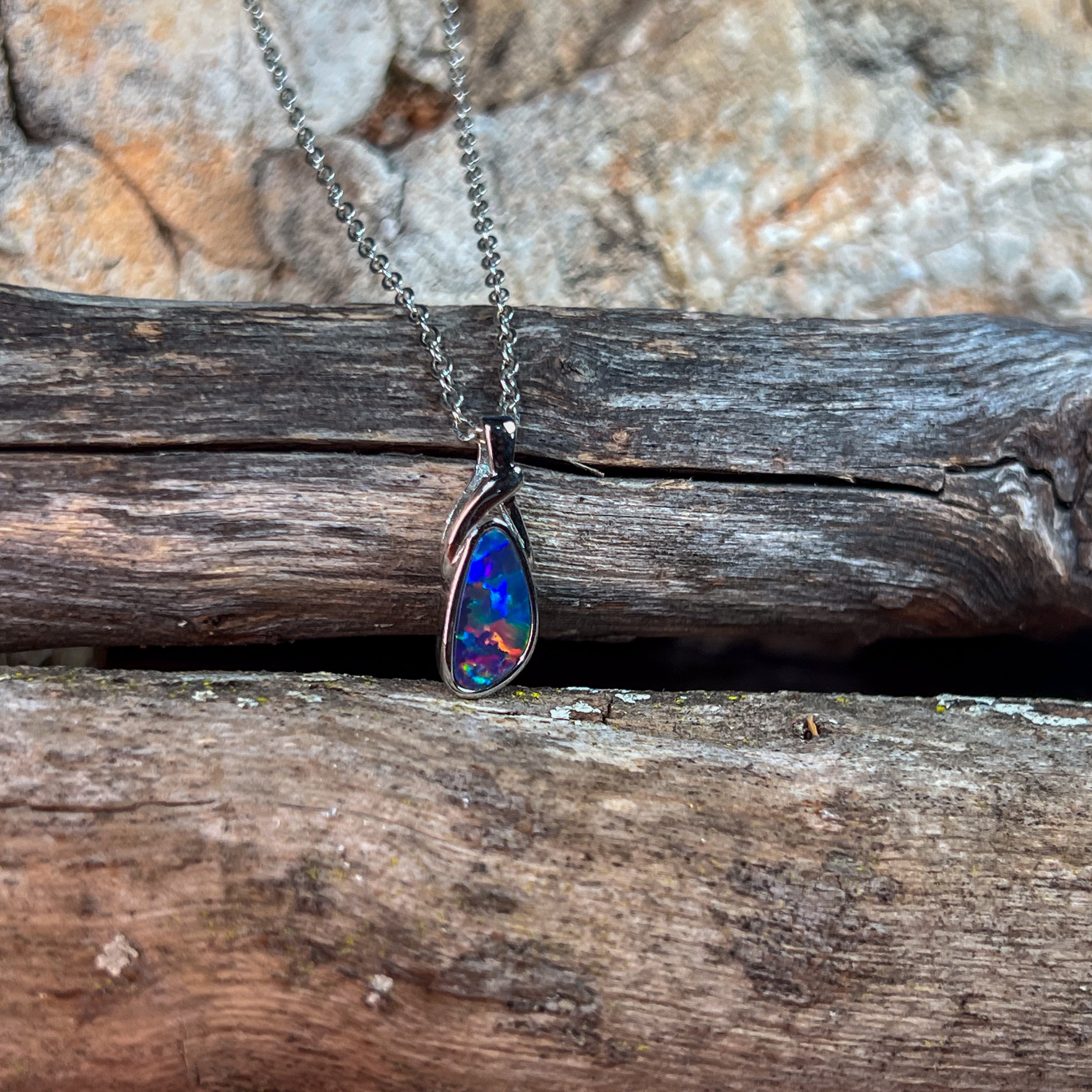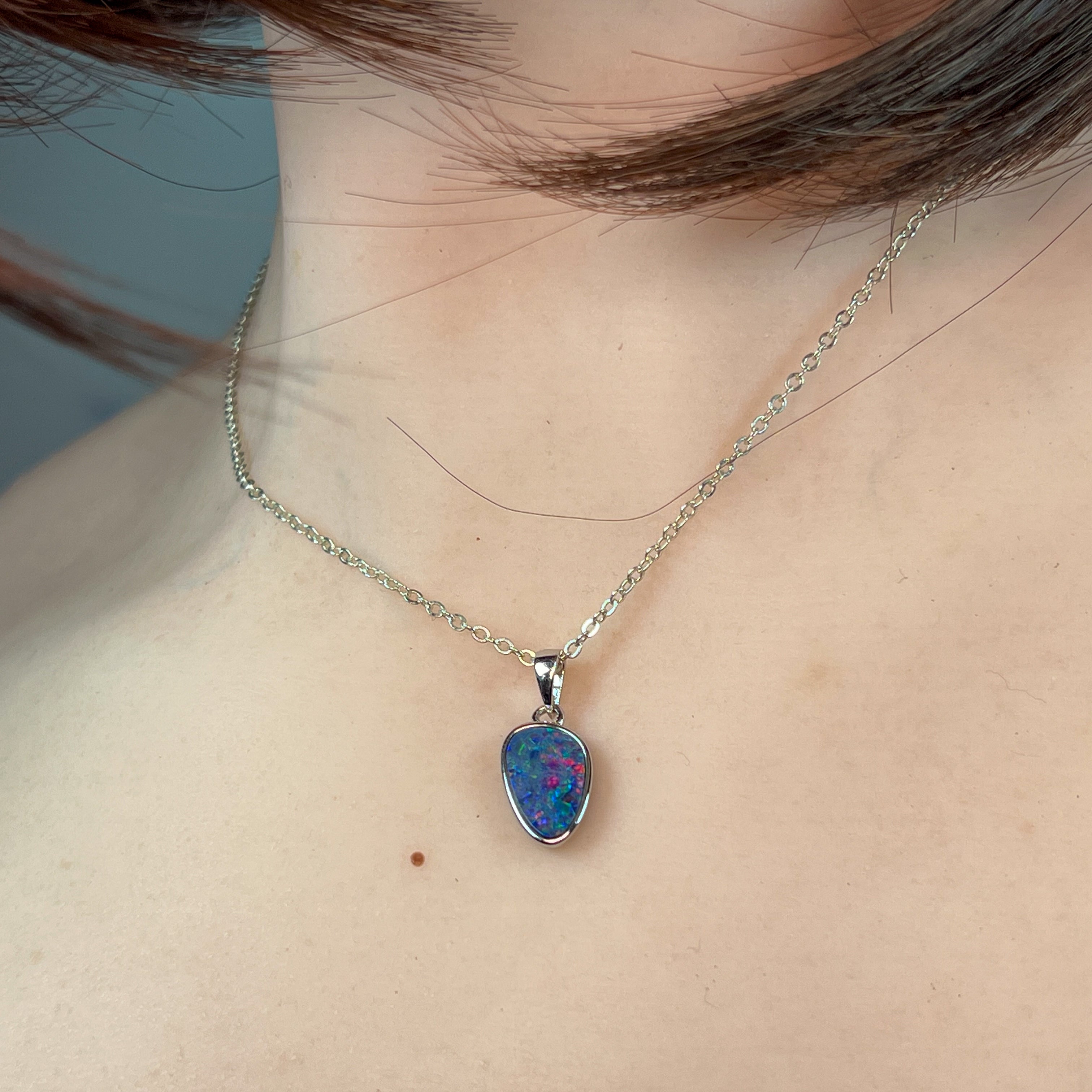 Sterling Silver Pear shape 12x9mm Opal doublet pendant